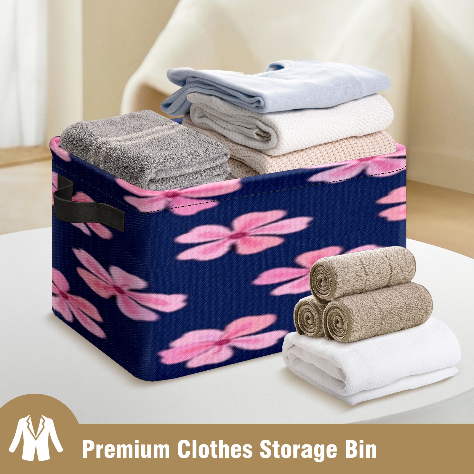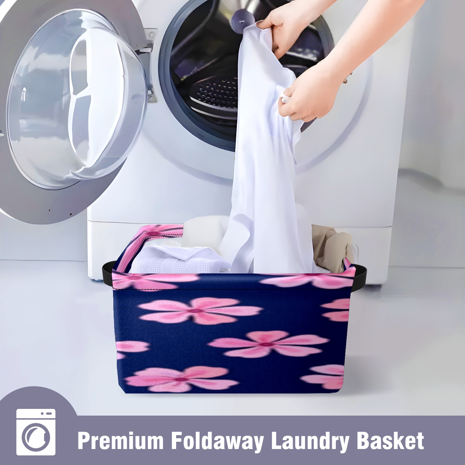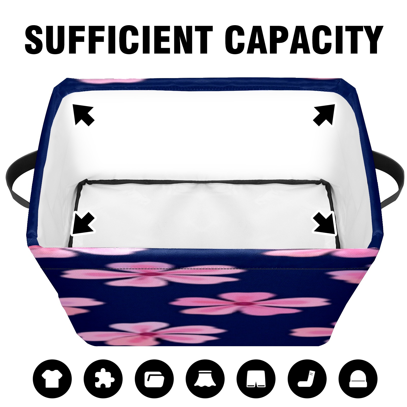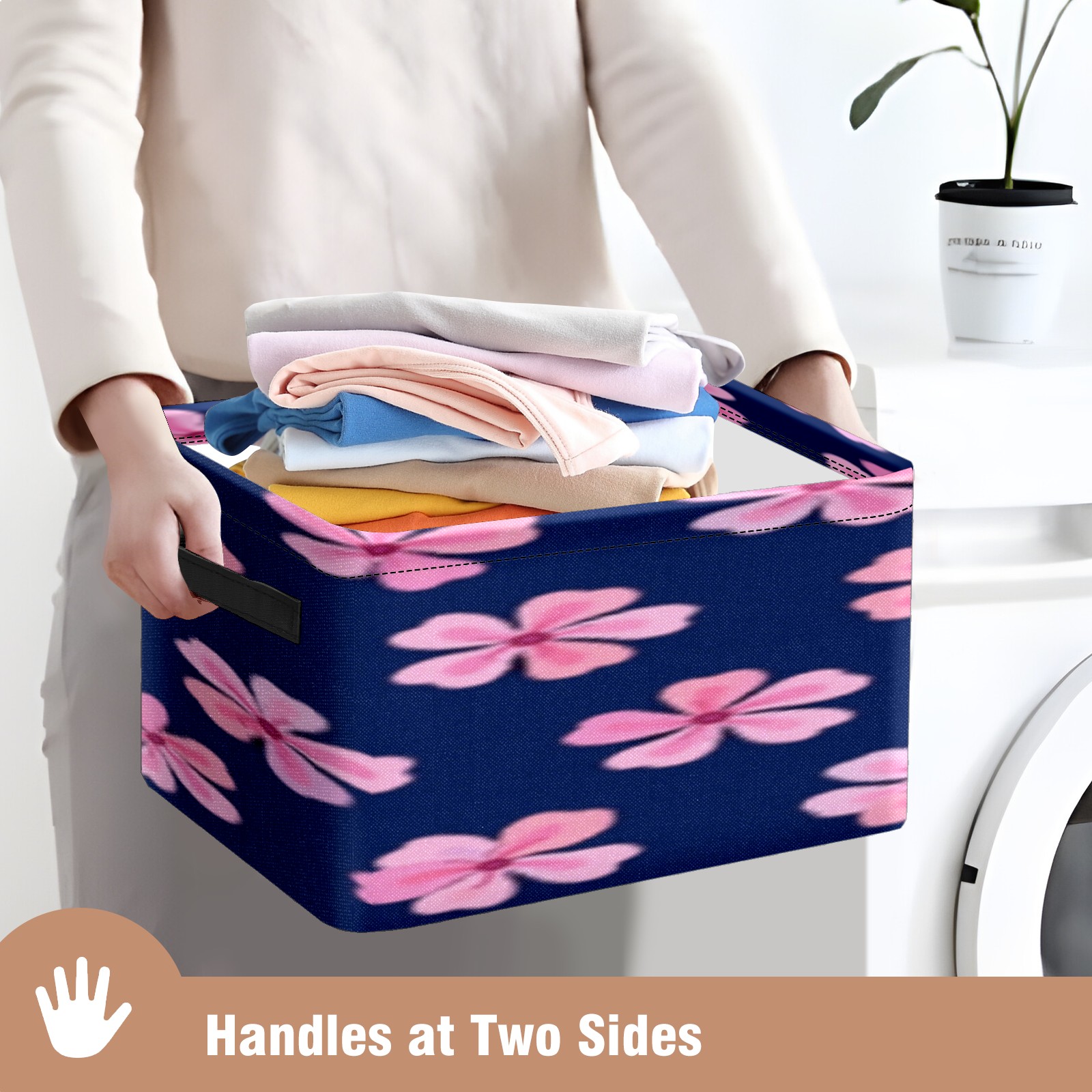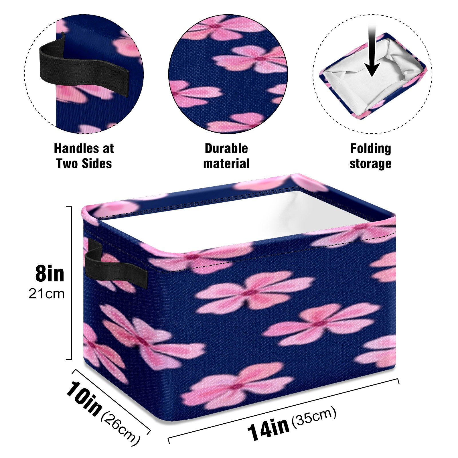 Foldable and Stackable Fabric Storage Basket for Home Organization with Handles, Decorative Closet Bins for Shelves, Laundry, and Toy Storage( Pink Flowers)