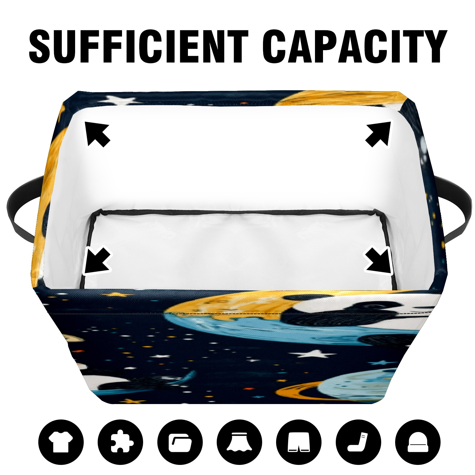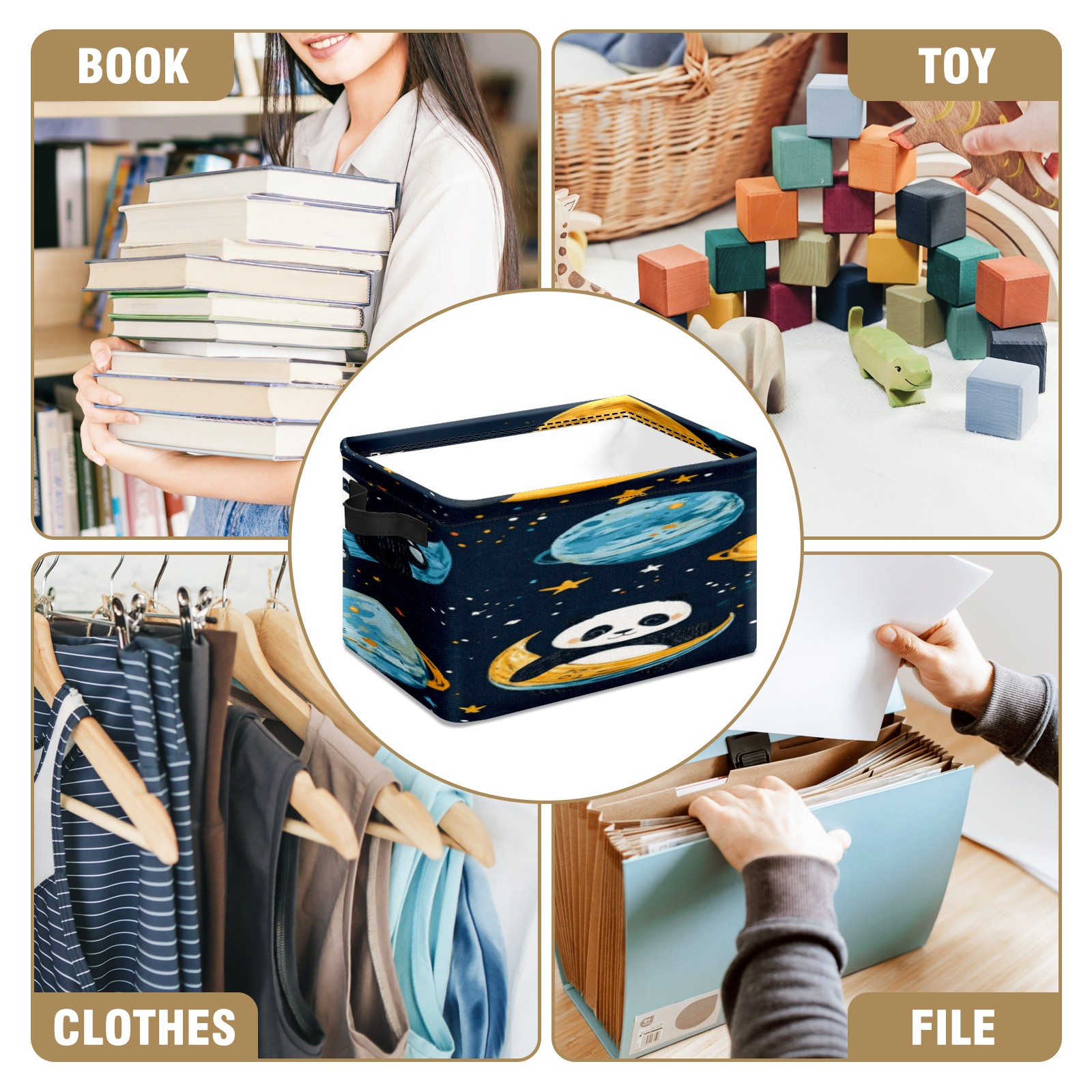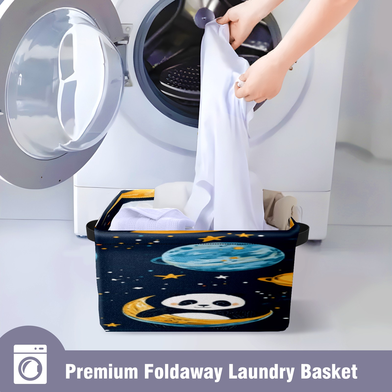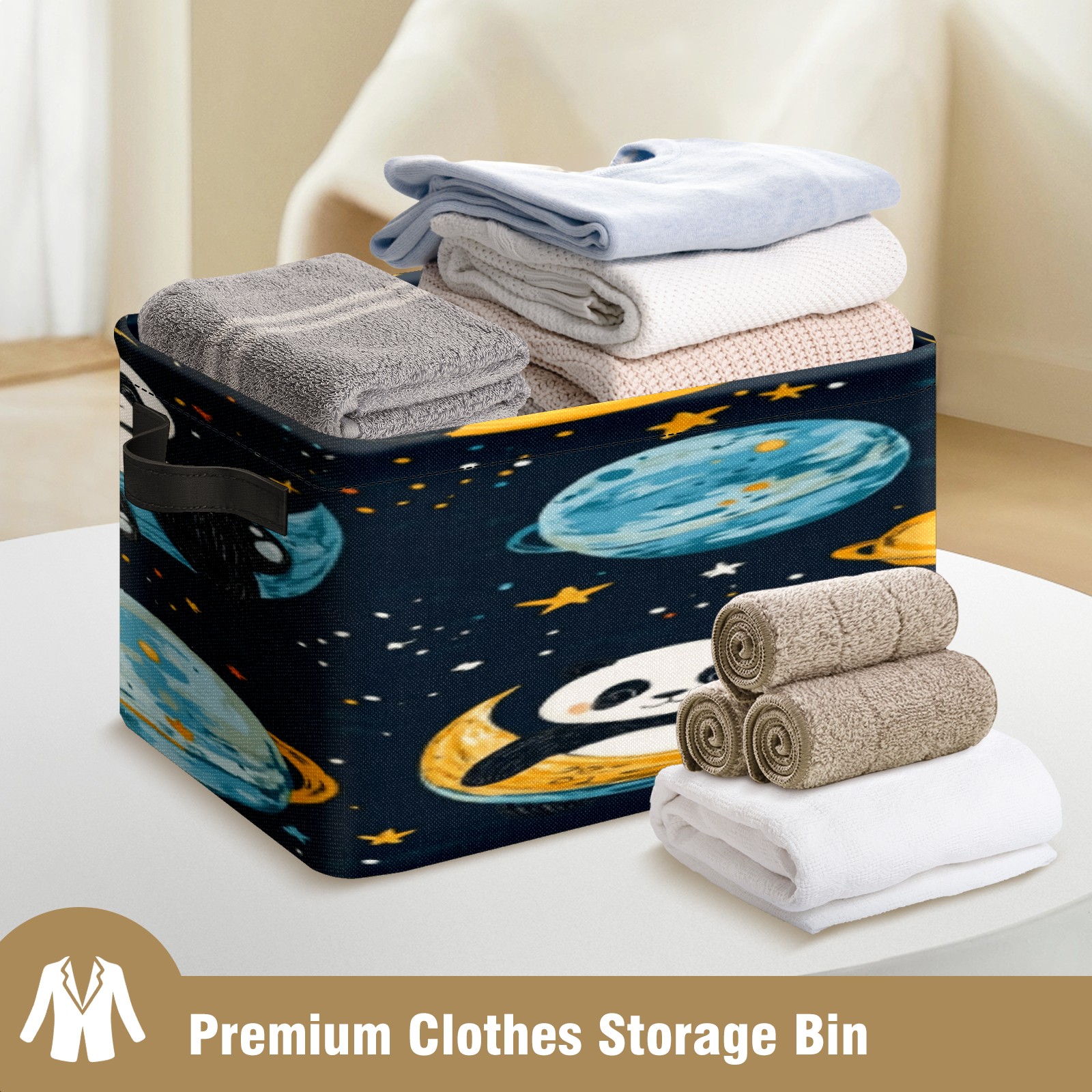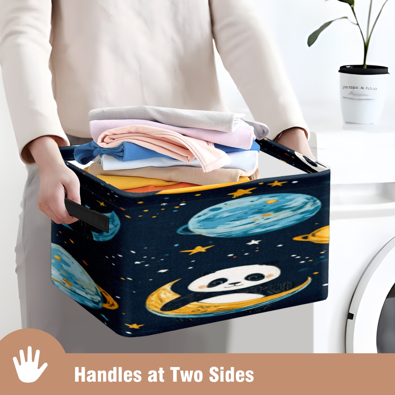 Foldable and Stackable Fabric Storage Basket for Home Organization with Handles, Decorative Closet Bins for Shelves, Laundry, and Toy Storage( Playful Pandas Floating)