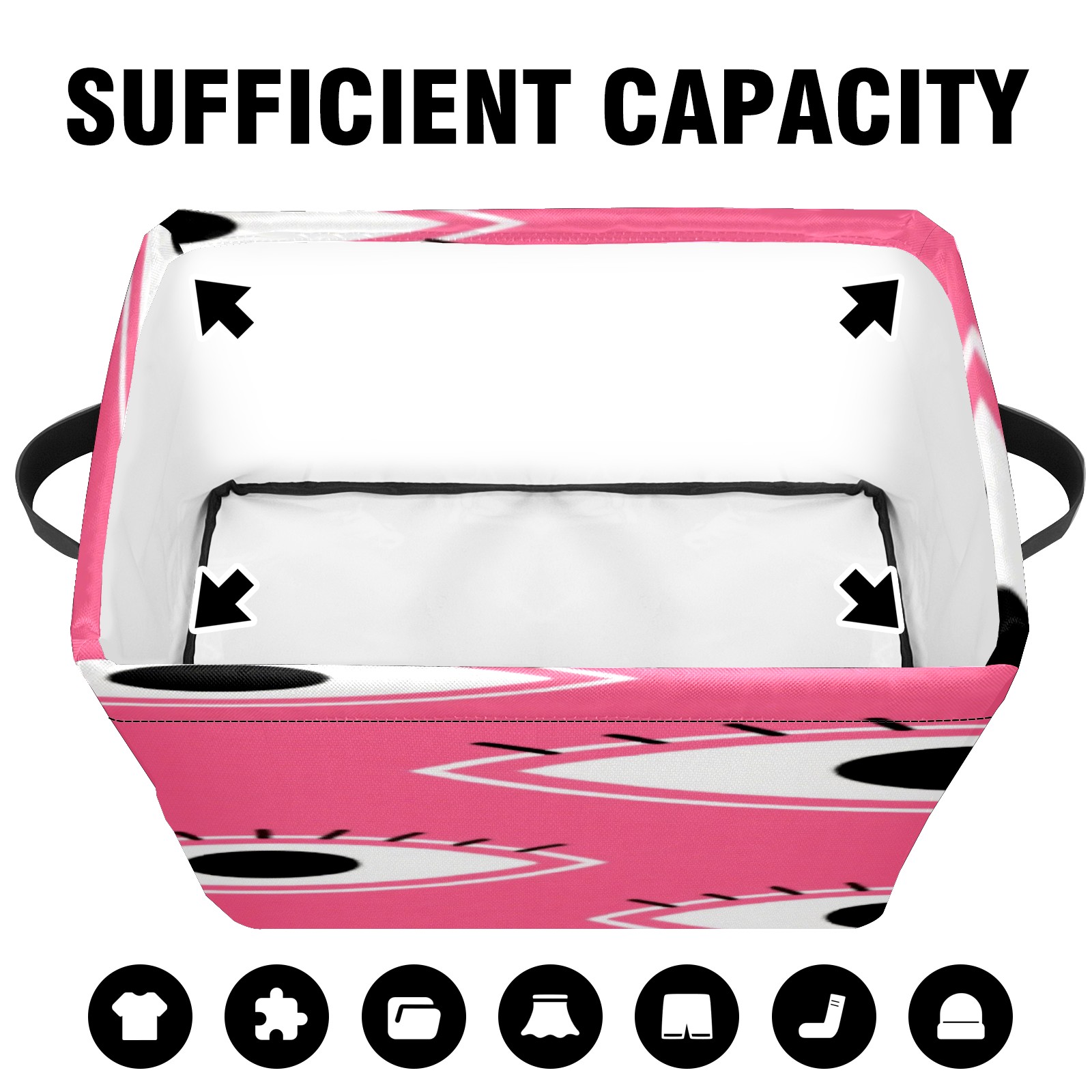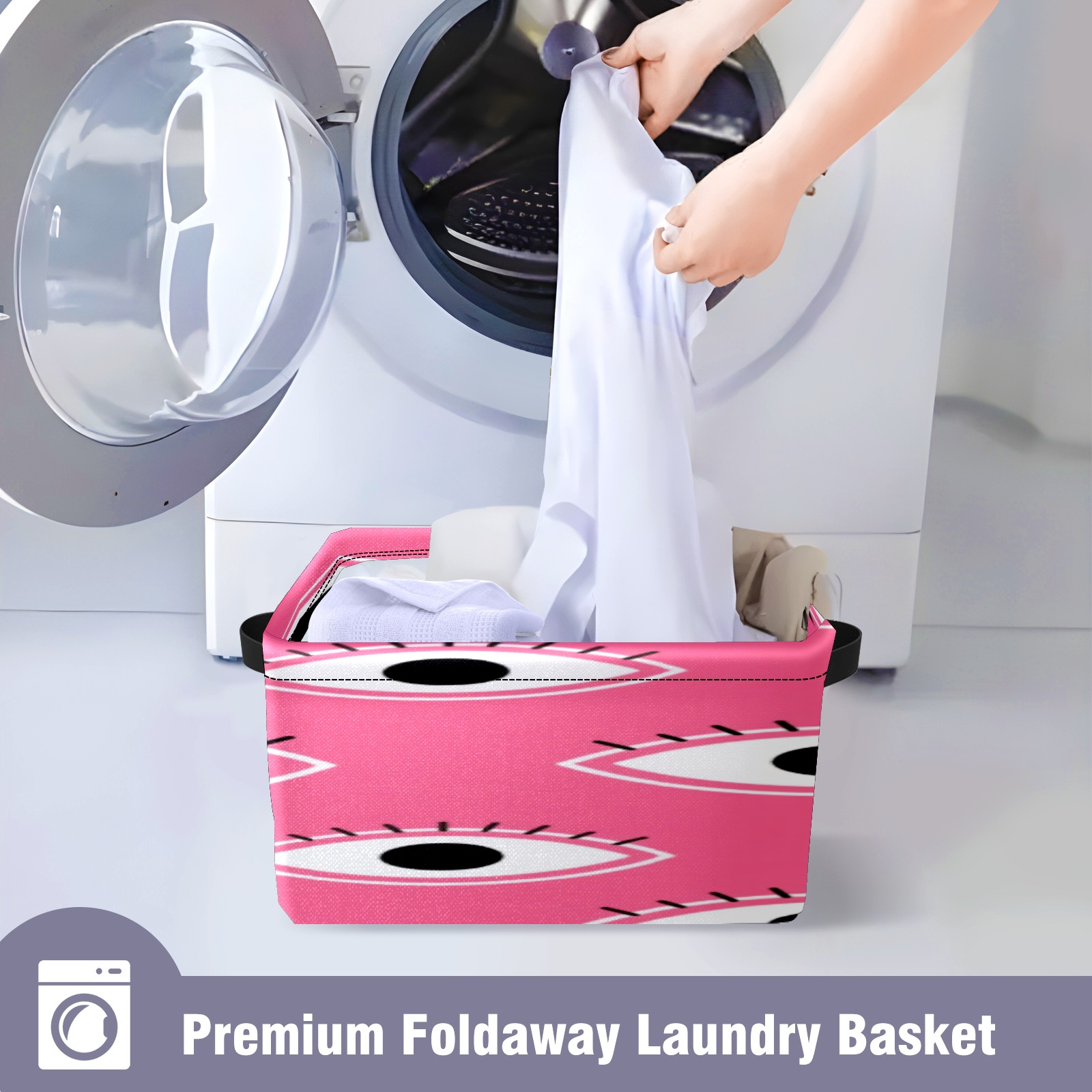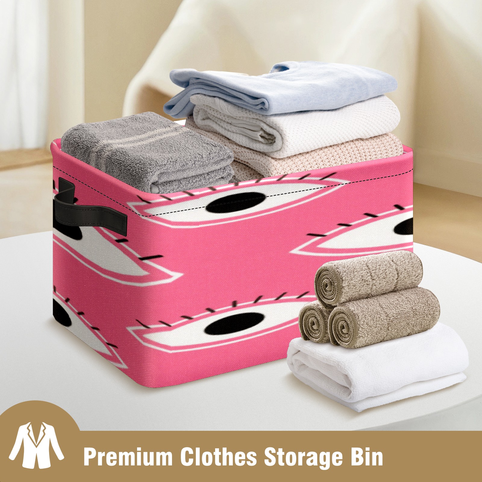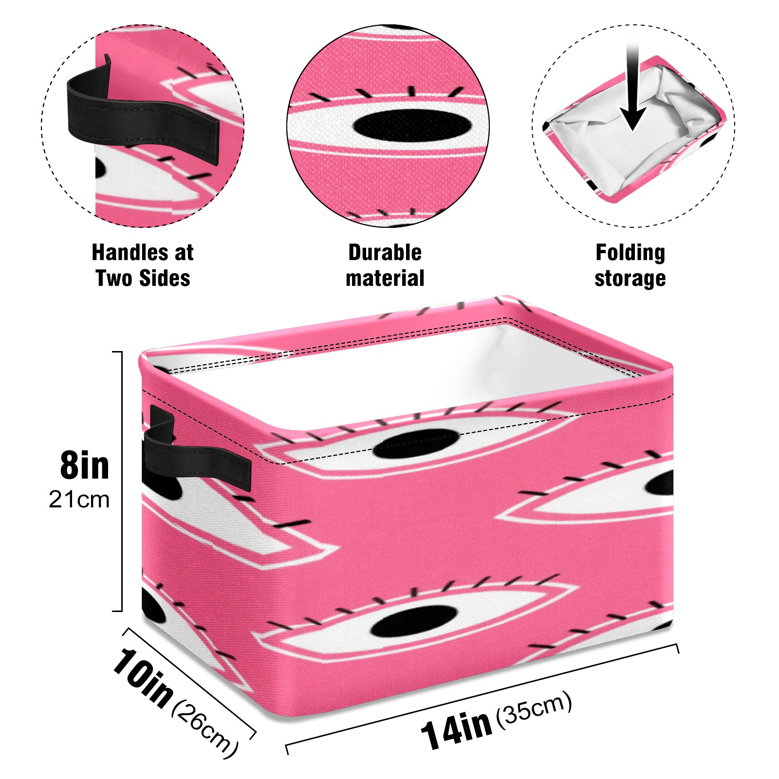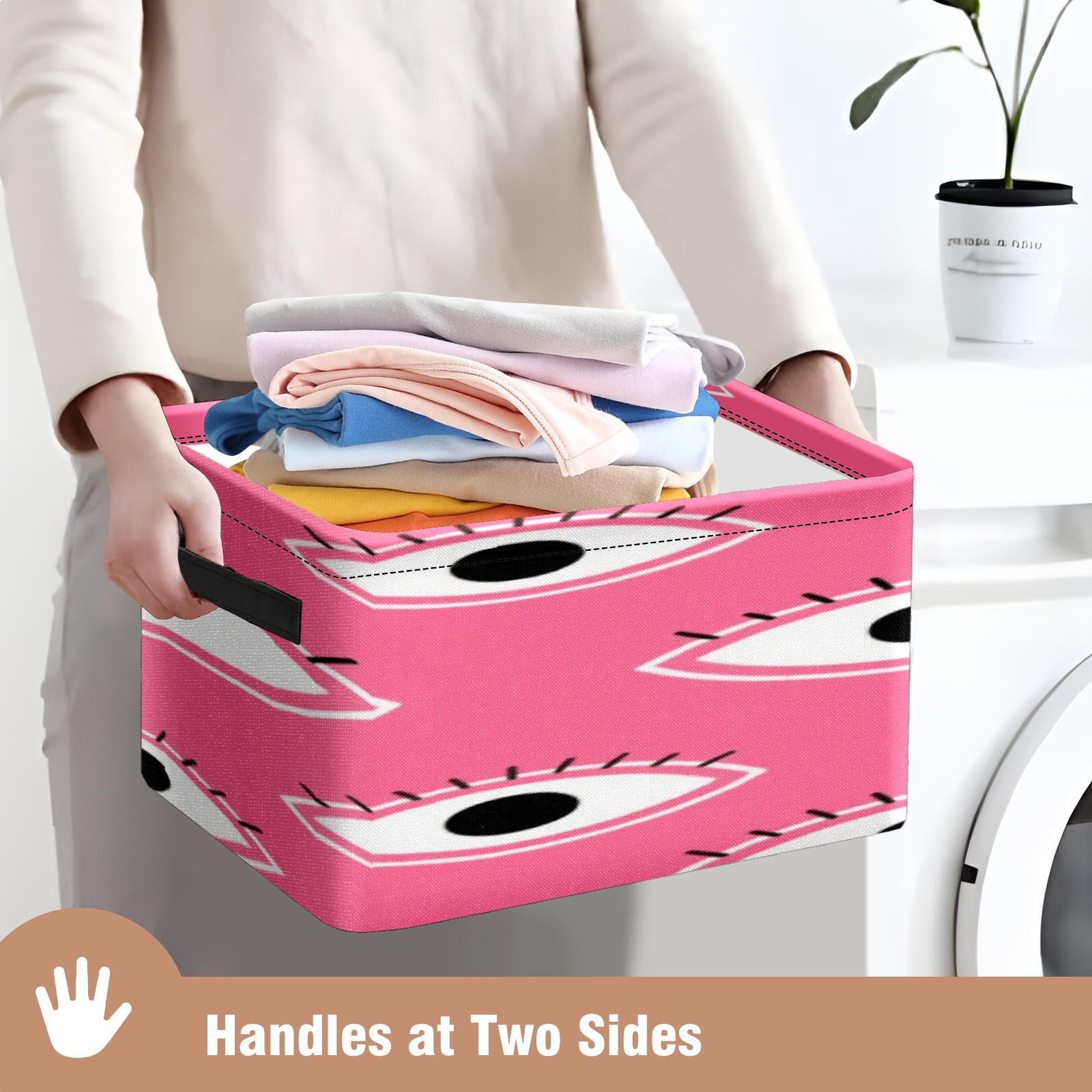 Foldable and Stackable Fabric Storage Basket for Home Organization with Handles, Decorative Closet Bins for Shelves, Laundry, and Toy Storage( Pink Eyes)