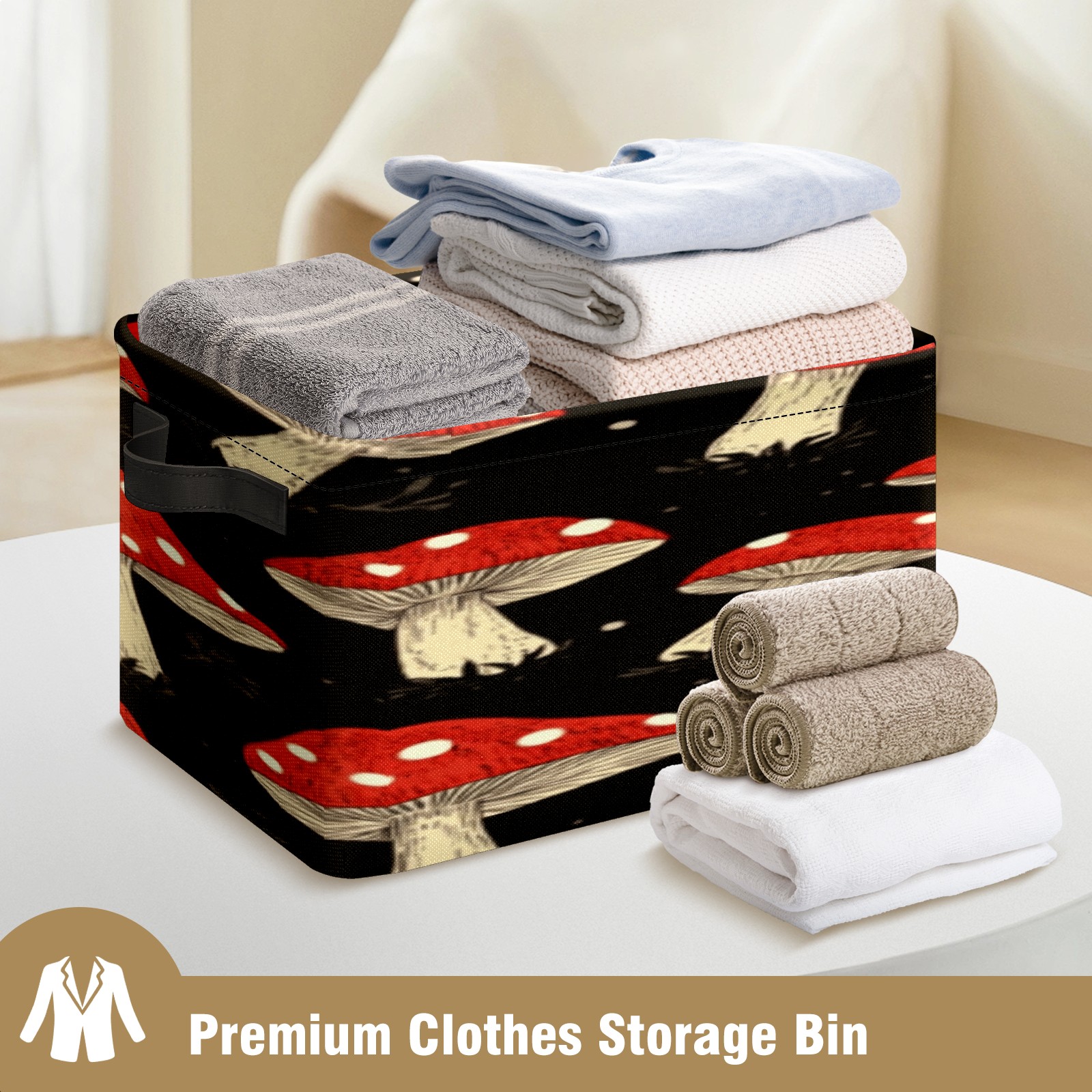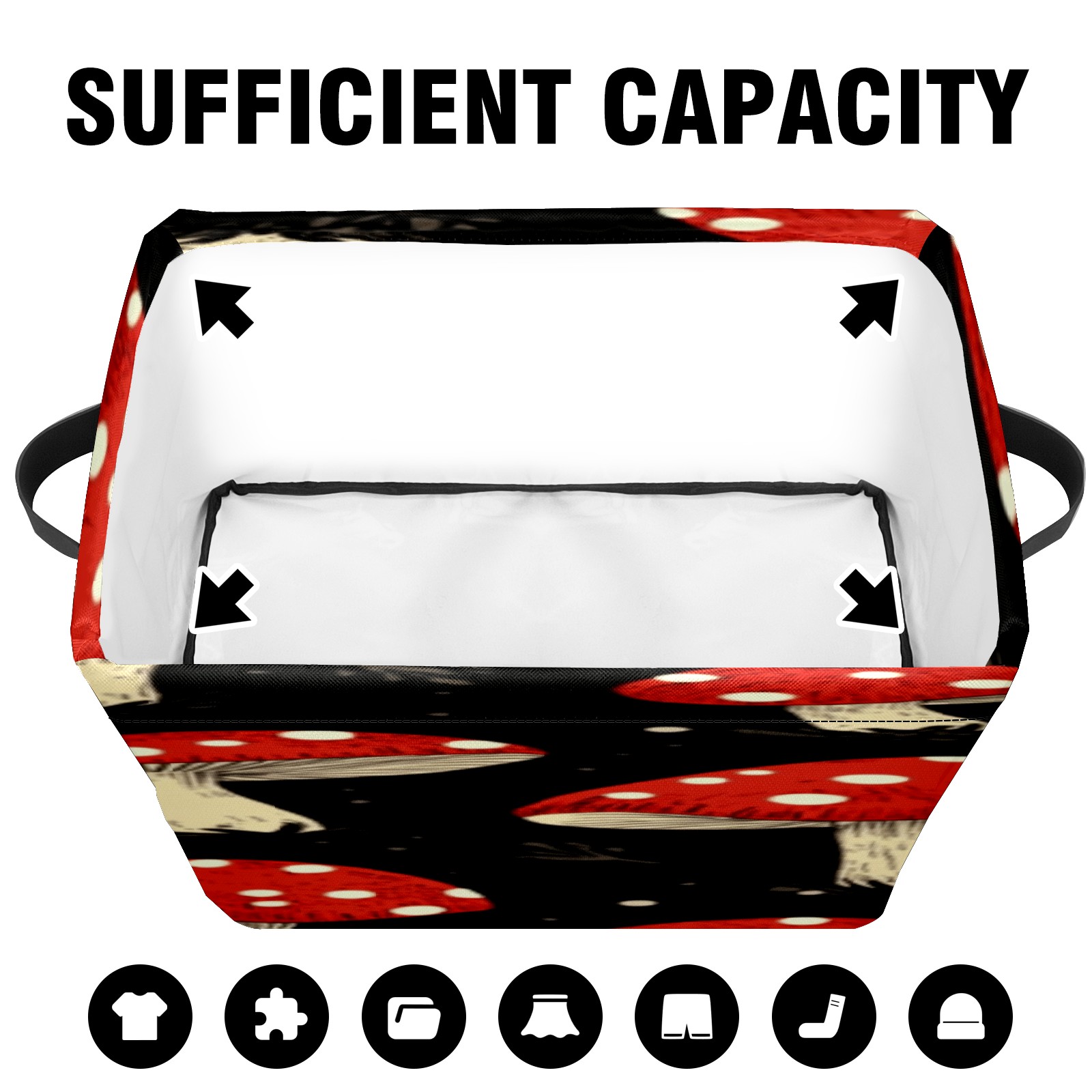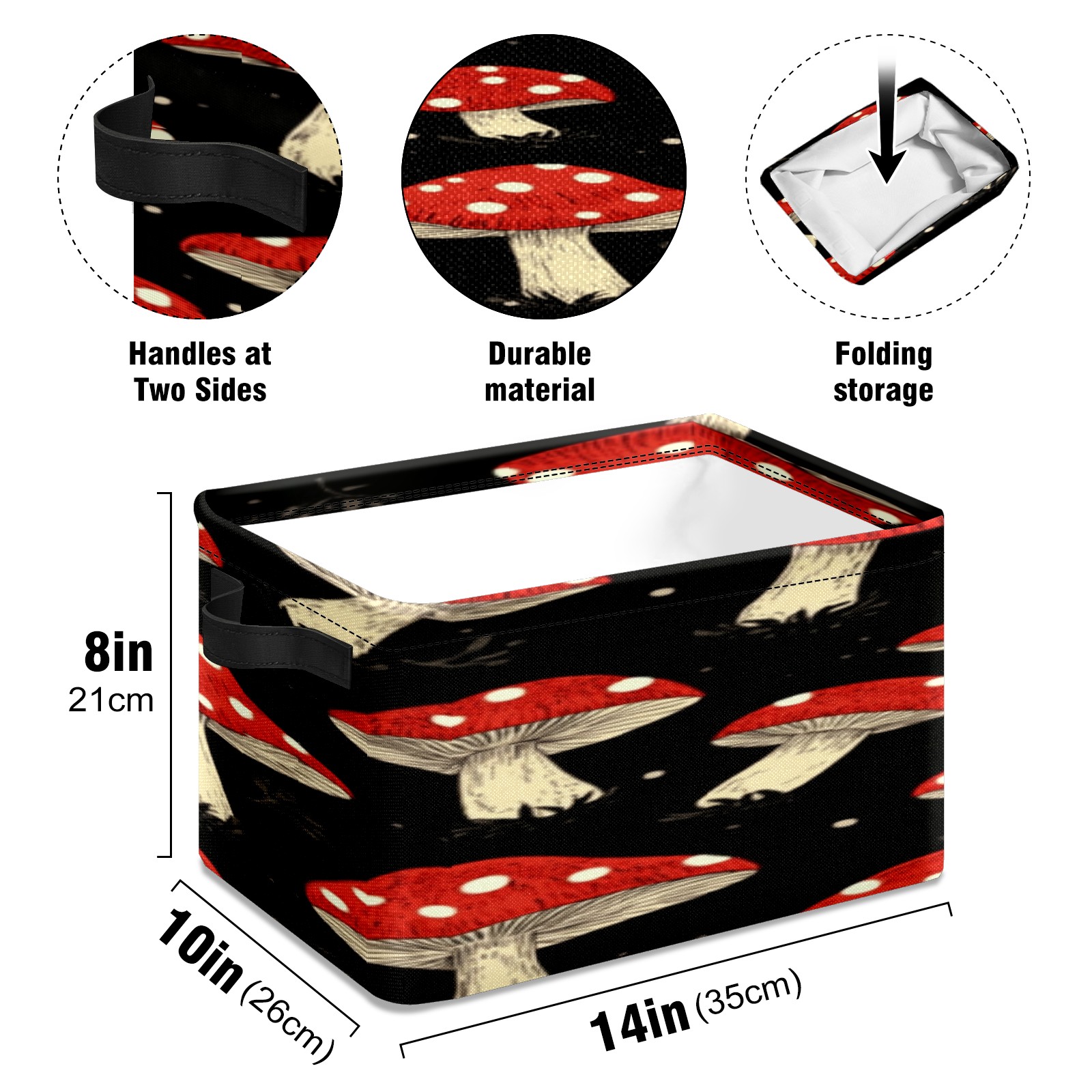 Foldable and Stackable Fabric Storage Basket for Home Organization with Handles, Decorative Closet Bins for Shelves, Laundry, and Toy Storage( Red Mushrooms)