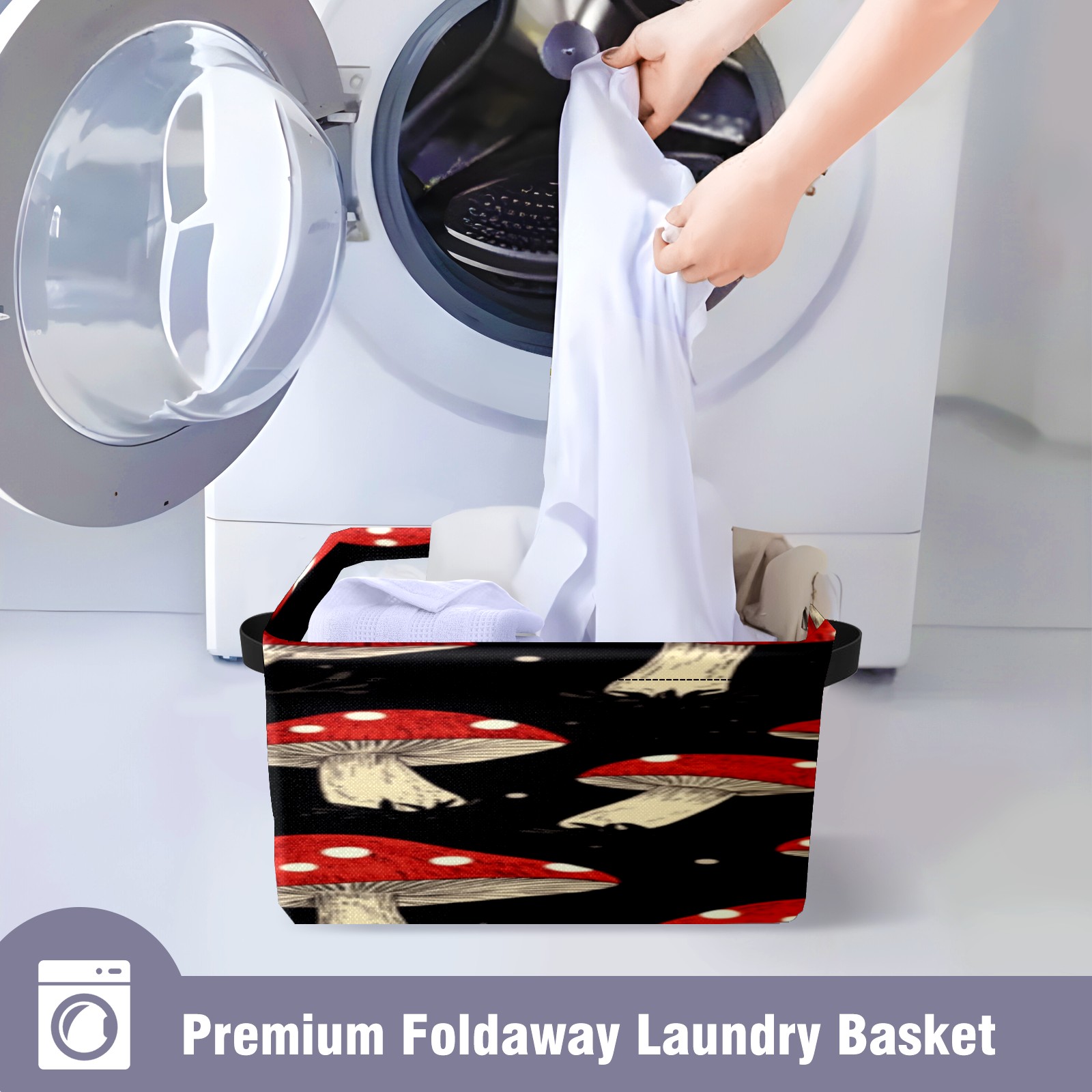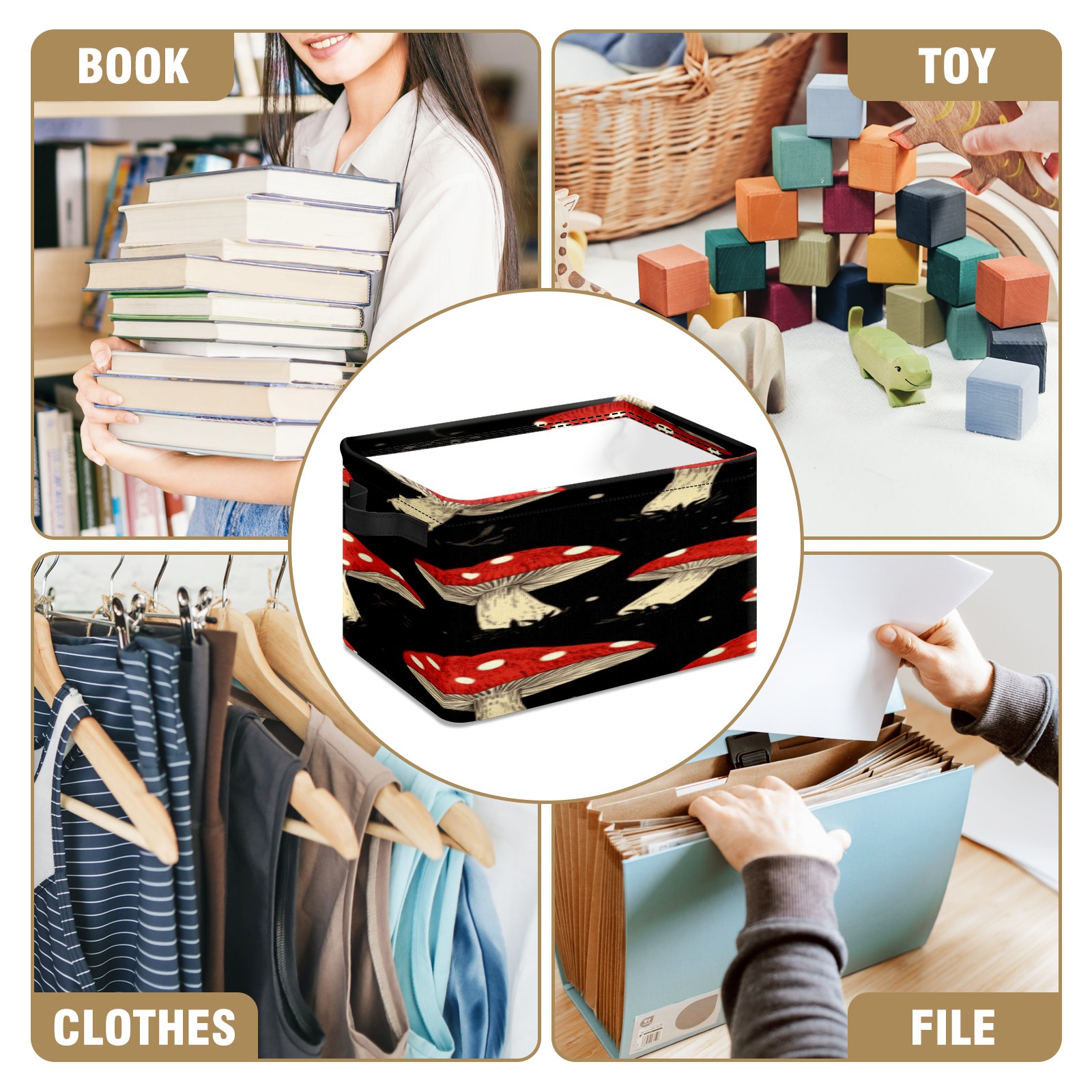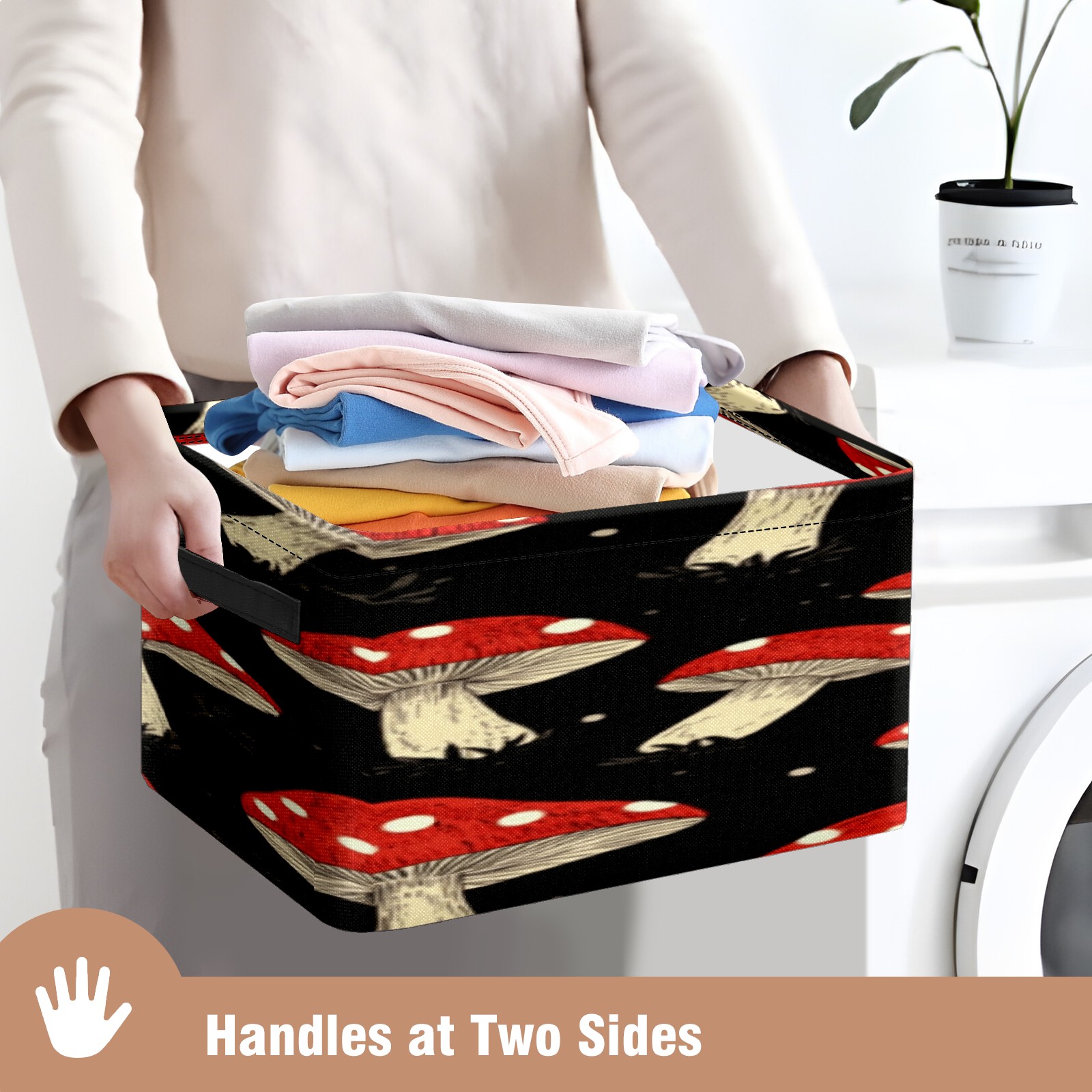 Foldable and Stackable Fabric Storage Basket for Home Organization with Handles, Decorative Closet Bins for Shelves, Laundry, and Toy Storage( Red Mushrooms)