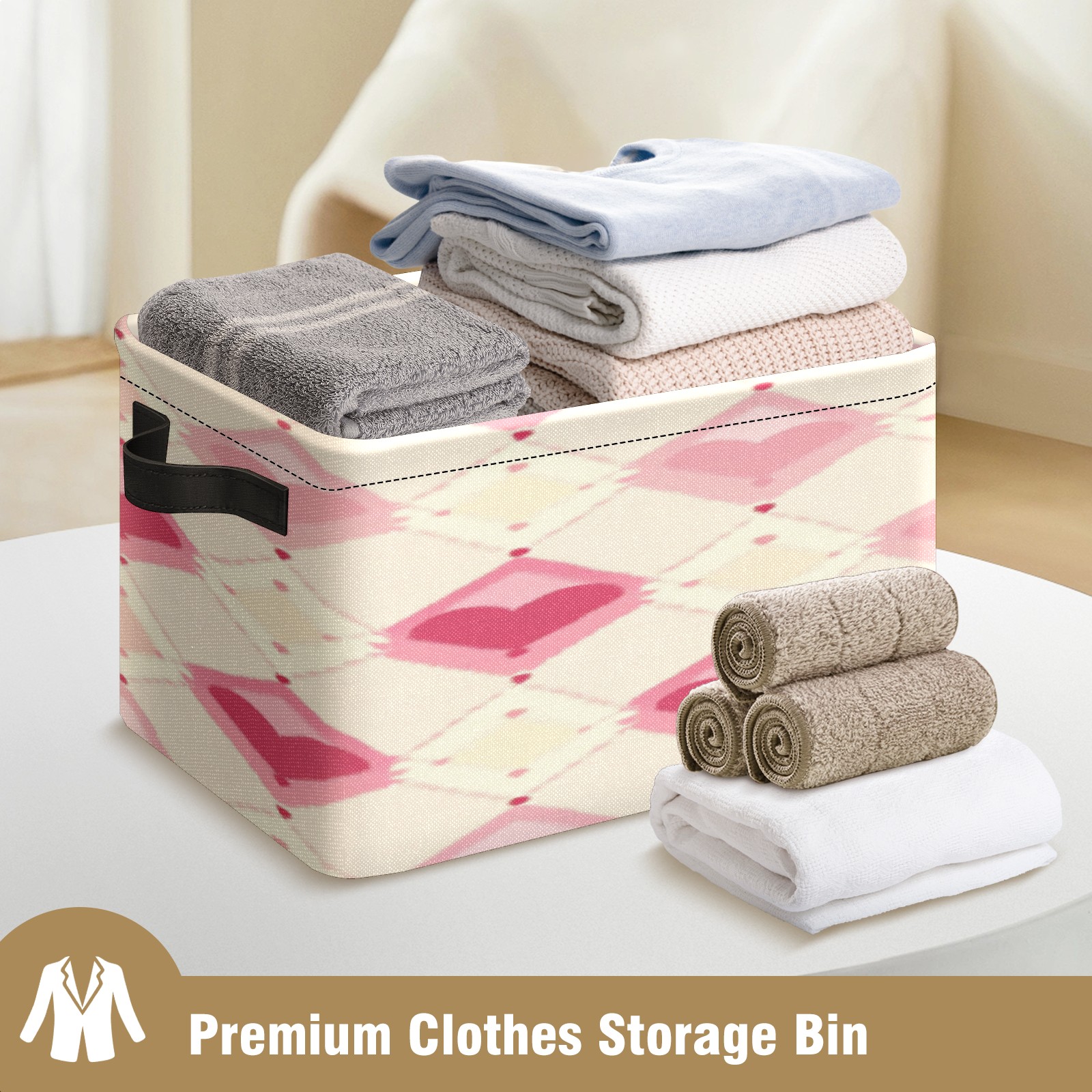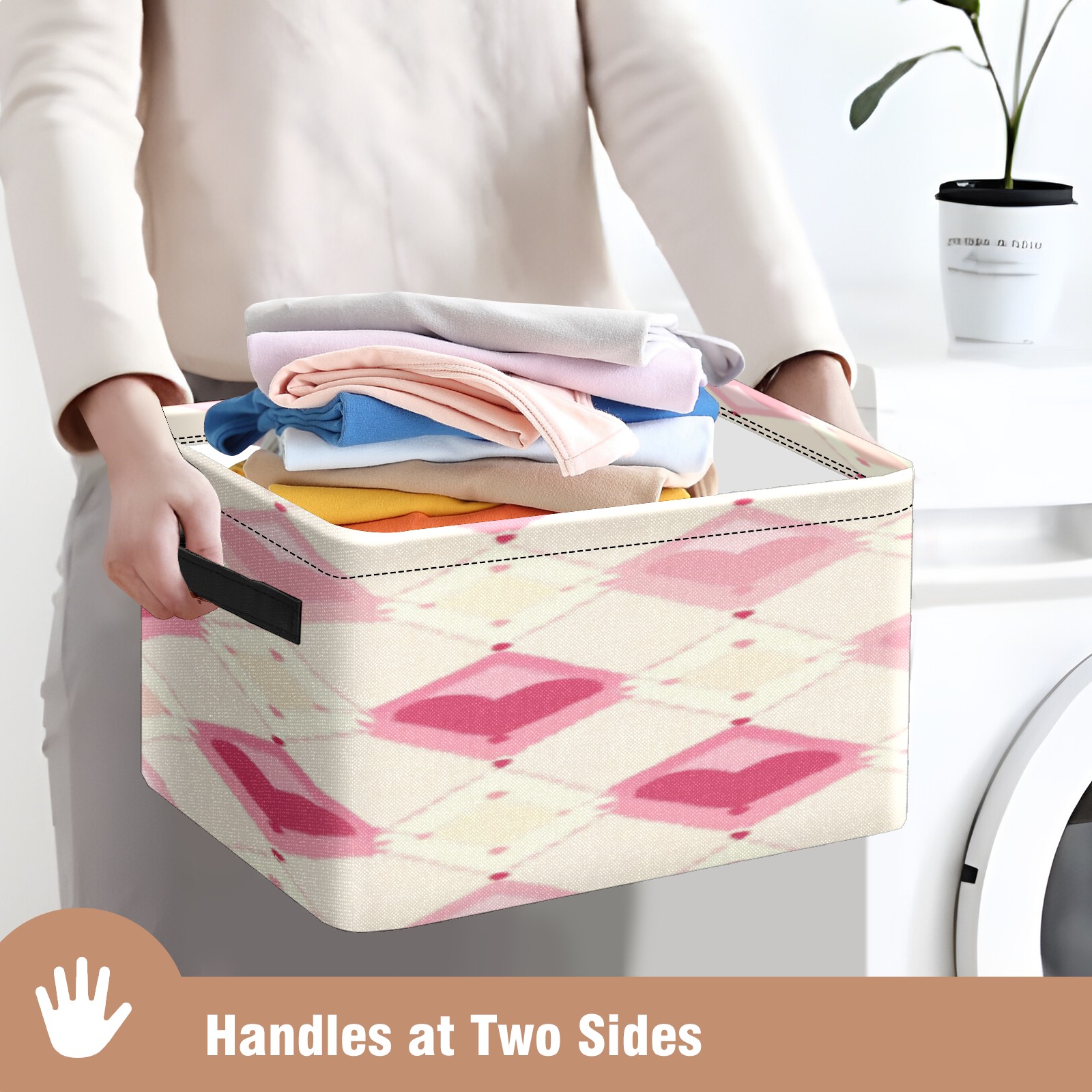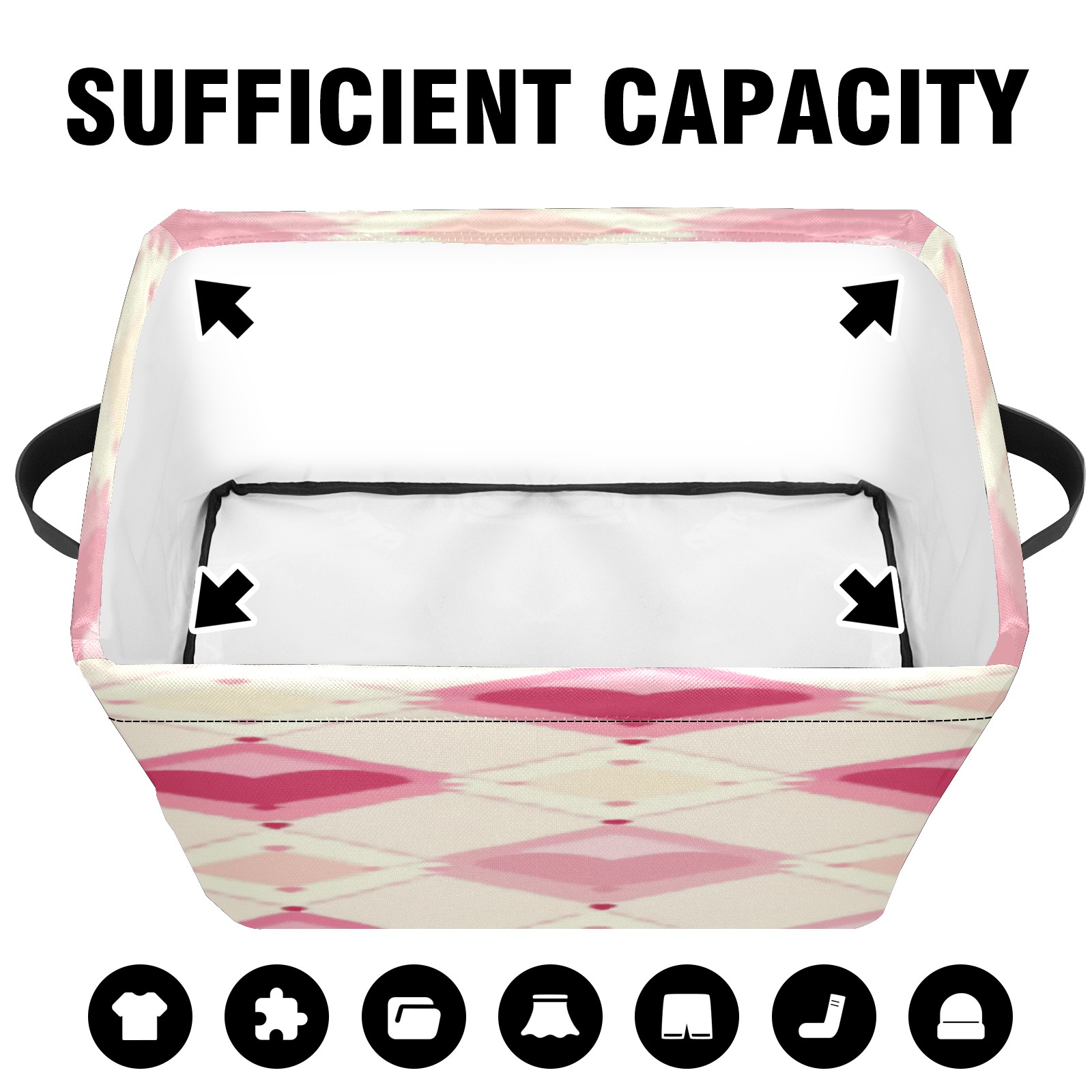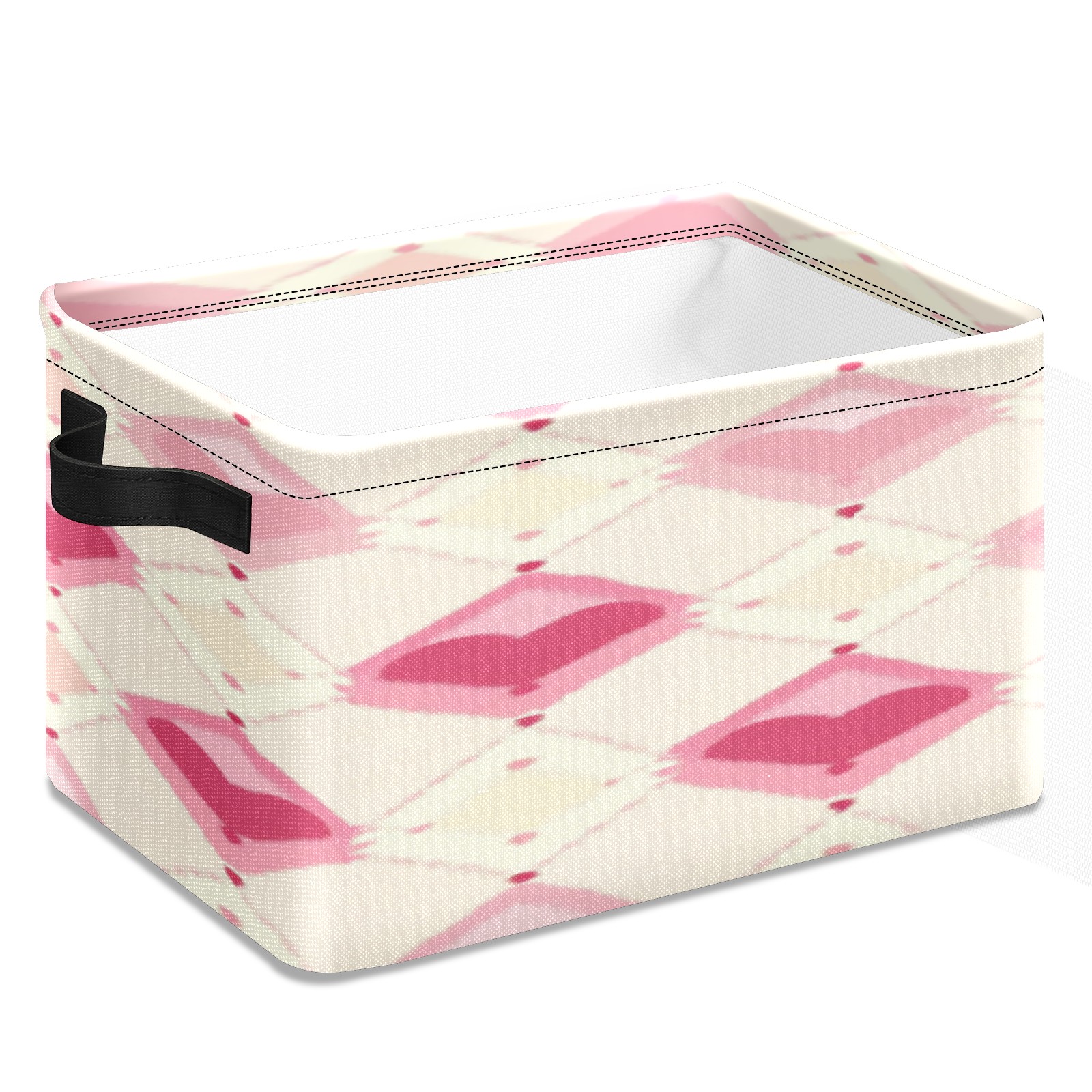 Foldable and Stackable Fabric Storage Basket for Home Organization with Handles, Decorative Closet Bins for Shelves, Laundry, and Toy Storage( Pink And White Diamond)