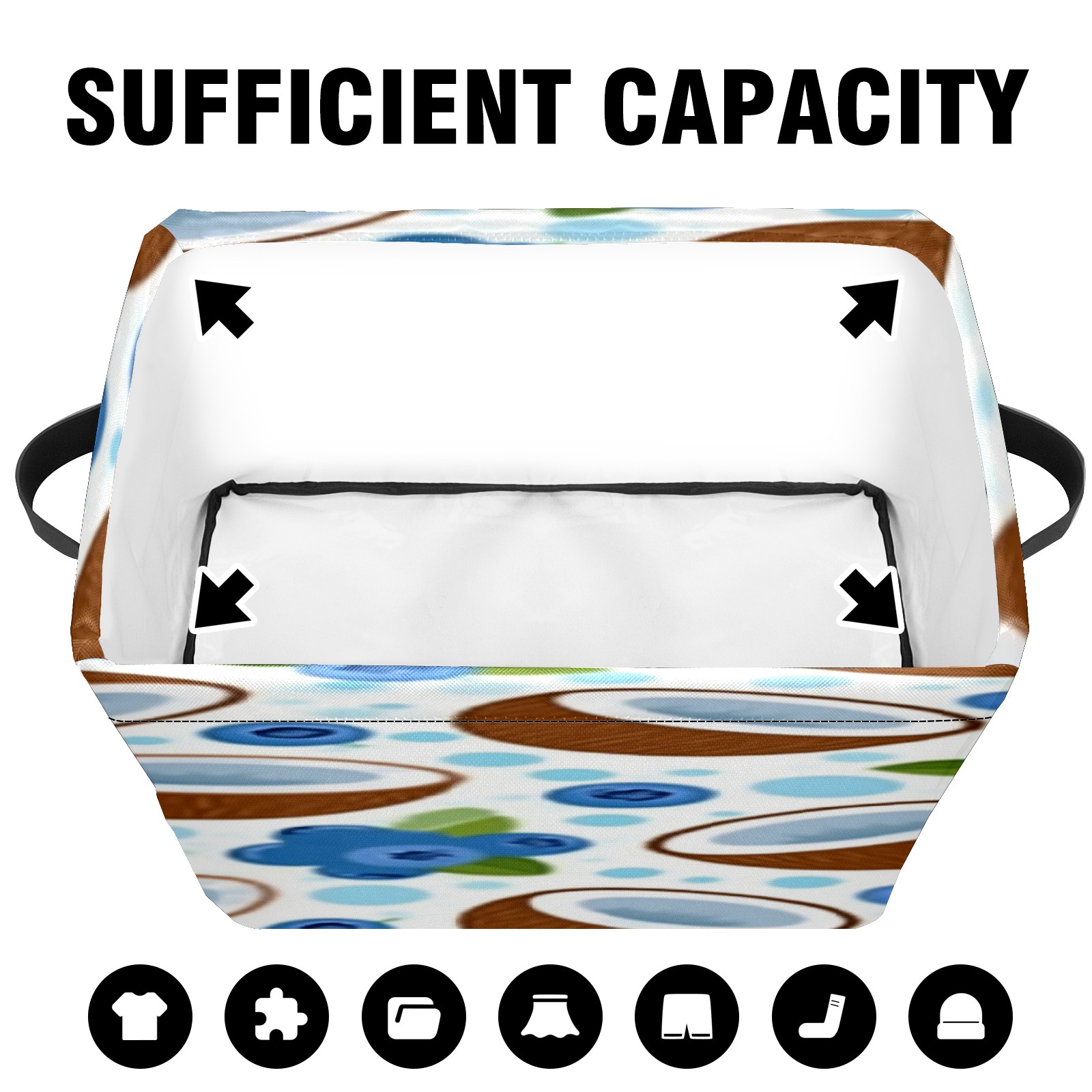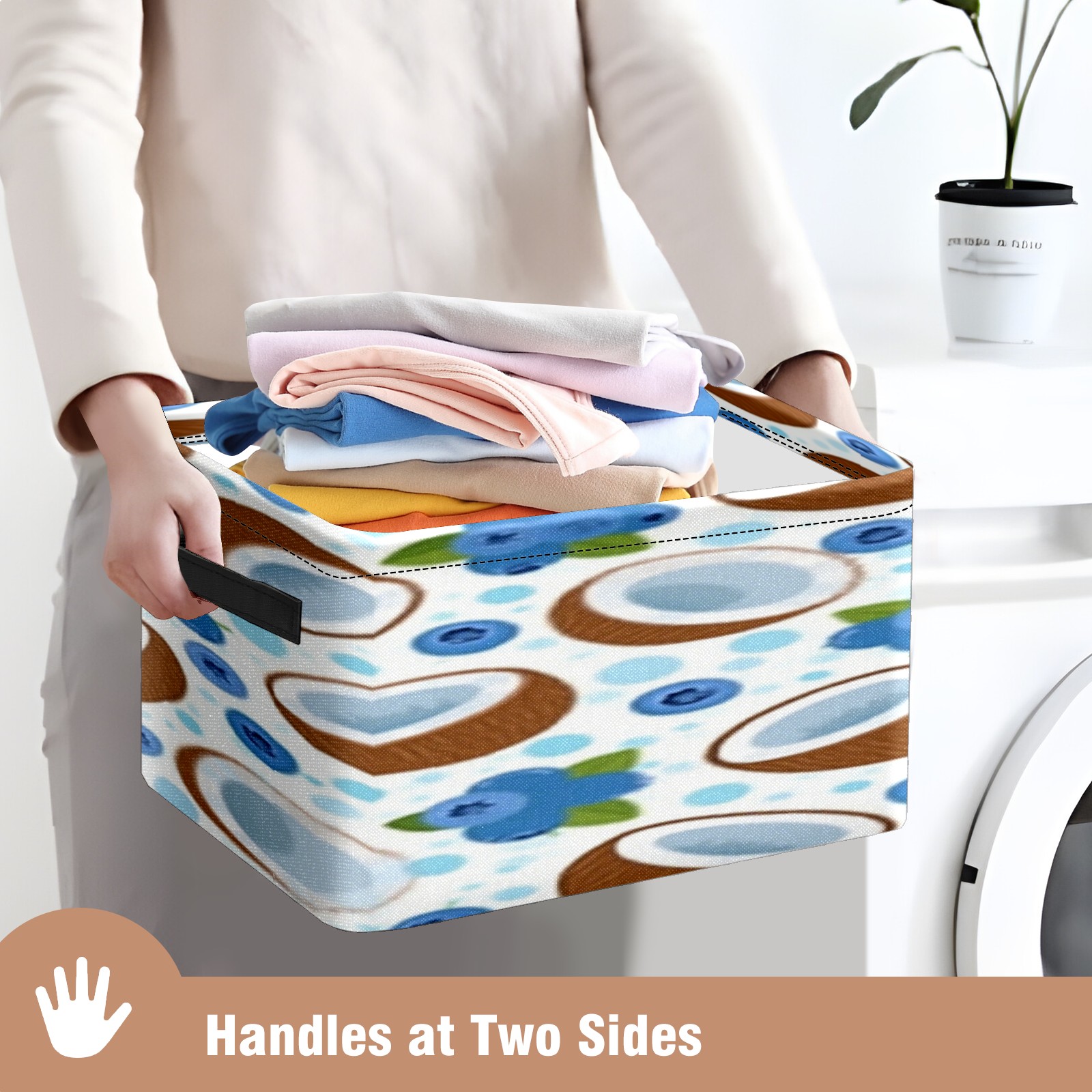 Foldable and Stackable Fabric Storage Basket for Home Organization with Handles, Decorative Closet Bins for Shelves, Laundry, and Toy Storage( Blueberry Coconut)