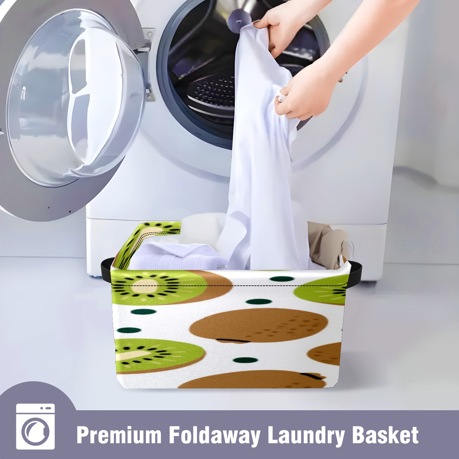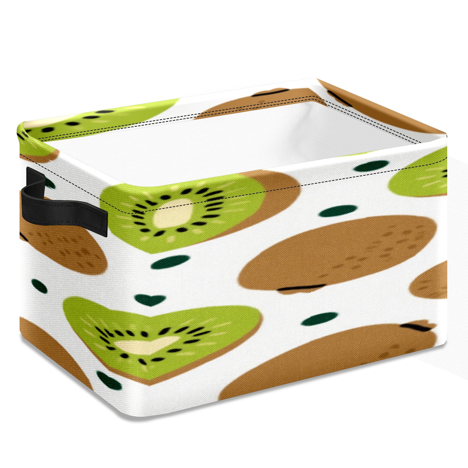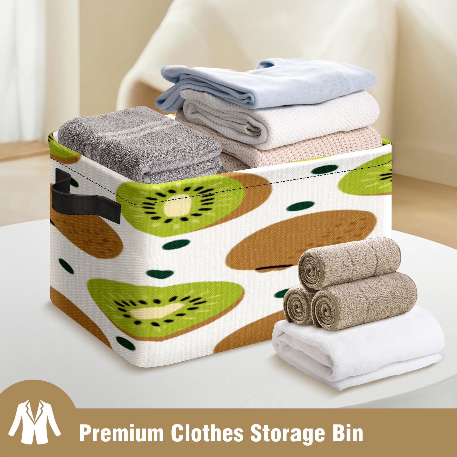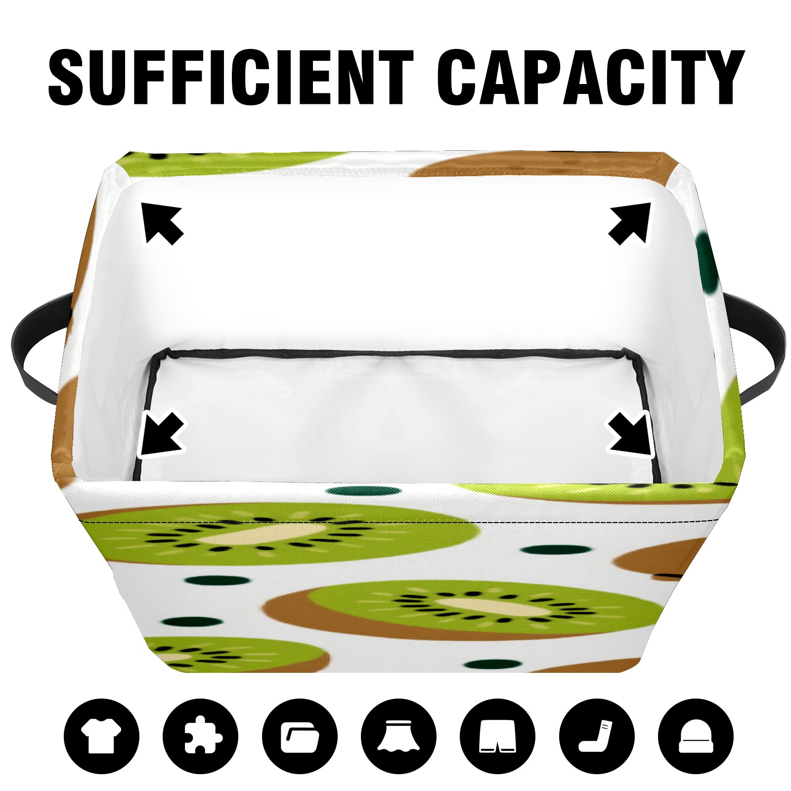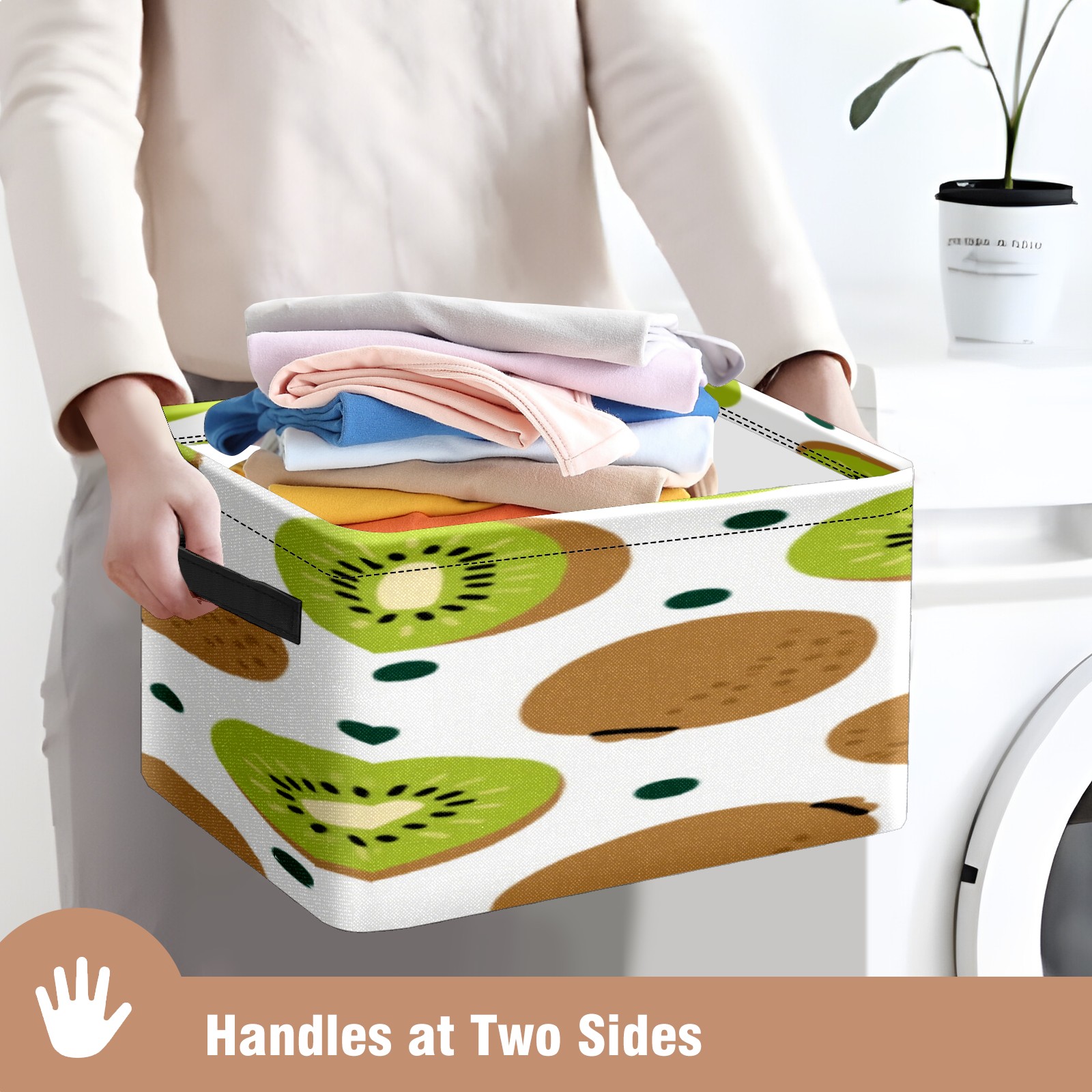 Foldable and Stackable Fabric Storage Basket for Home Organization with Handles, Decorative Closet Bins for Shelves, Laundry, and Toy Storage( Kiwi)