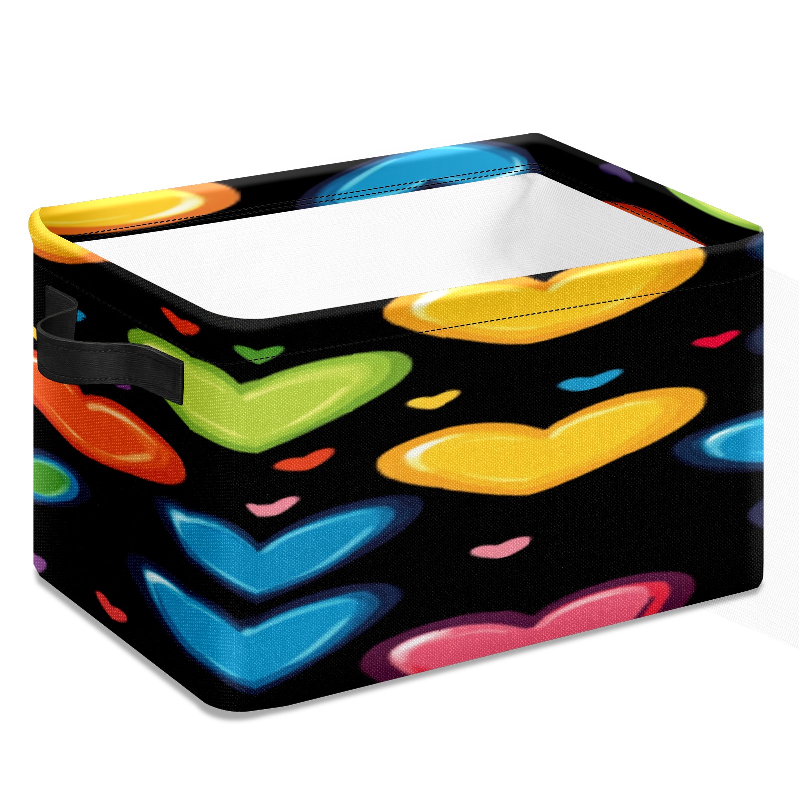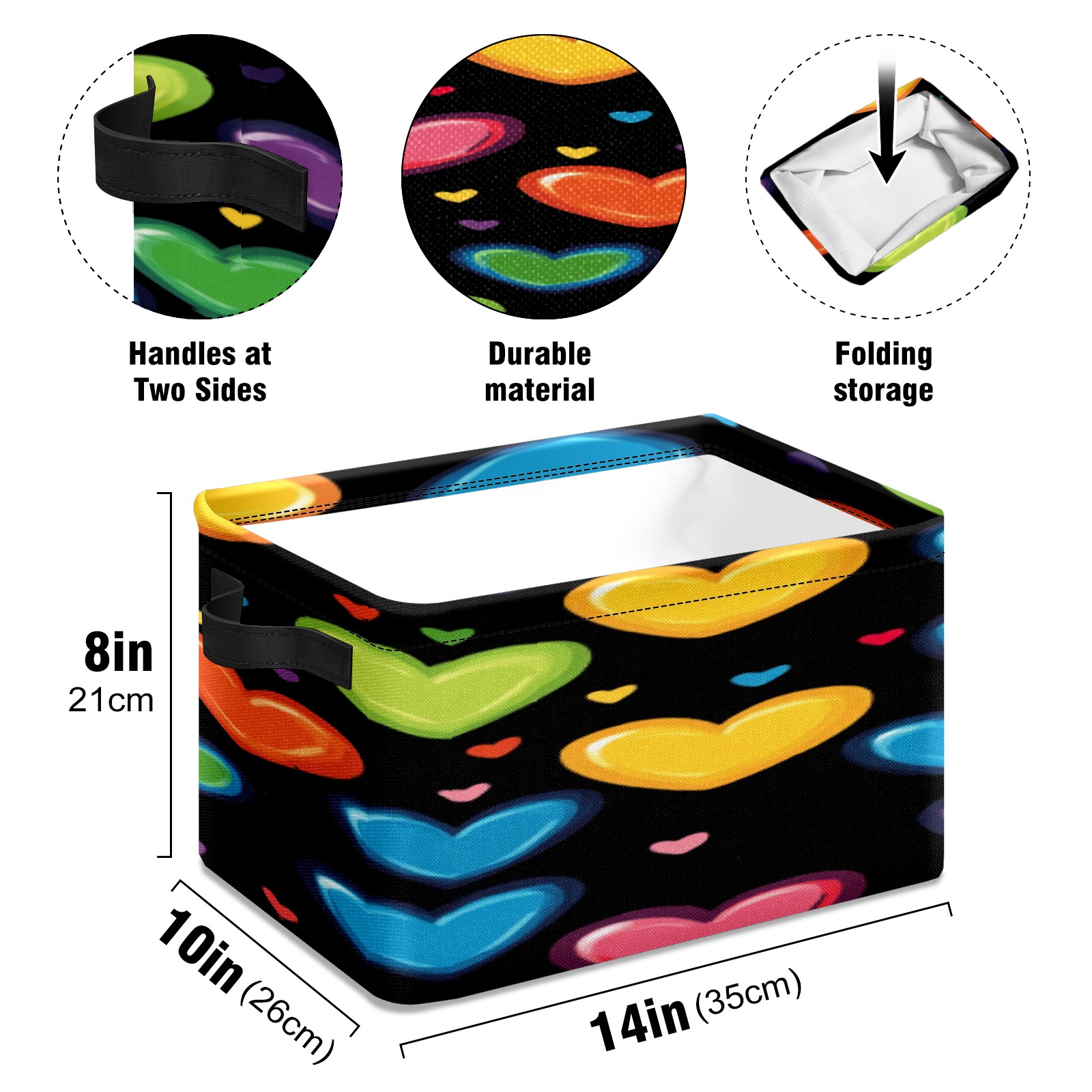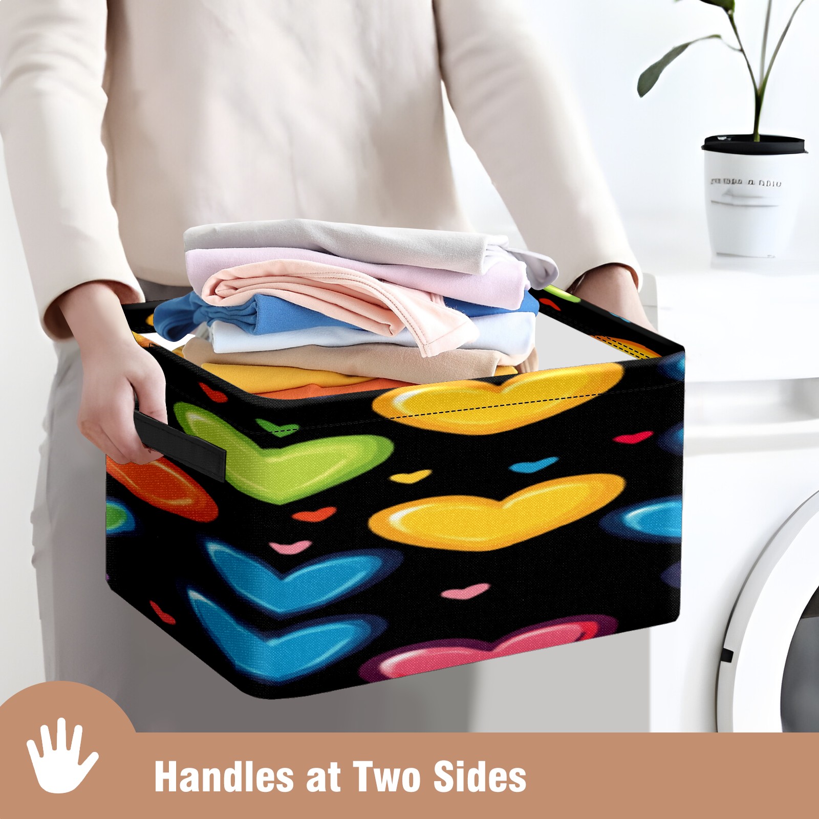 Foldable and Stackable Fabric Storage Basket for Home Organization with Handles, Decorative Closet Bins for Shelves, Laundry, and Toy Storage( Hearts In Rainbow Colors)