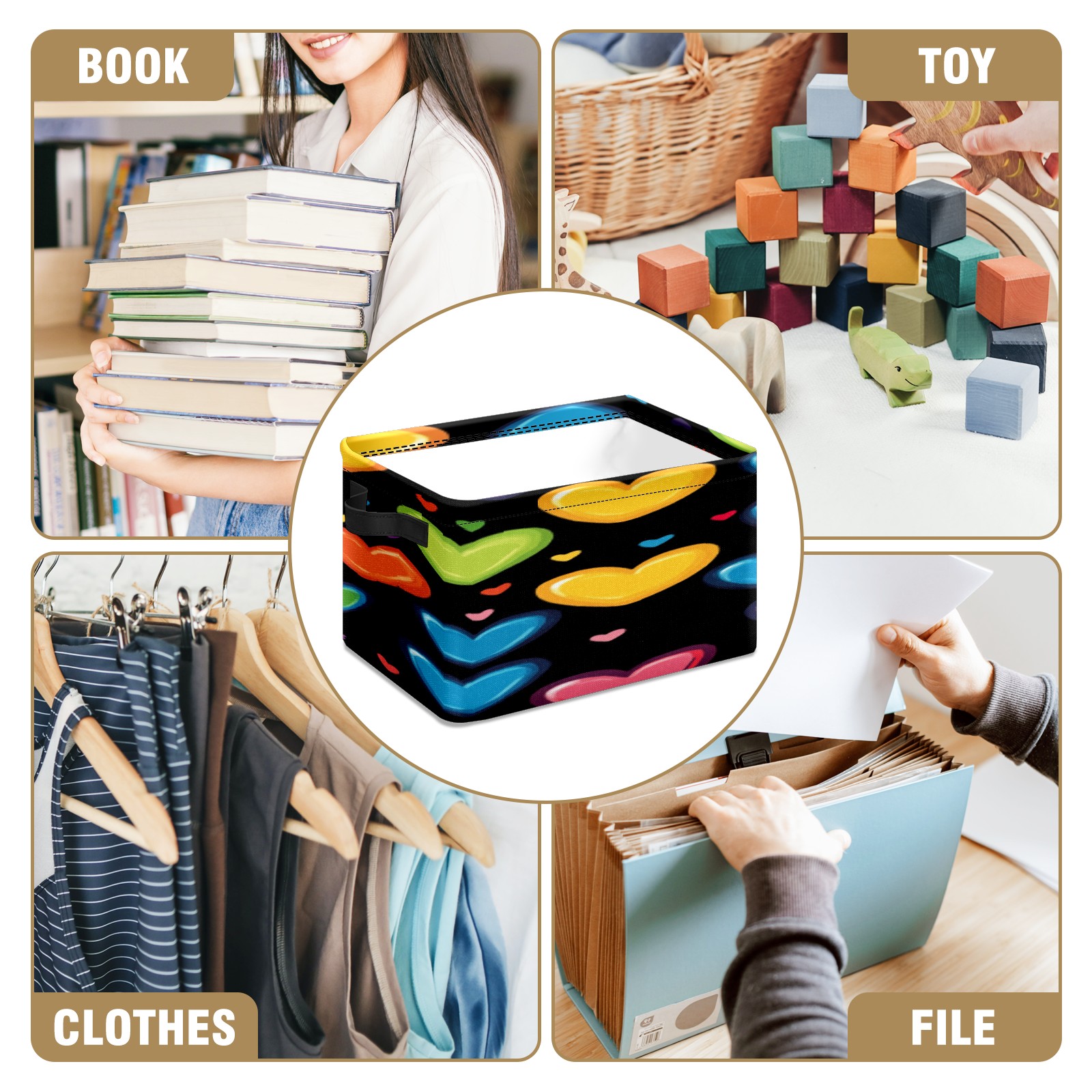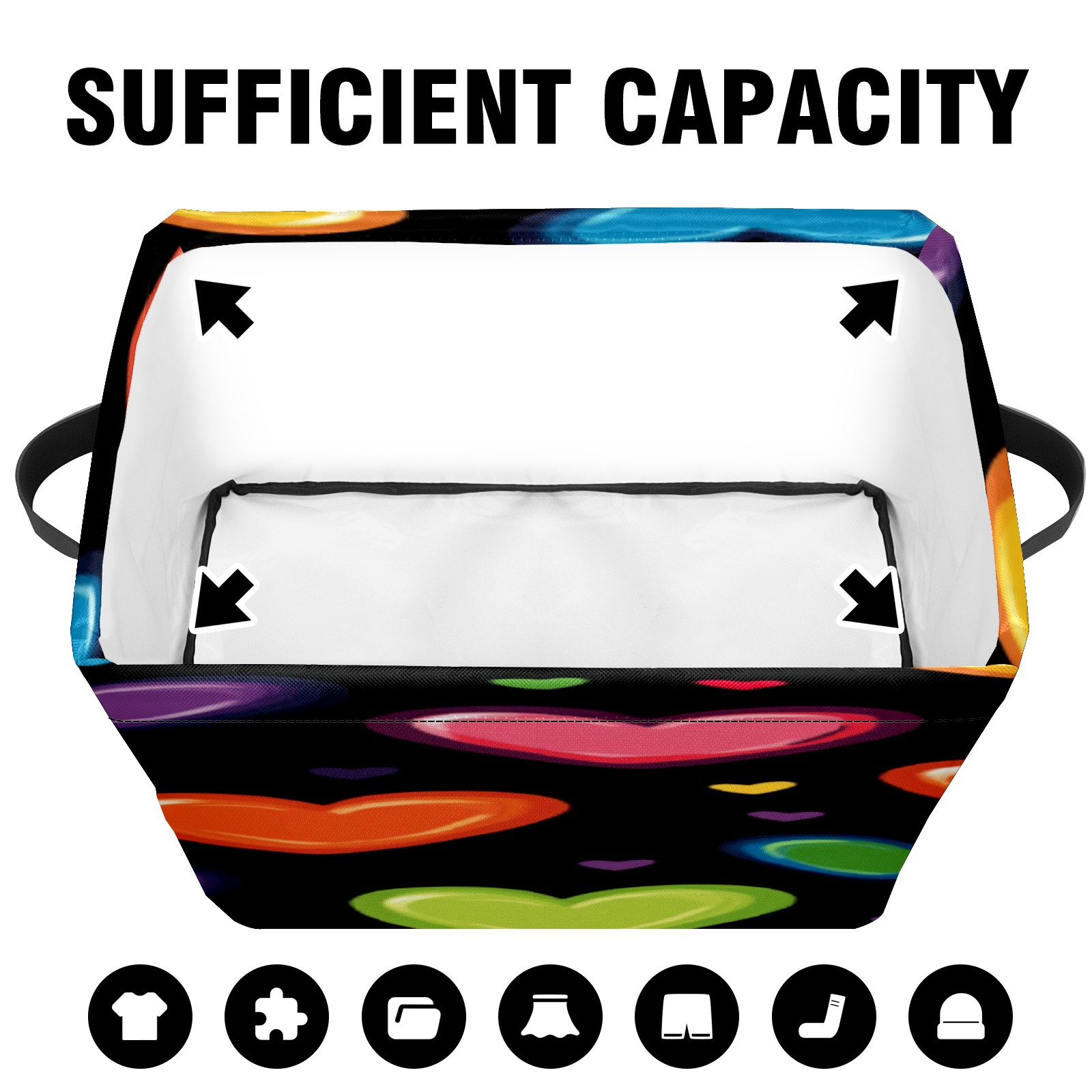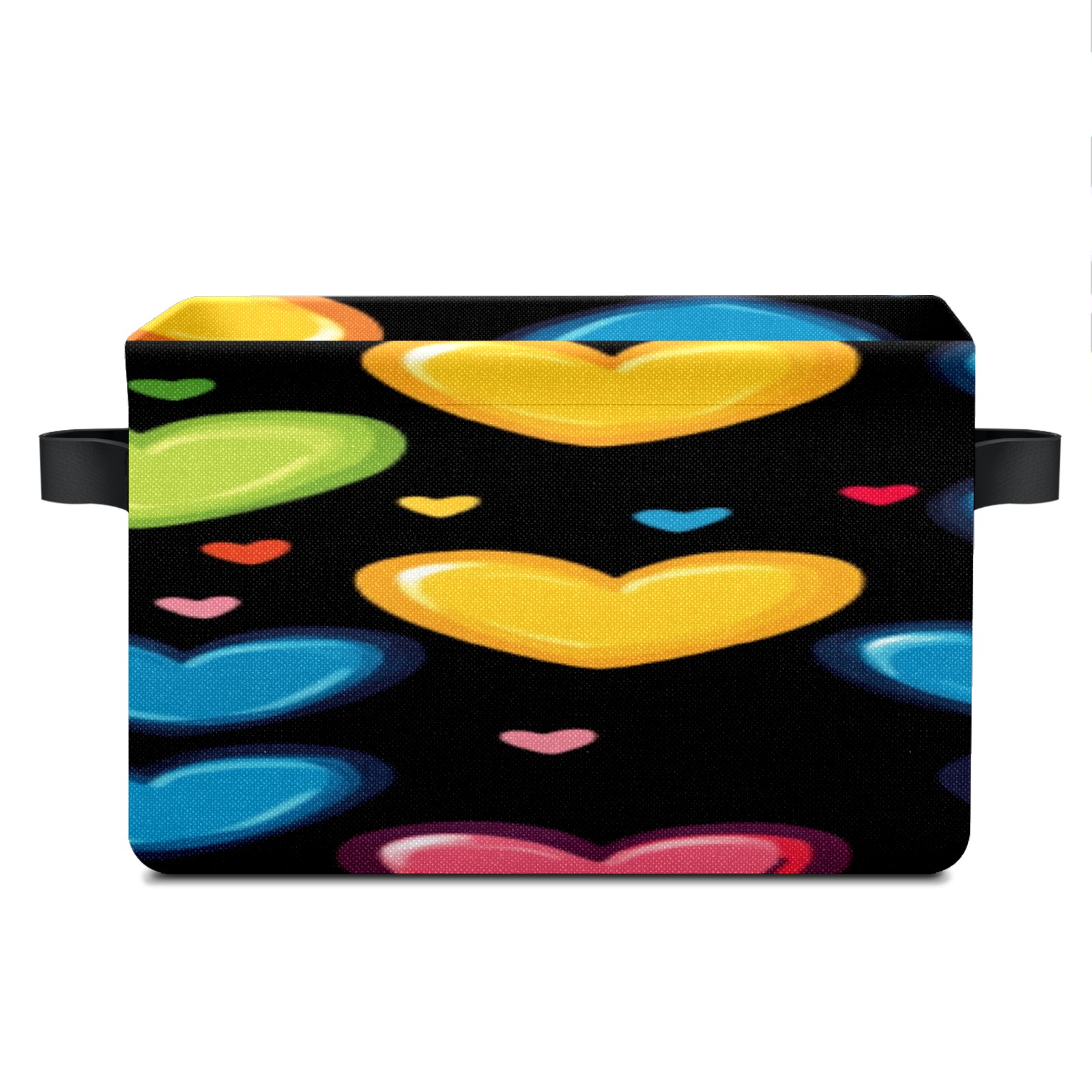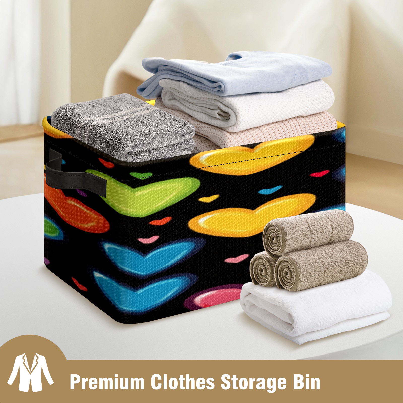 Foldable and Stackable Fabric Storage Basket for Home Organization with Handles, Decorative Closet Bins for Shelves, Laundry, and Toy Storage( Hearts In Rainbow Colors)