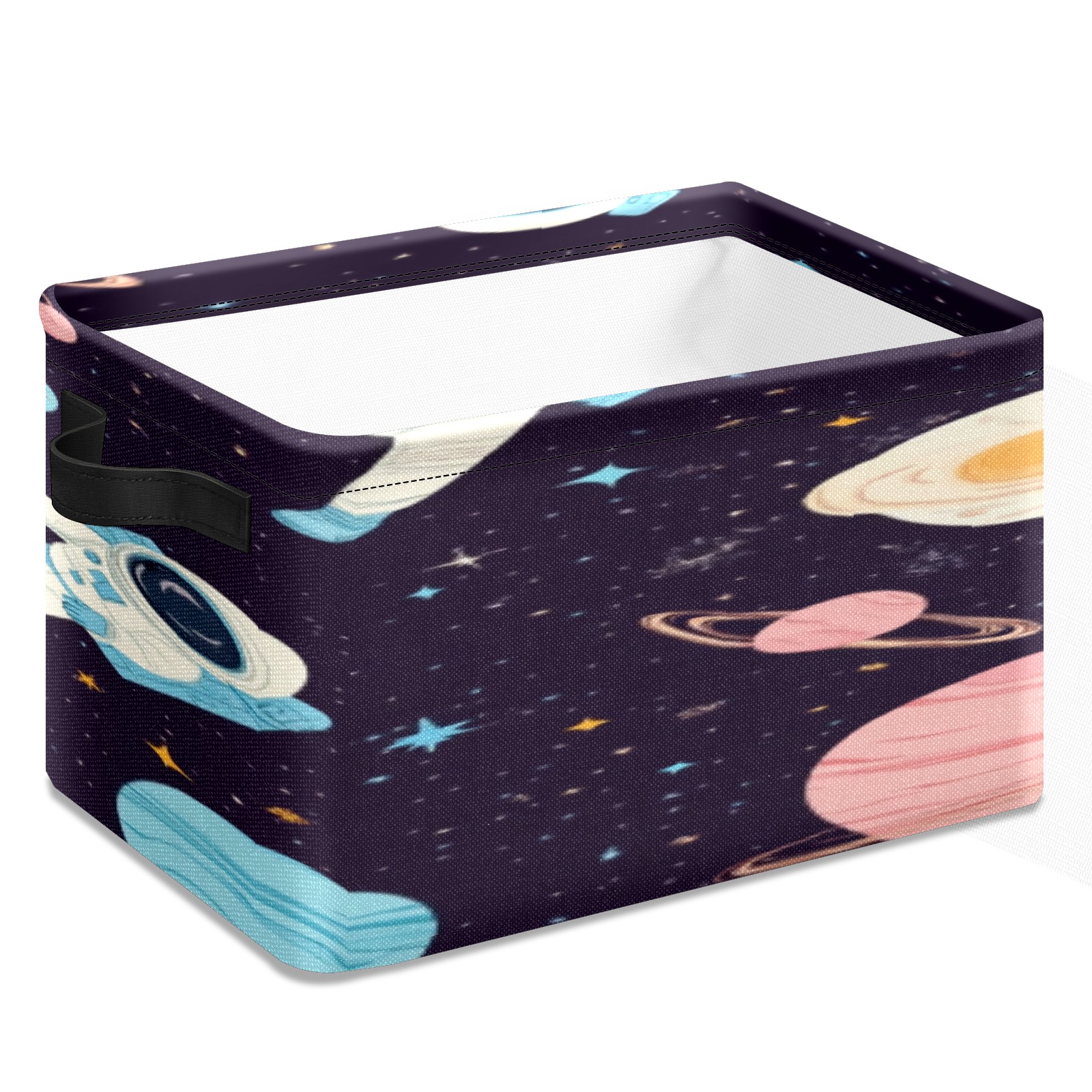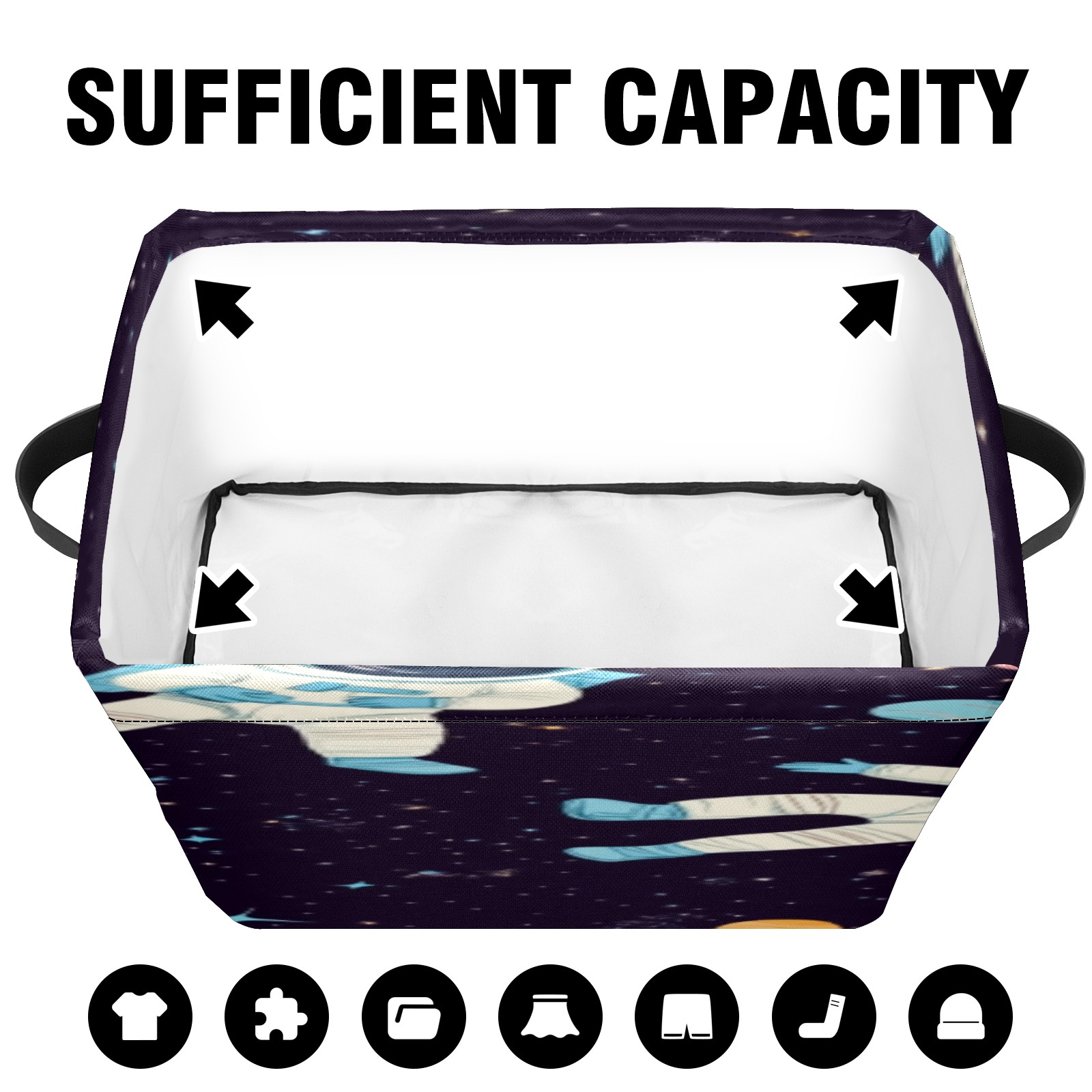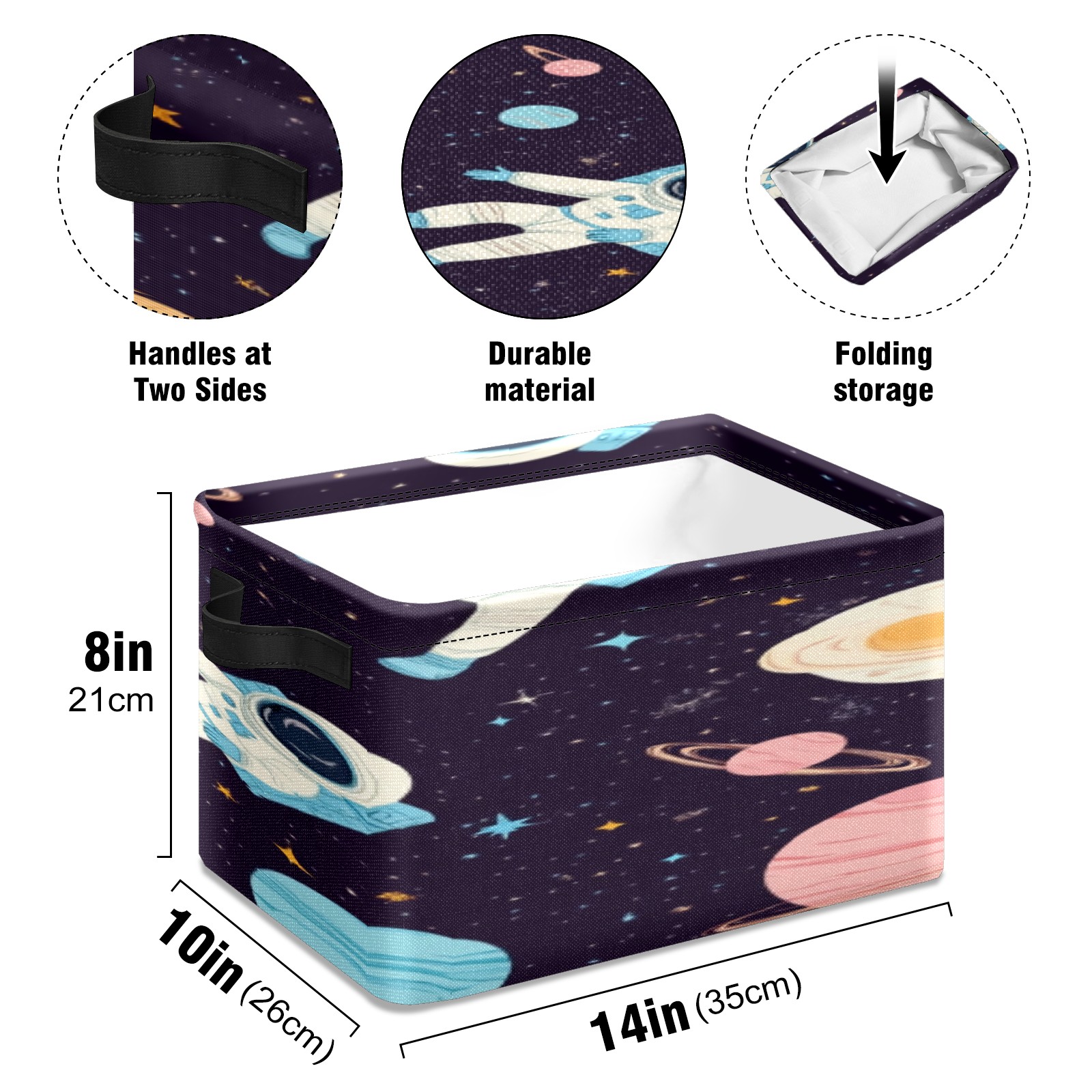 Foldable and Stackable Fabric Storage Basket for Home Organization with Handles, Decorative Closet Bins for Shelves, Laundry, and Toy Storage( Astronauts Floating)