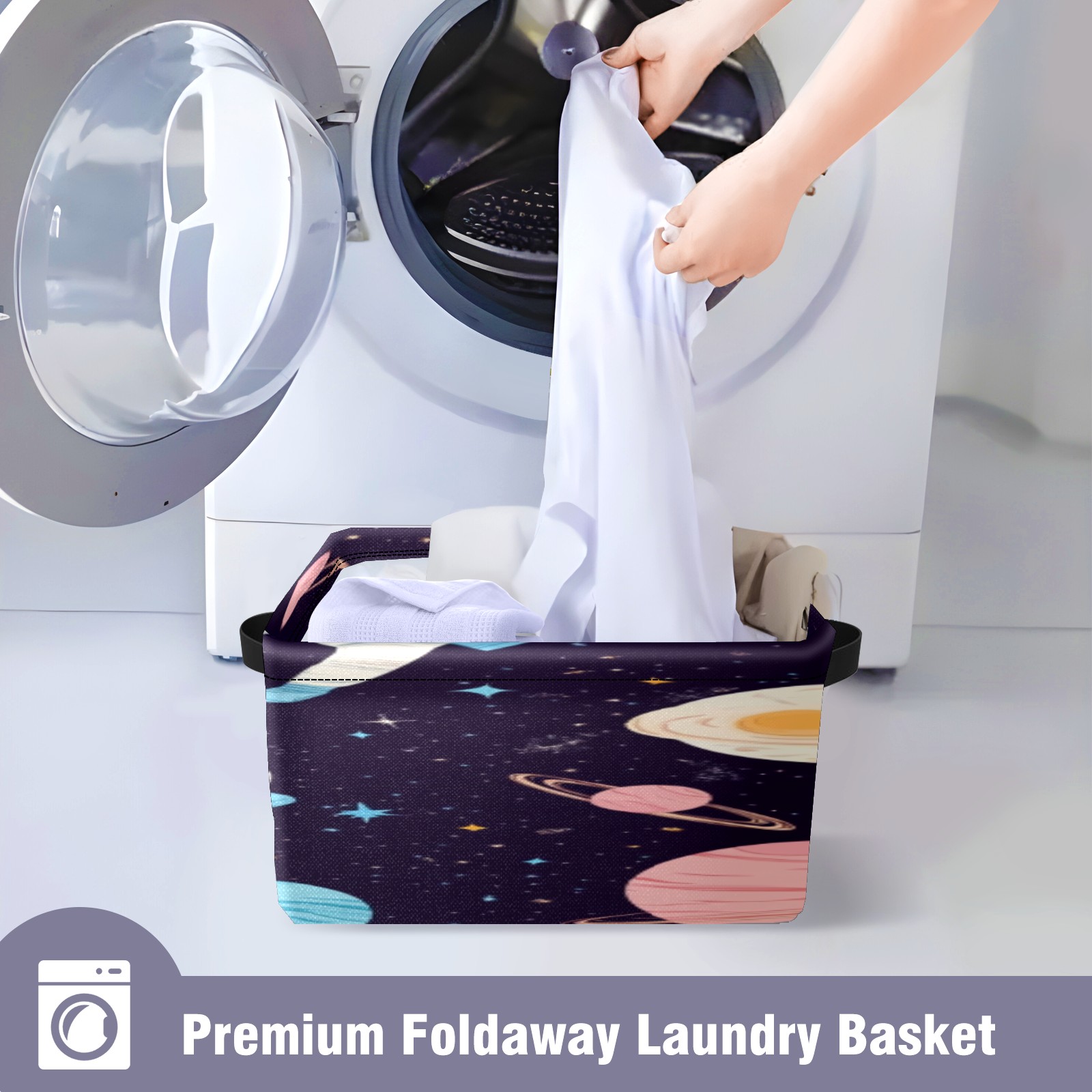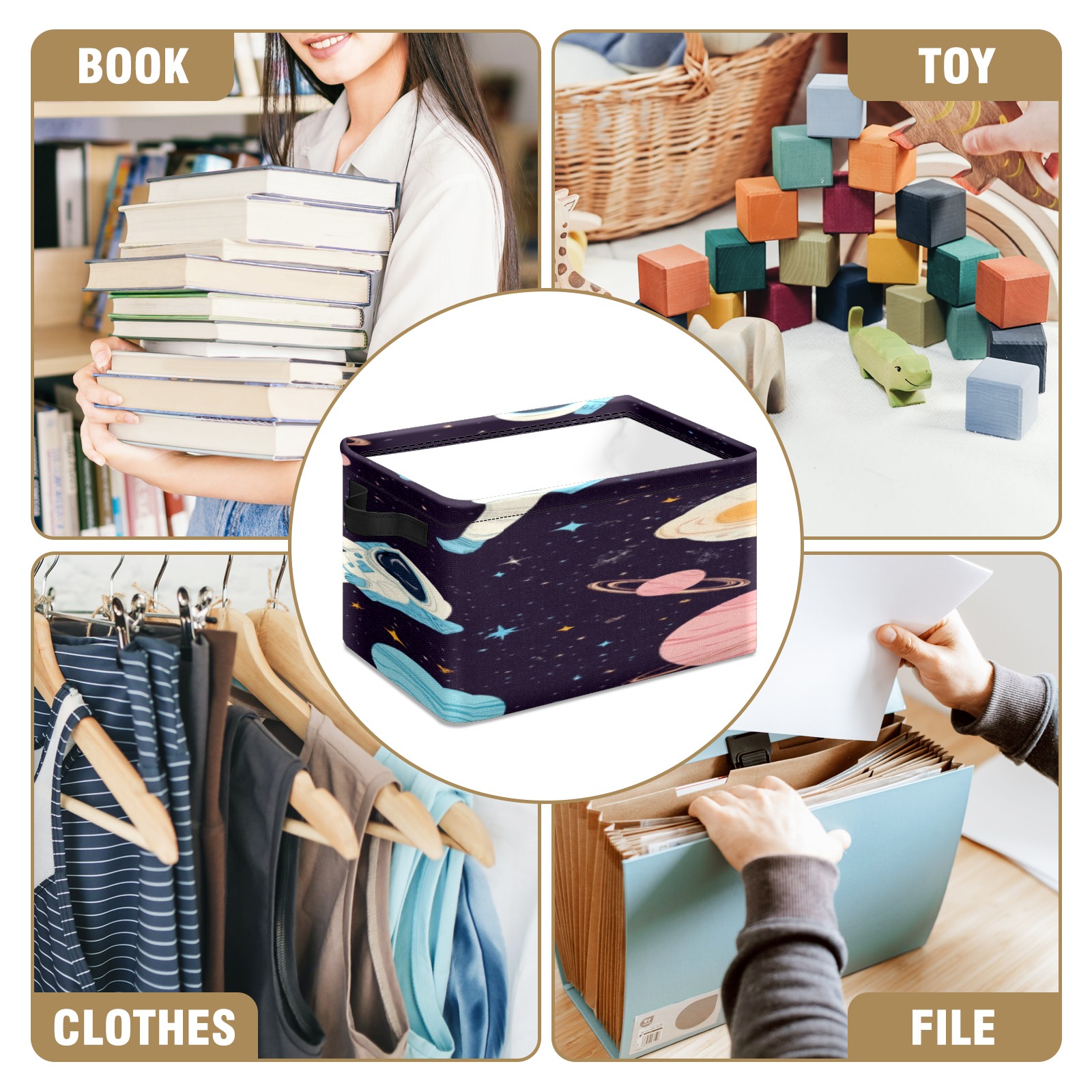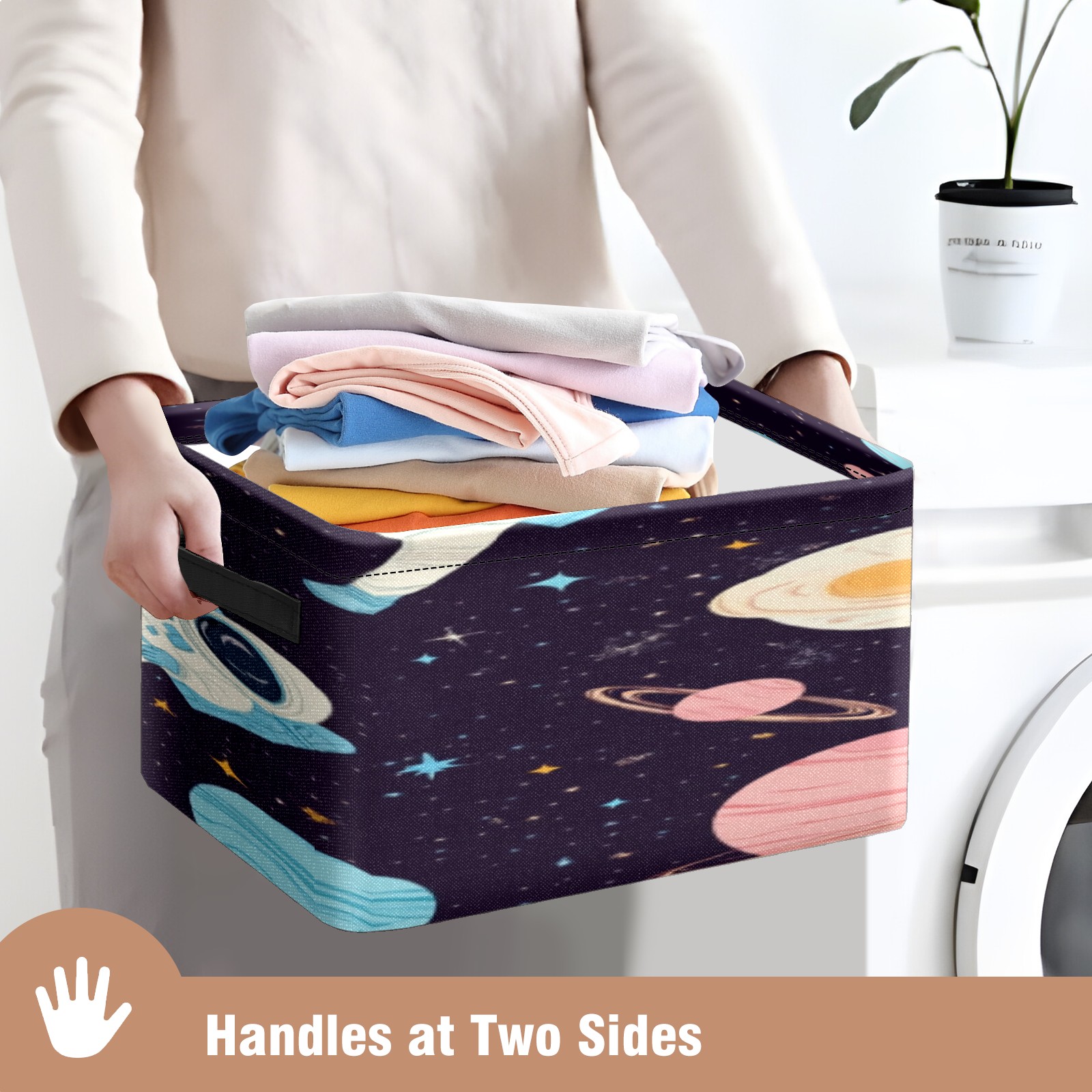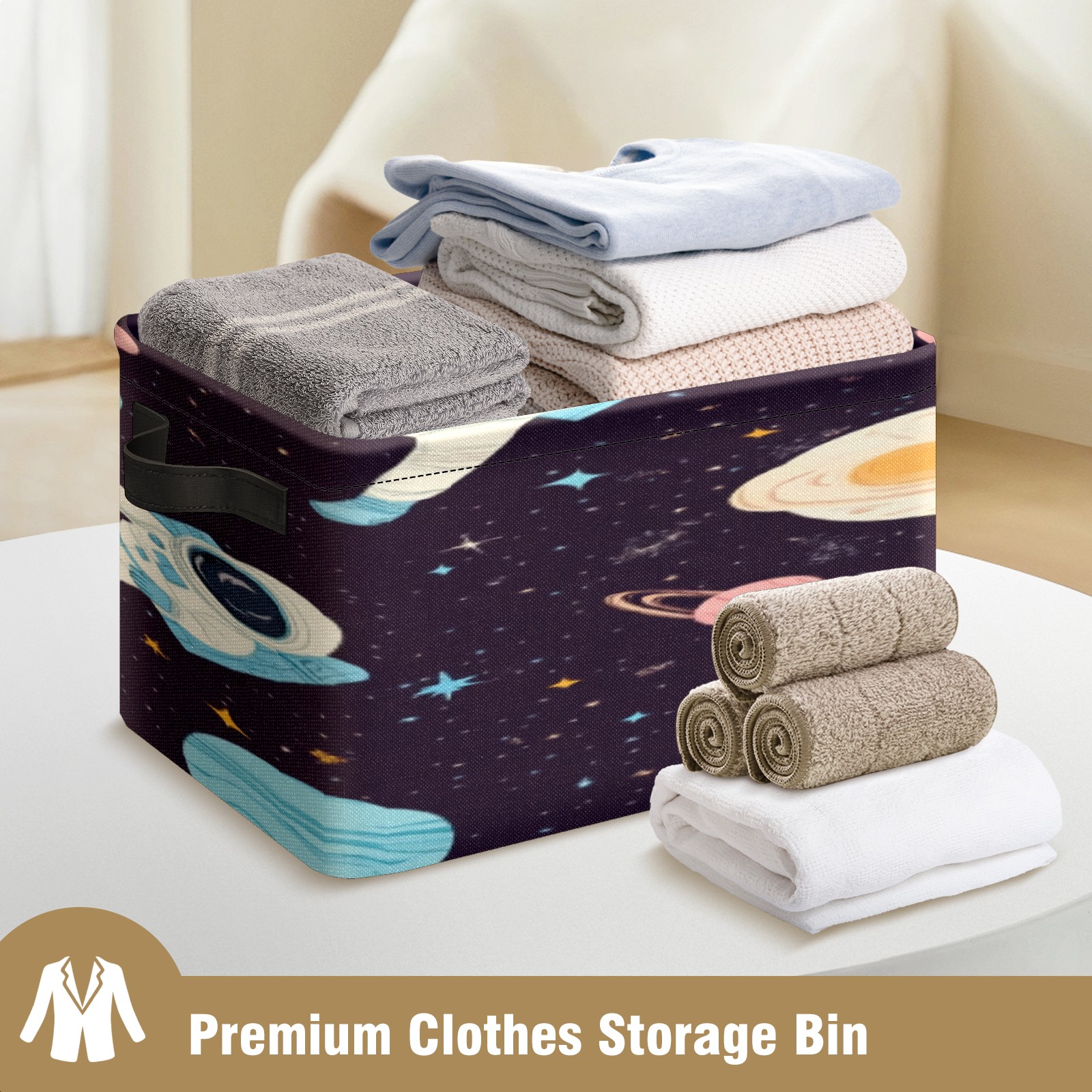 Foldable and Stackable Fabric Storage Basket for Home Organization with Handles, Decorative Closet Bins for Shelves, Laundry, and Toy Storage( Astronauts Floating)