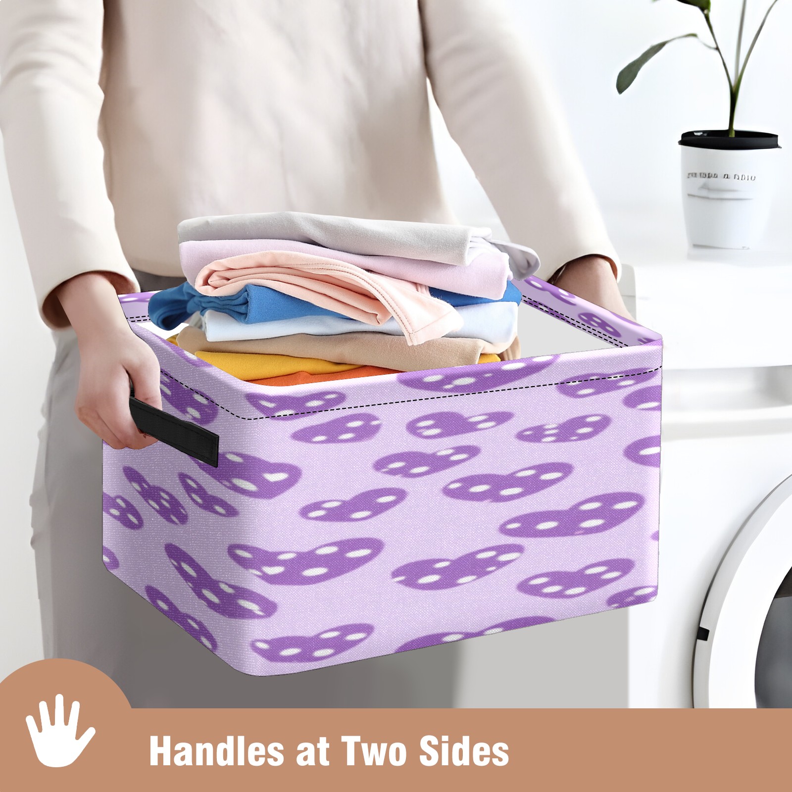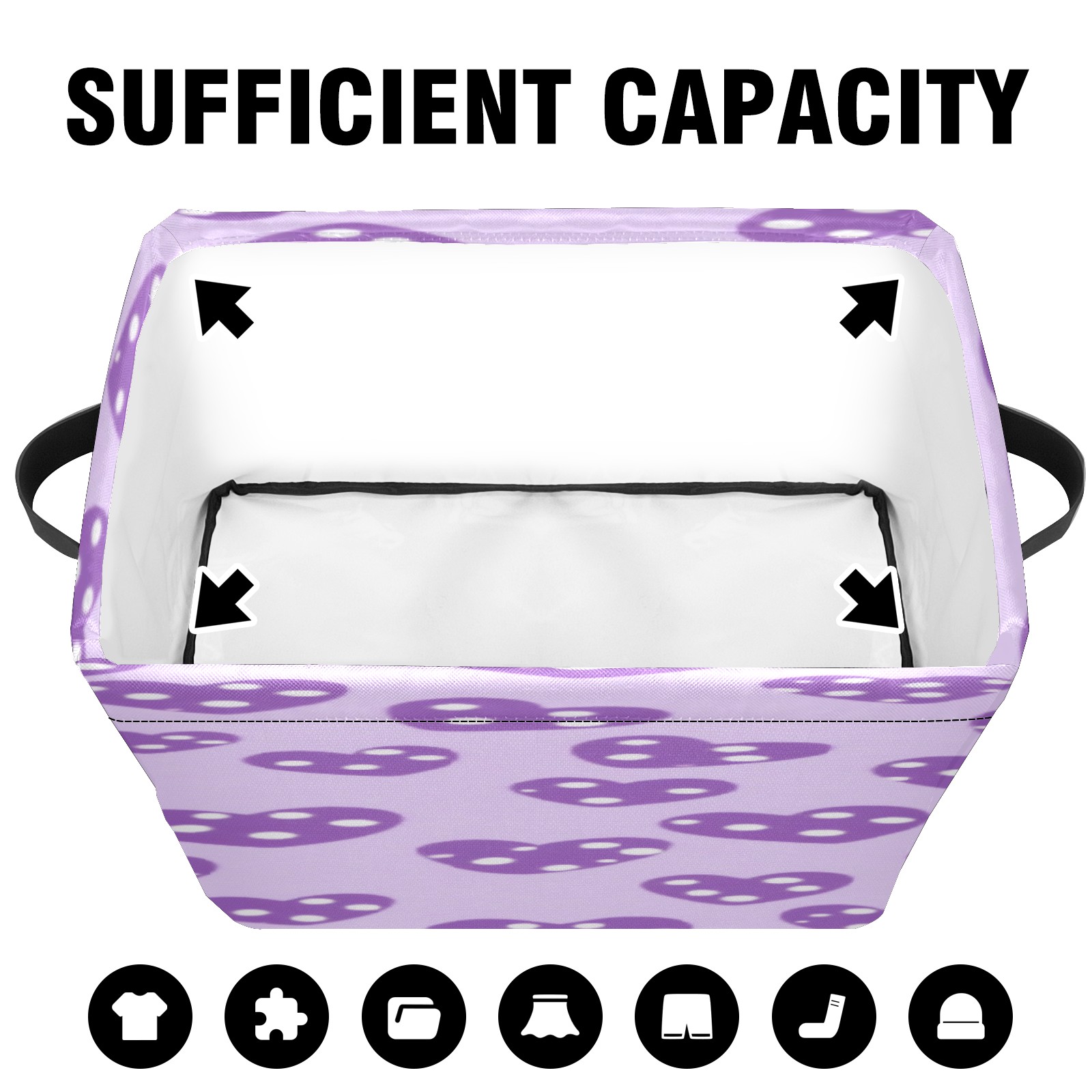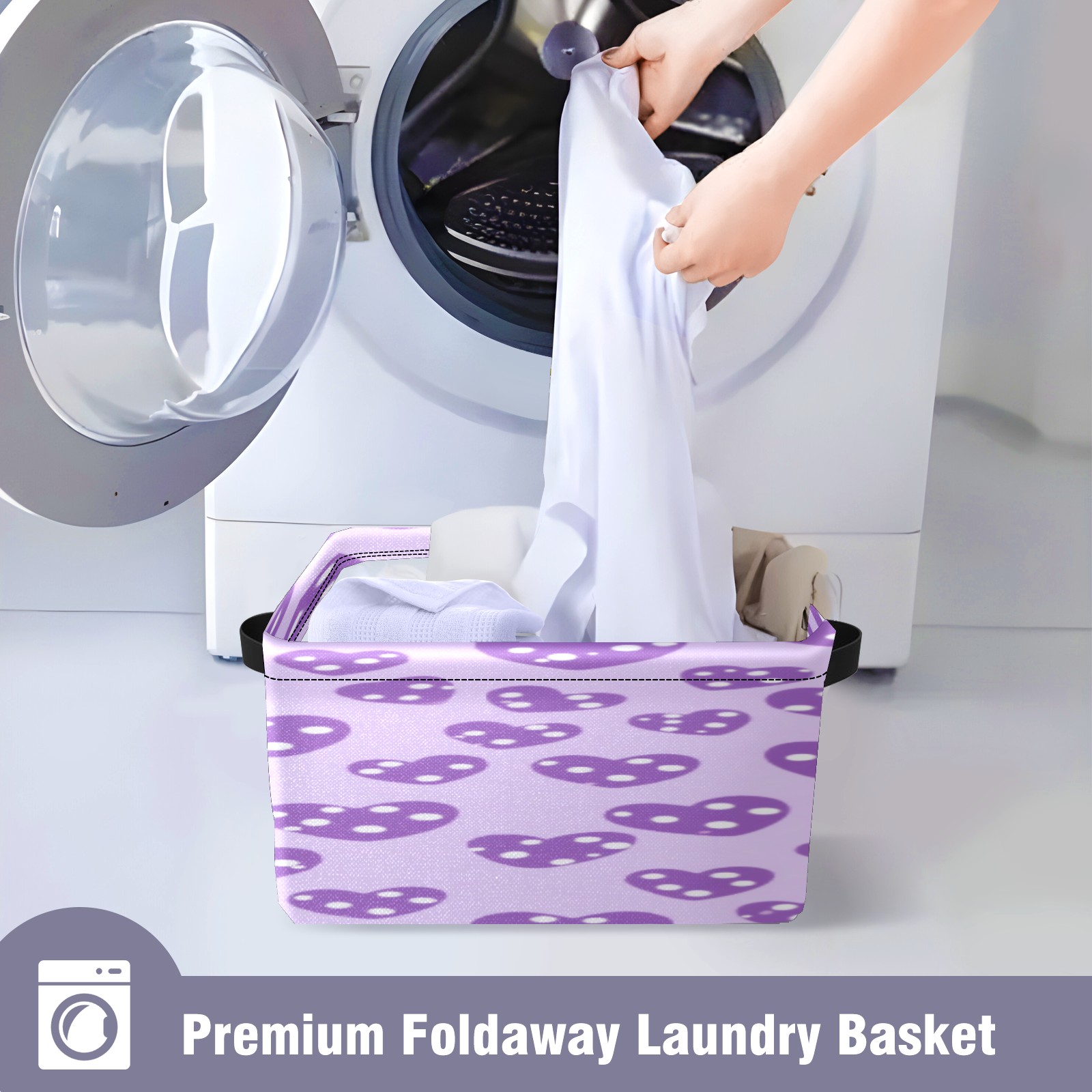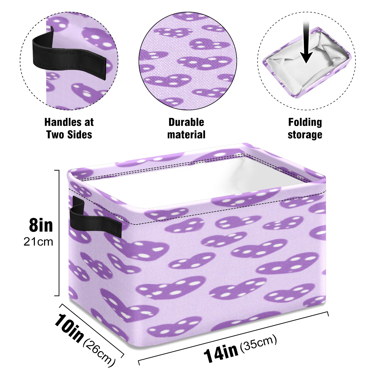 Foldable and Stackable Fabric Storage Basket for Home Organization with Handles, Decorative Closet Bins for Shelves, Laundry, and Toy Storage( Purple Hearts)