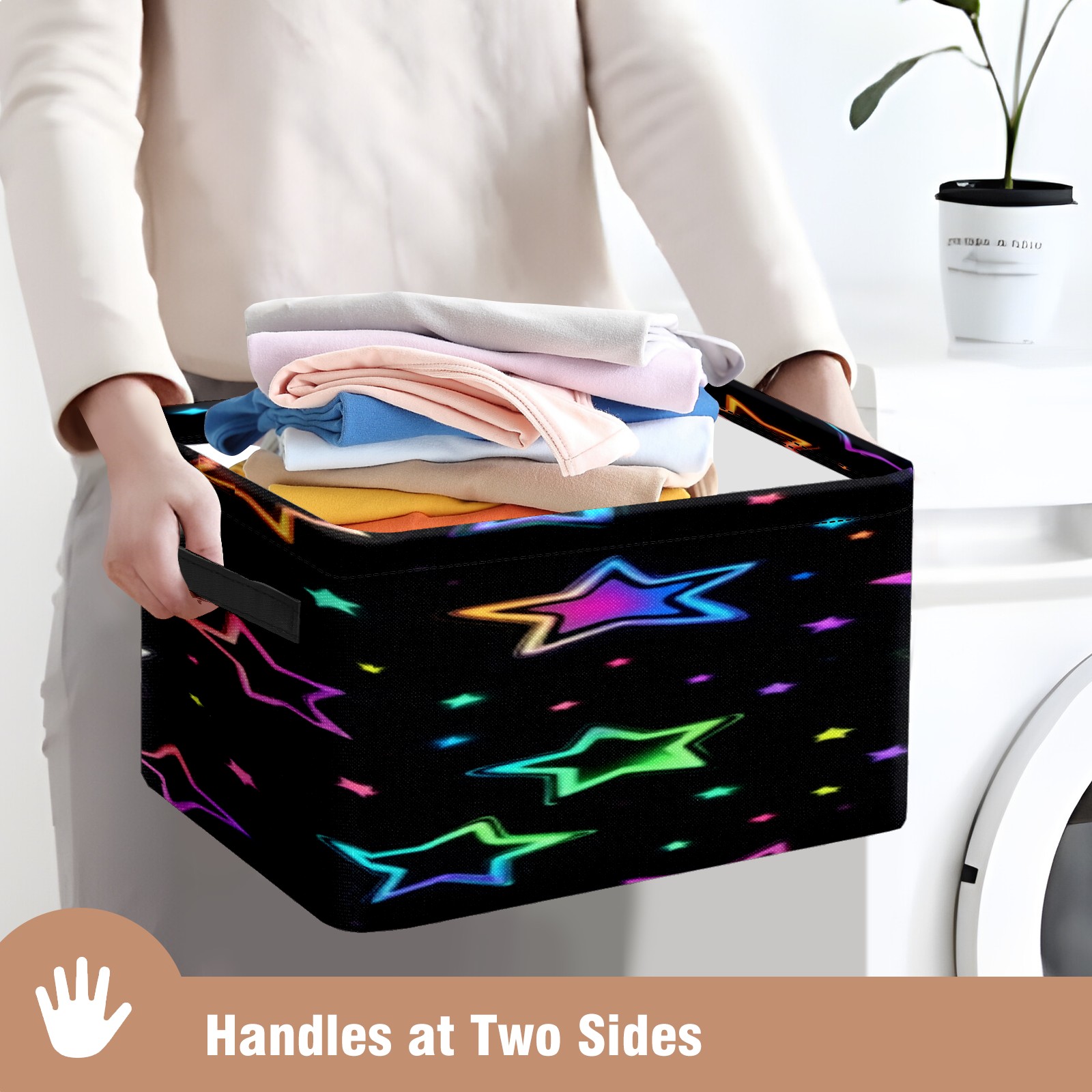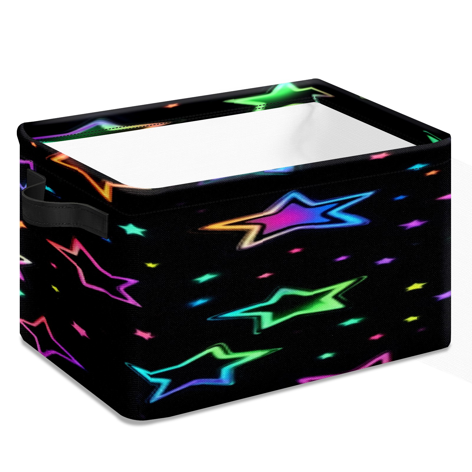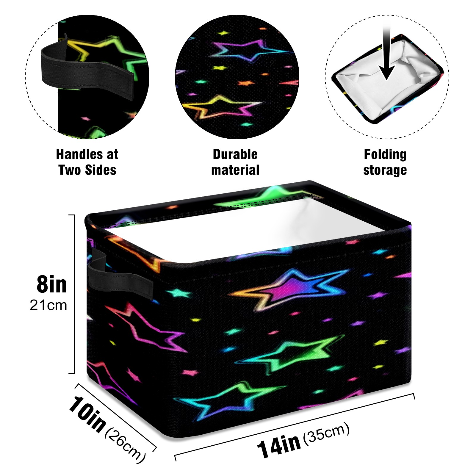 Foldable and Stackable Fabric Storage Basket for Home Organization with Handles, Decorative Closet Bins for Shelves, Laundry, and Toy Storage( Neon Stars)