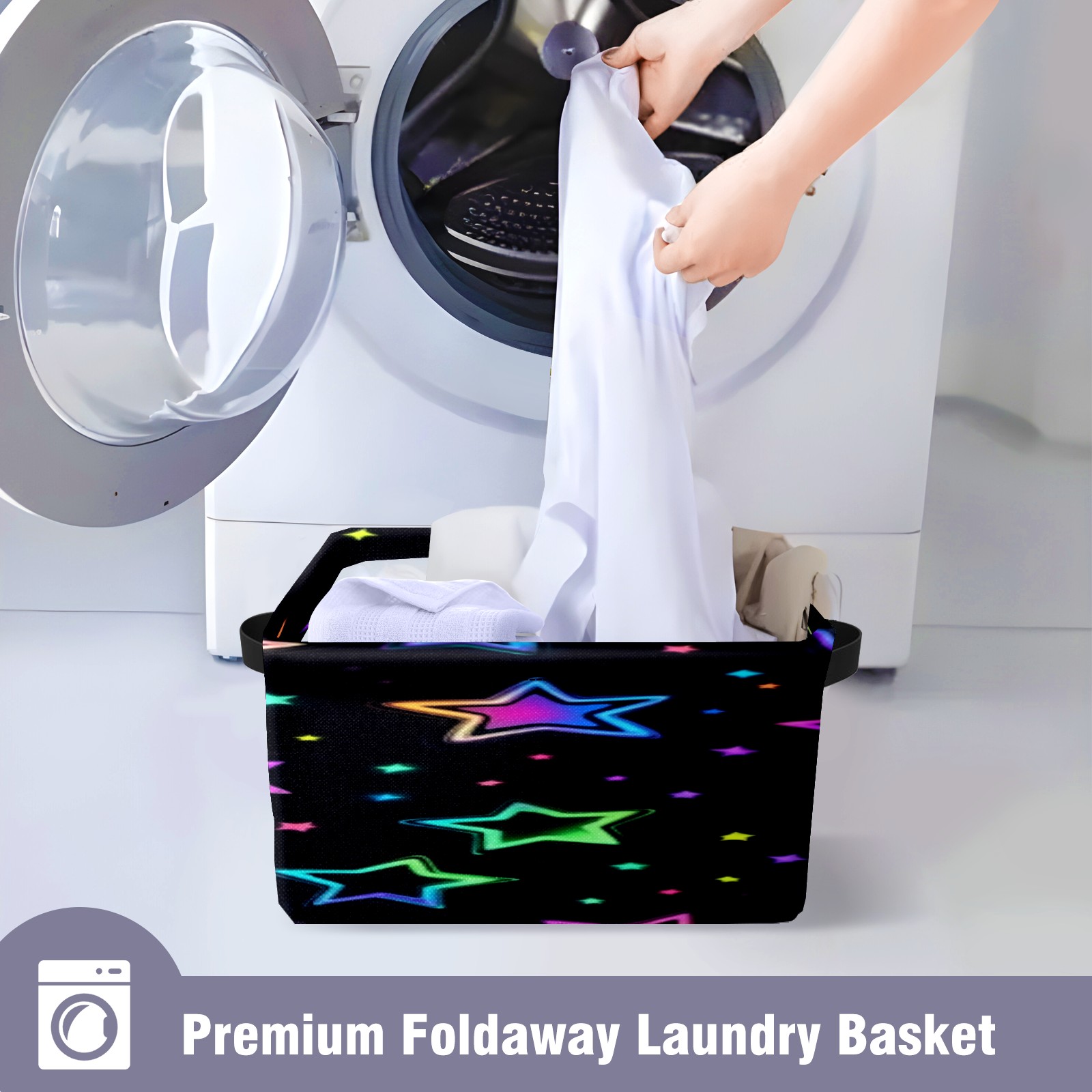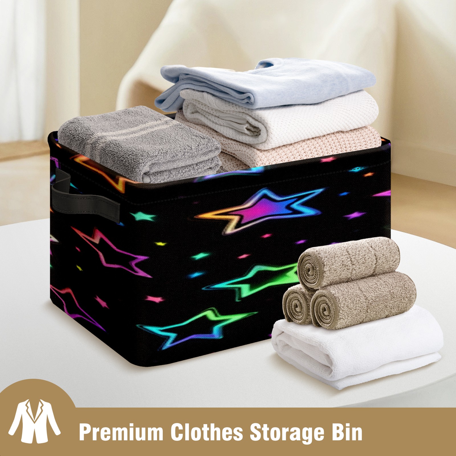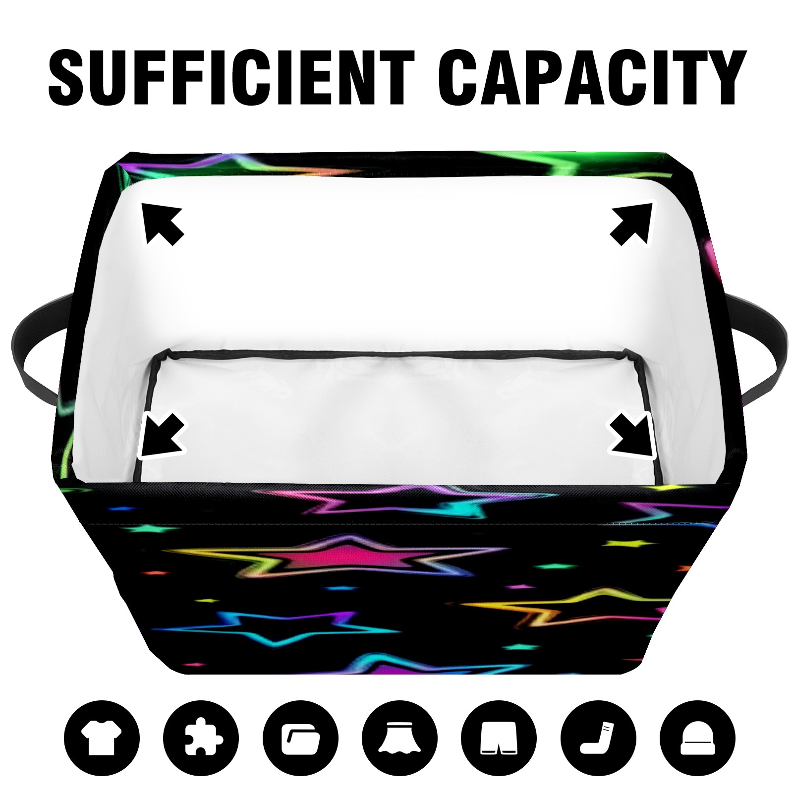 Foldable and Stackable Fabric Storage Basket for Home Organization with Handles, Decorative Closet Bins for Shelves, Laundry, and Toy Storage( Neon Stars)