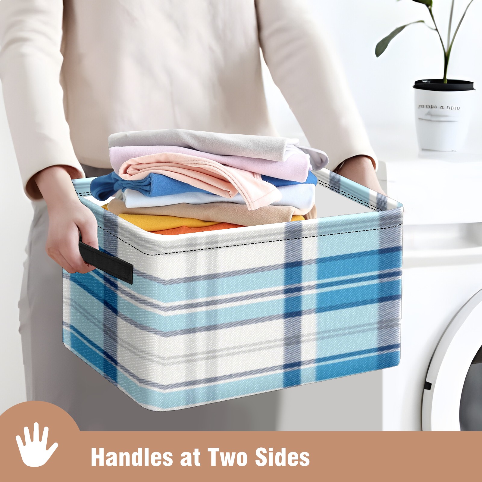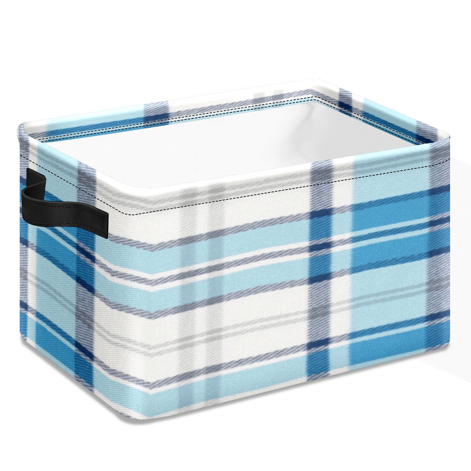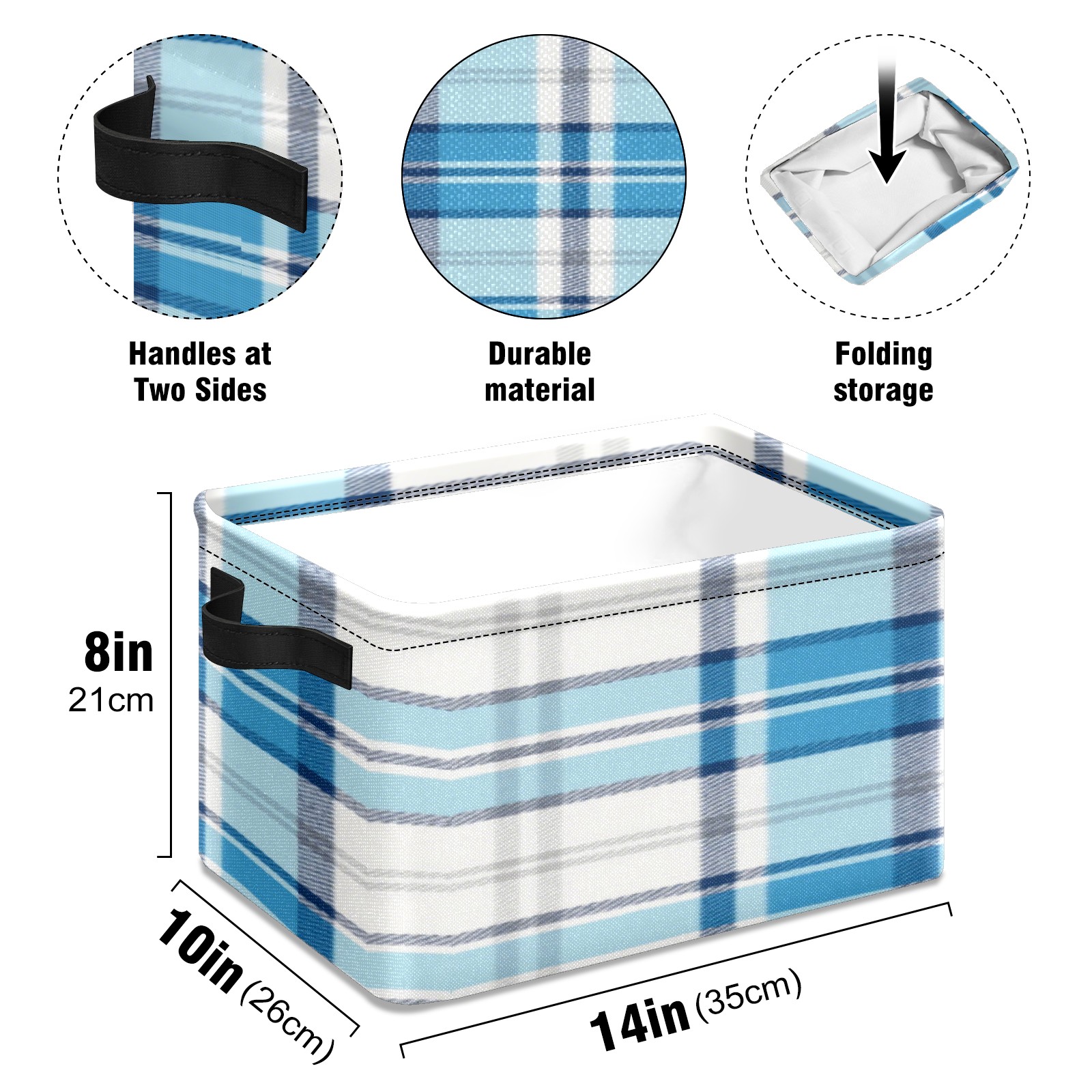 Foldable and Stackable Fabric Storage Basket for Home Organization with Handles, Decorative Closet Bins for Shelves, Laundry, and Toy Storage( Blue And White Checkered)