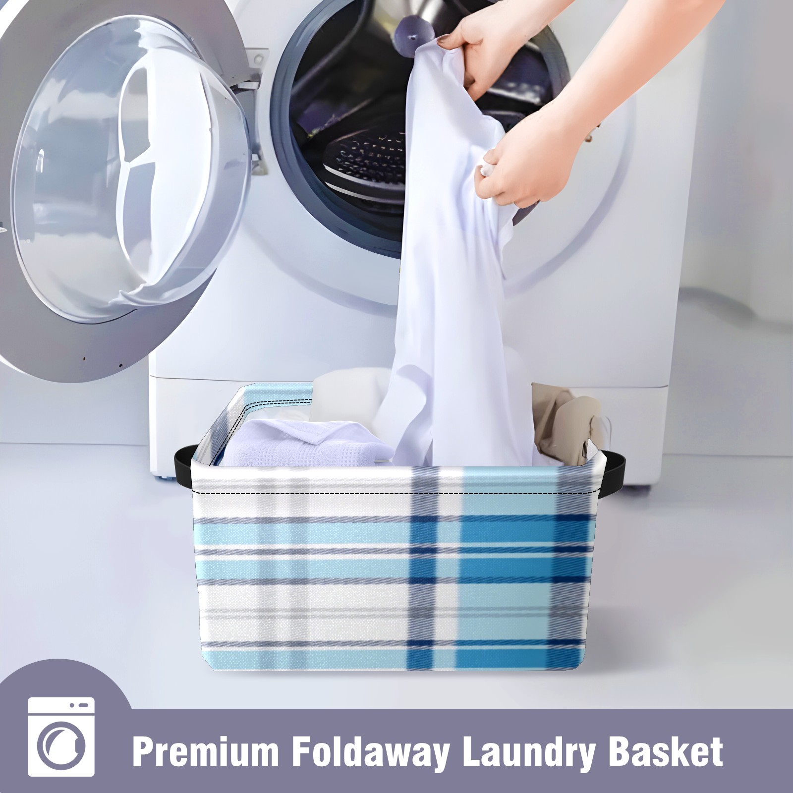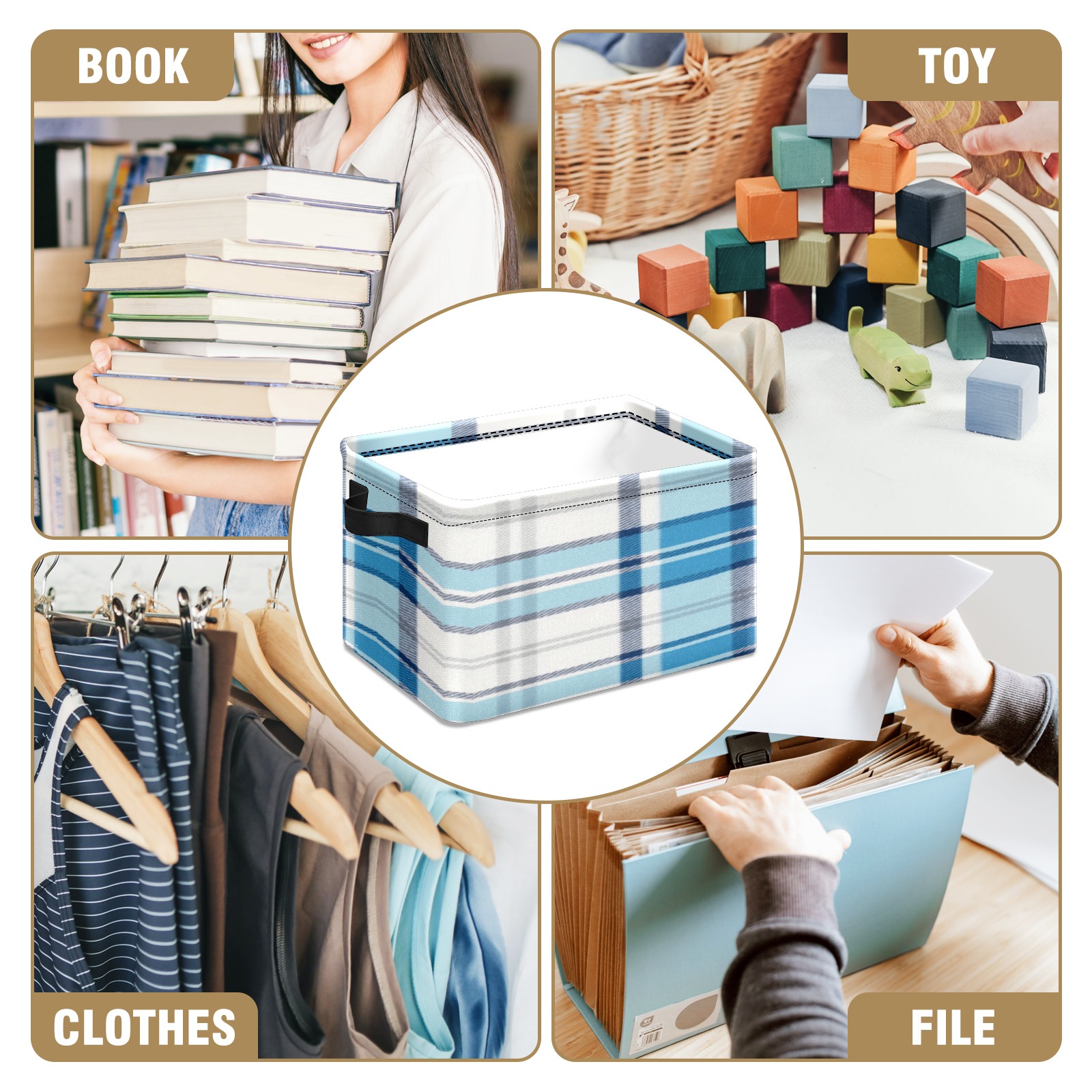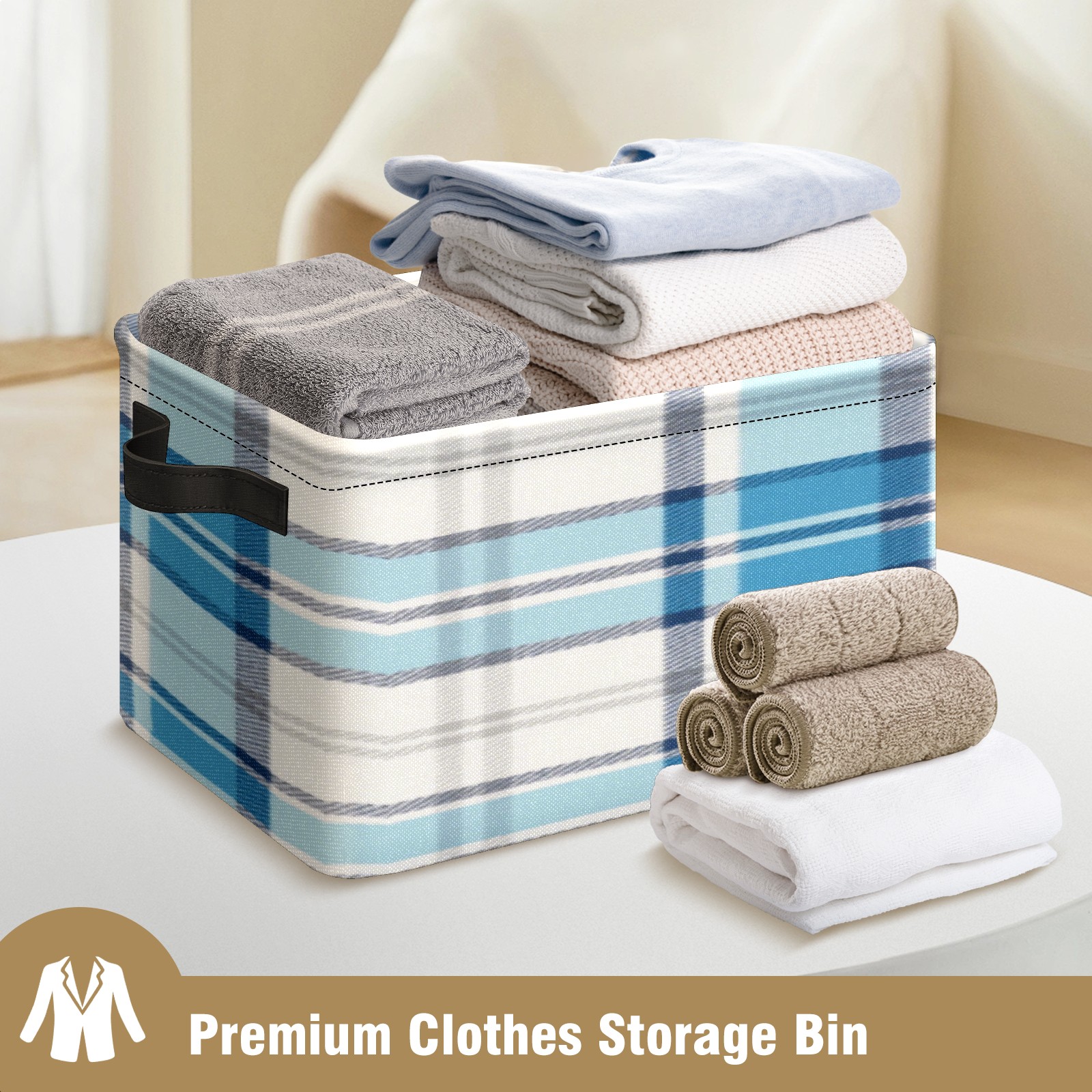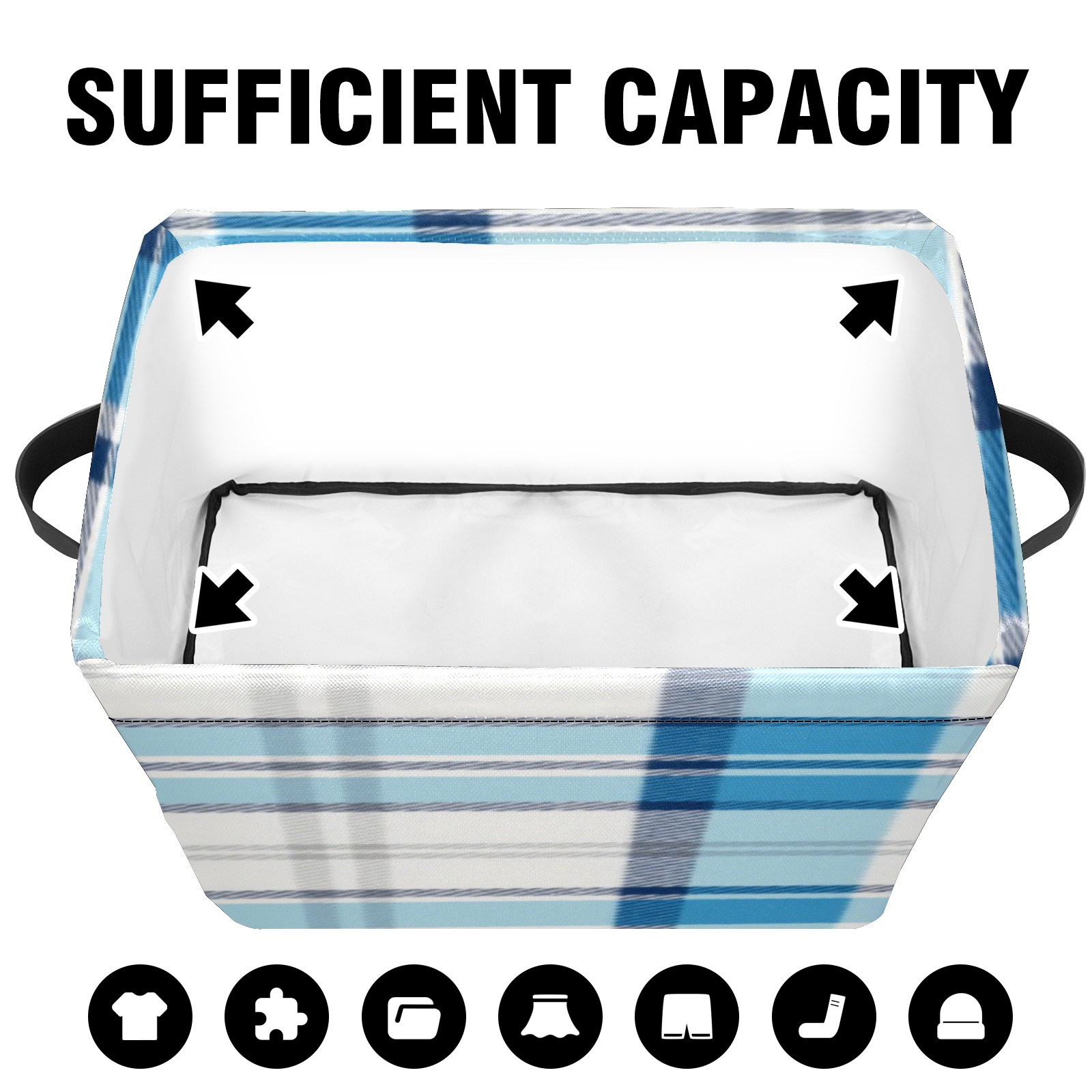 Foldable and Stackable Fabric Storage Basket for Home Organization with Handles, Decorative Closet Bins for Shelves, Laundry, and Toy Storage( Blue And White Checkered)