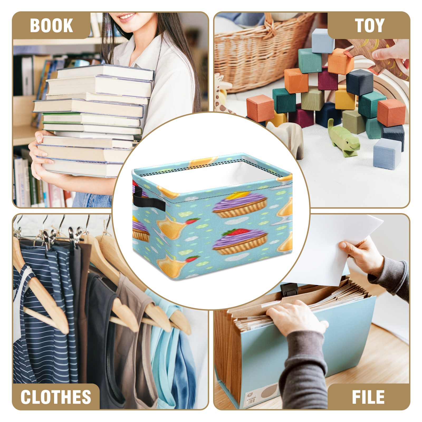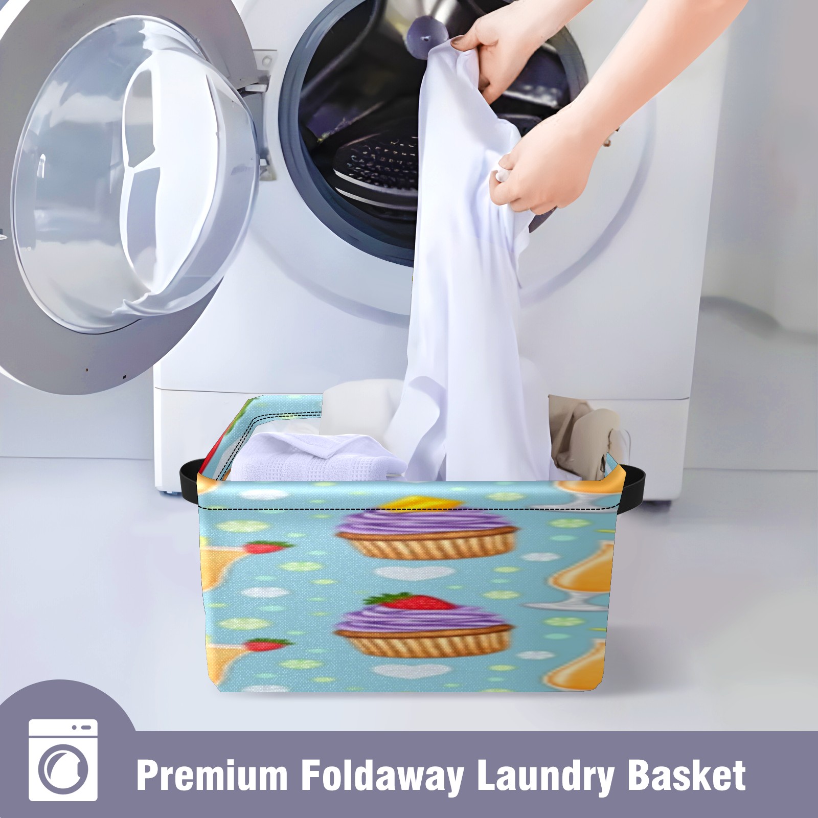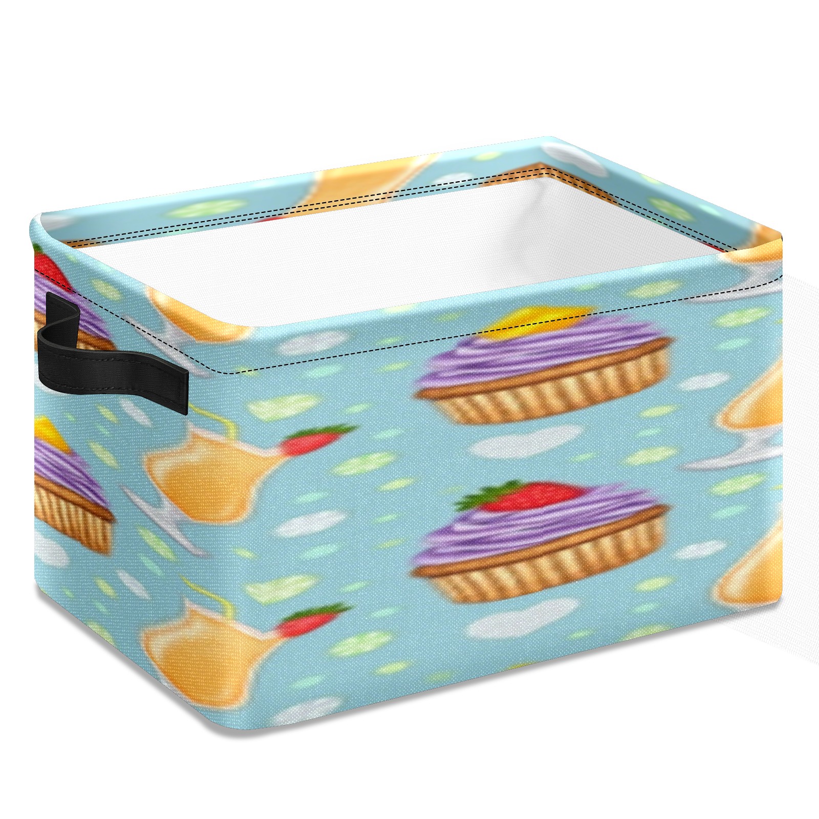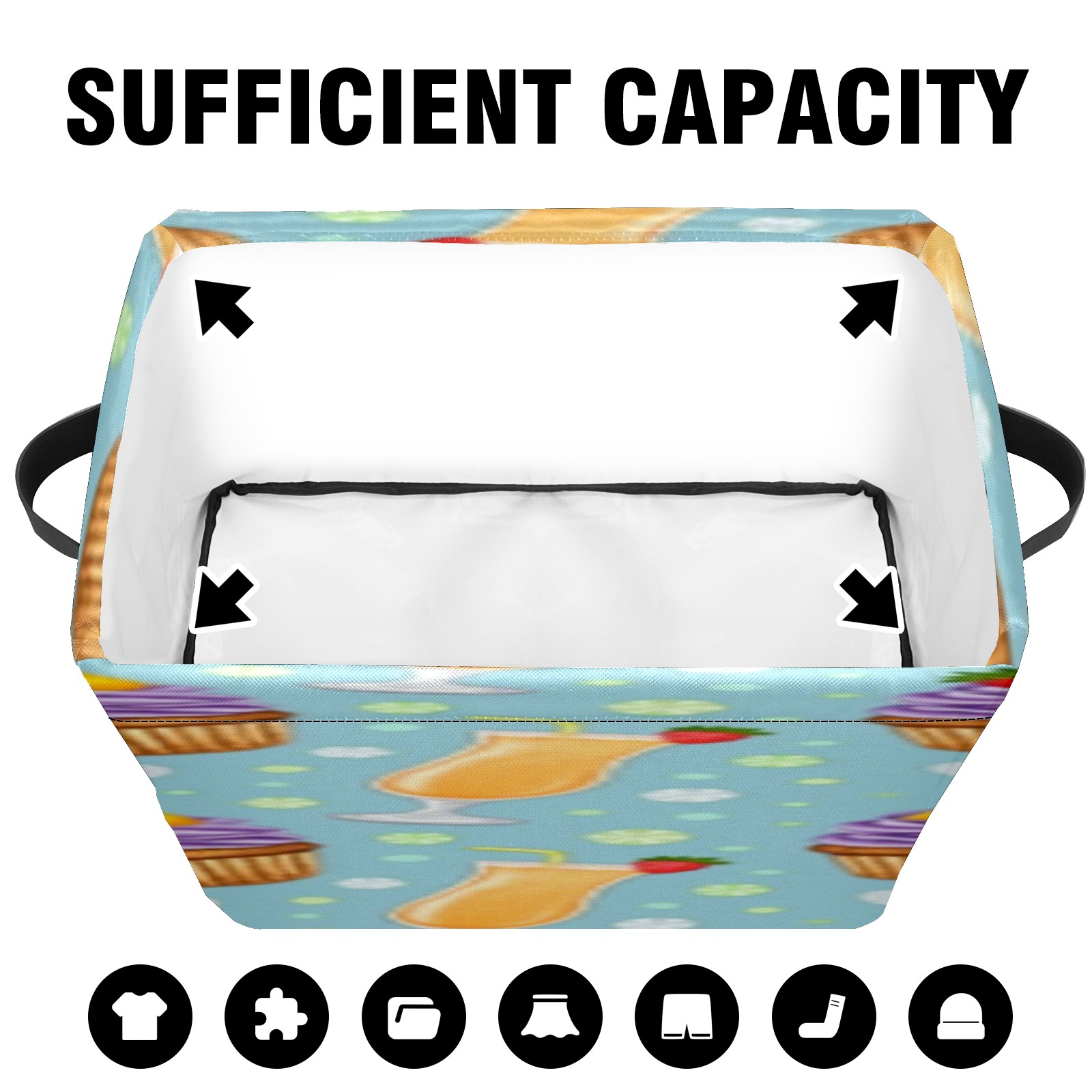 Foldable and Stackable Fabric Storage Basket for Home Organization with Handles, Decorative Closet Bins for Shelves, Laundry, and Toy Storage( Juice And Cupcake)