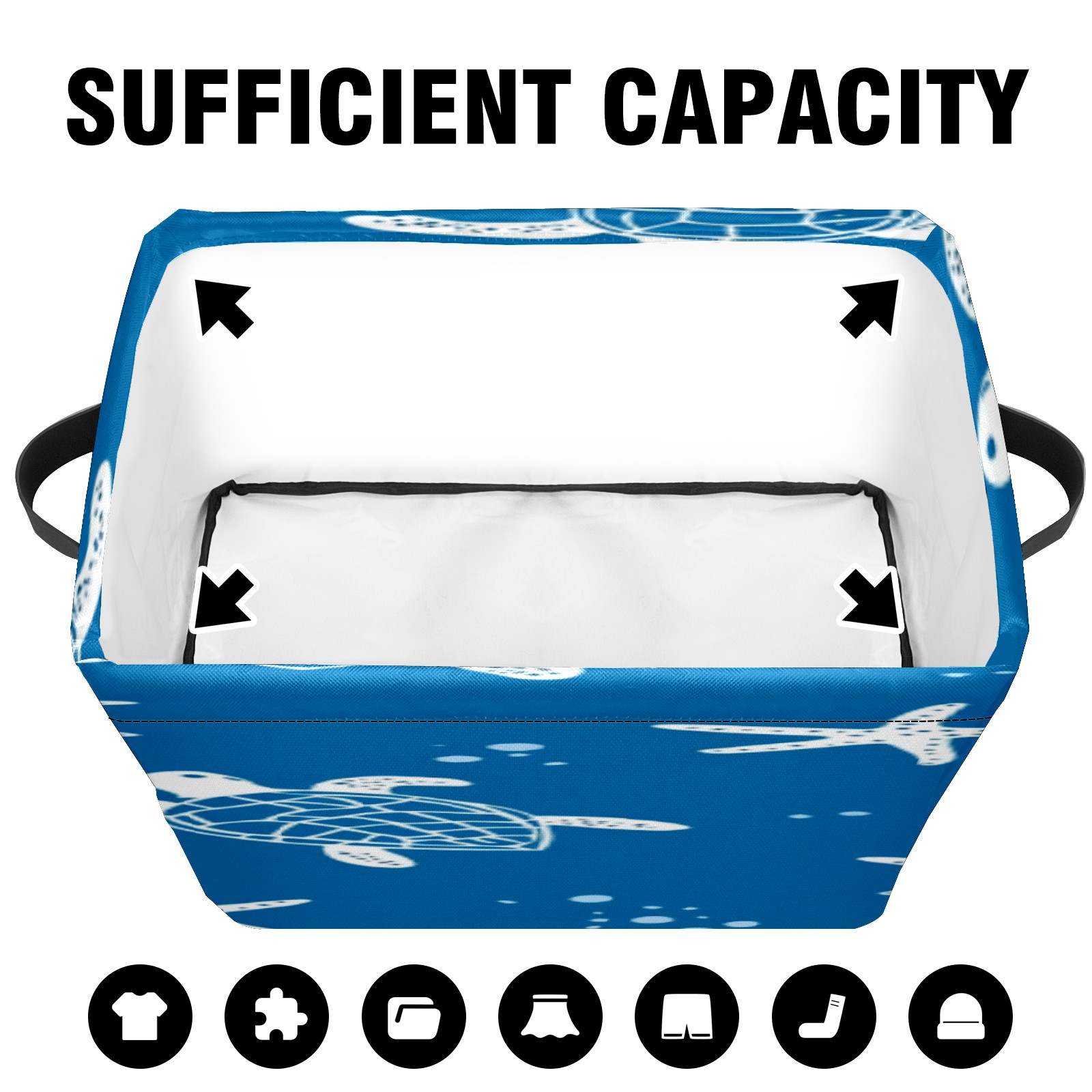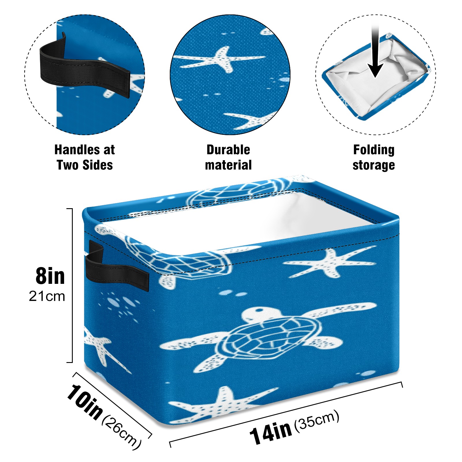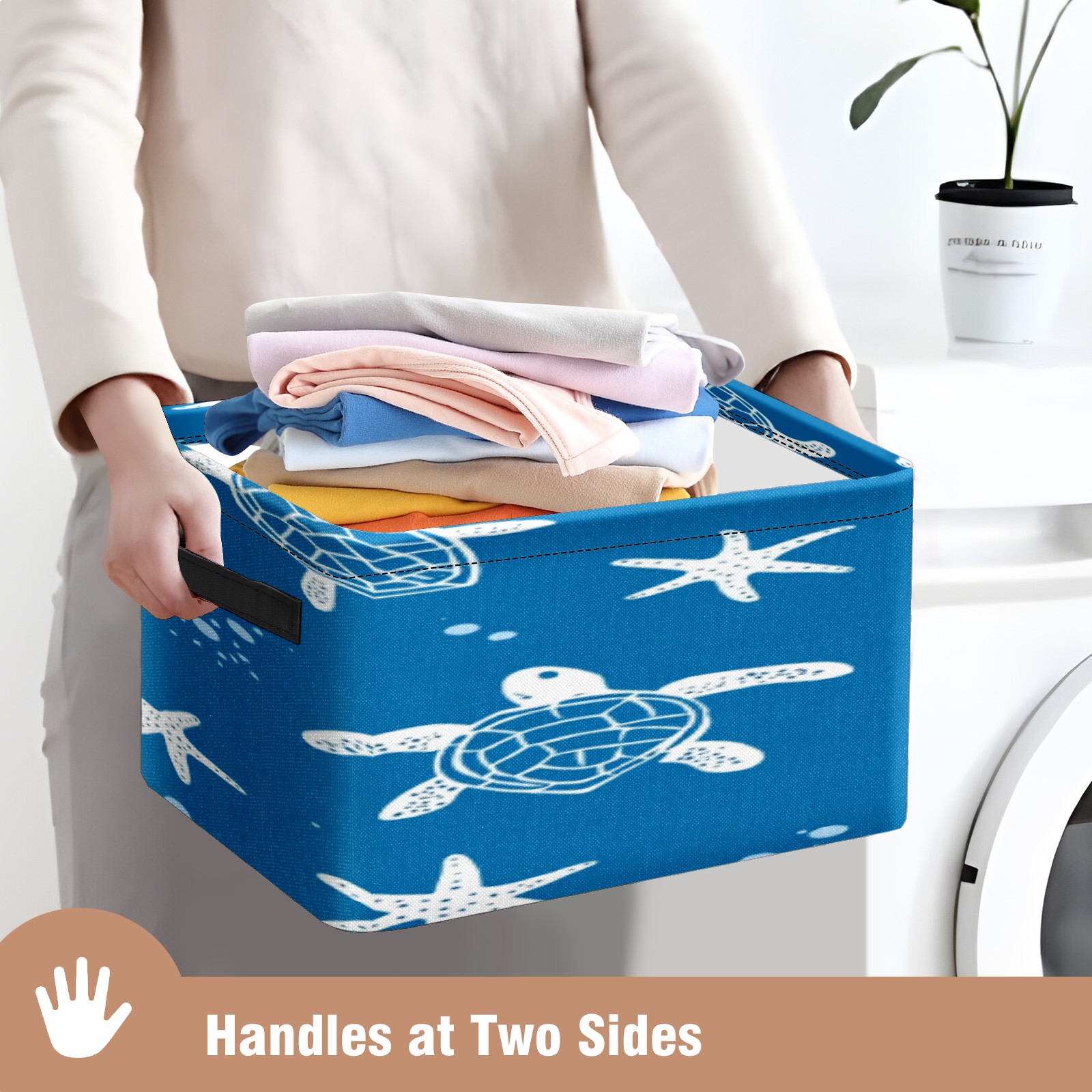 Foldable and Stackable Fabric Storage Basket for Home Organization with Handles, Decorative Closet Bins for Shelves, Laundry, and Toy Storage( Turtle Silhouette)