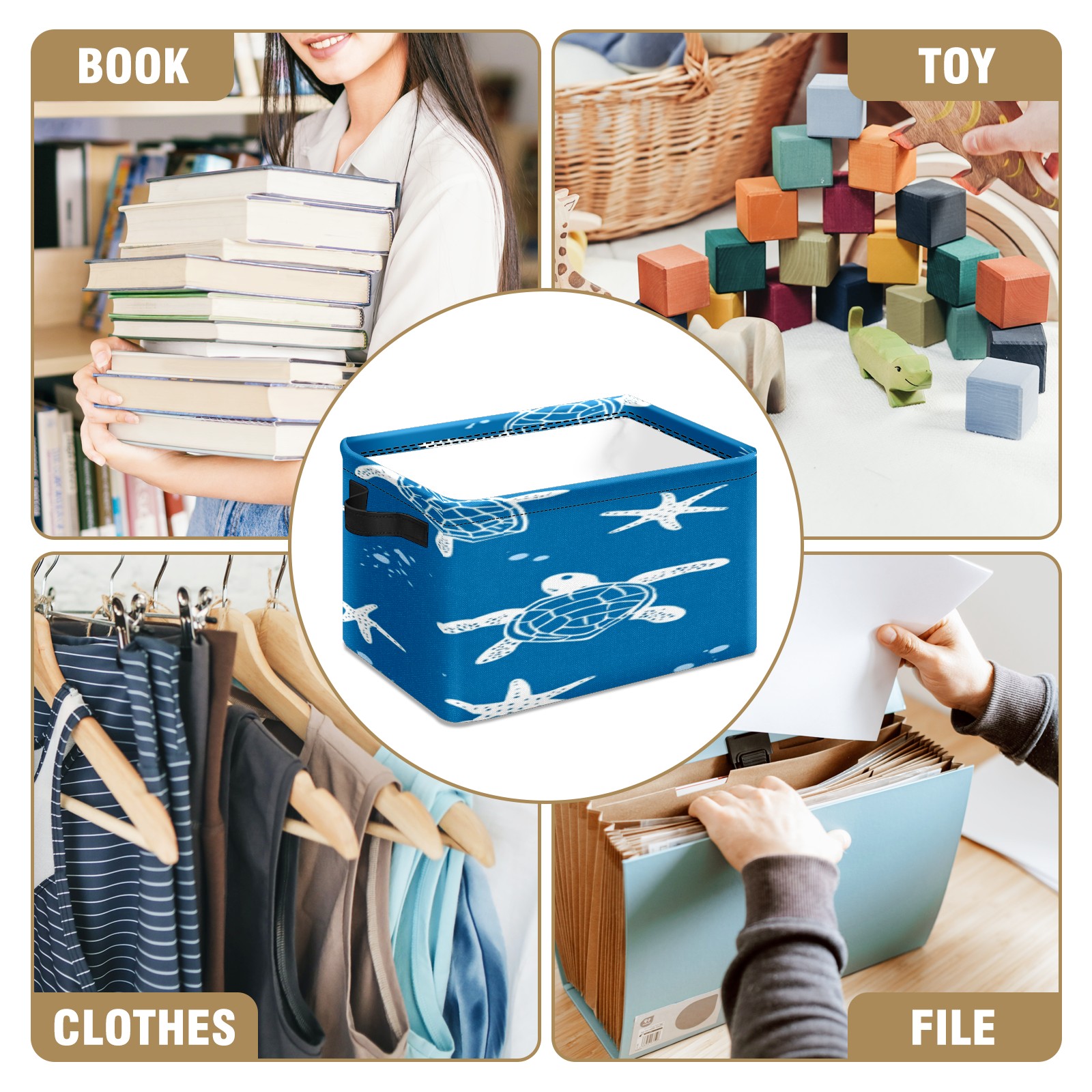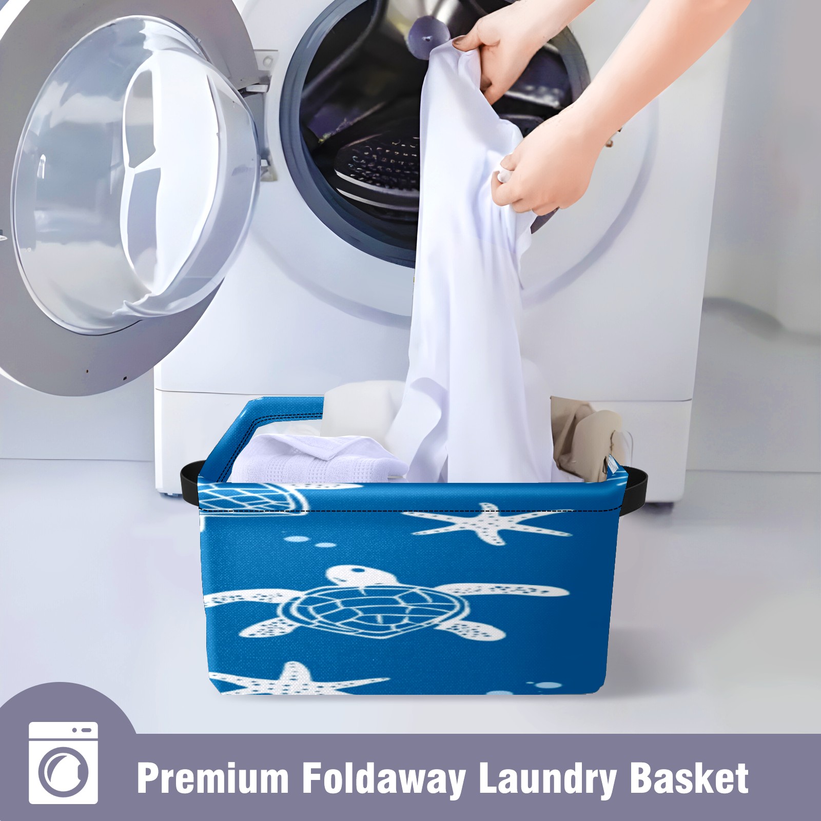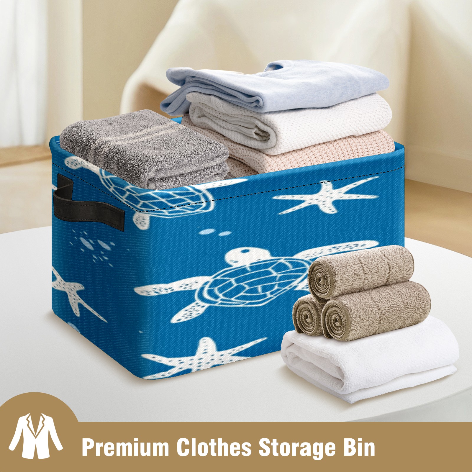 Foldable and Stackable Fabric Storage Basket for Home Organization with Handles, Decorative Closet Bins for Shelves, Laundry, and Toy Storage( Turtle Silhouette)