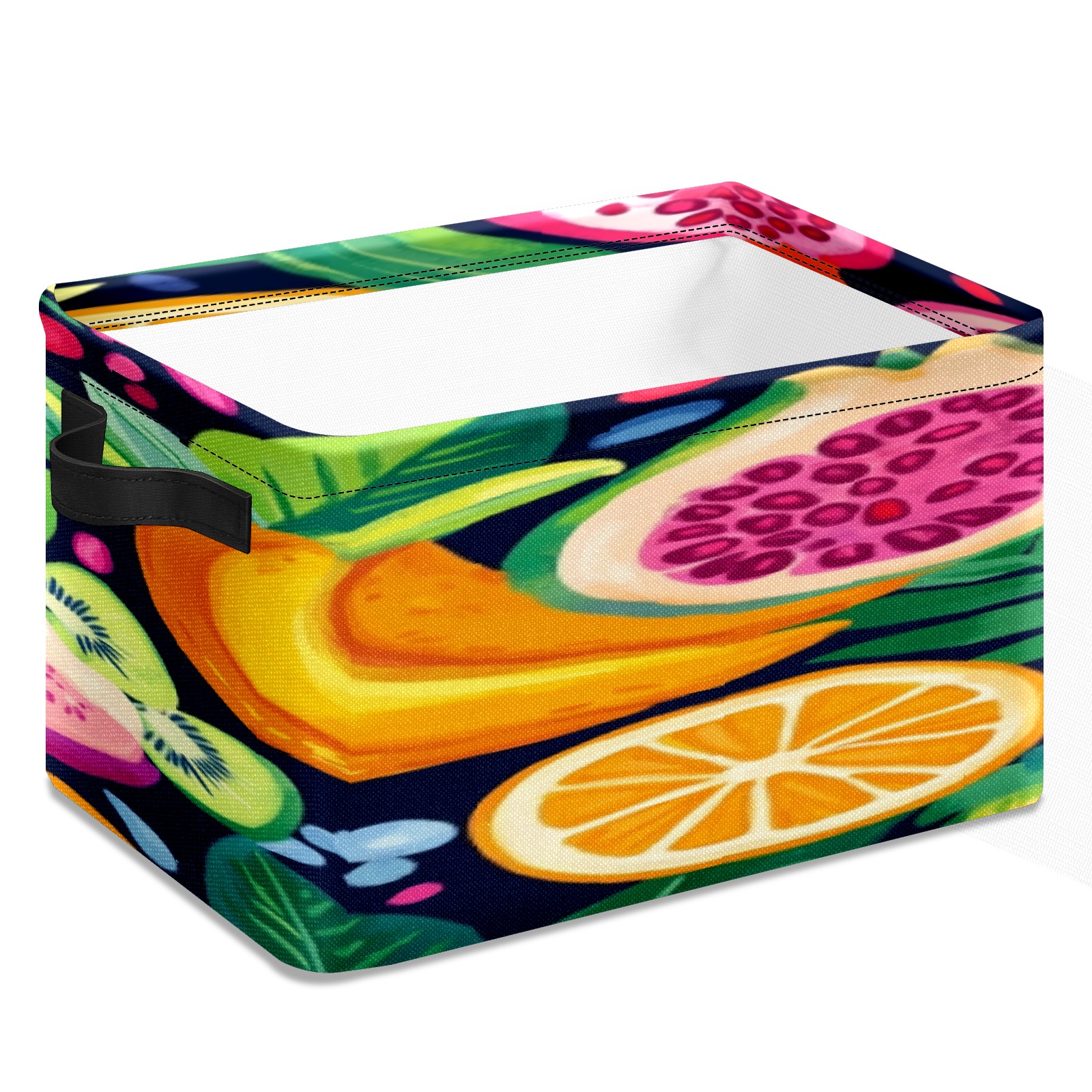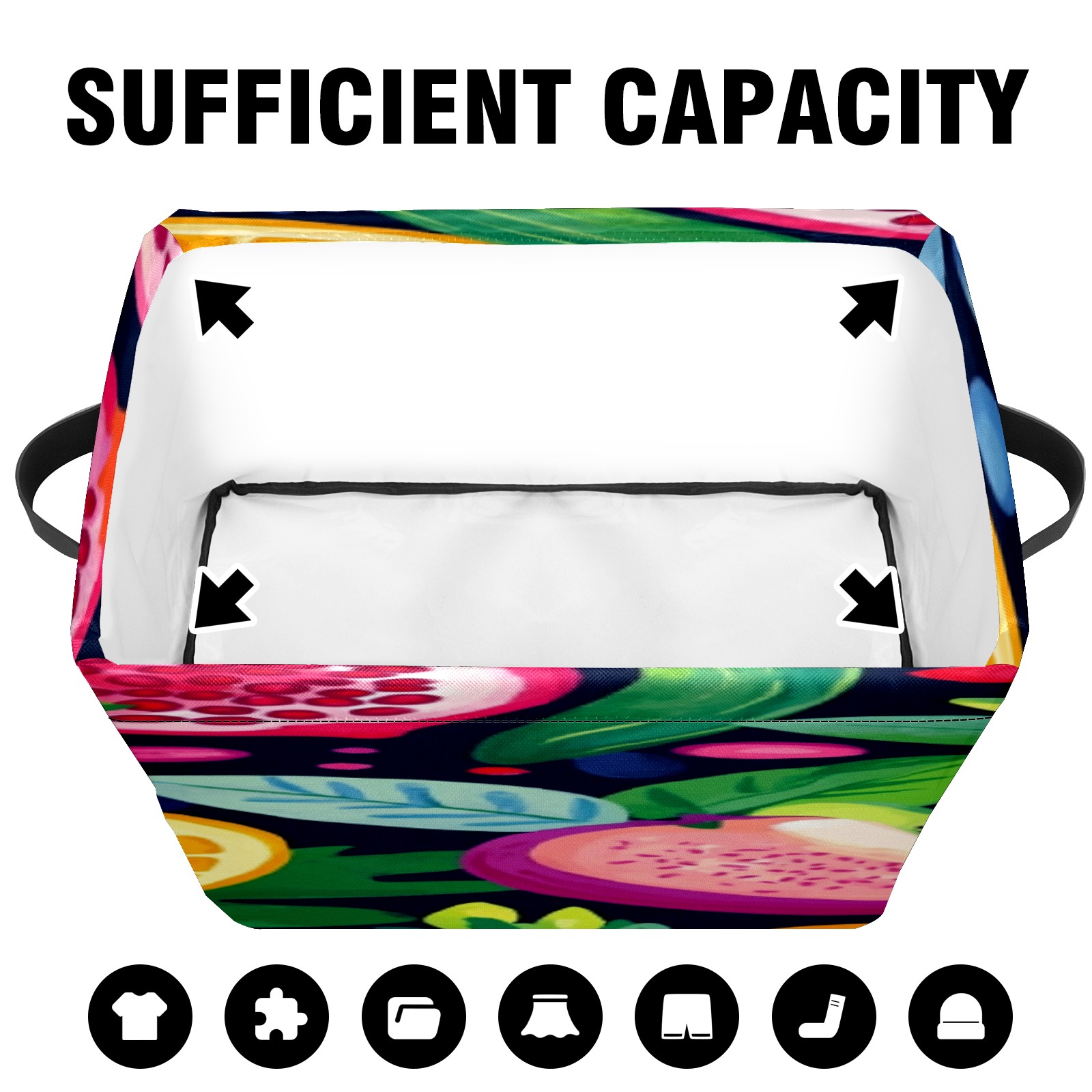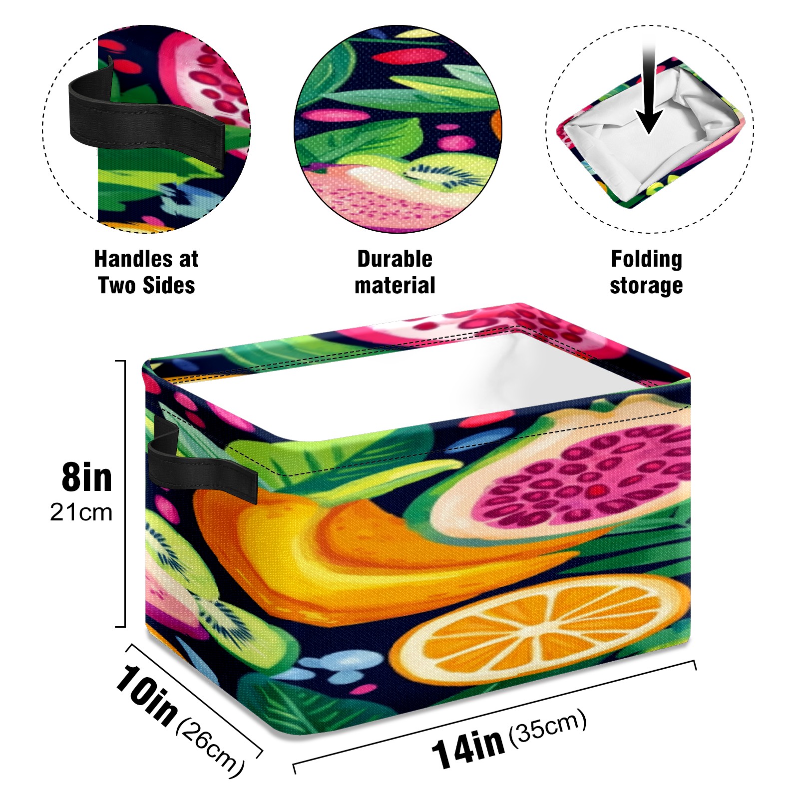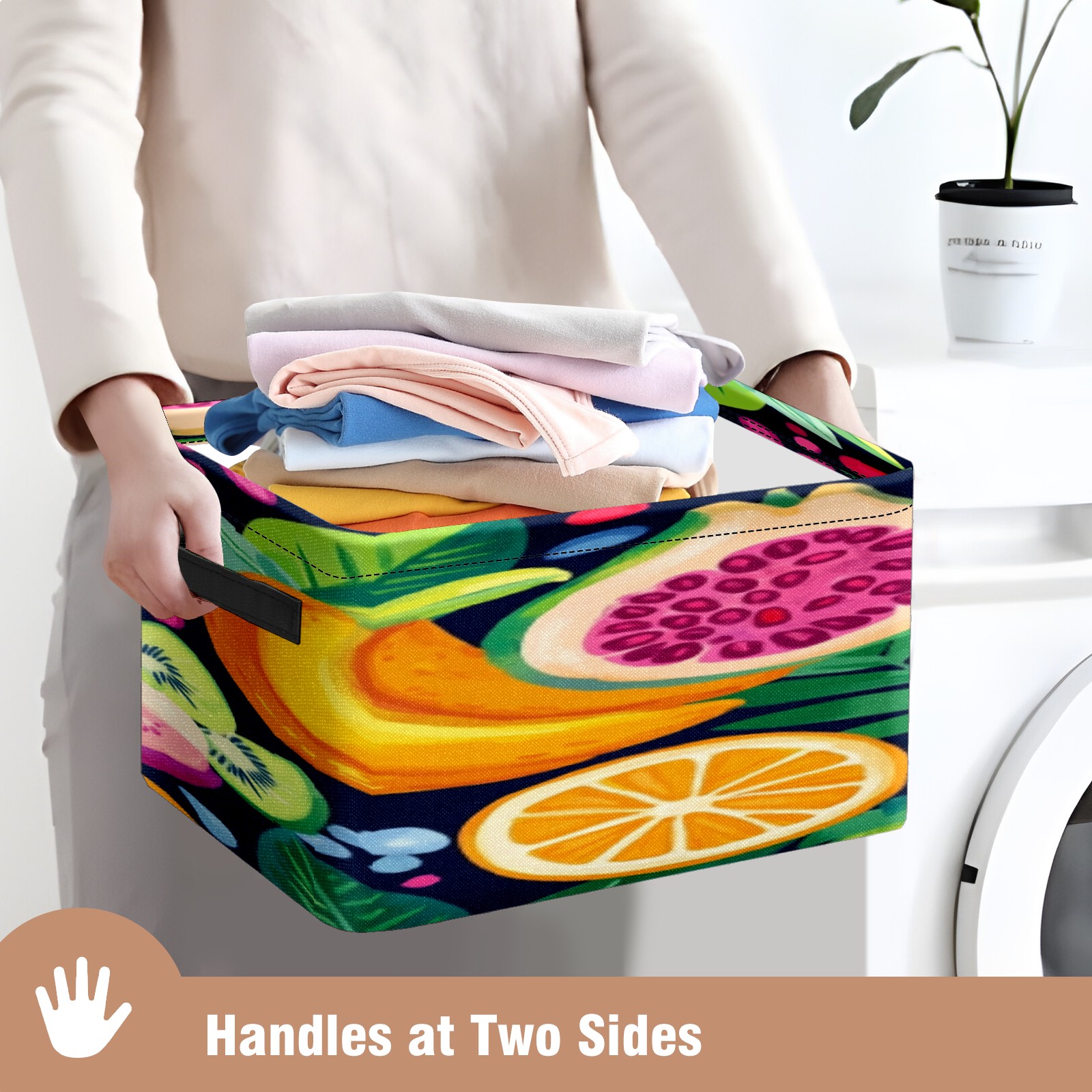 Foldable and Stackable Fabric Storage Basket for Home Organization with Handles, Decorative Closet Bins for Shelves, Laundry, and Toy Storage( Various Tropical Fruits)