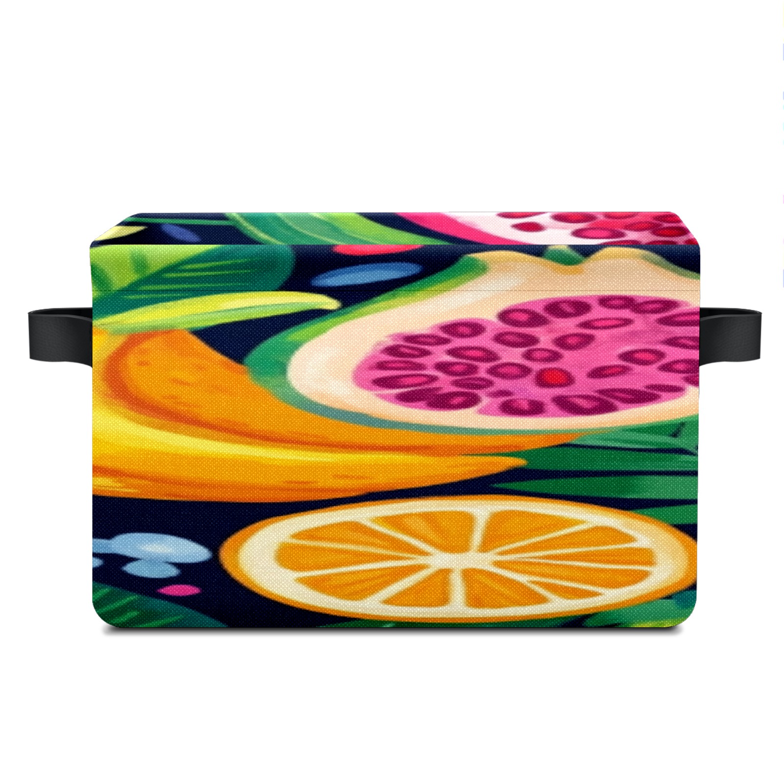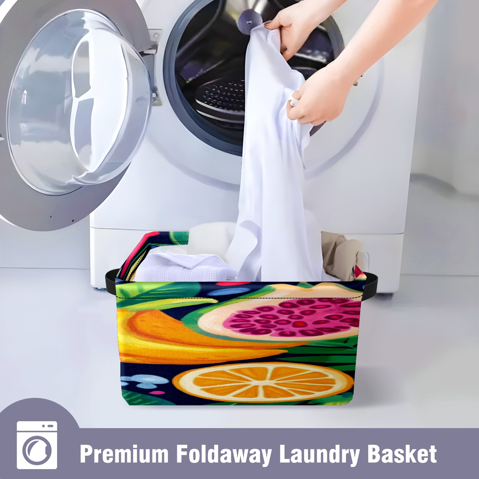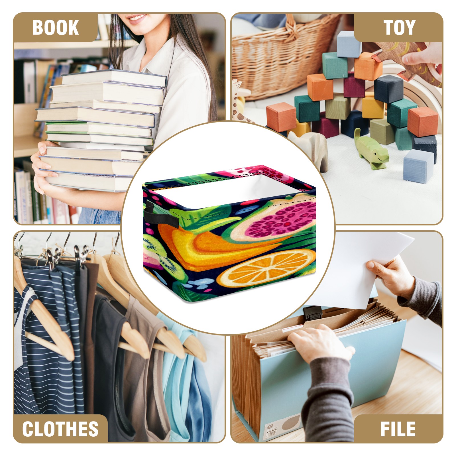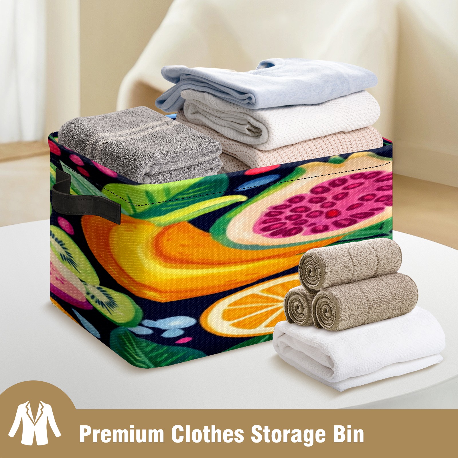 Foldable and Stackable Fabric Storage Basket for Home Organization with Handles, Decorative Closet Bins for Shelves, Laundry, and Toy Storage( Various Tropical Fruits)