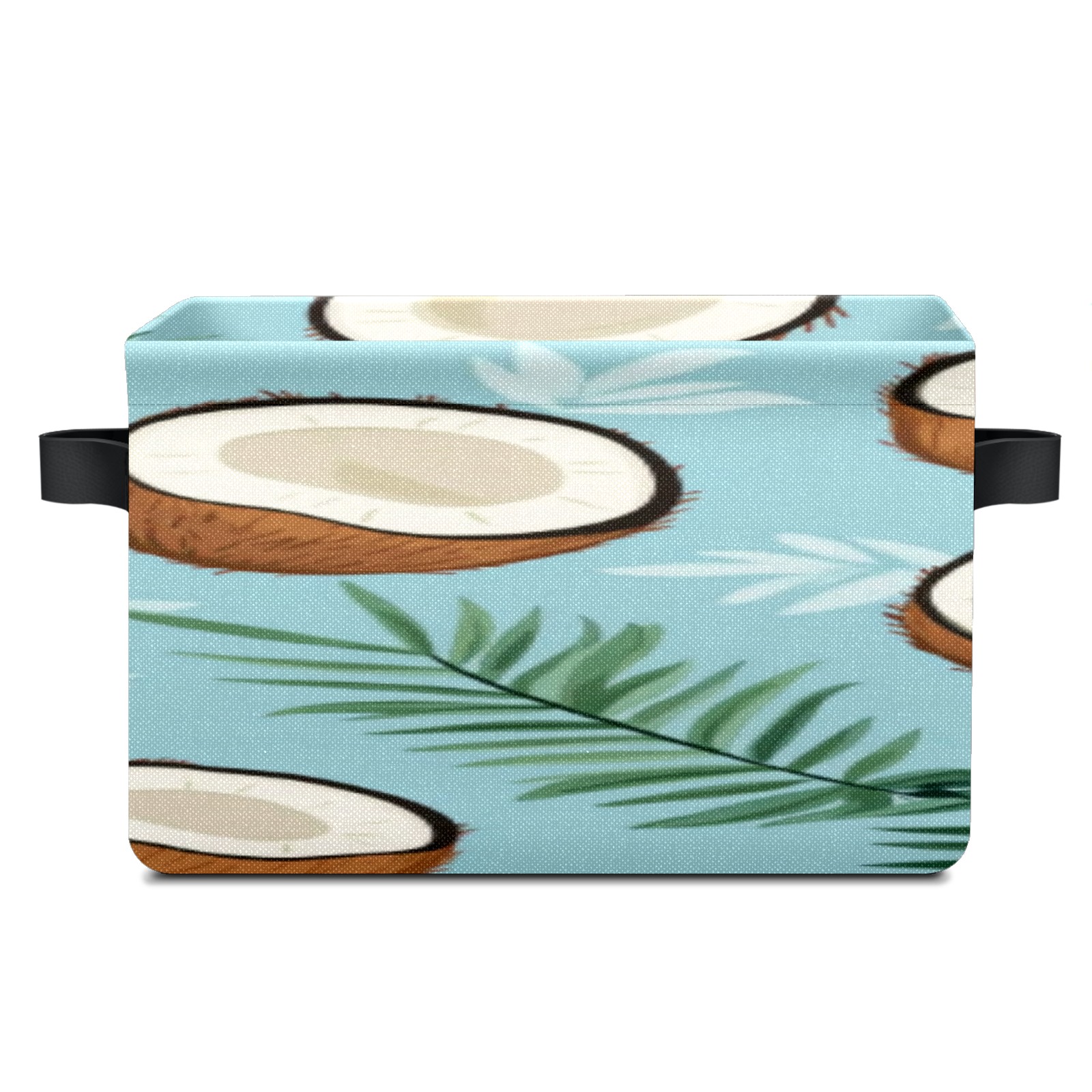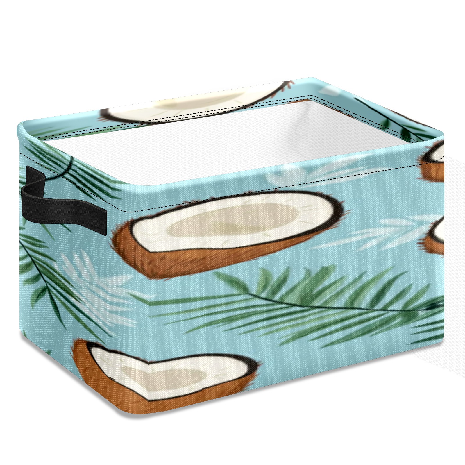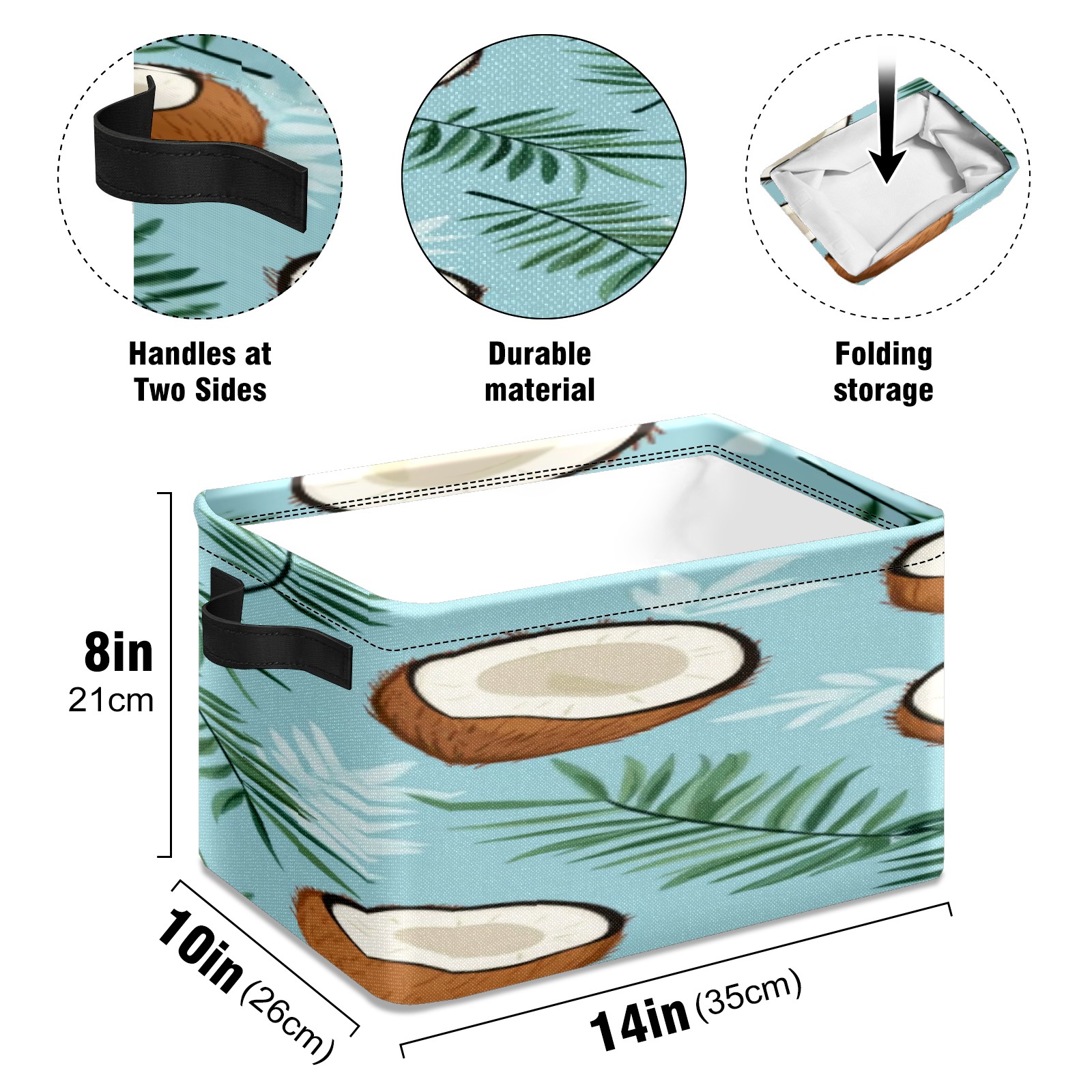 Foldable and Stackable Fabric Storage Basket for Home Organization with Handles, Decorative Closet Bins for Shelves, Laundry, and Toy Storage( Coconuts And Leaves)