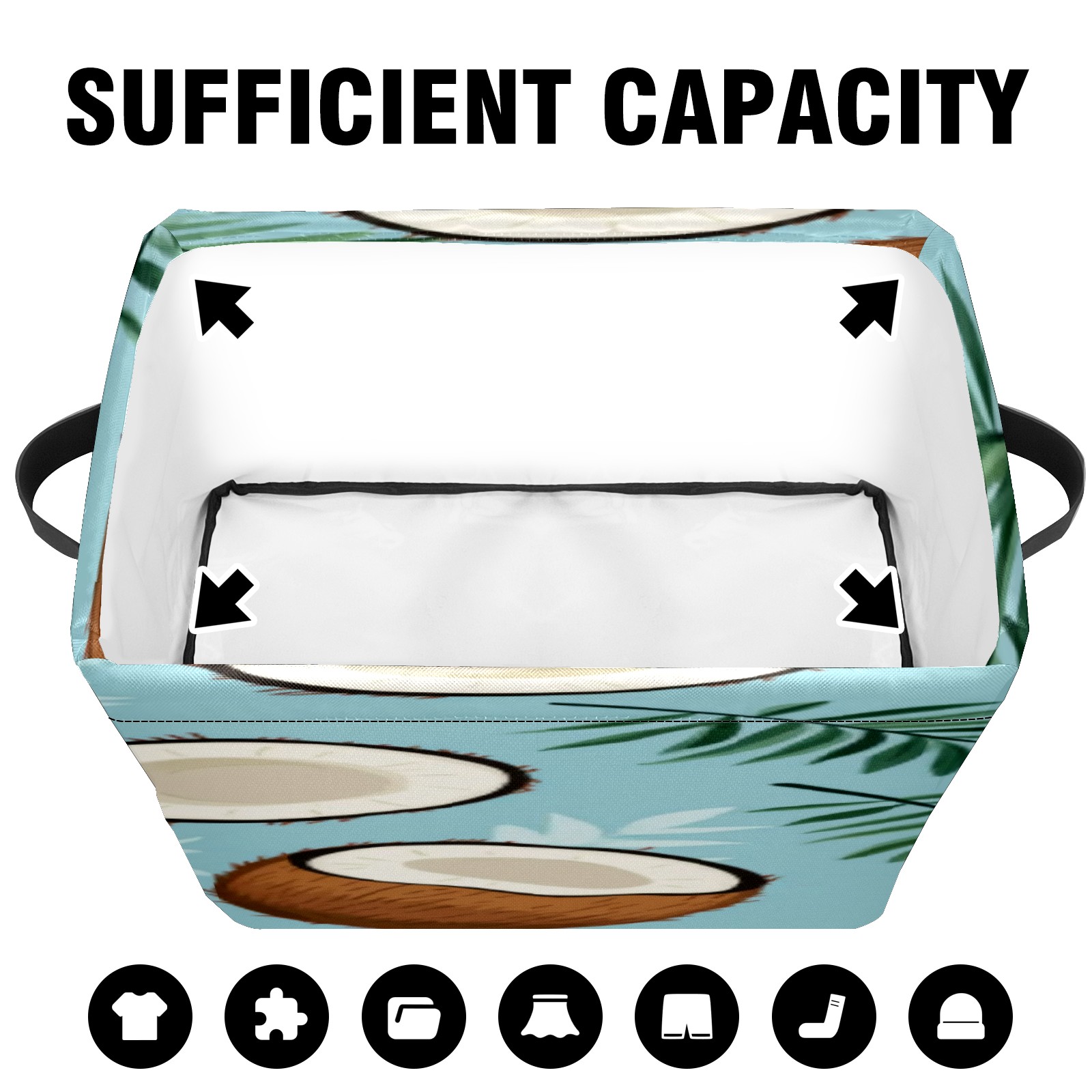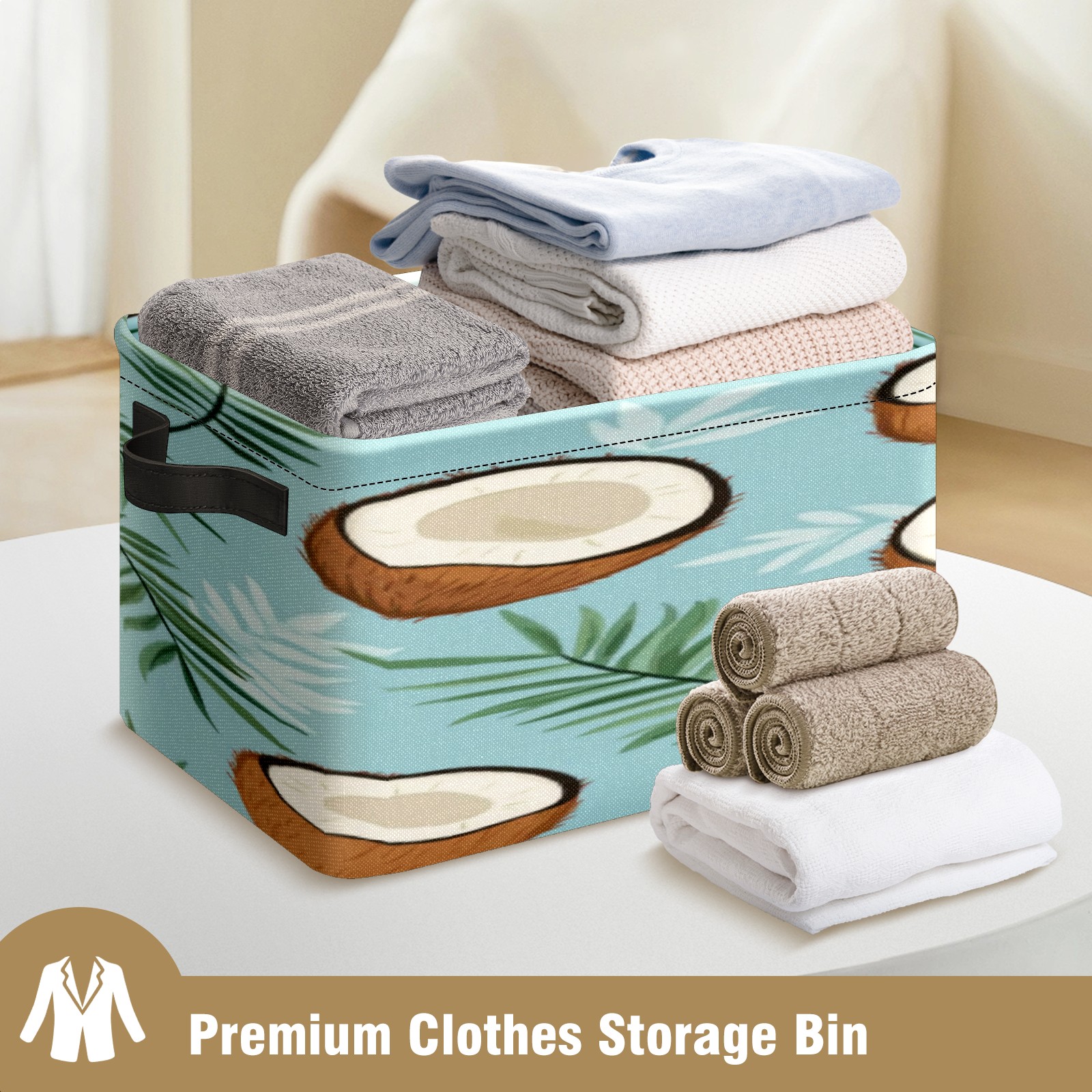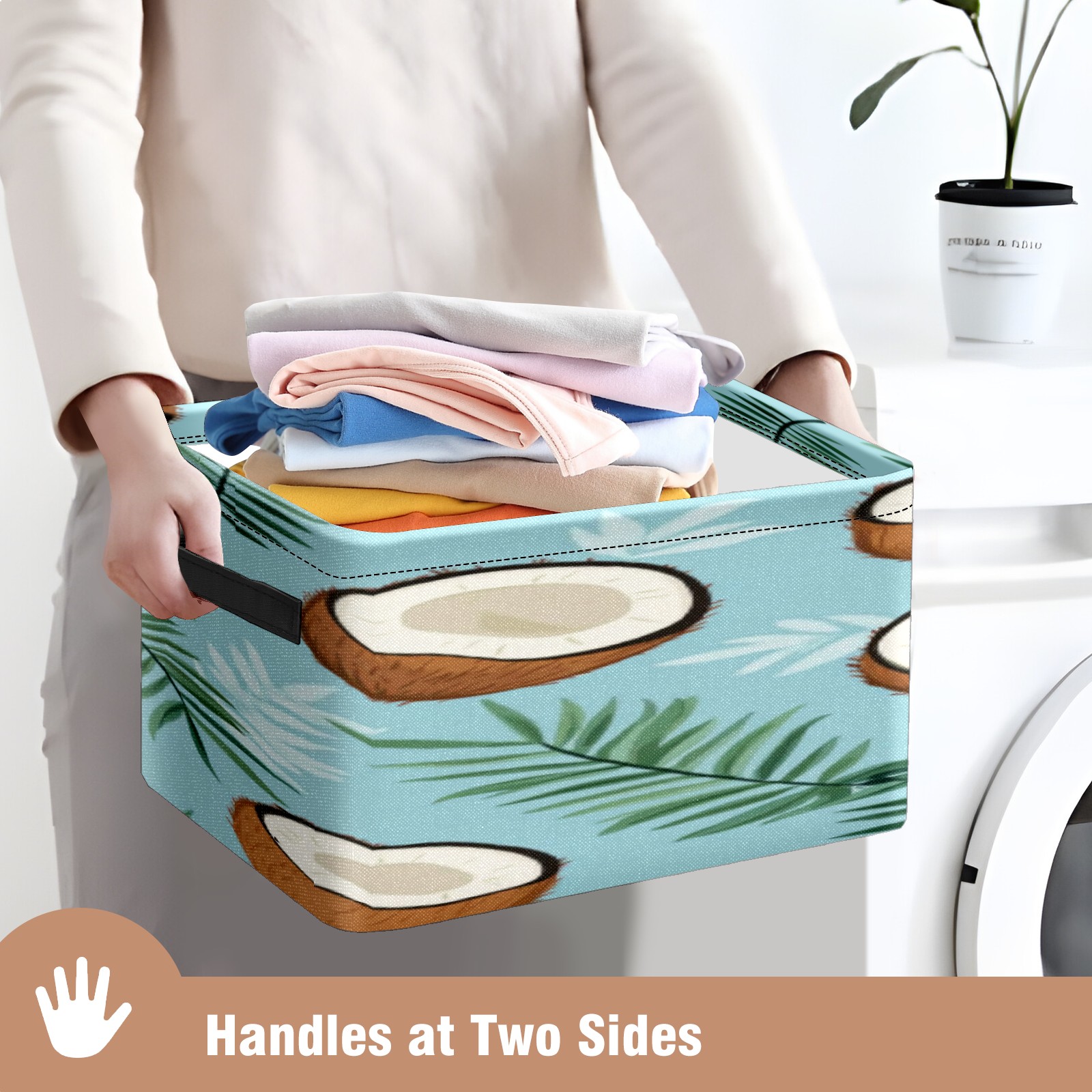 Foldable and Stackable Fabric Storage Basket for Home Organization with Handles, Decorative Closet Bins for Shelves, Laundry, and Toy Storage( Coconuts And Leaves)