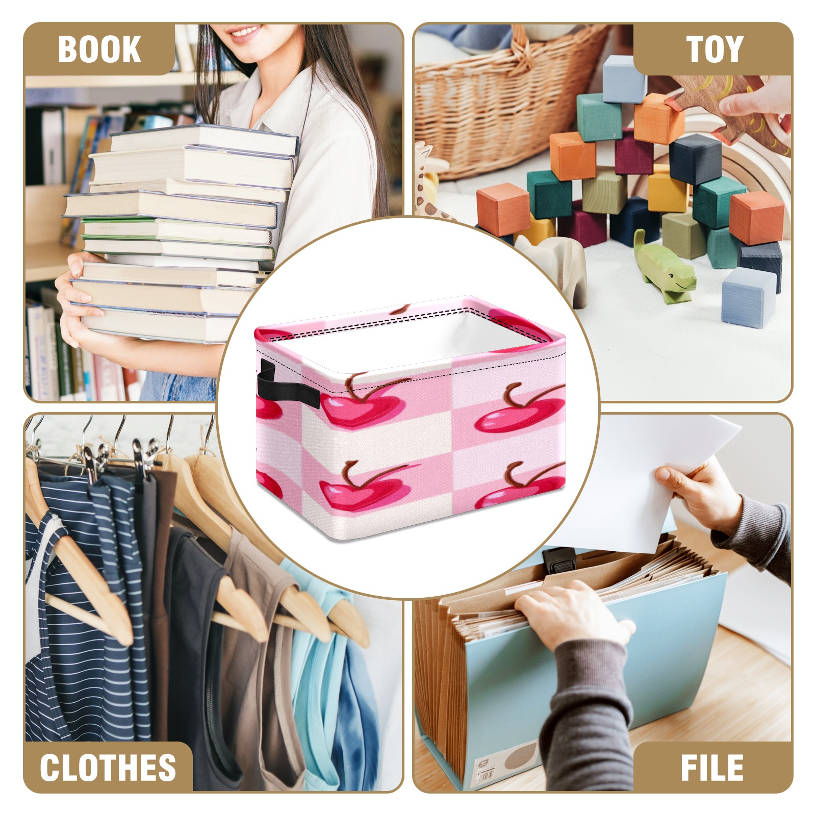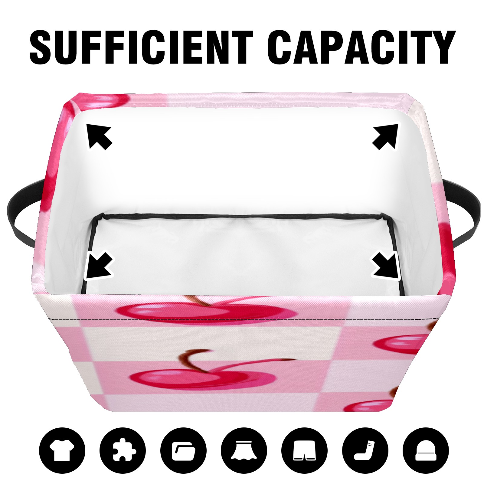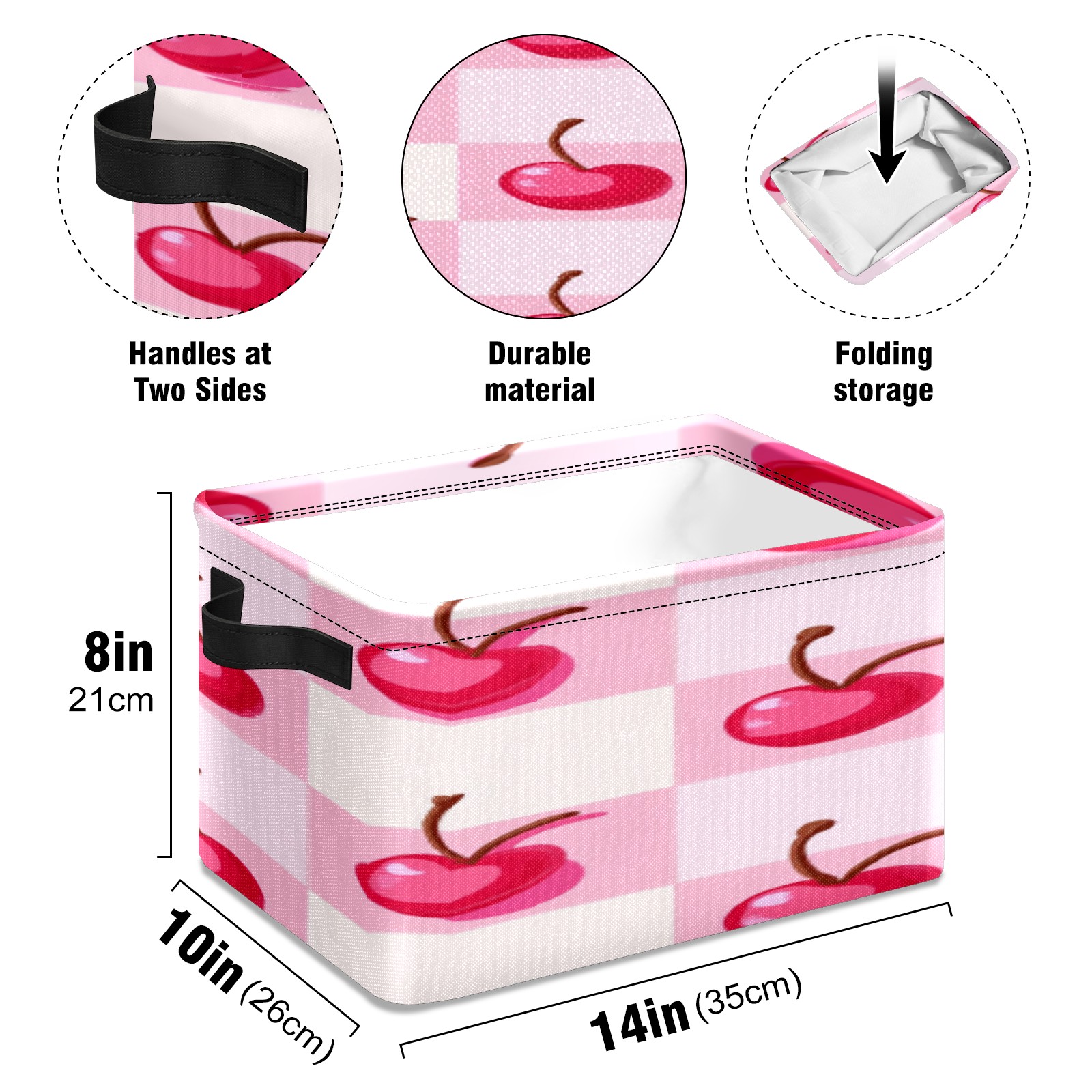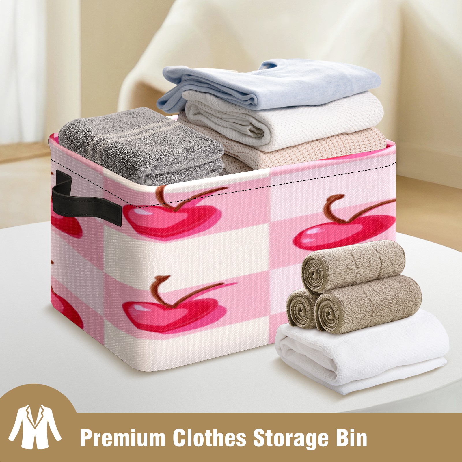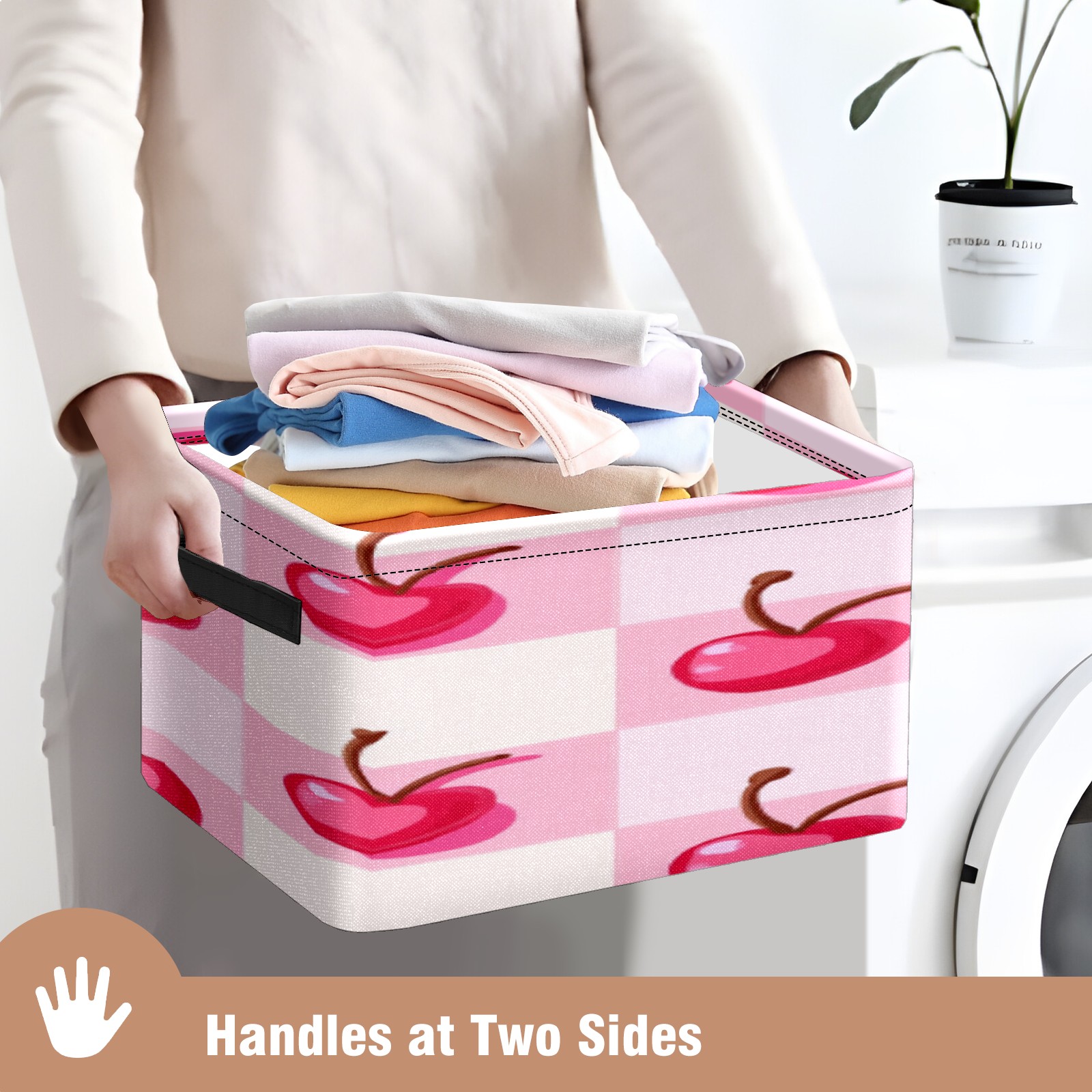 Foldable and Stackable Fabric Storage Basket for Home Organization with Handles, Decorative Closet Bins for Shelves, Laundry, and Toy Storage( Pink Cherry)