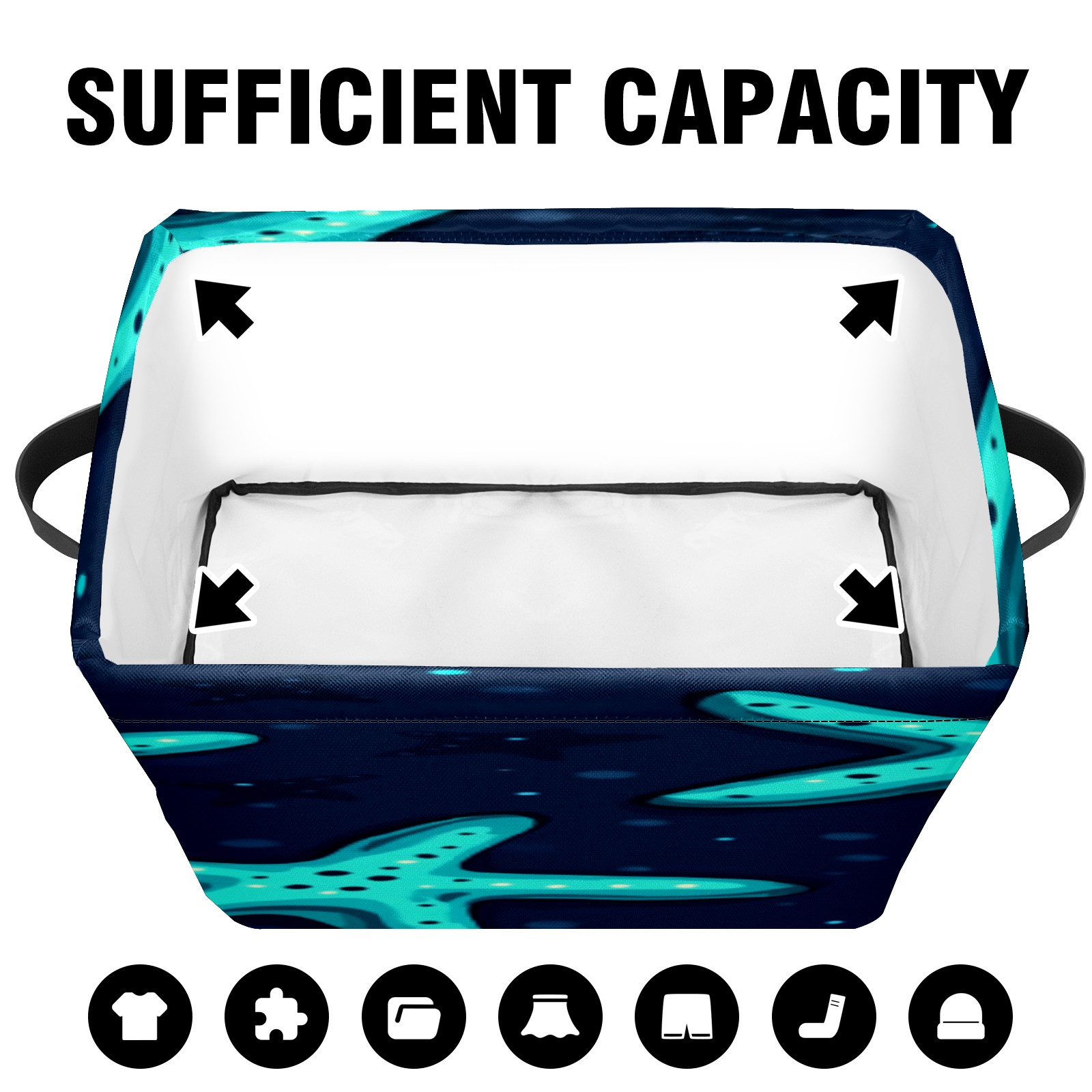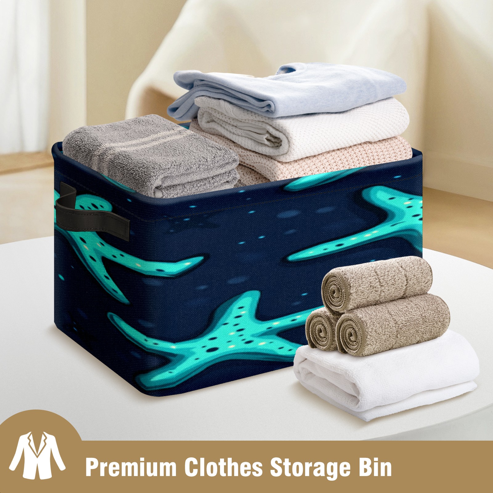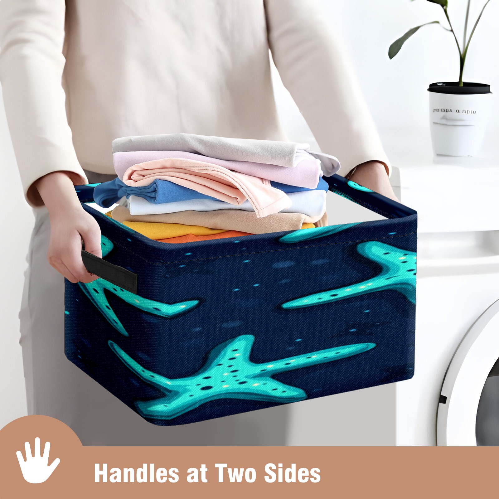 Foldable and Stackable Fabric Storage Basket for Home Organization with Handles, Decorative Closet Bins for Shelves, Laundry, and Toy Storage( Starfish)