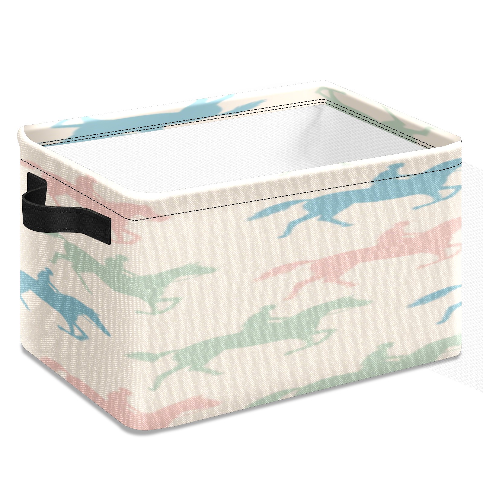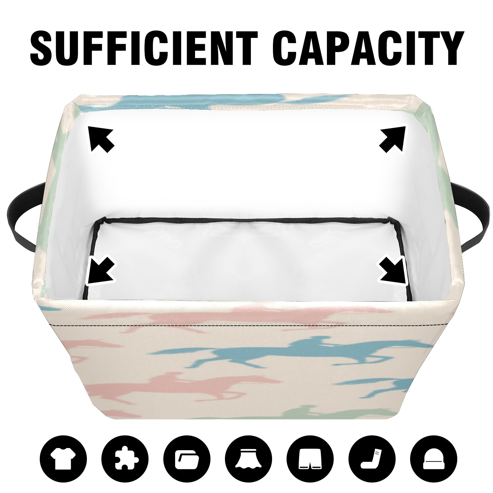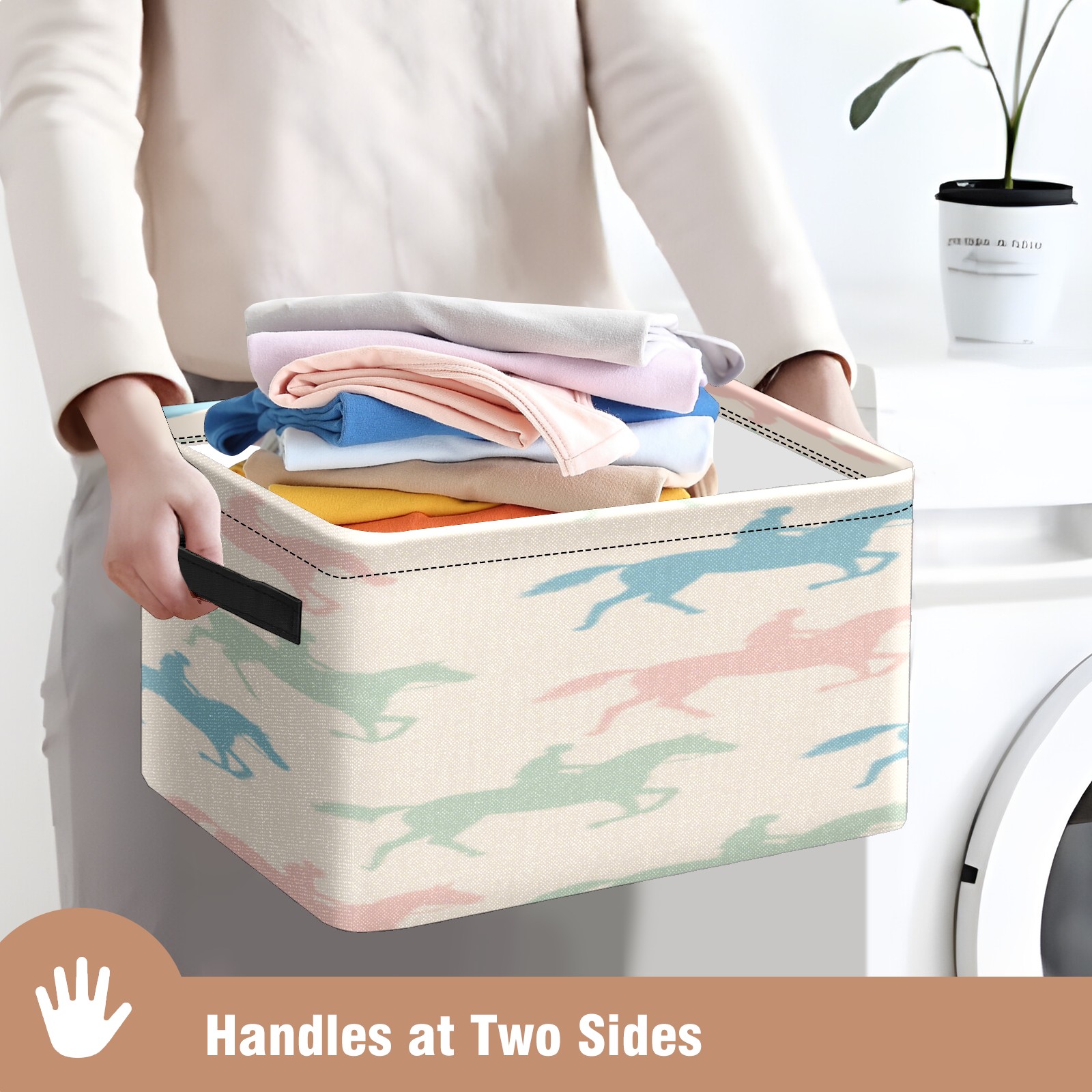Foldable and Stackable Fabric Storage Basket for Home Organization with Handles, Decorative Closet Bins for Shelves, Laundry, and Toy Storage( Colorful Horse)
