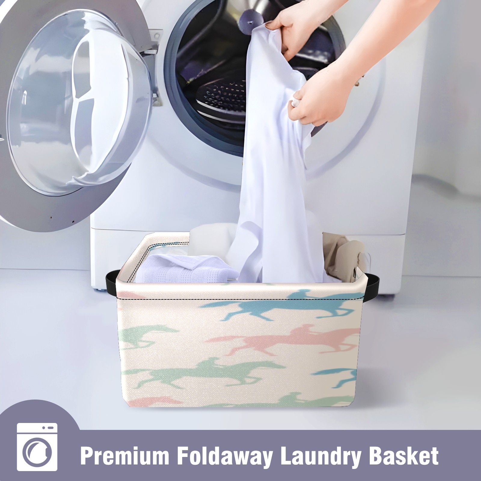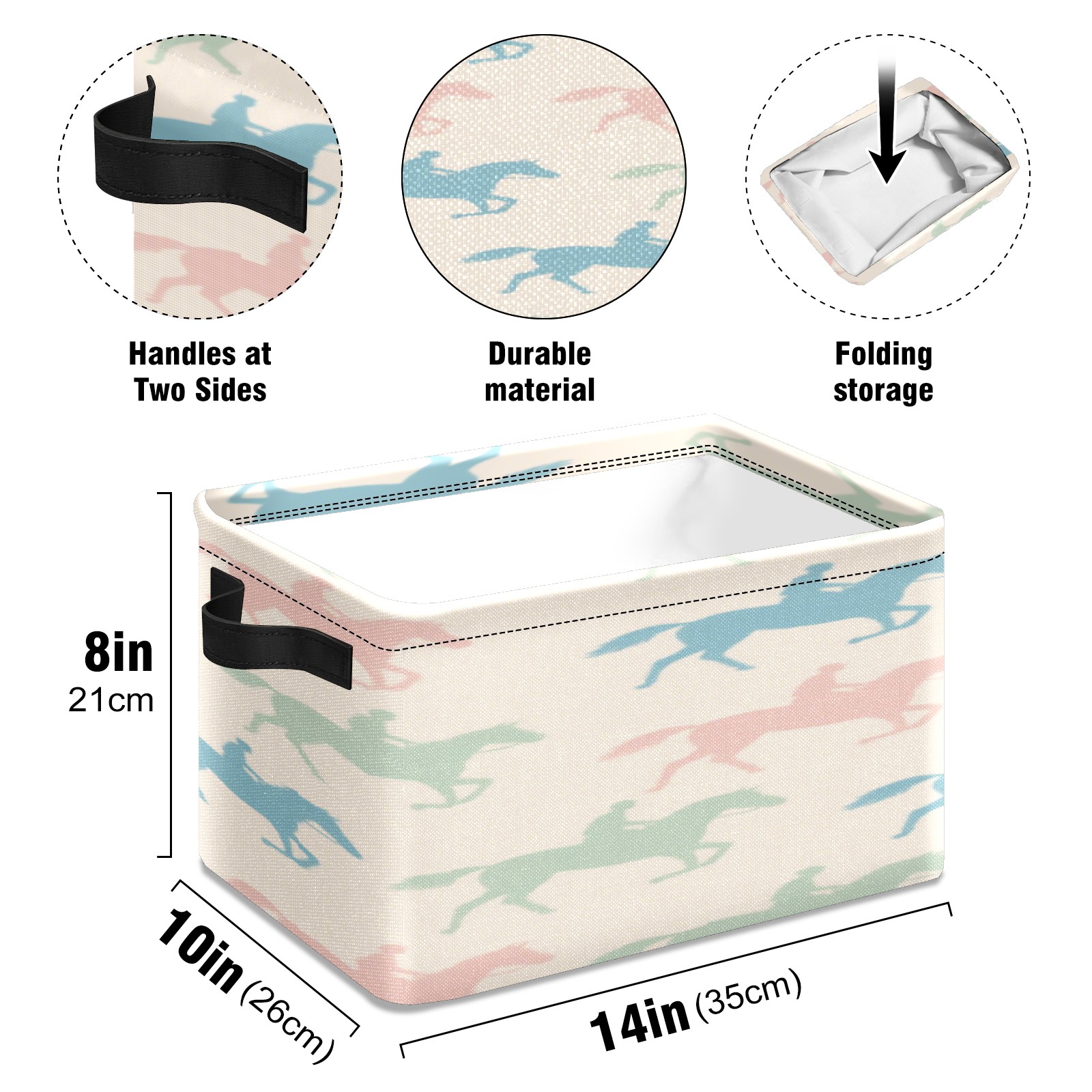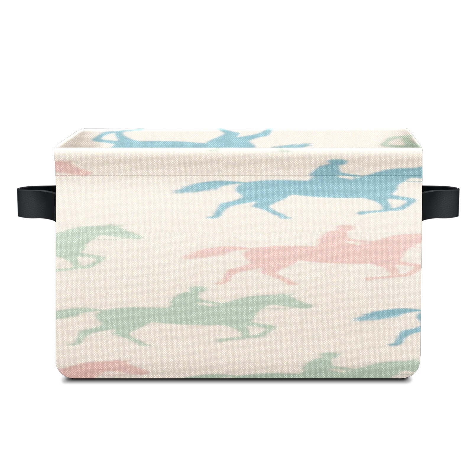 Foldable and Stackable Fabric Storage Basket for Home Organization with Handles, Decorative Closet Bins for Shelves, Laundry, and Toy Storage( Colorful Horse)