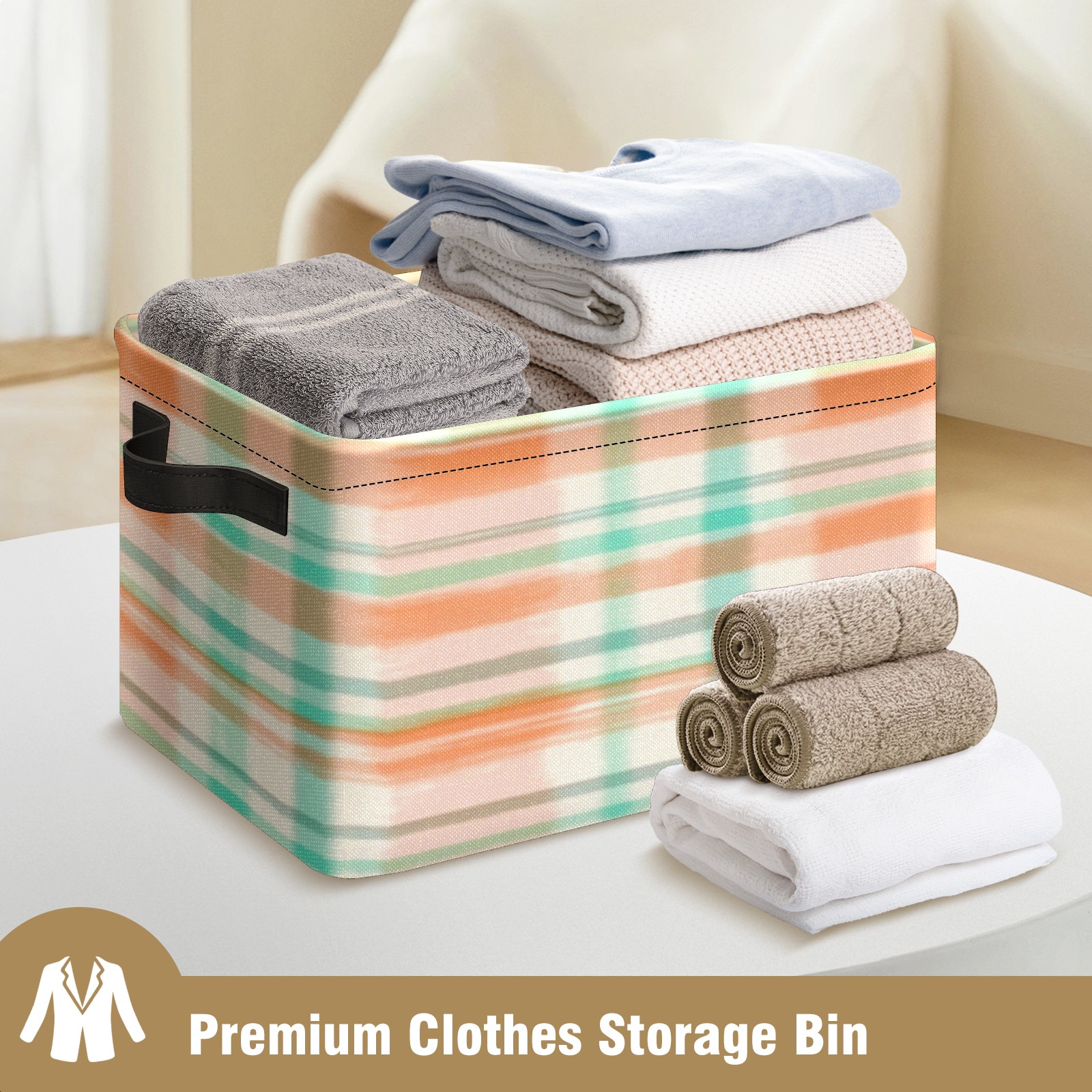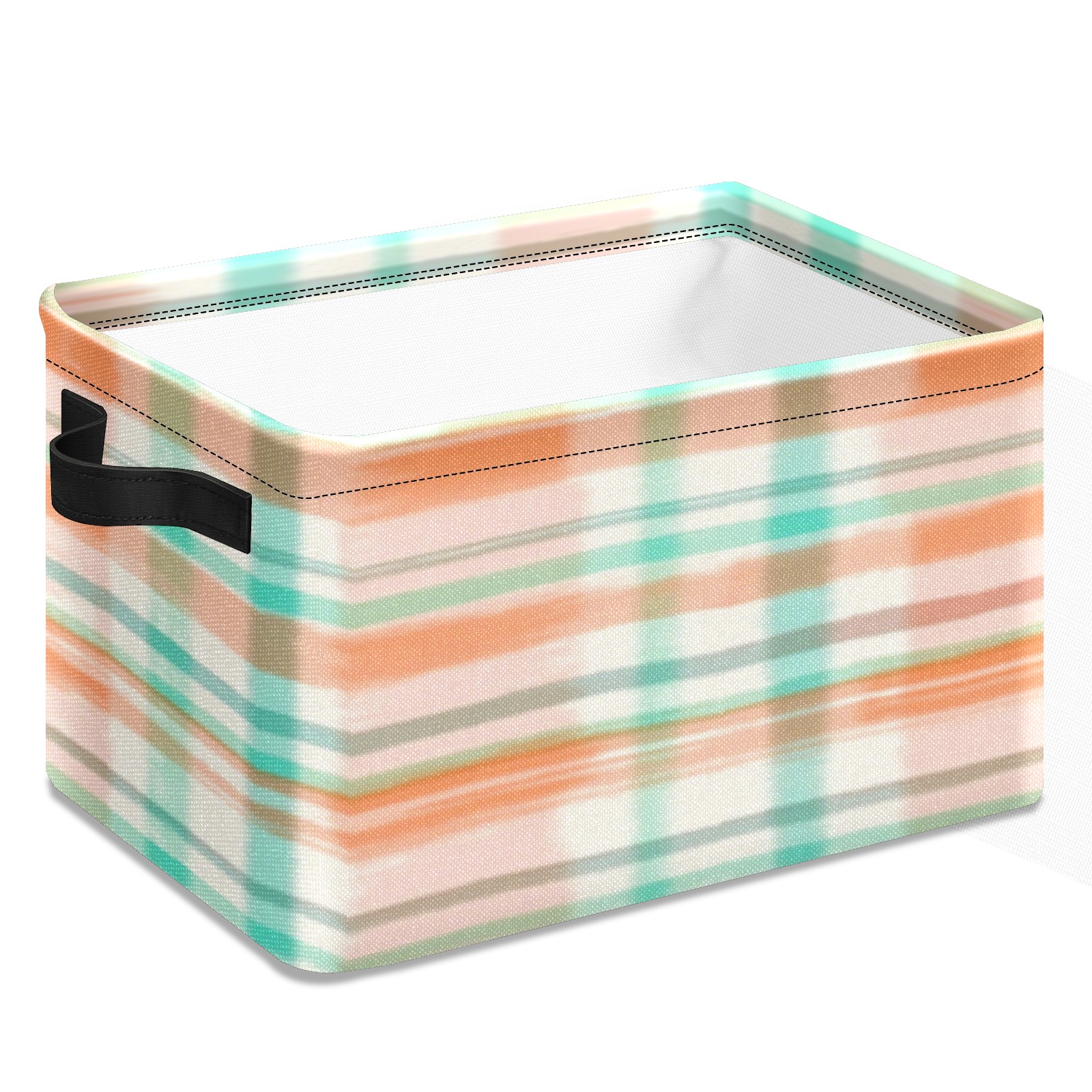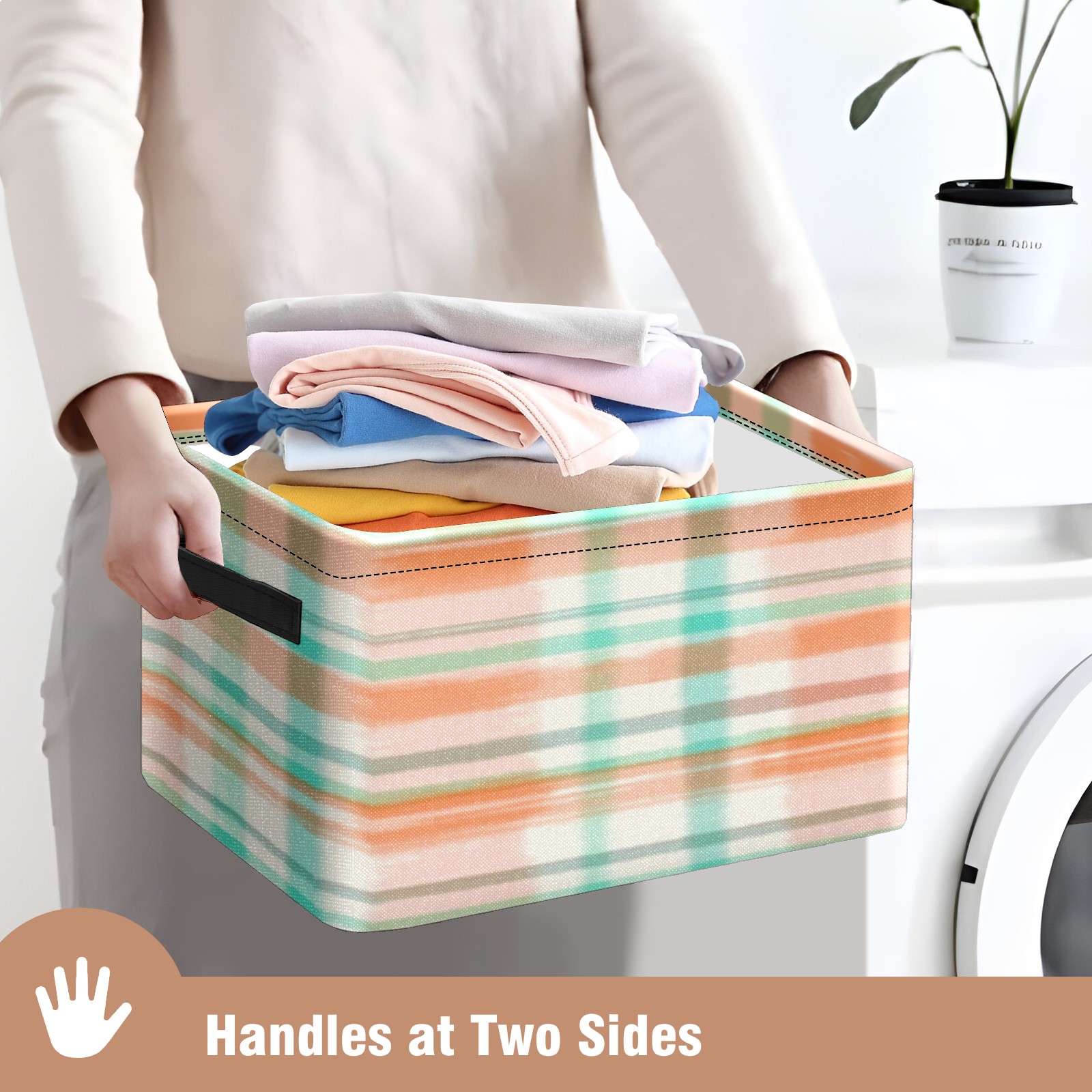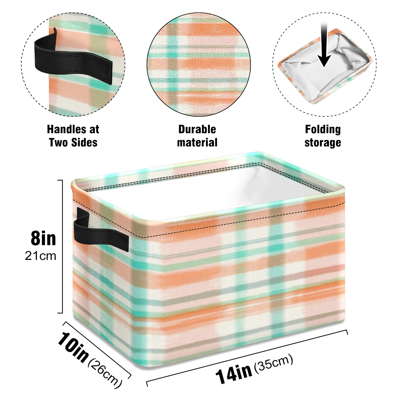 Foldable and Stackable Fabric Storage Basket for Home Organization with Handles, Decorative Closet Bins for Shelves, Laundry, and Toy Storage( Orange And Green Checkered)