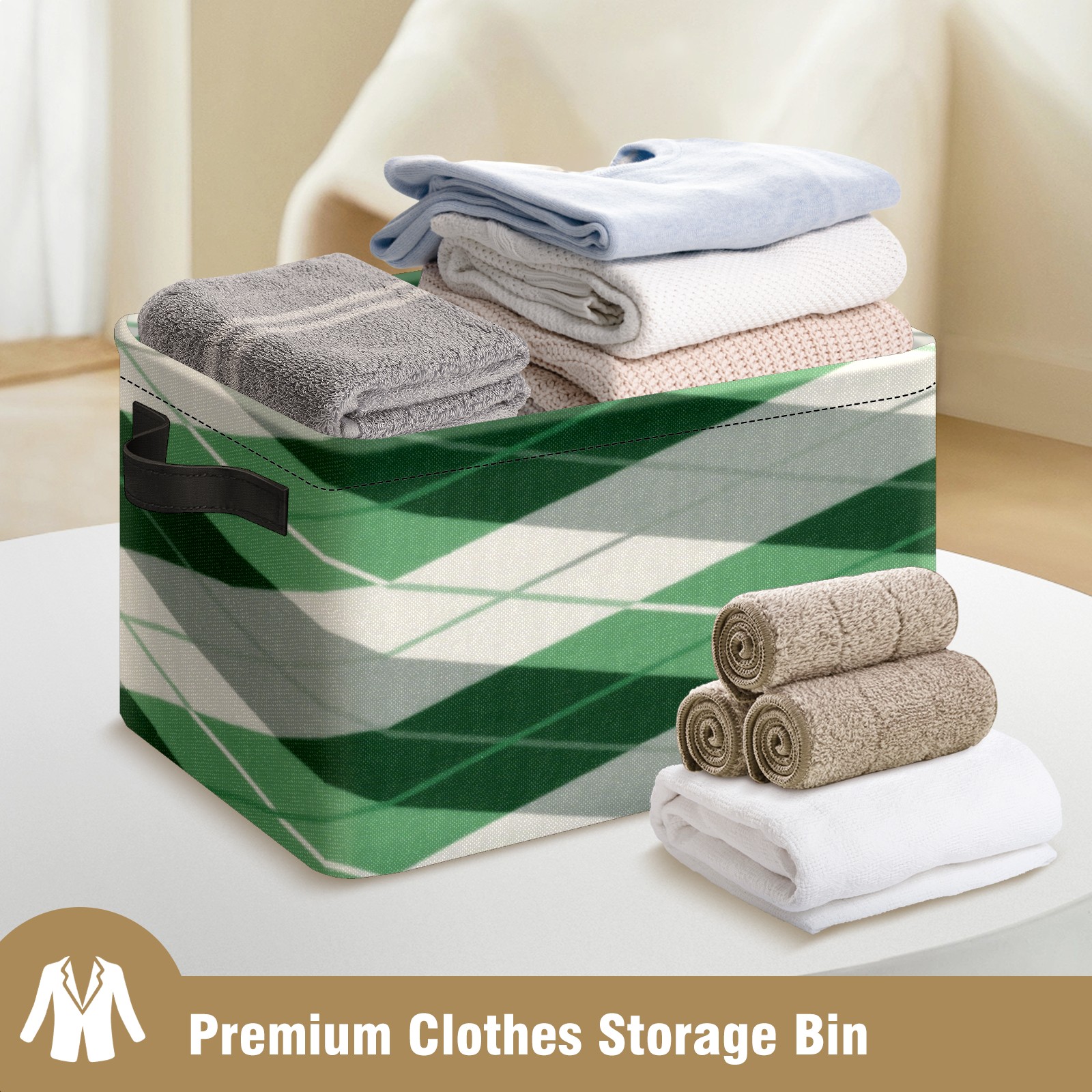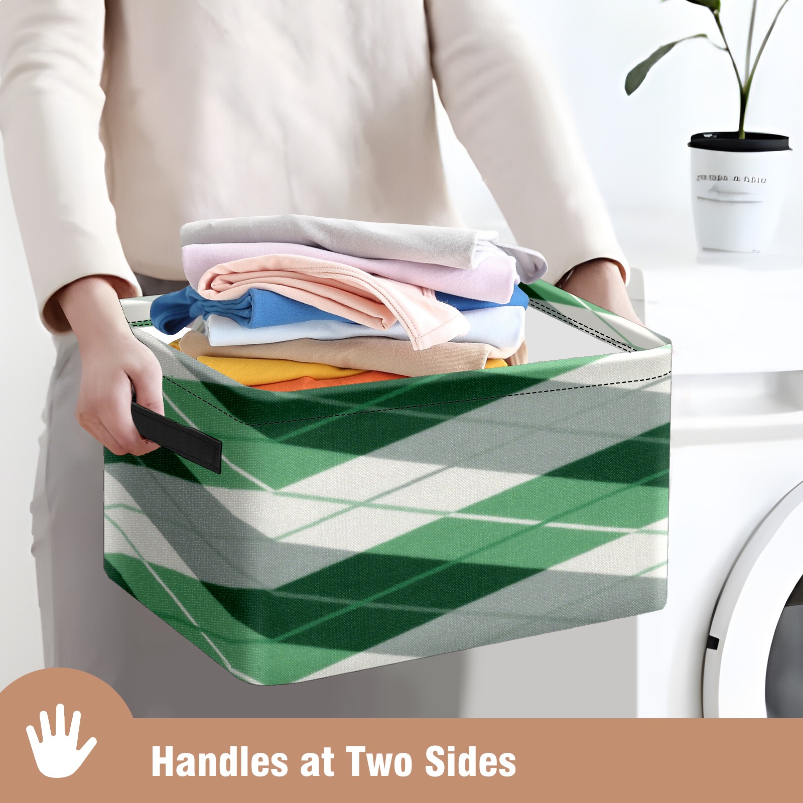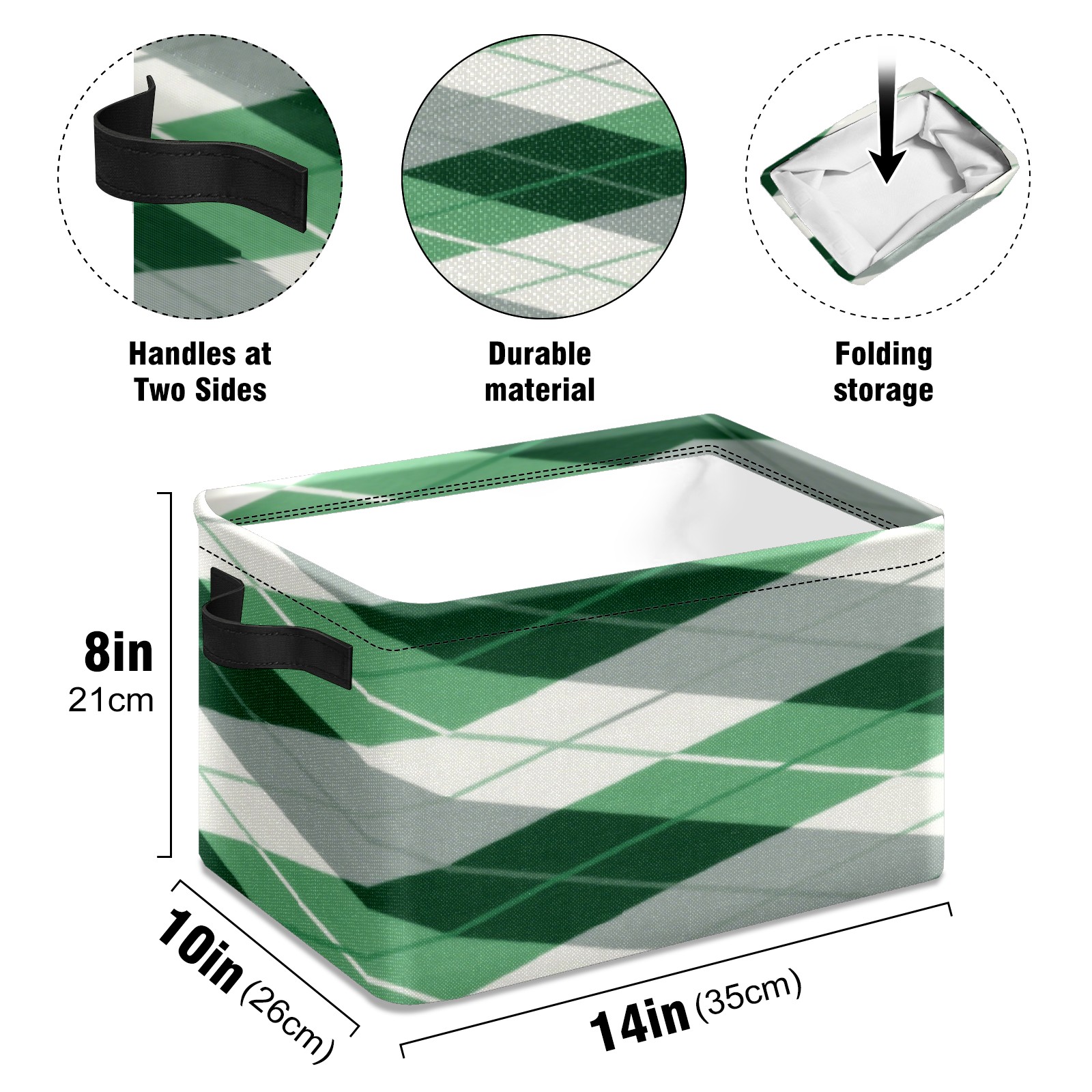 Foldable and Stackable Fabric Storage Basket for Home Organization with Handles, Decorative Closet Bins for Shelves, Laundry, and Toy Storage( Green Checkered)