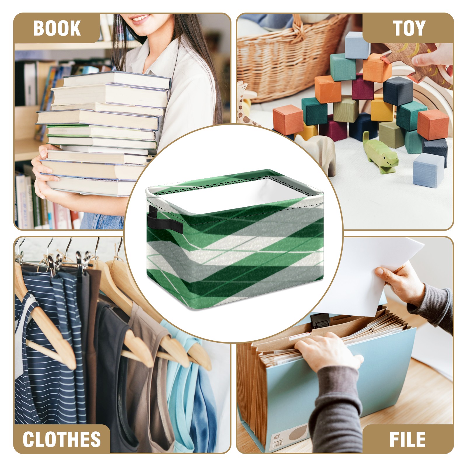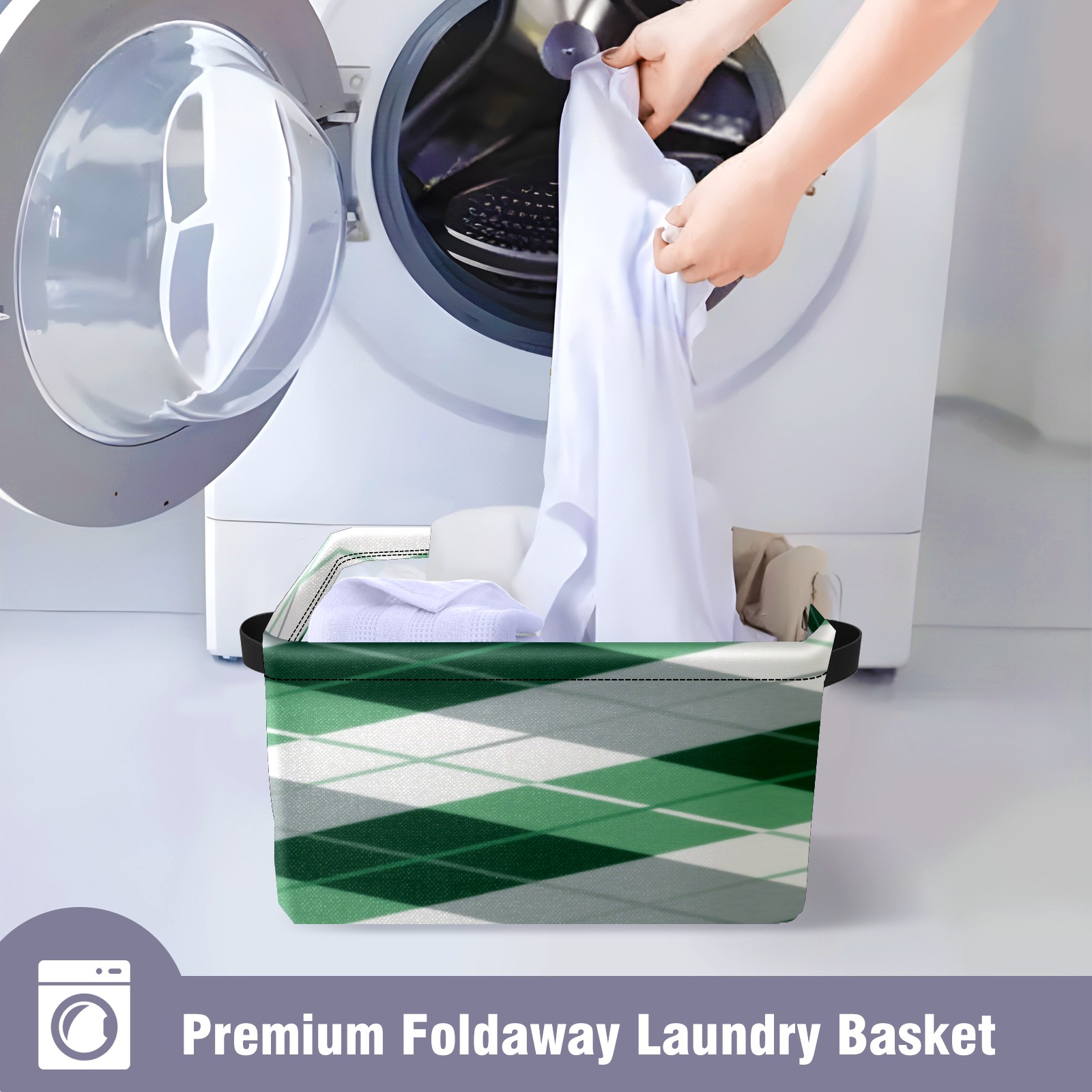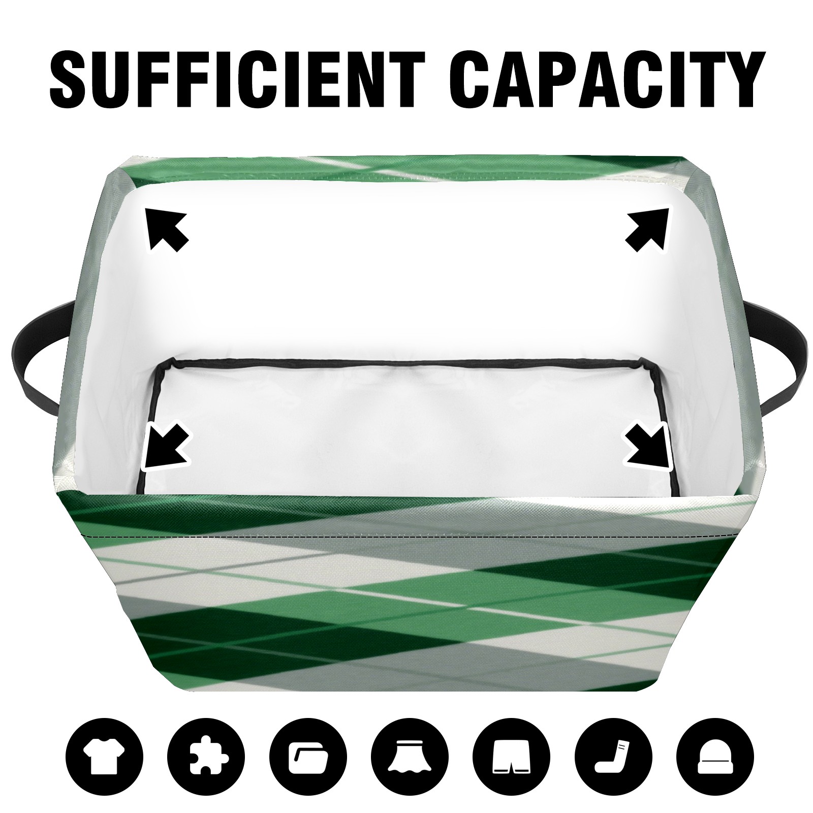 Foldable and Stackable Fabric Storage Basket for Home Organization with Handles, Decorative Closet Bins for Shelves, Laundry, and Toy Storage( Green Checkered)