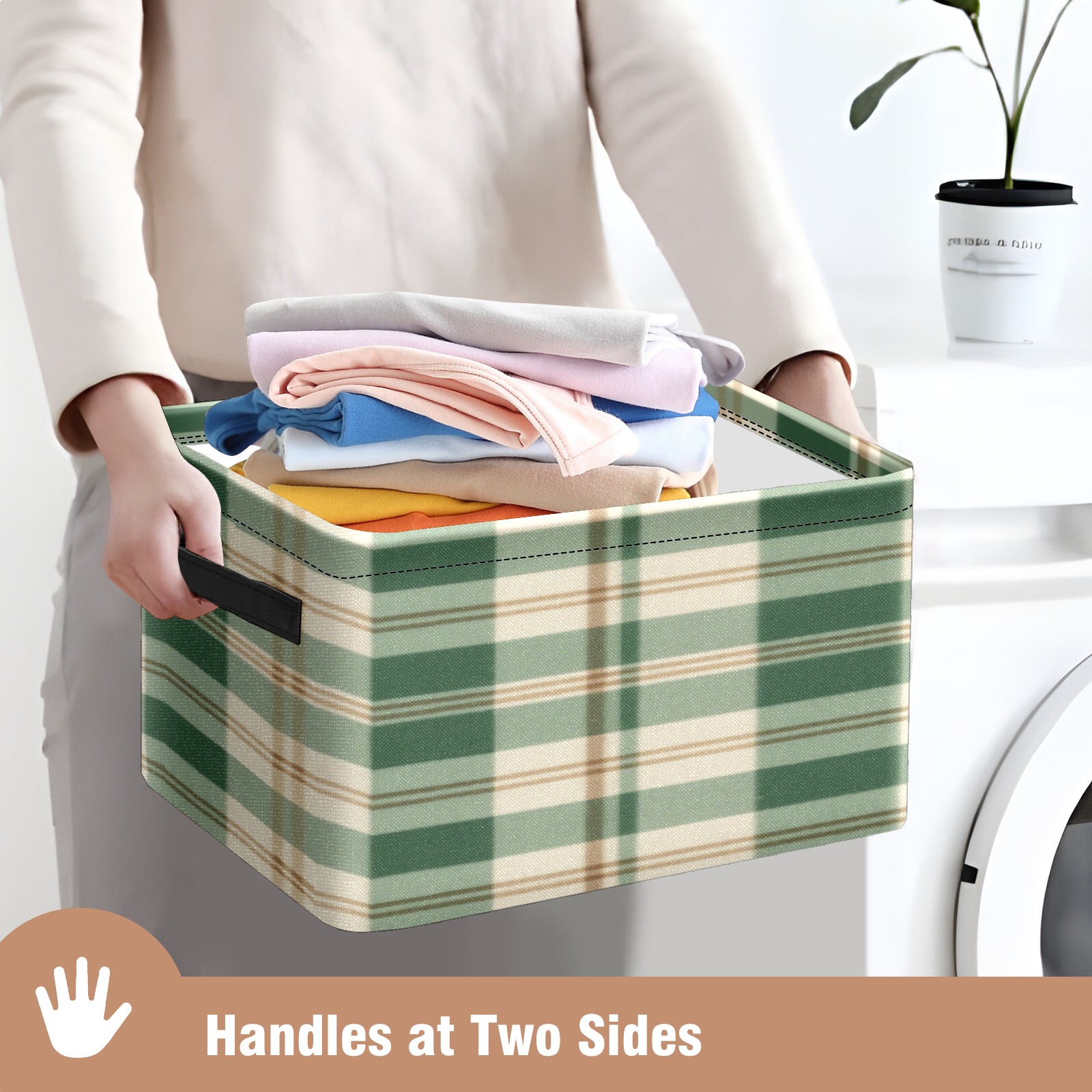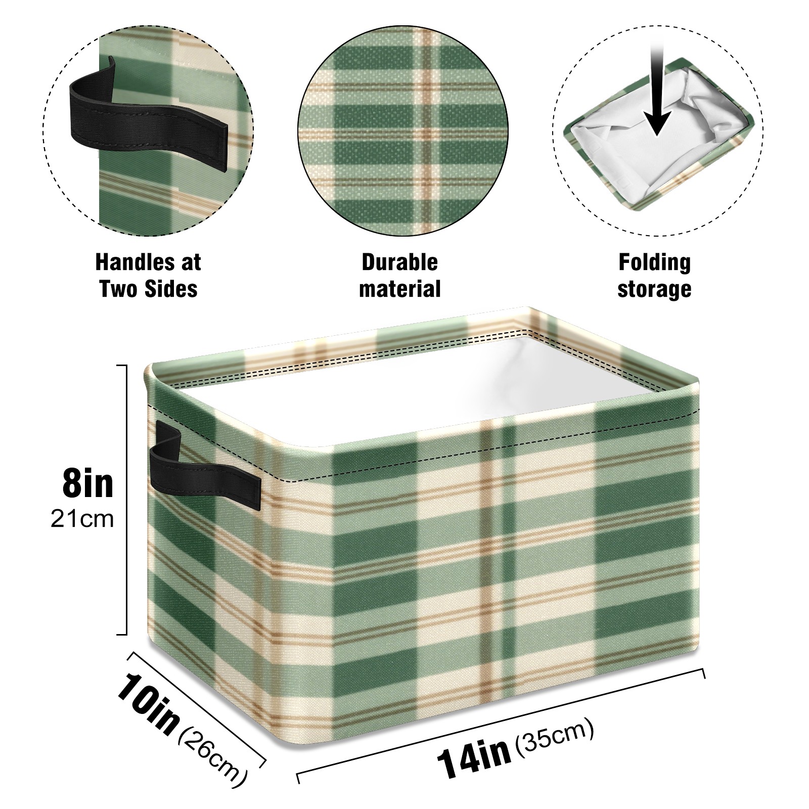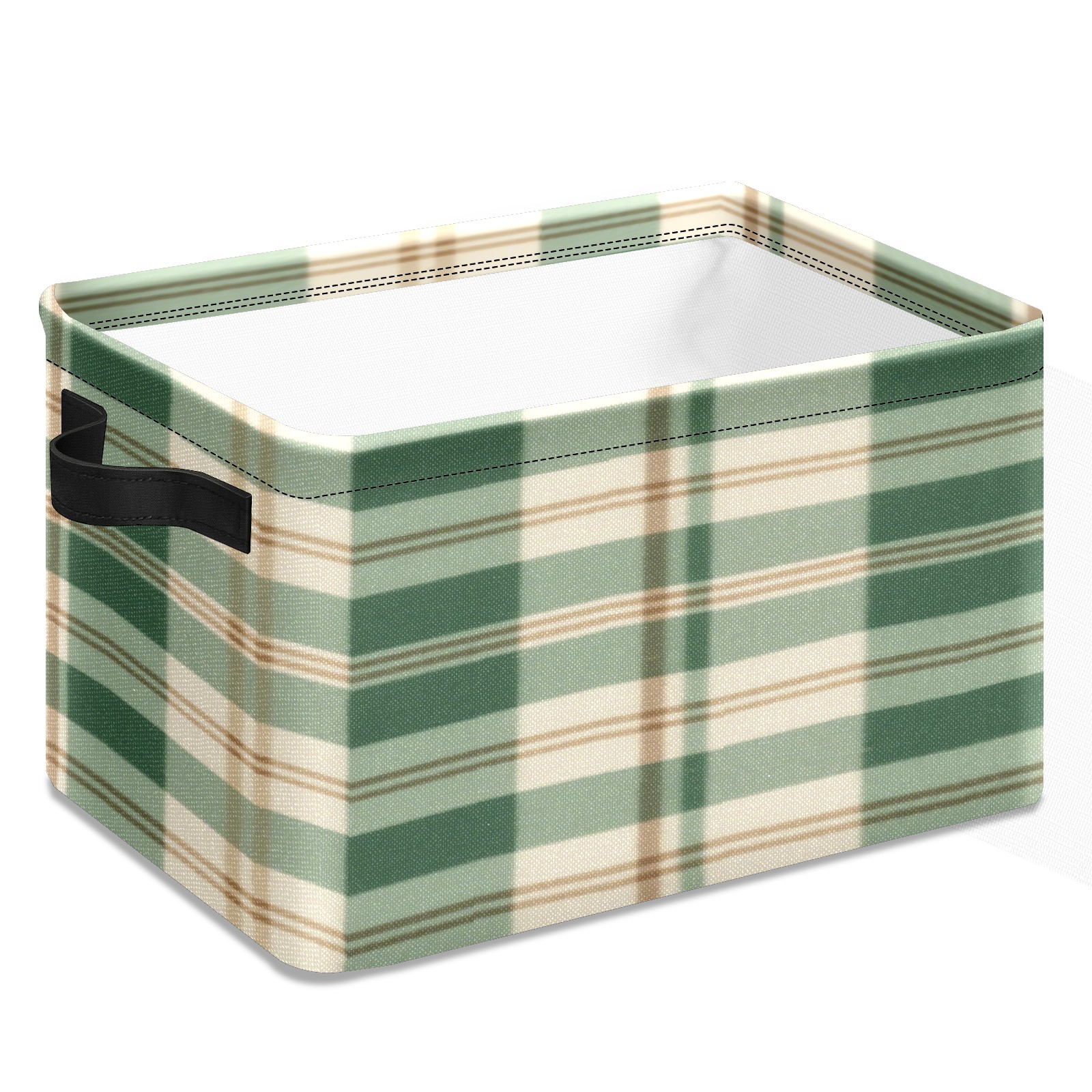 Foldable and Stackable Fabric Storage Basket for Home Organization with Handles, Decorative Closet Bins for Shelves, Laundry, and Toy Storage( Green And White Checkered)