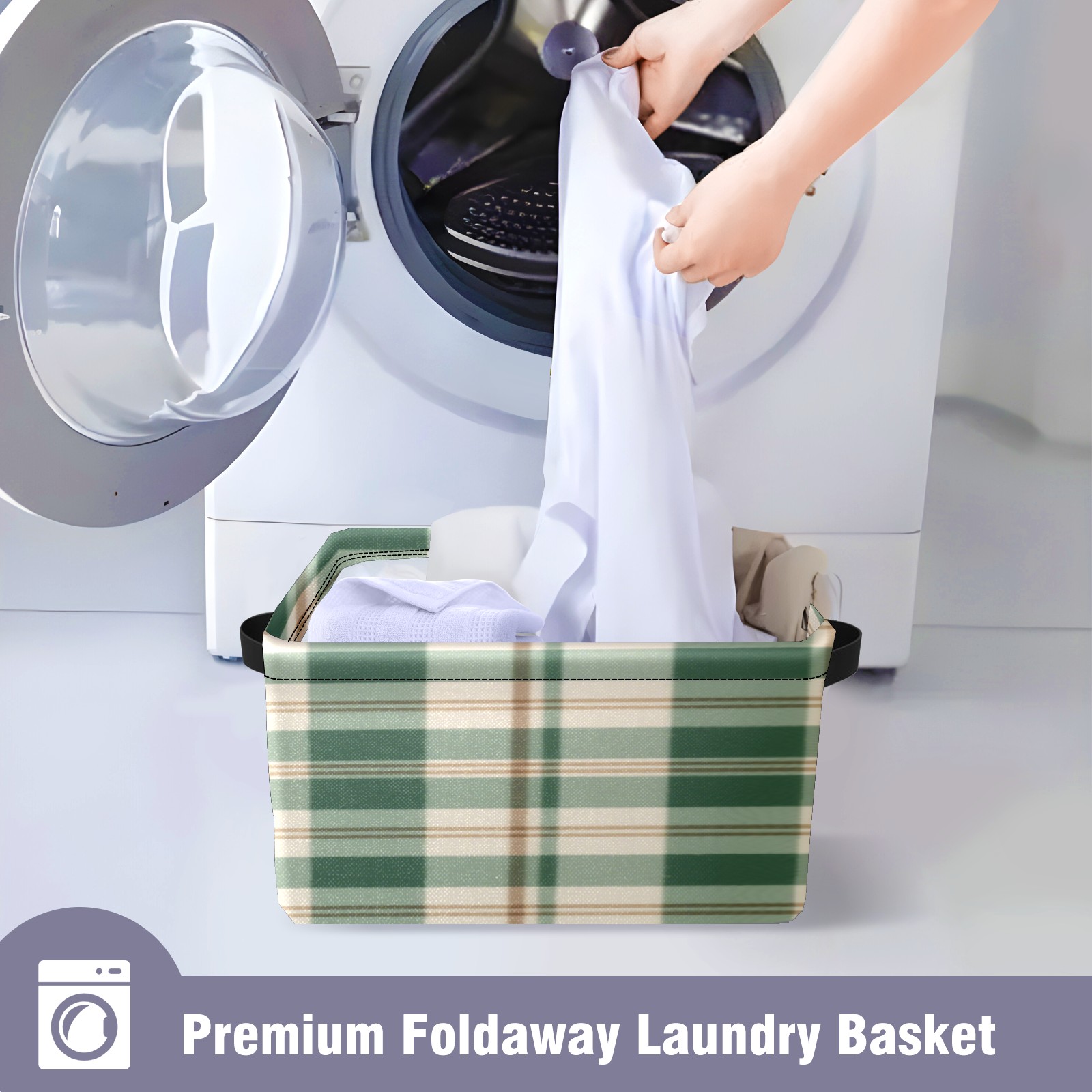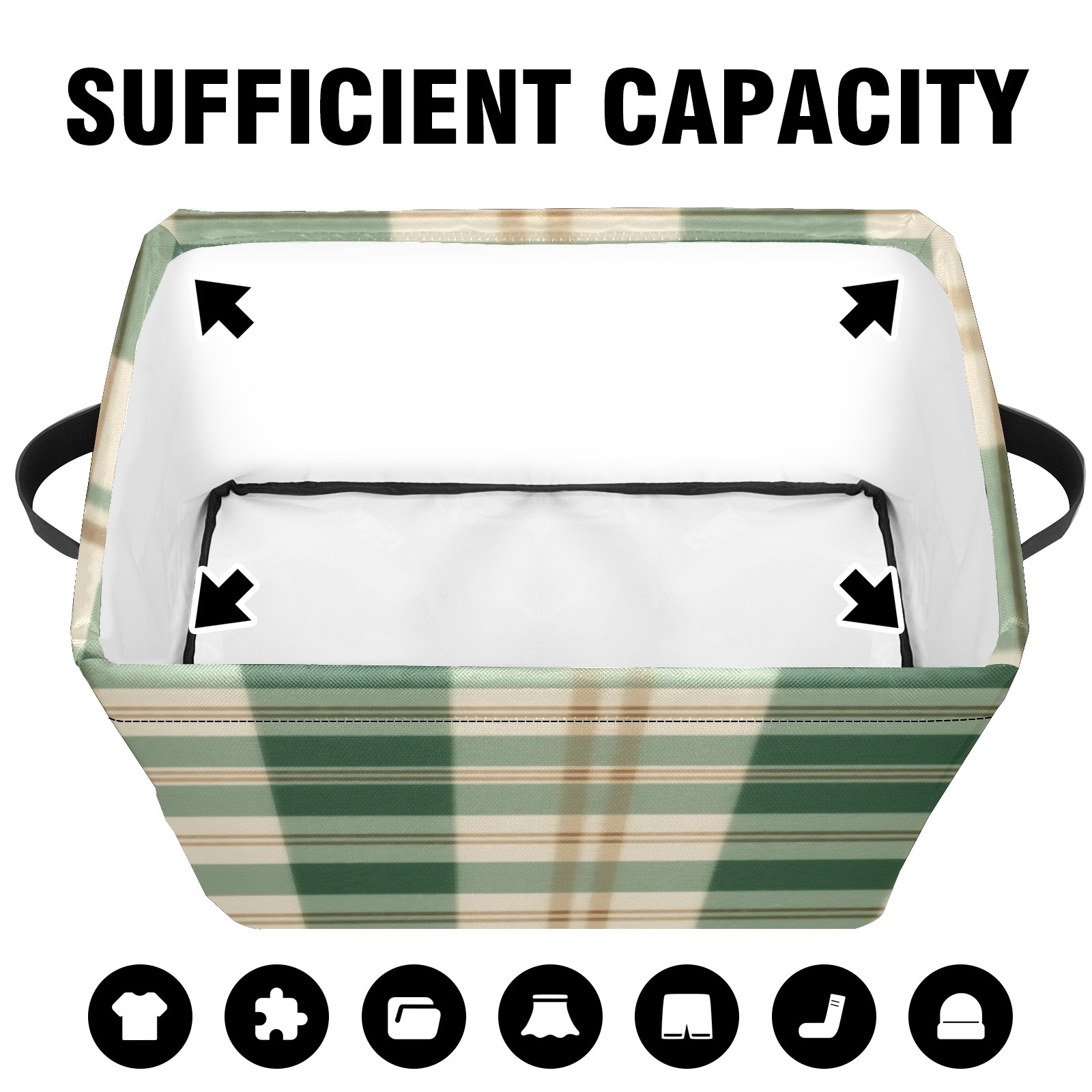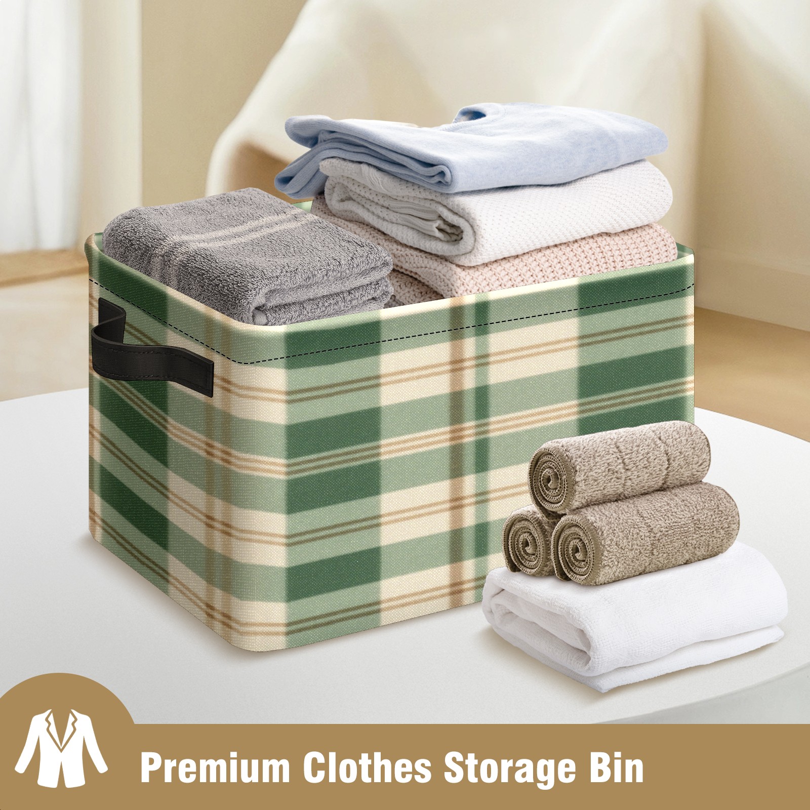 Foldable and Stackable Fabric Storage Basket for Home Organization with Handles, Decorative Closet Bins for Shelves, Laundry, and Toy Storage( Green And White Checkered)
