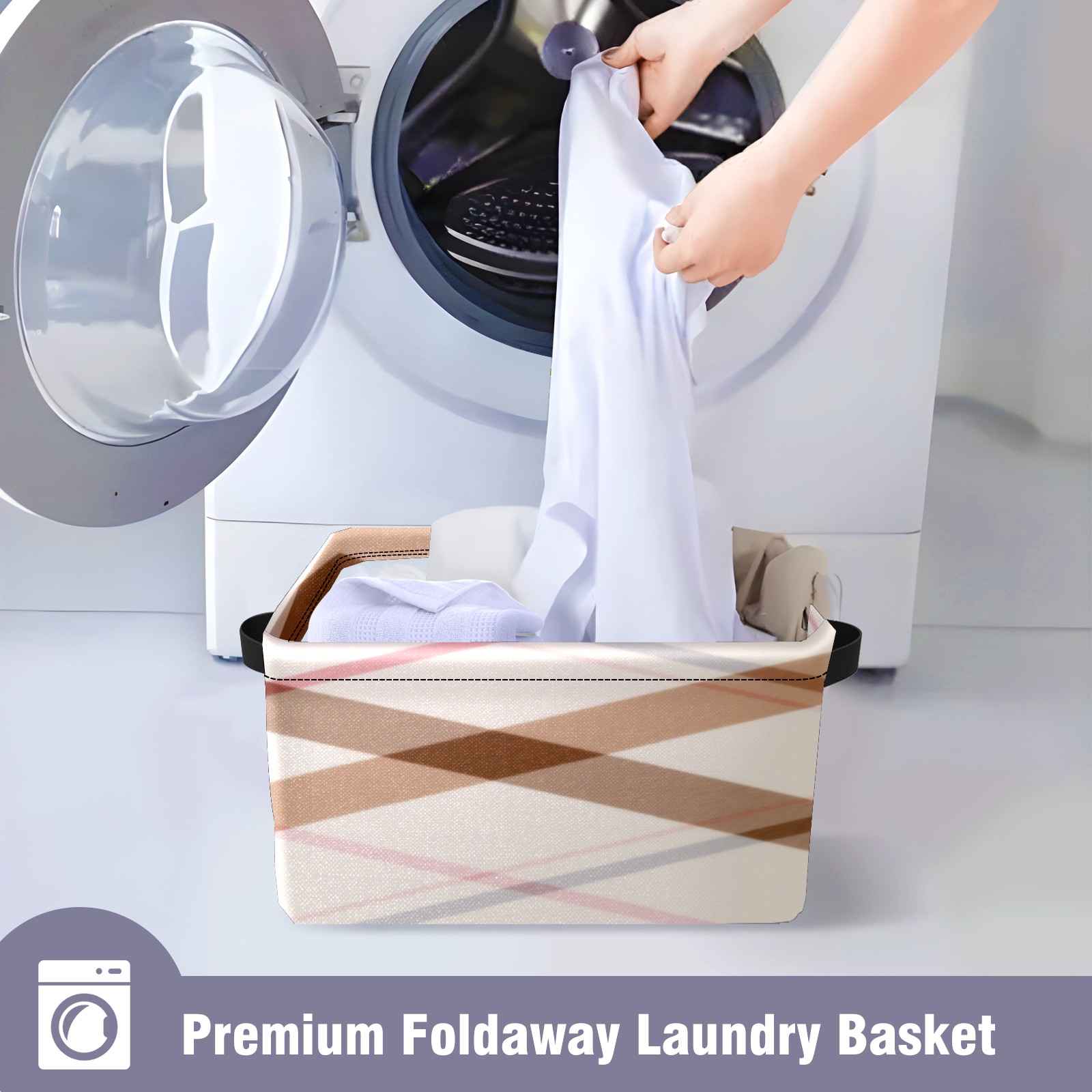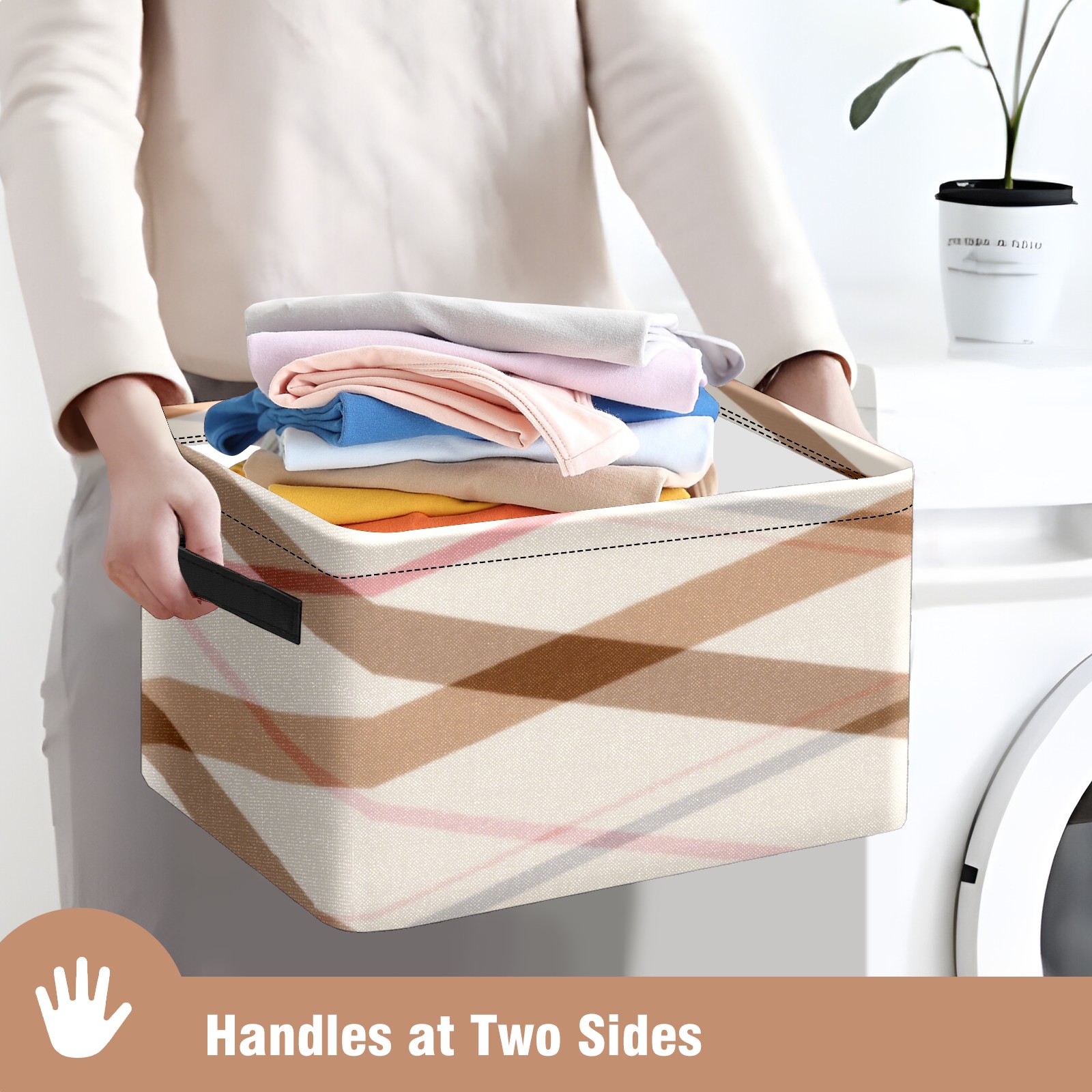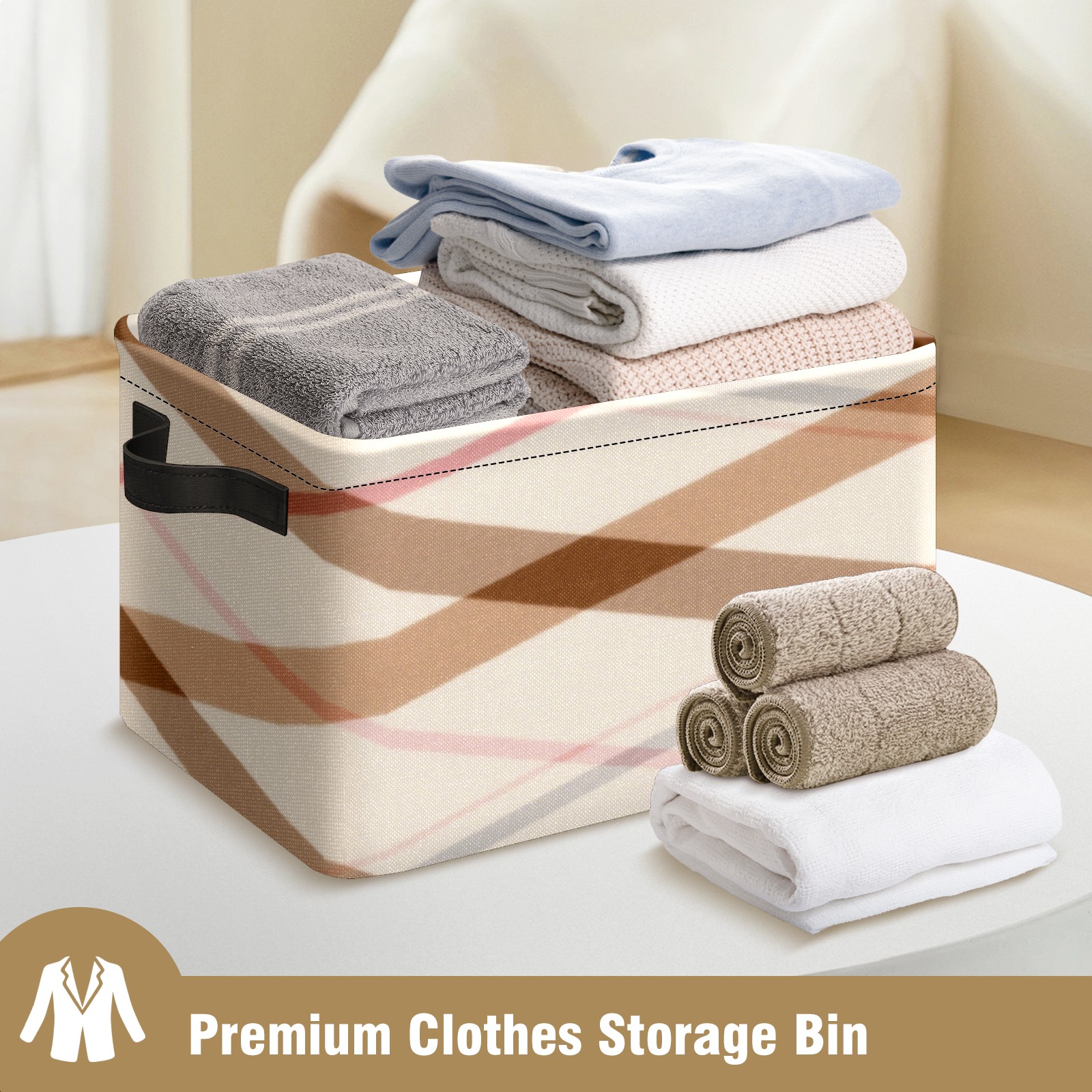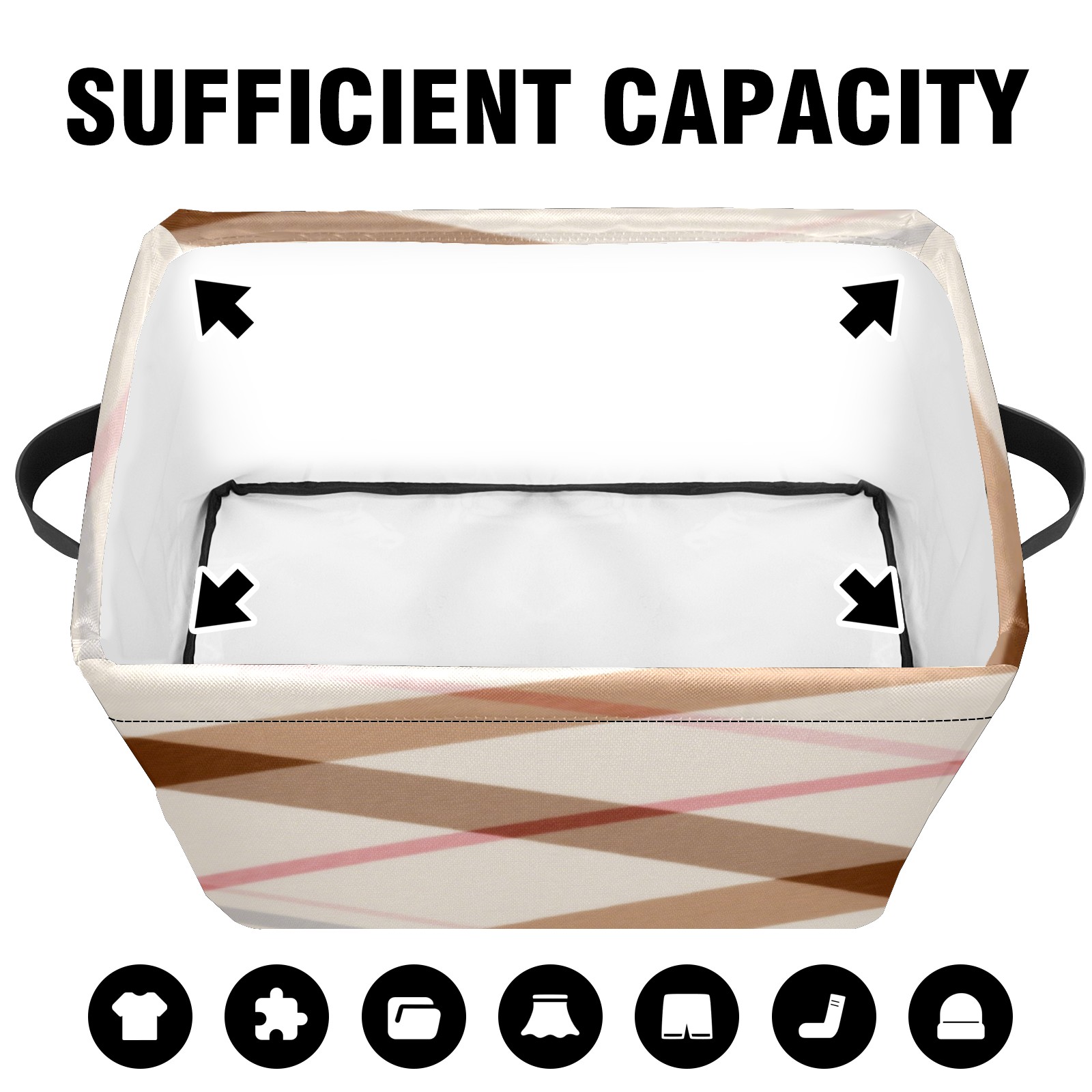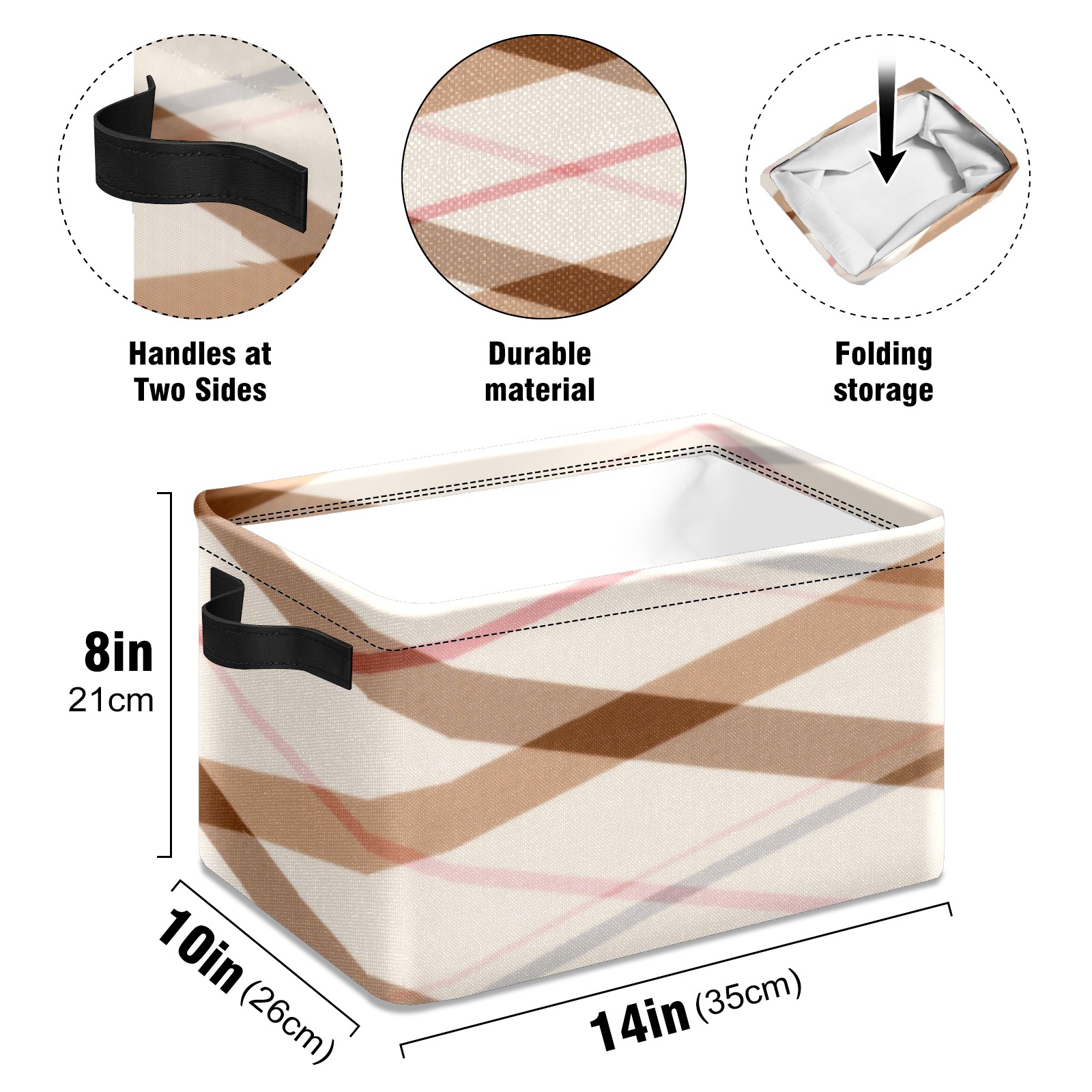 Foldable and Stackable Fabric Storage Basket for Home Organization with Handles, Decorative Closet Bins for Shelves, Laundry, and Toy Storage( Brown Checkered)
