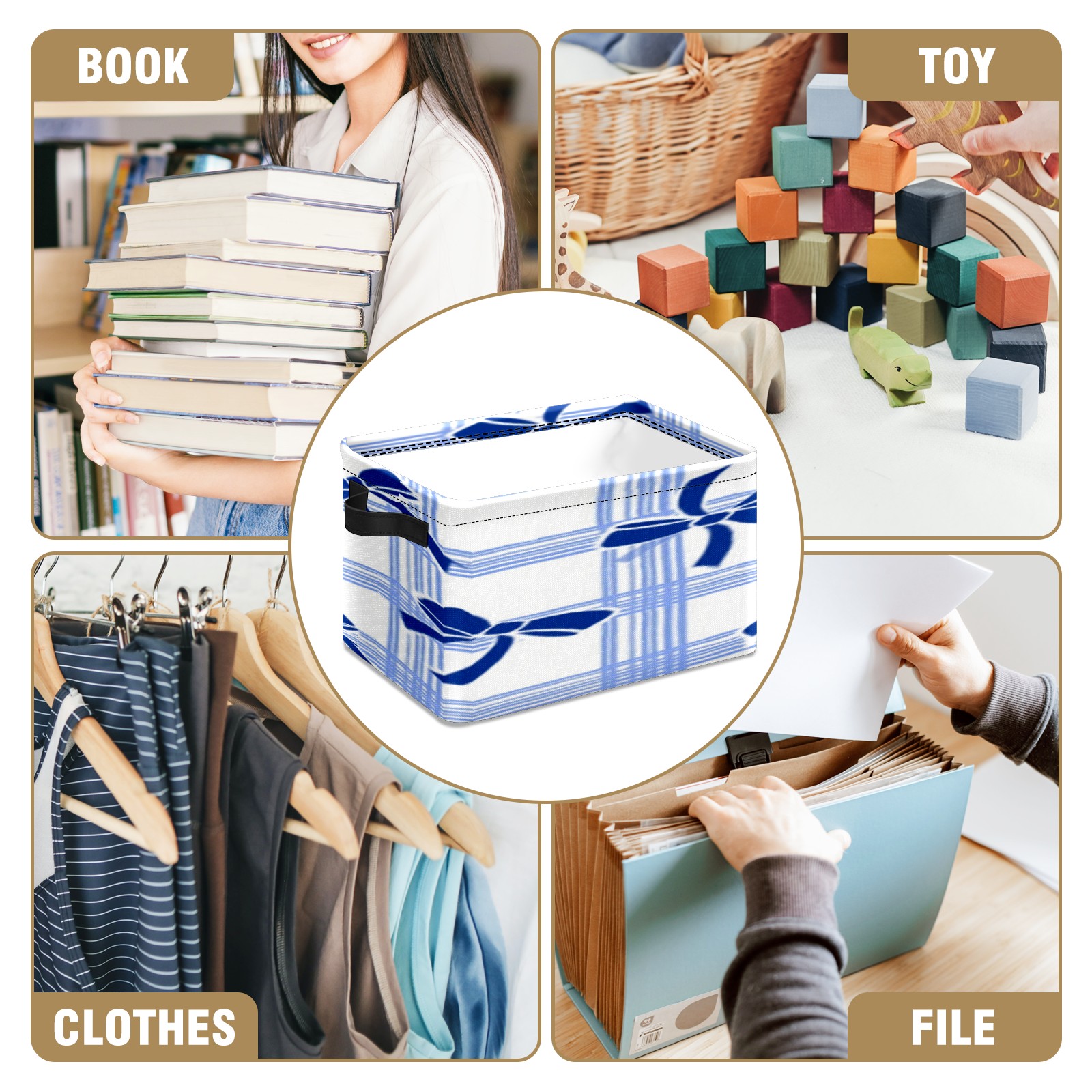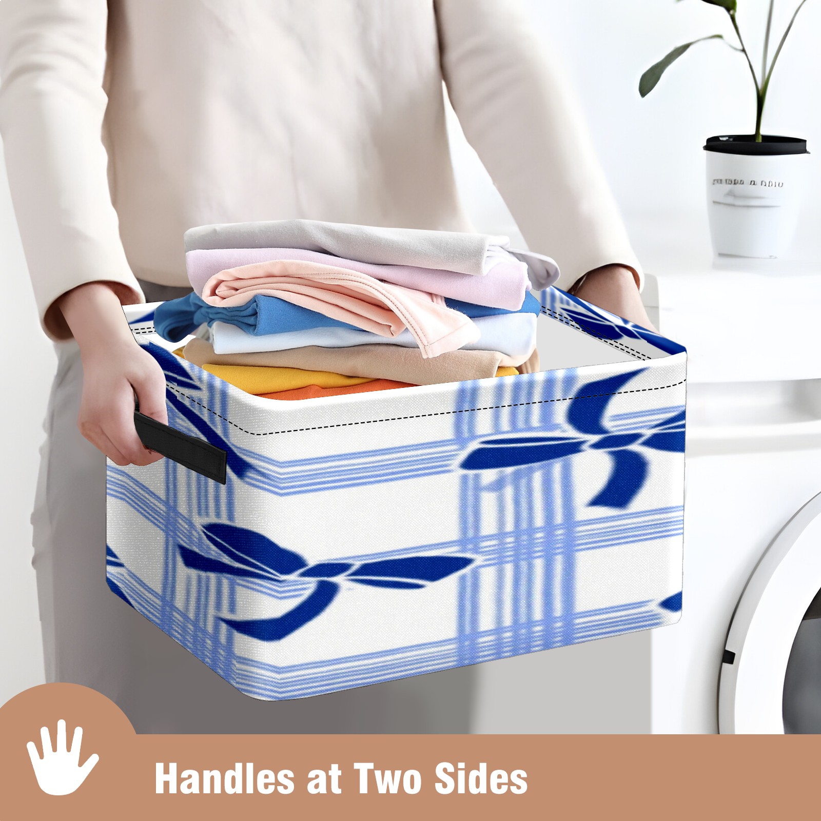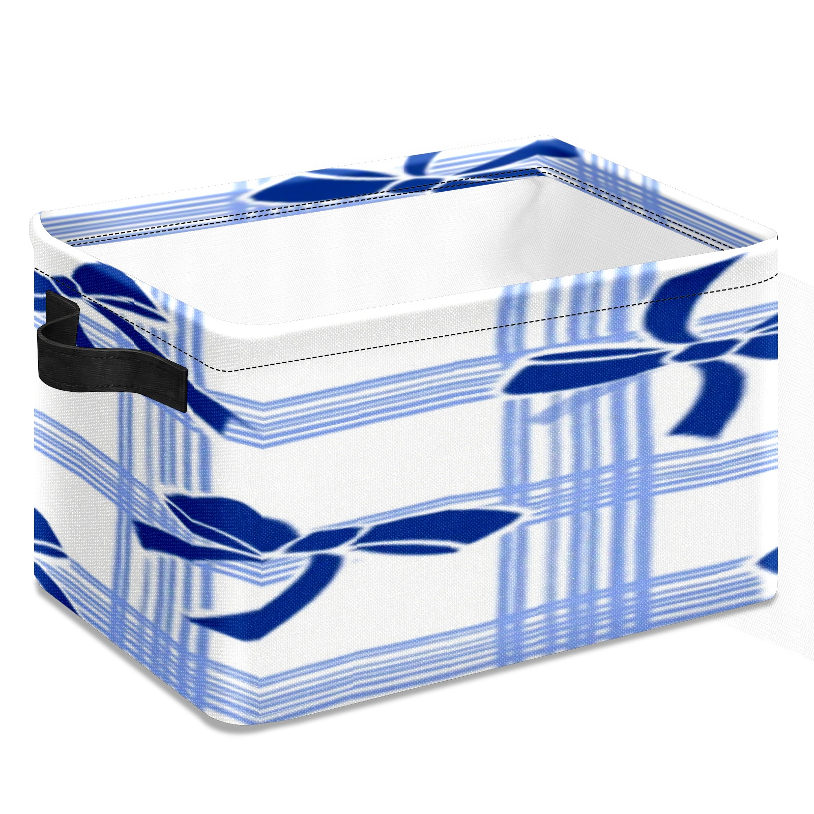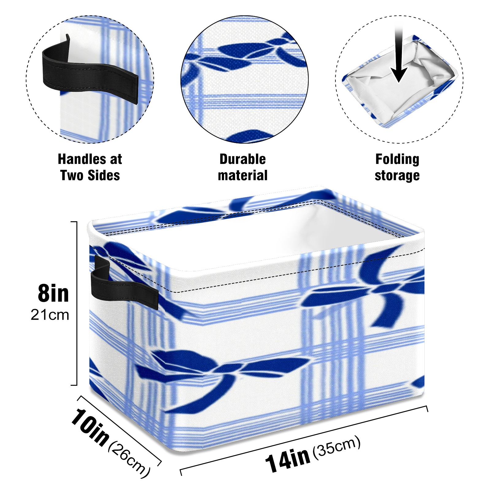 Foldable and Stackable Fabric Storage Basket for Home Organization with Handles, Decorative Closet Bins for Shelves, Laundry, and Toy Storage( Blue White Checkered And Bow)