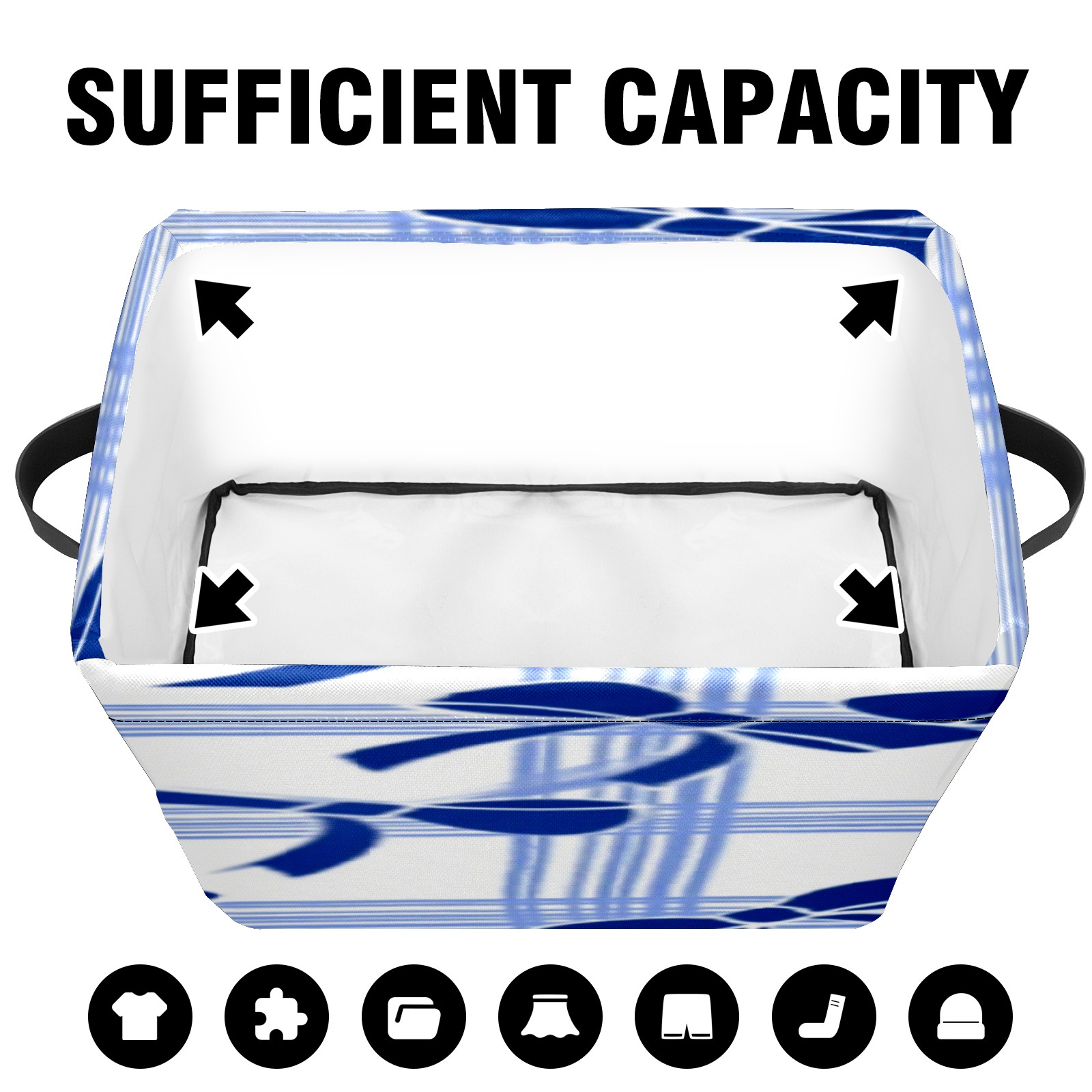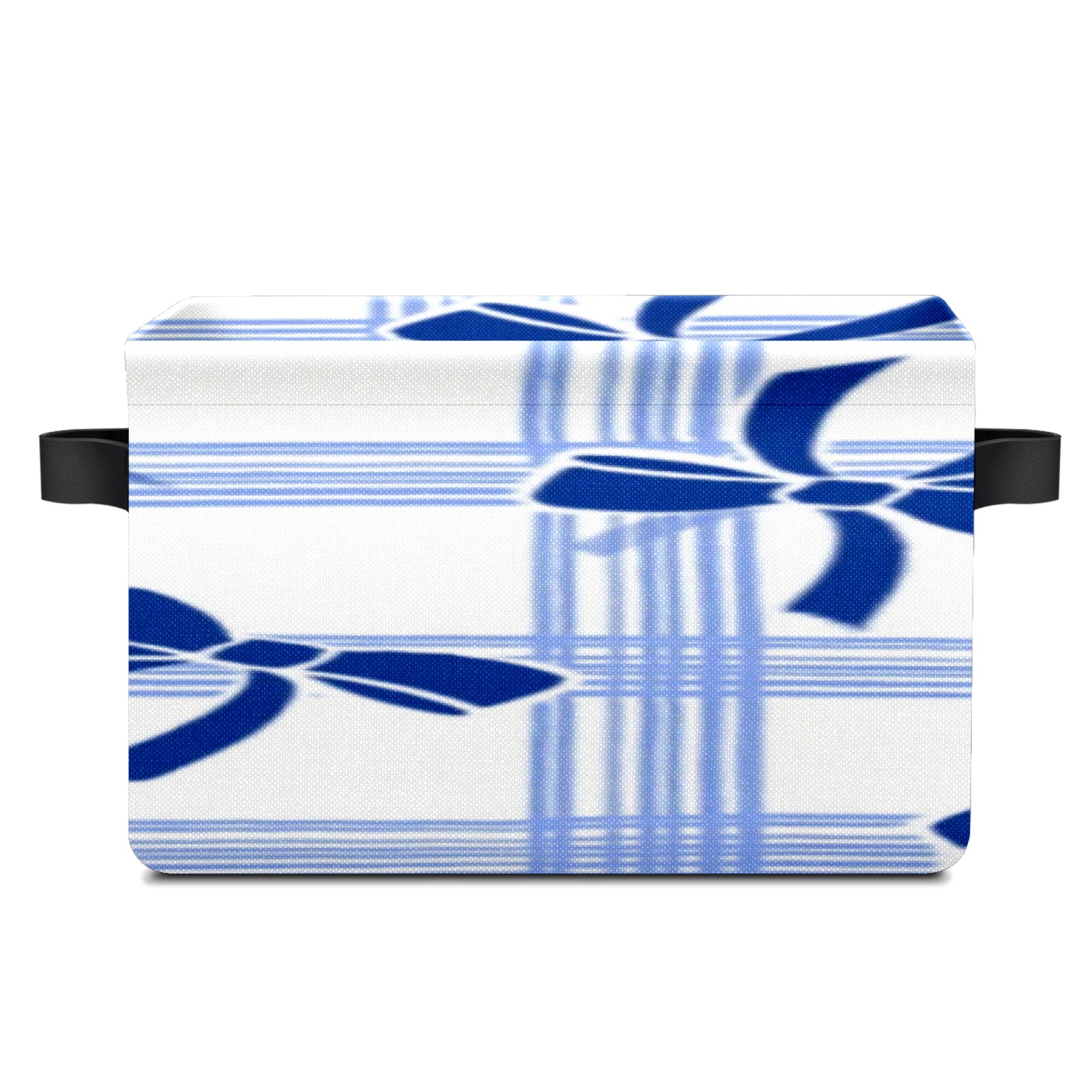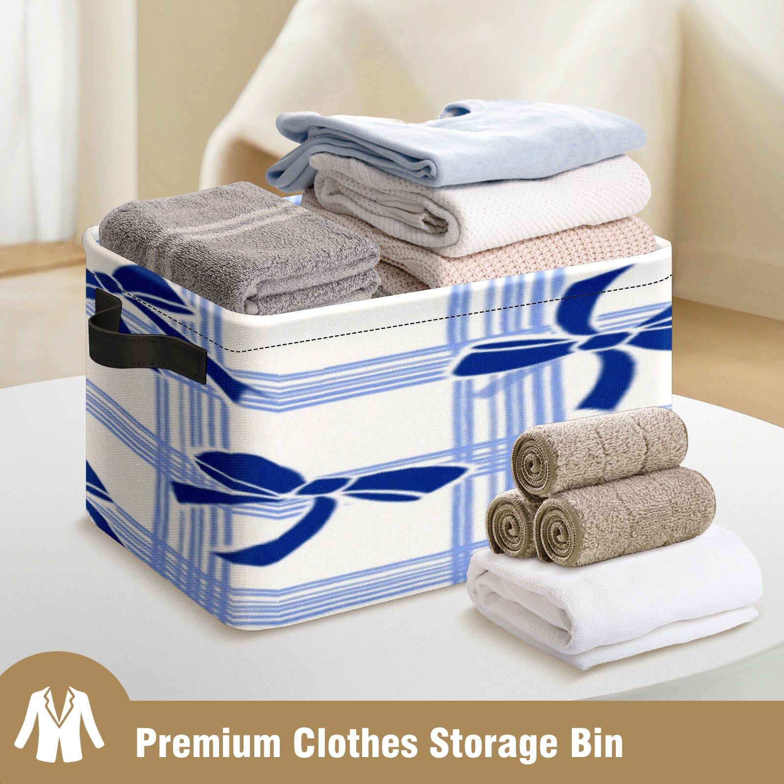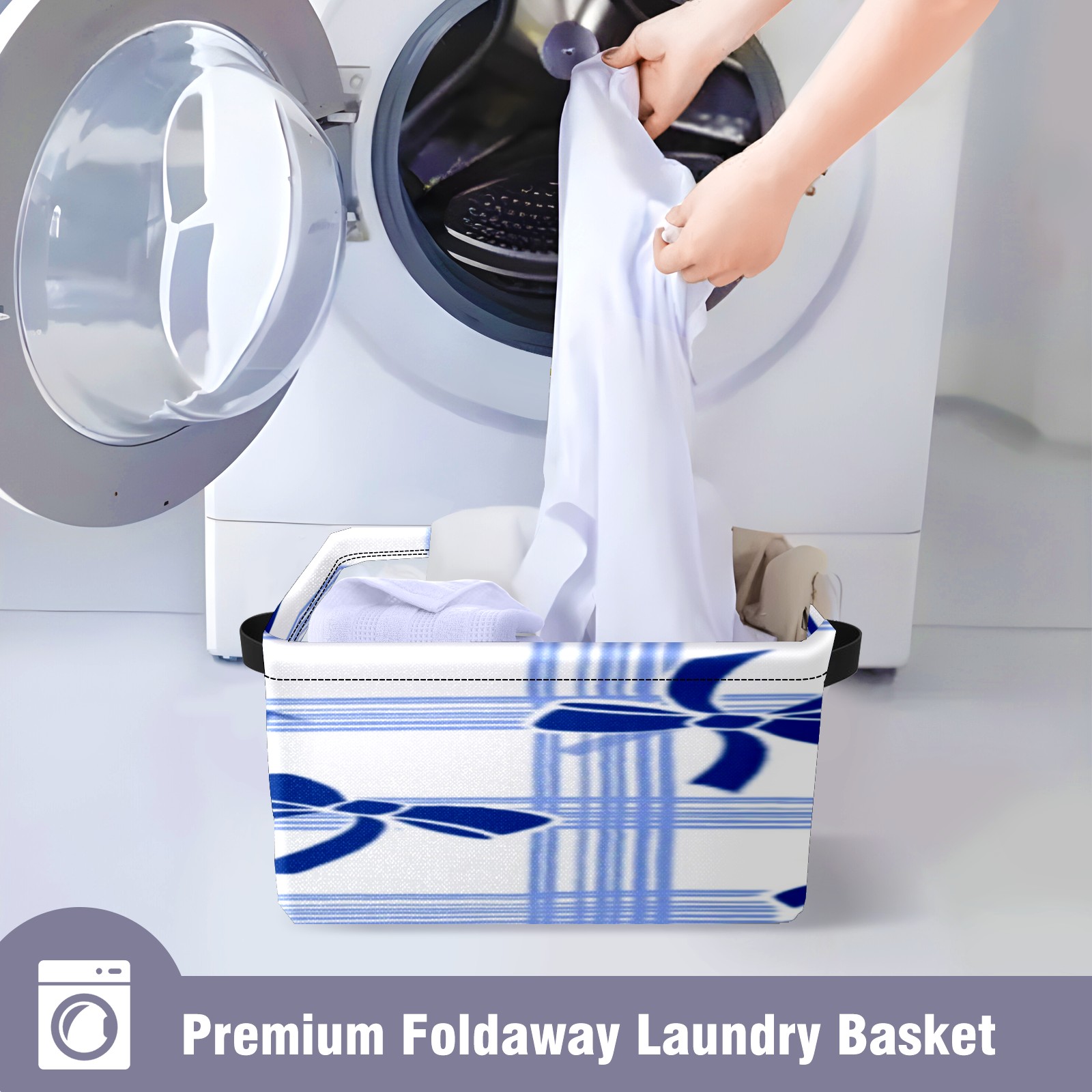 Foldable and Stackable Fabric Storage Basket for Home Organization with Handles, Decorative Closet Bins for Shelves, Laundry, and Toy Storage( Blue White Checkered And Bow)