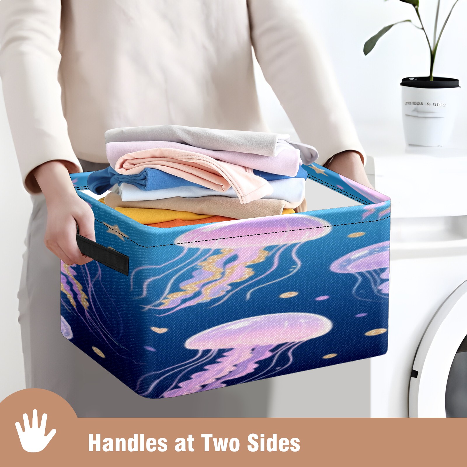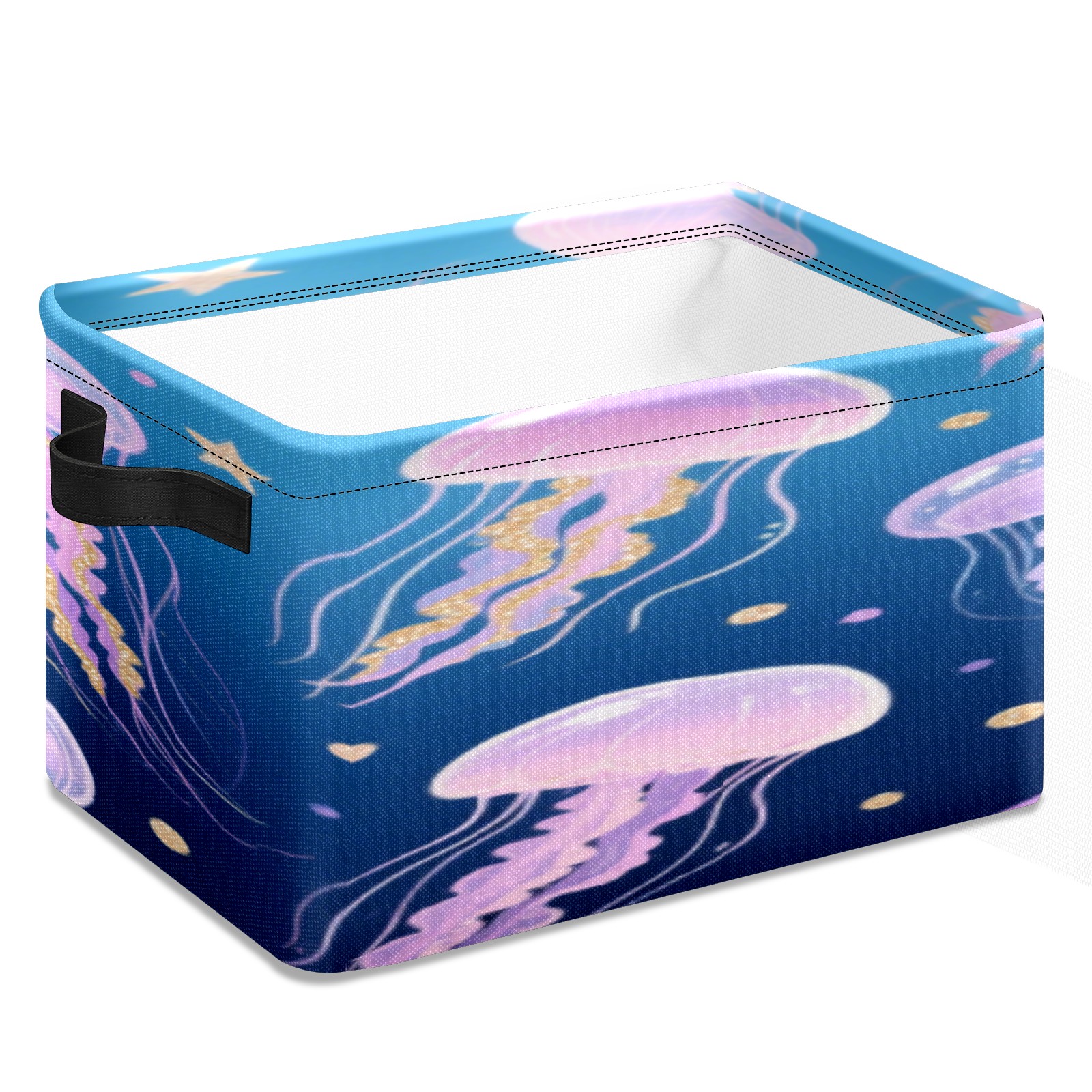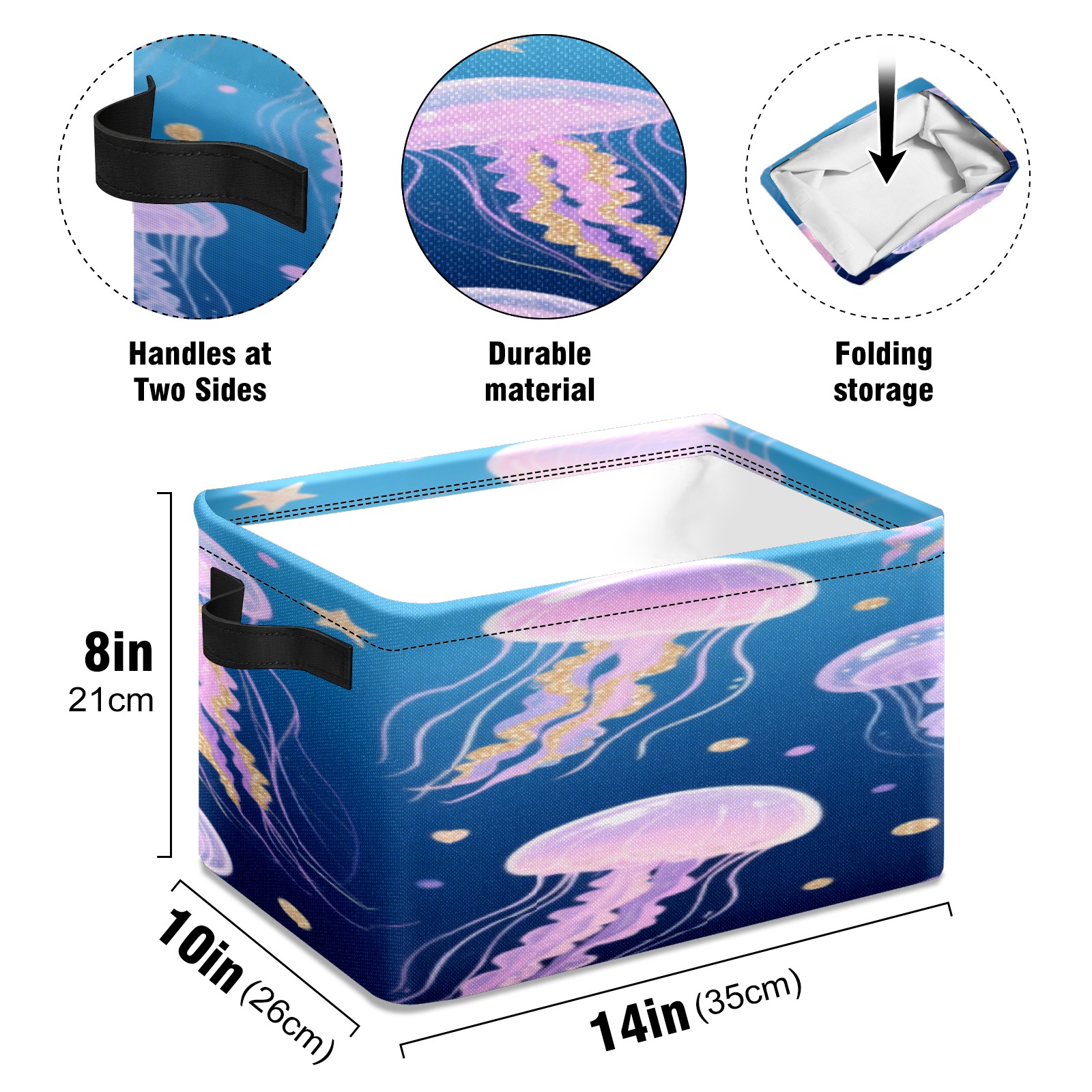 Foldable and Stackable Fabric Storage Basket for Home Organization with Handles, Decorative Closet Bins for Shelves, Laundry, and Toy Storage( Jellyfish)