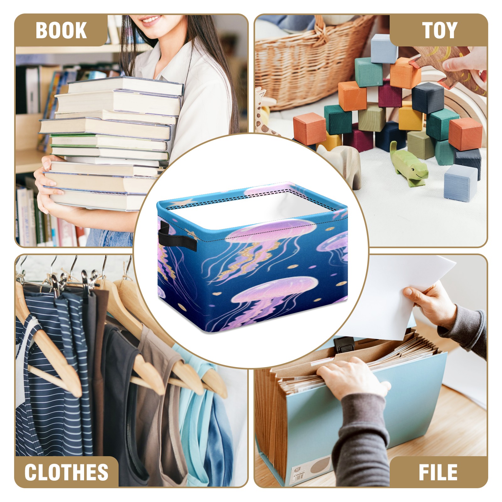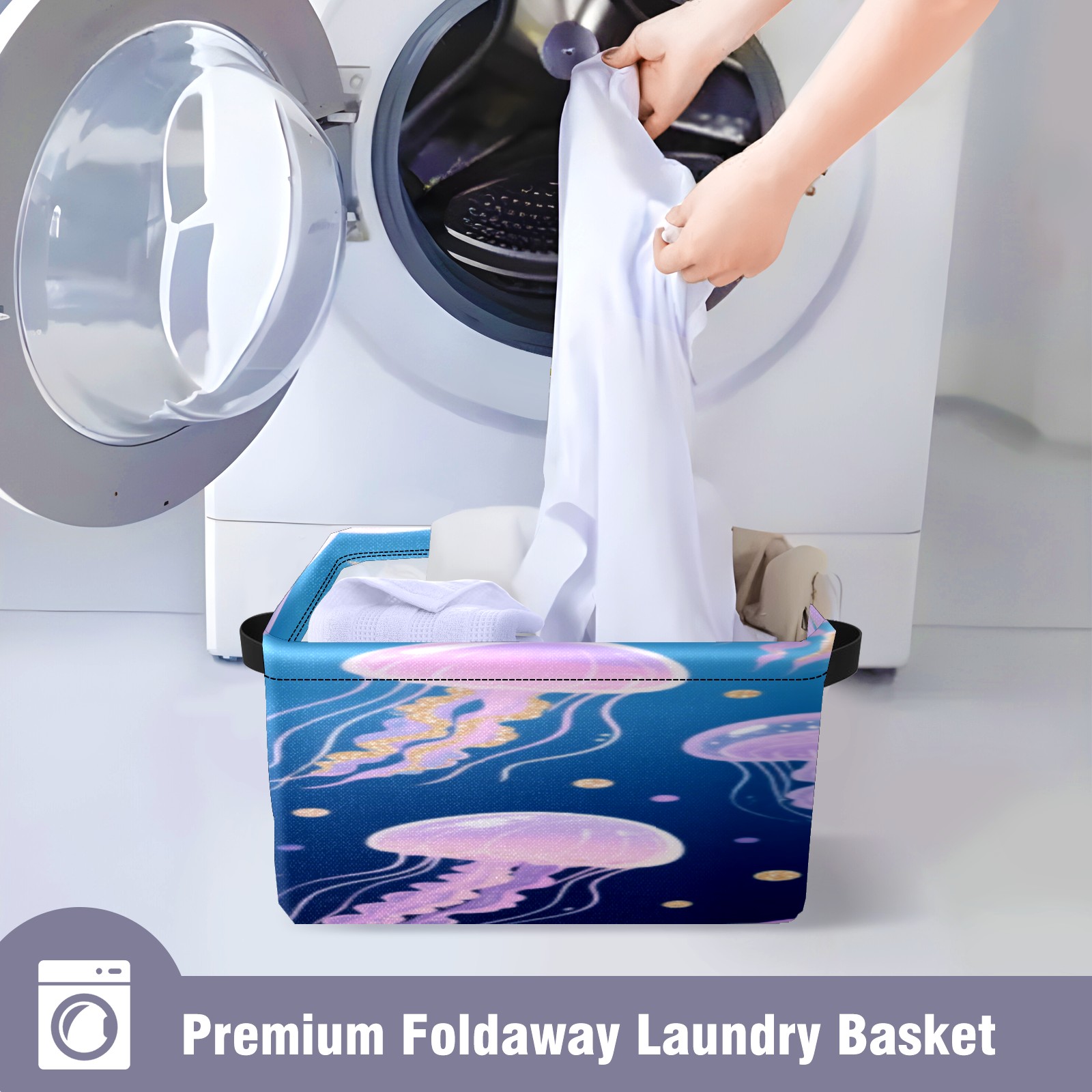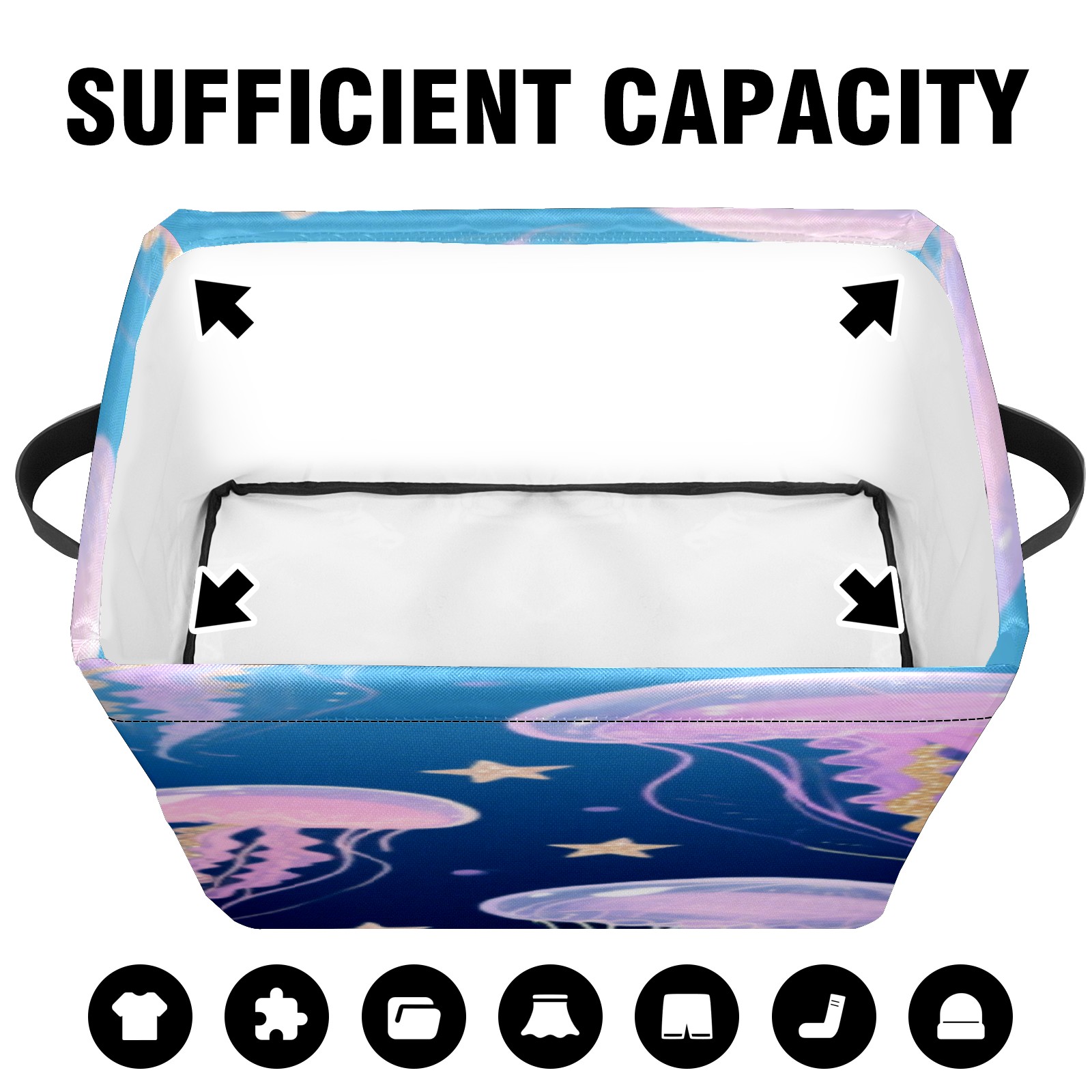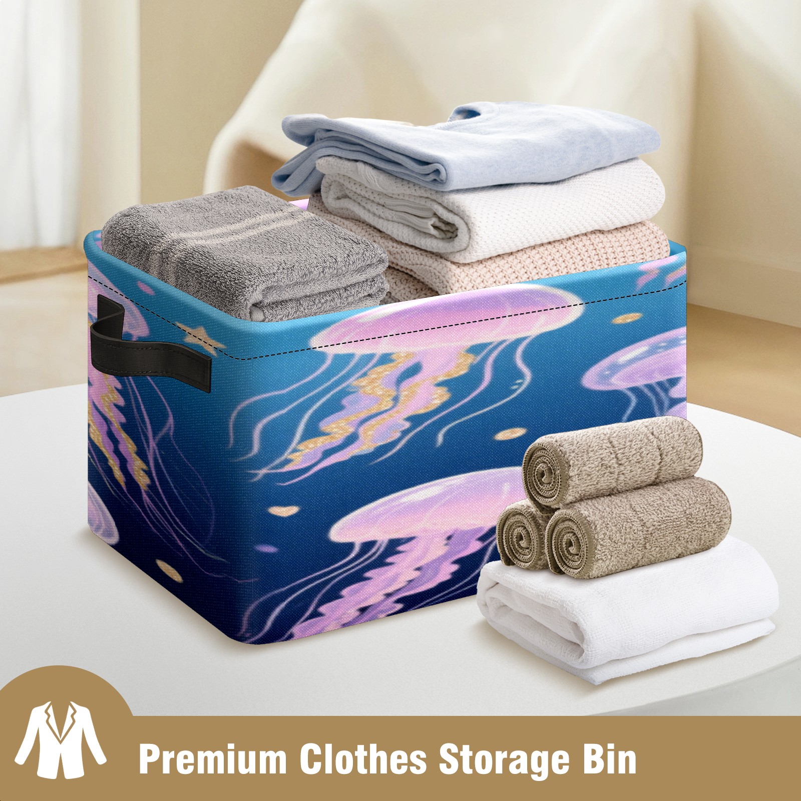 Foldable and Stackable Fabric Storage Basket for Home Organization with Handles, Decorative Closet Bins for Shelves, Laundry, and Toy Storage( Jellyfish)