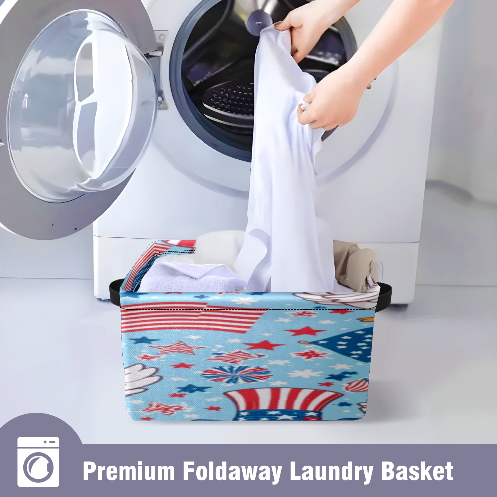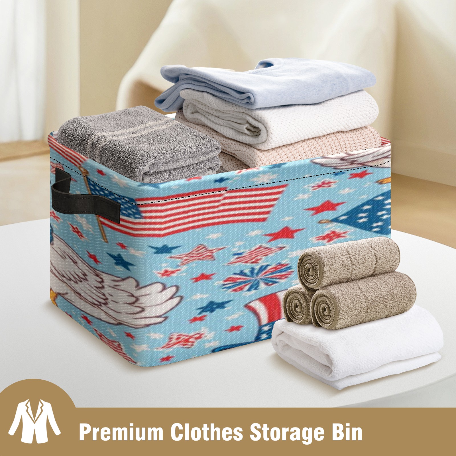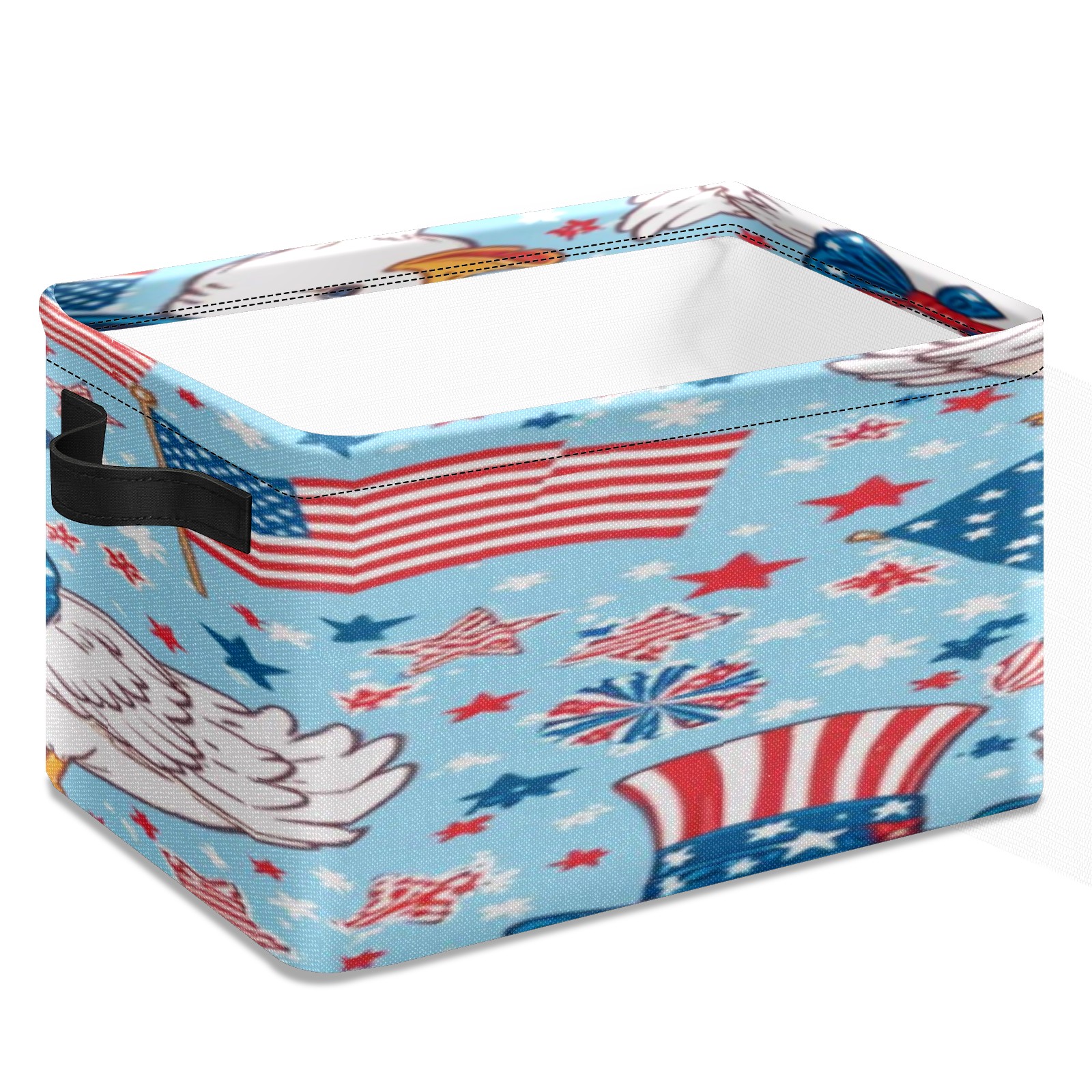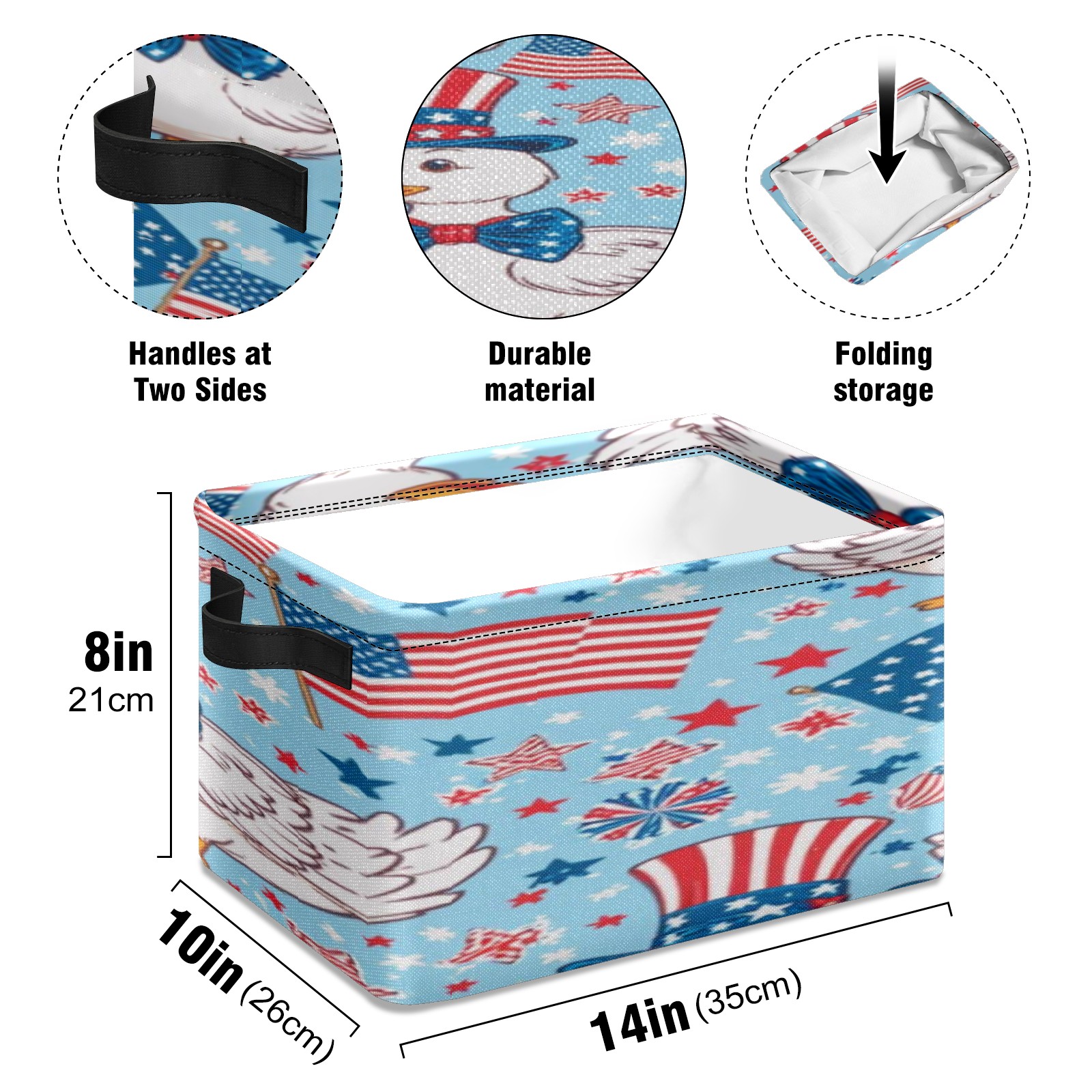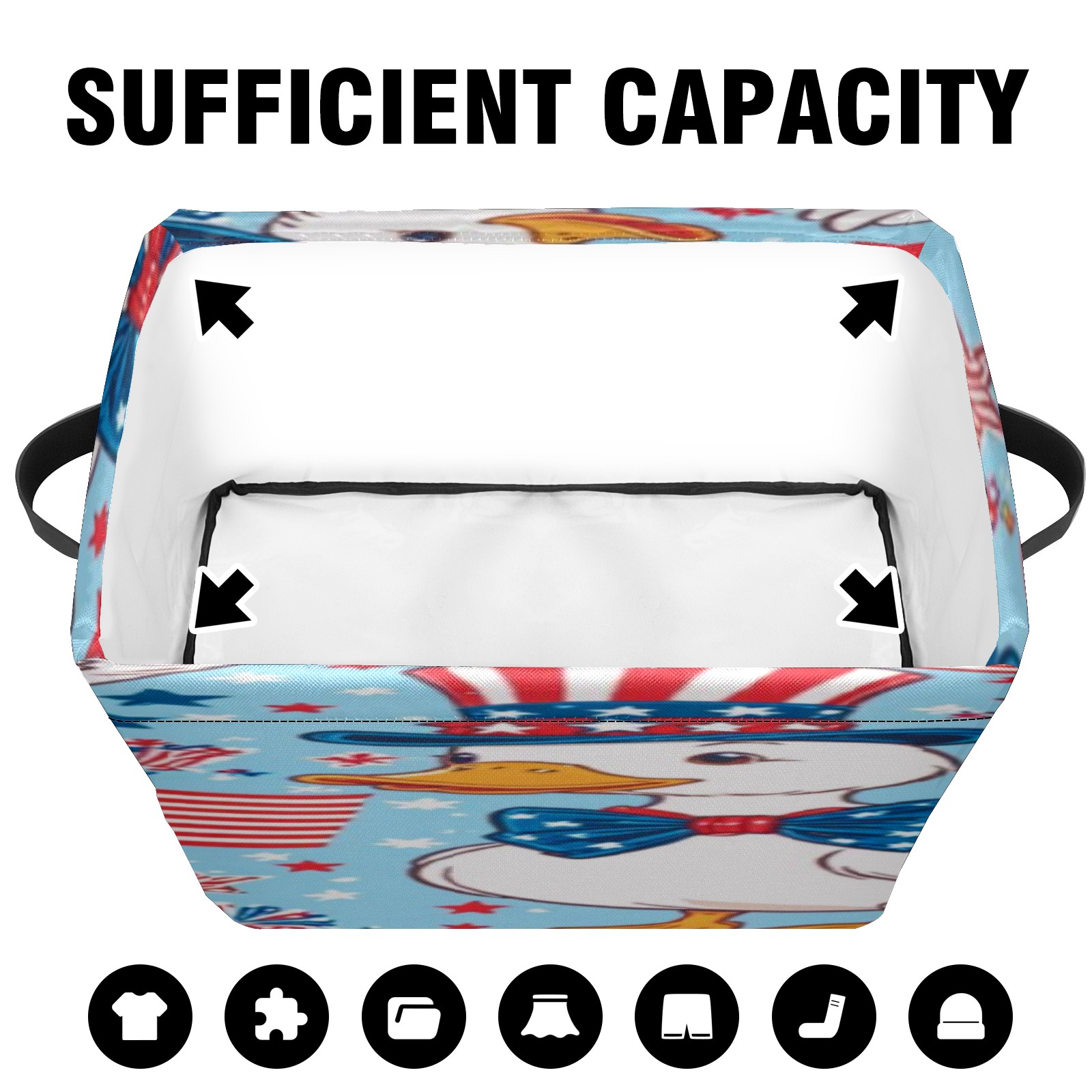Foldable and Stackable Fabric Storage Basket for Home Organization with Handles, Decorative Closet Bins for Shelves, Laundry, and Toy Storage( American Flag And Ducks)