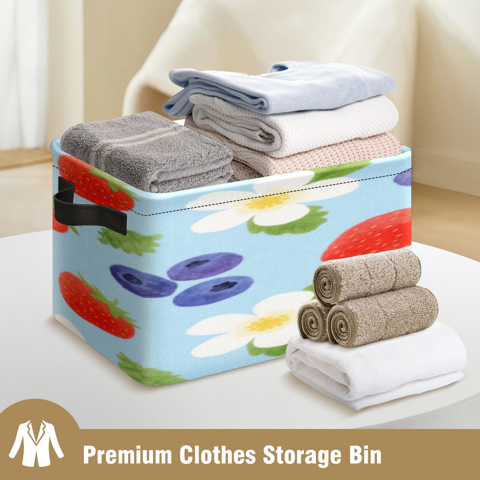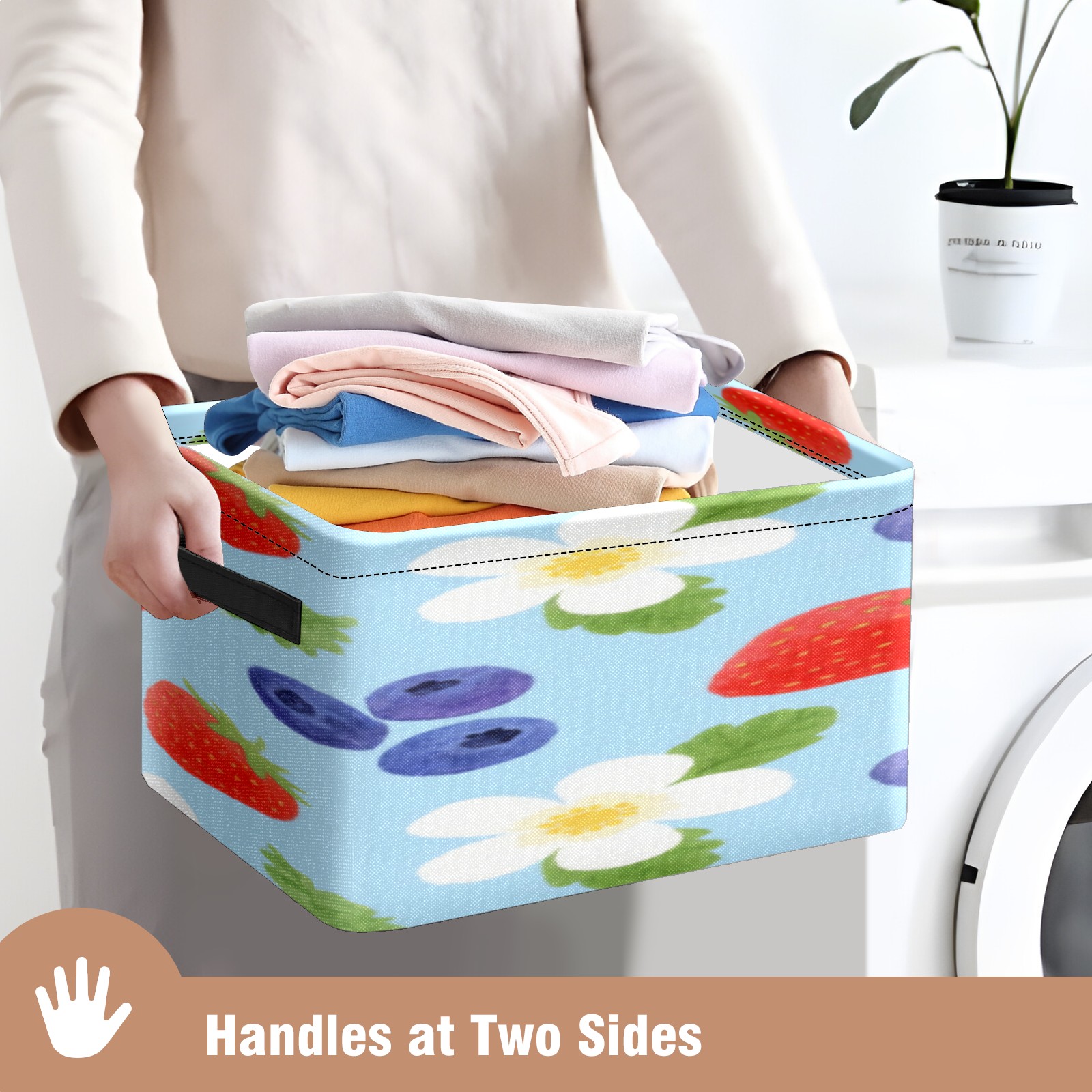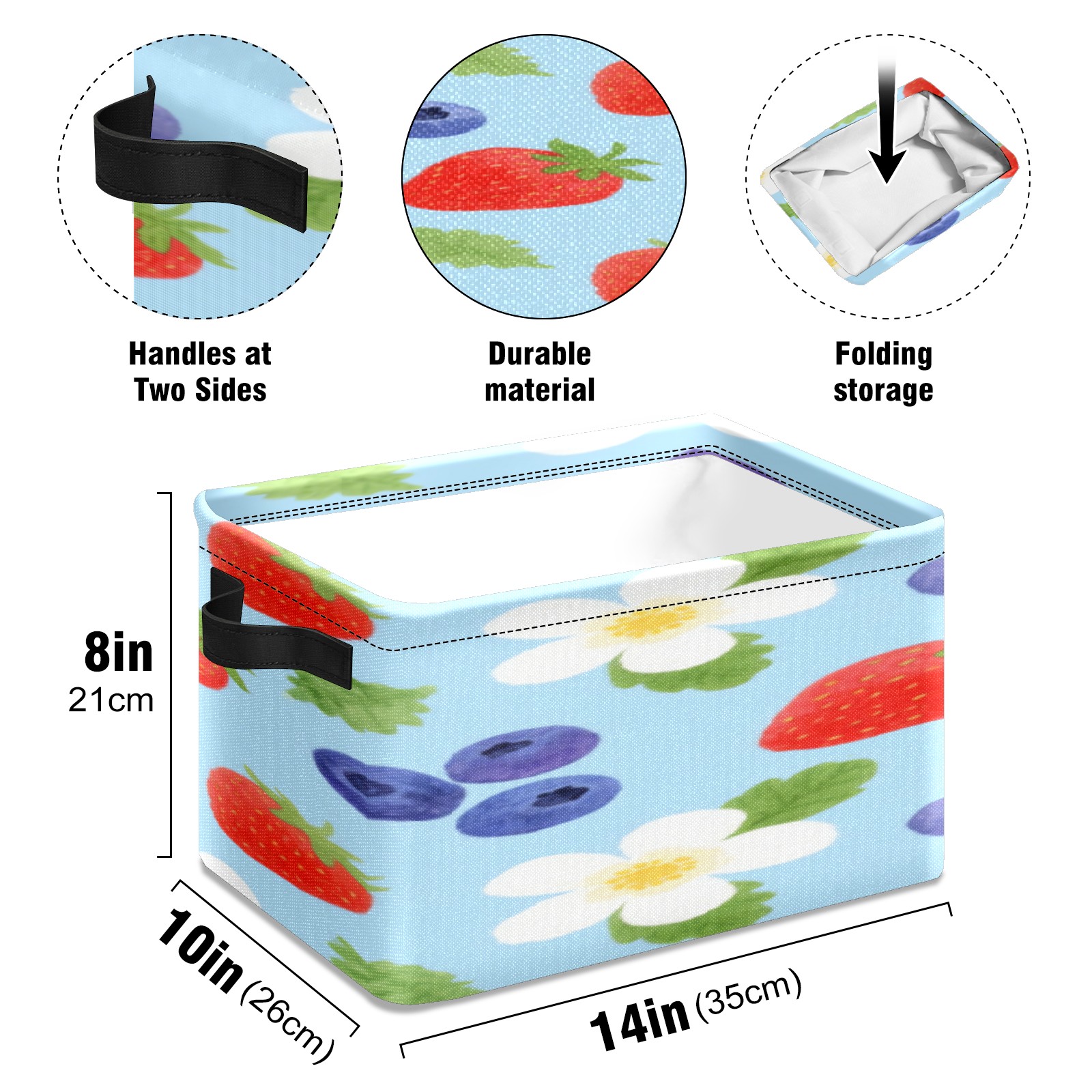 Foldable and Stackable Fabric Storage Basket for Home Organization with Handles, Decorative Closet Bins for Shelves, Laundry, and Toy Storage( Strawberry And Blueberry)