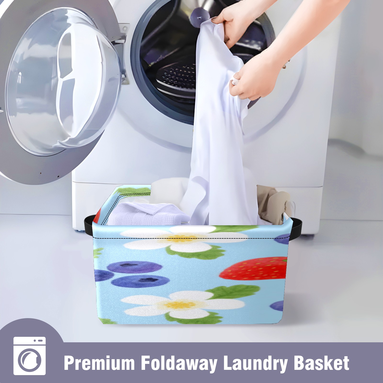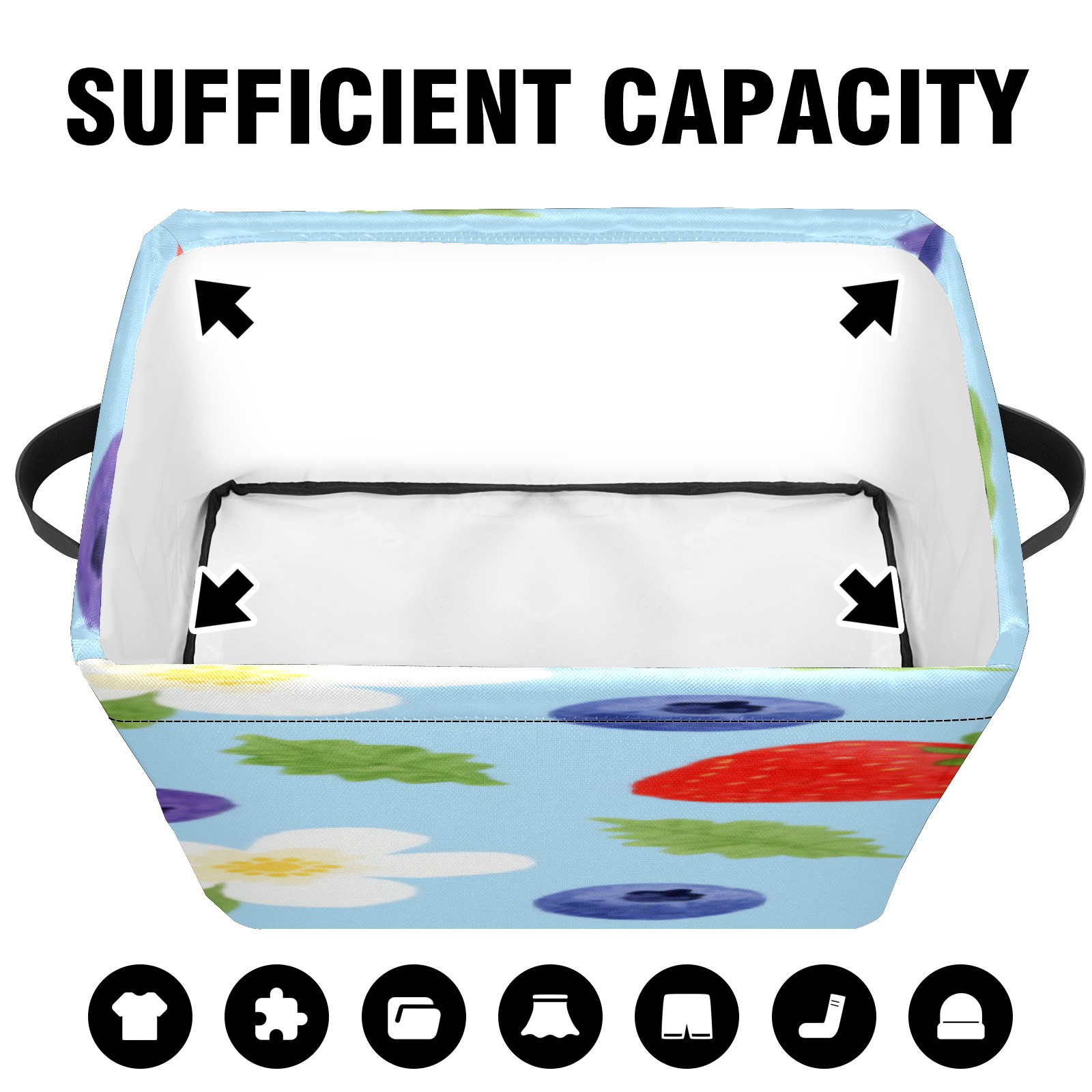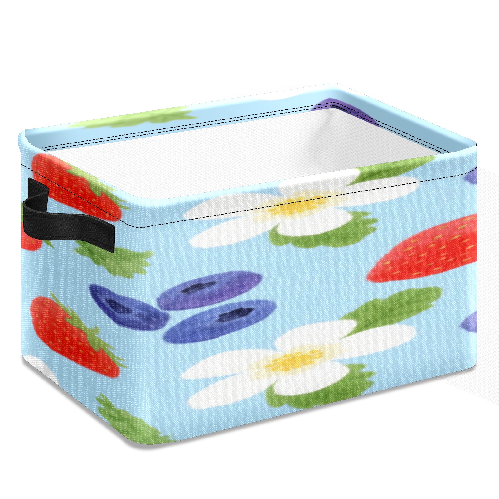 Foldable and Stackable Fabric Storage Basket for Home Organization with Handles, Decorative Closet Bins for Shelves, Laundry, and Toy Storage( Strawberry And Blueberry)