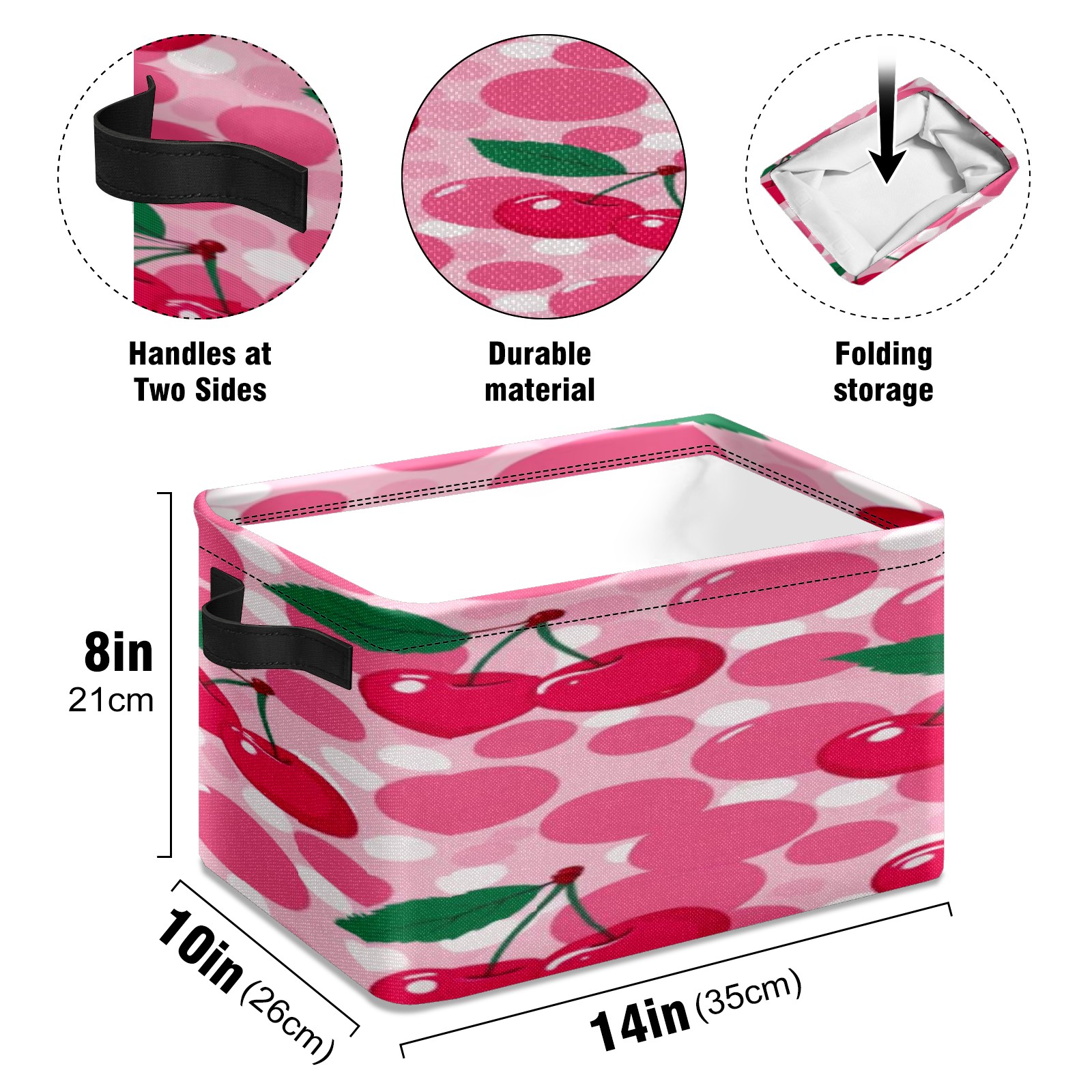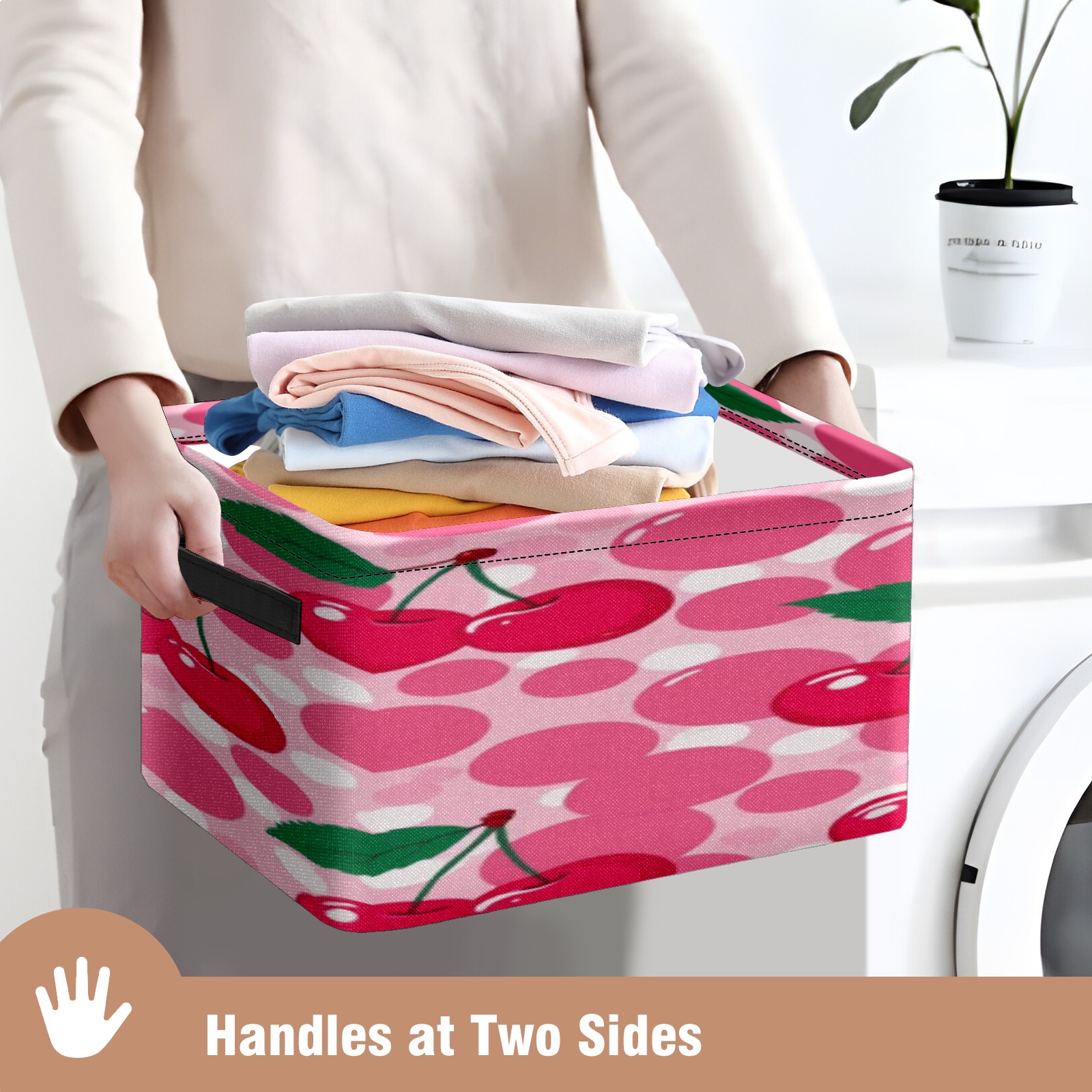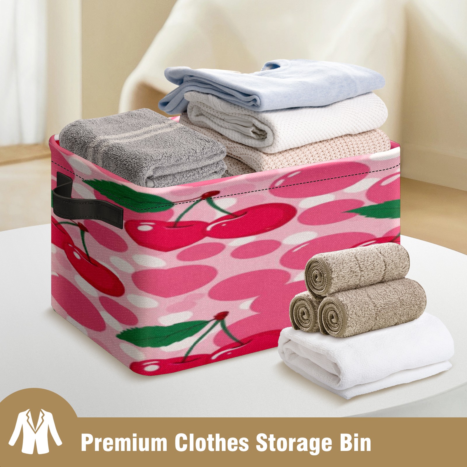 Foldable and Stackable Fabric Storage Basket for Home Organization with Handles, Decorative Closet Bins for Shelves, Laundry, and Toy Storage( Pink Cherry)