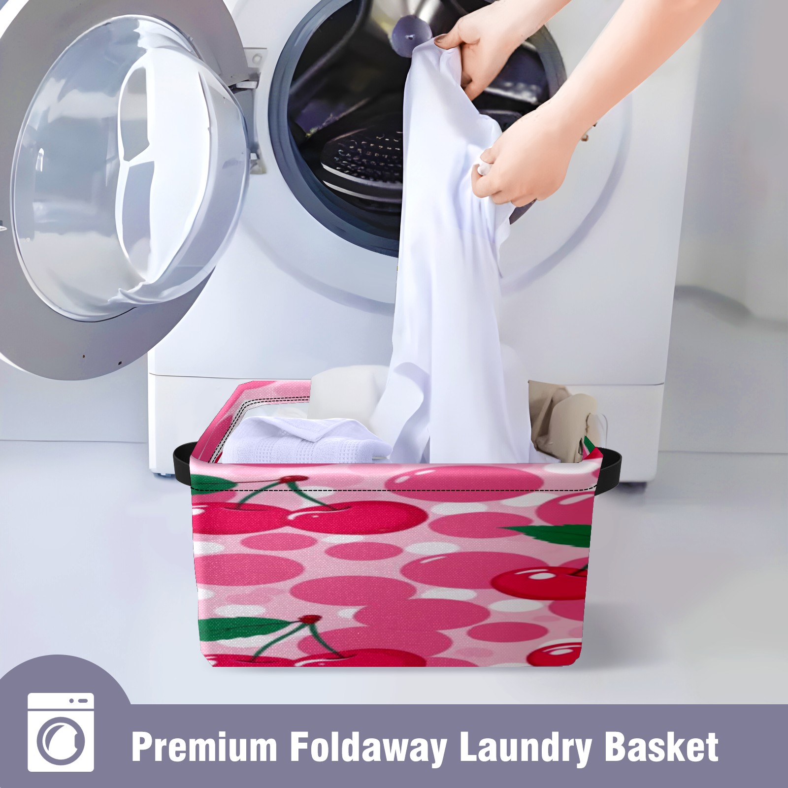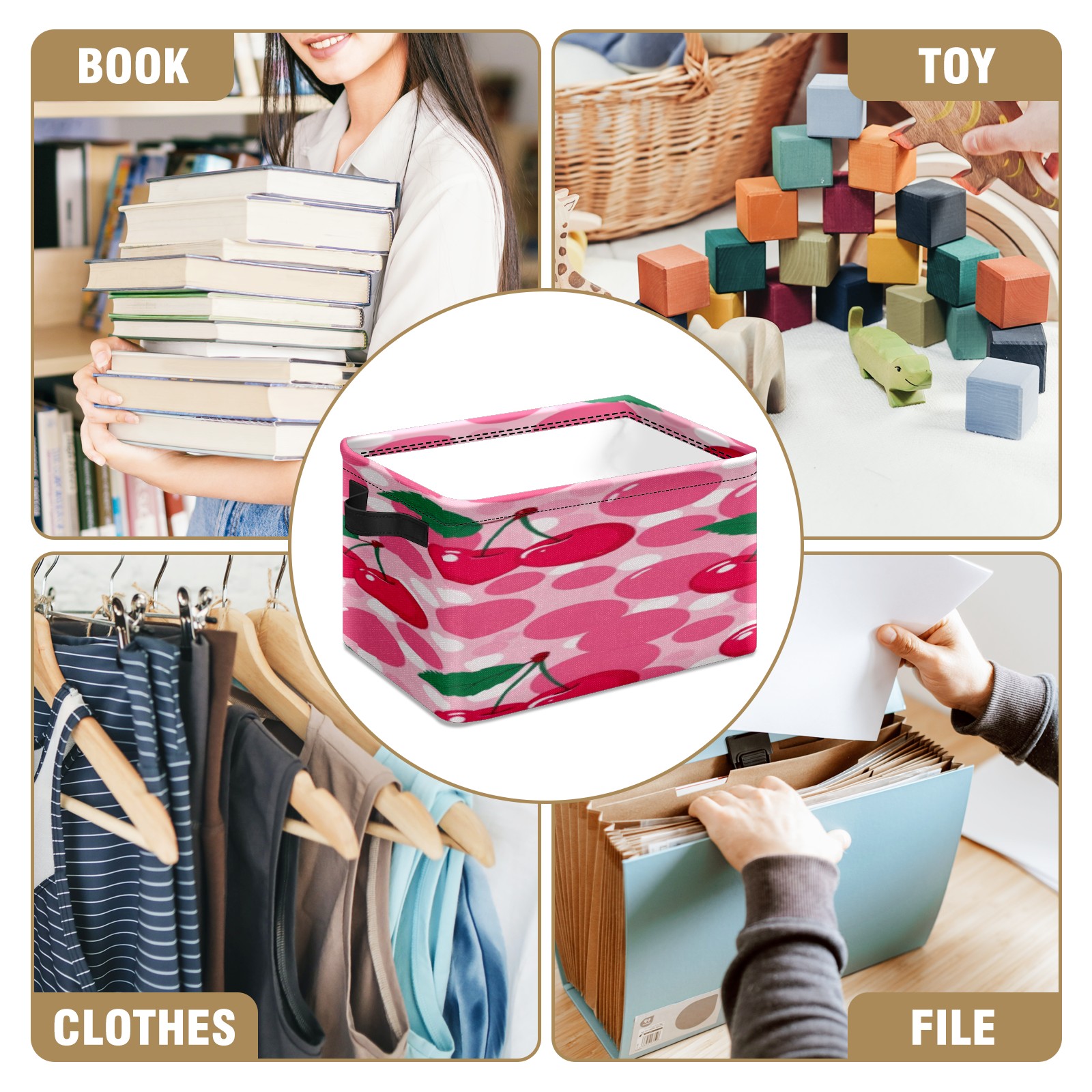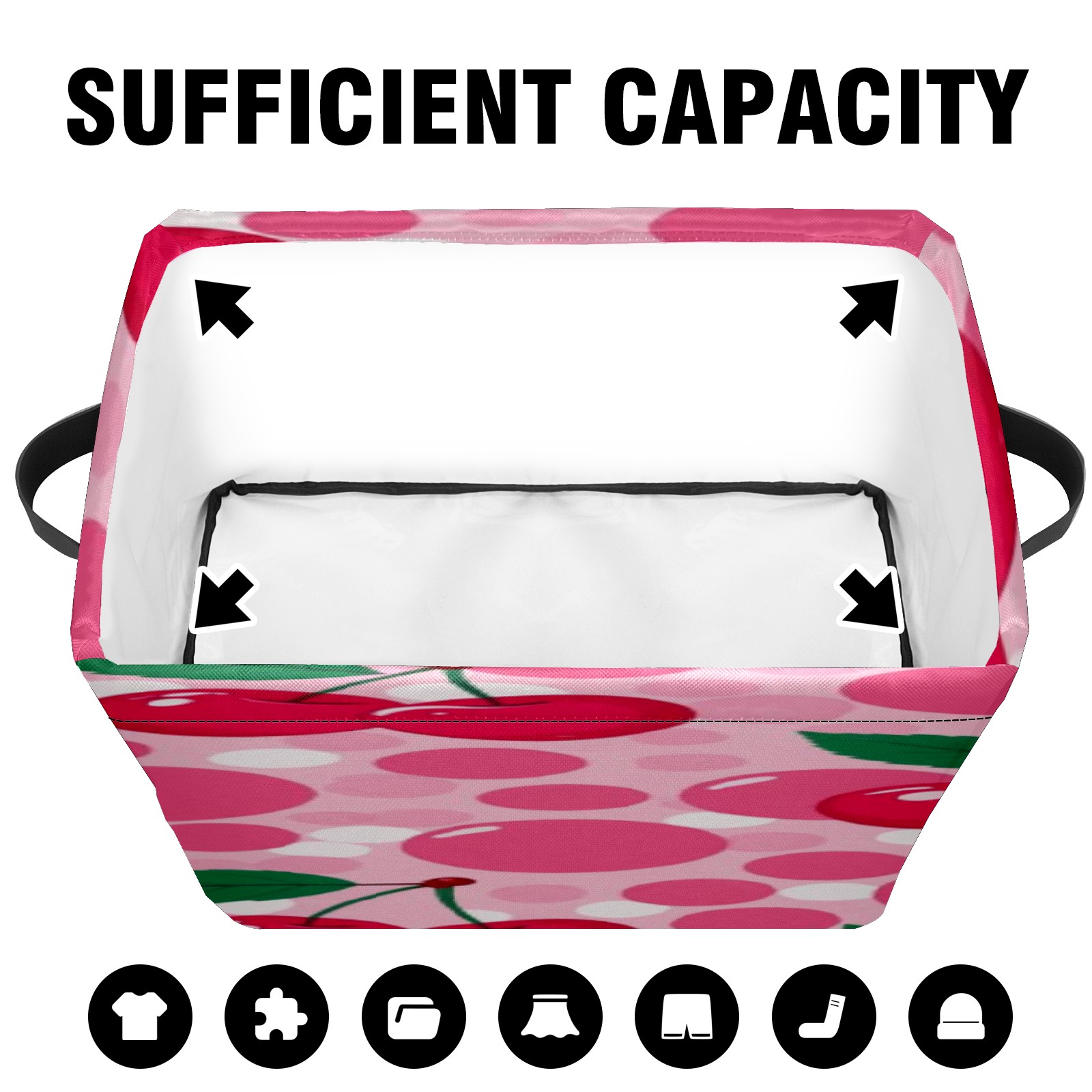 Foldable and Stackable Fabric Storage Basket for Home Organization with Handles, Decorative Closet Bins for Shelves, Laundry, and Toy Storage( Pink Cherry)