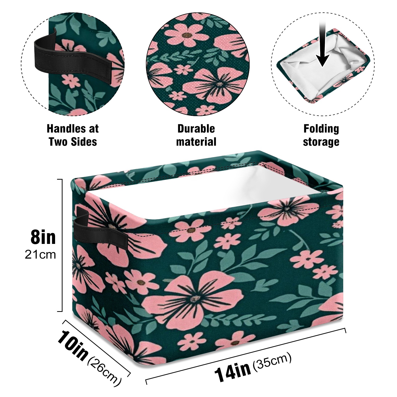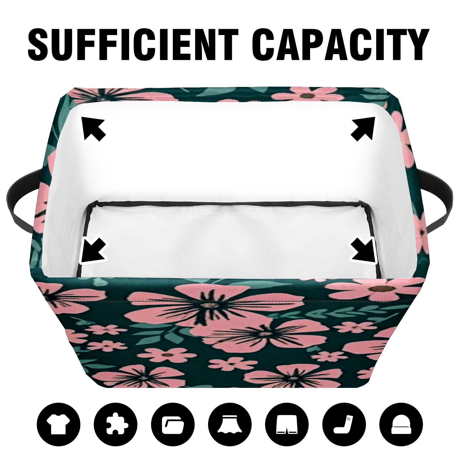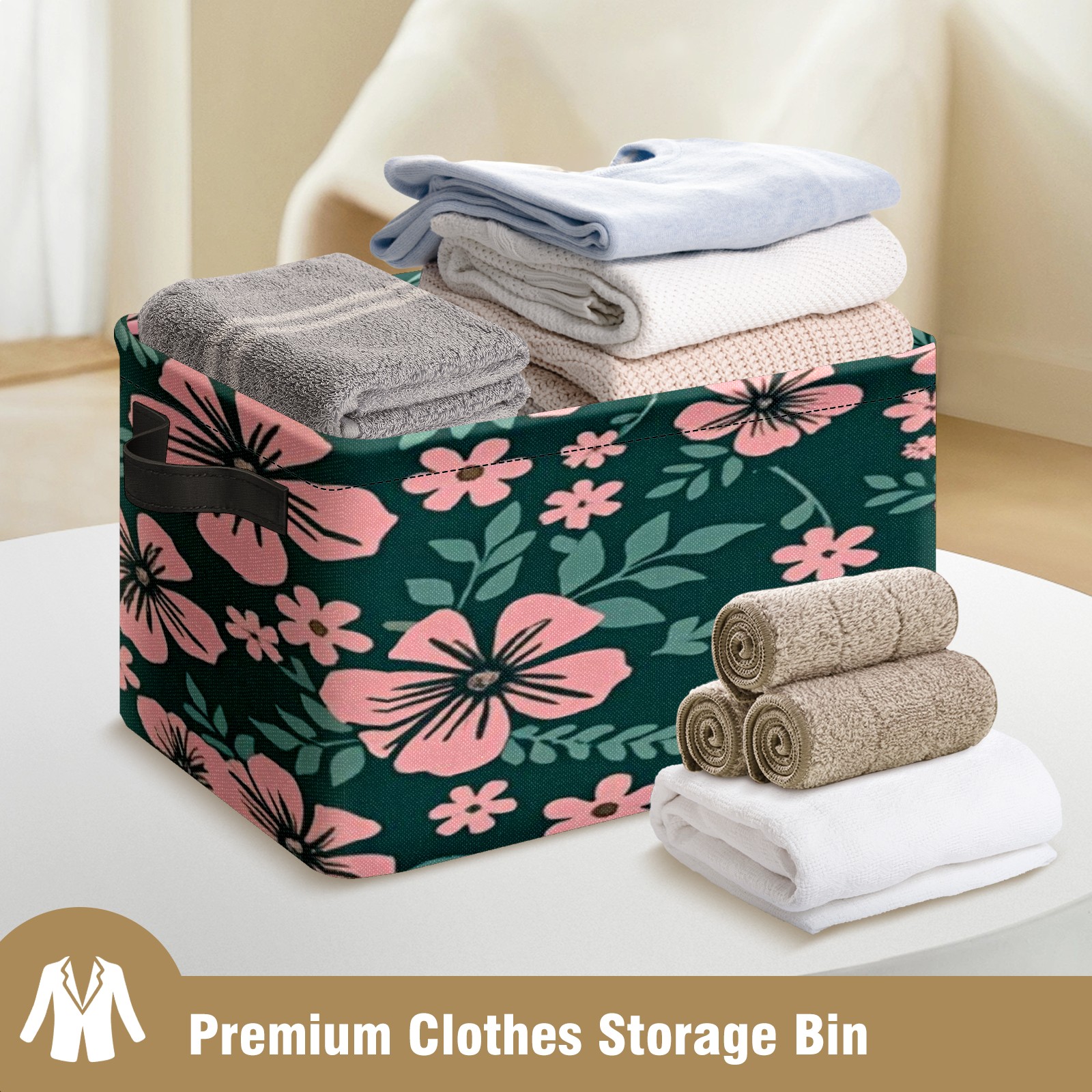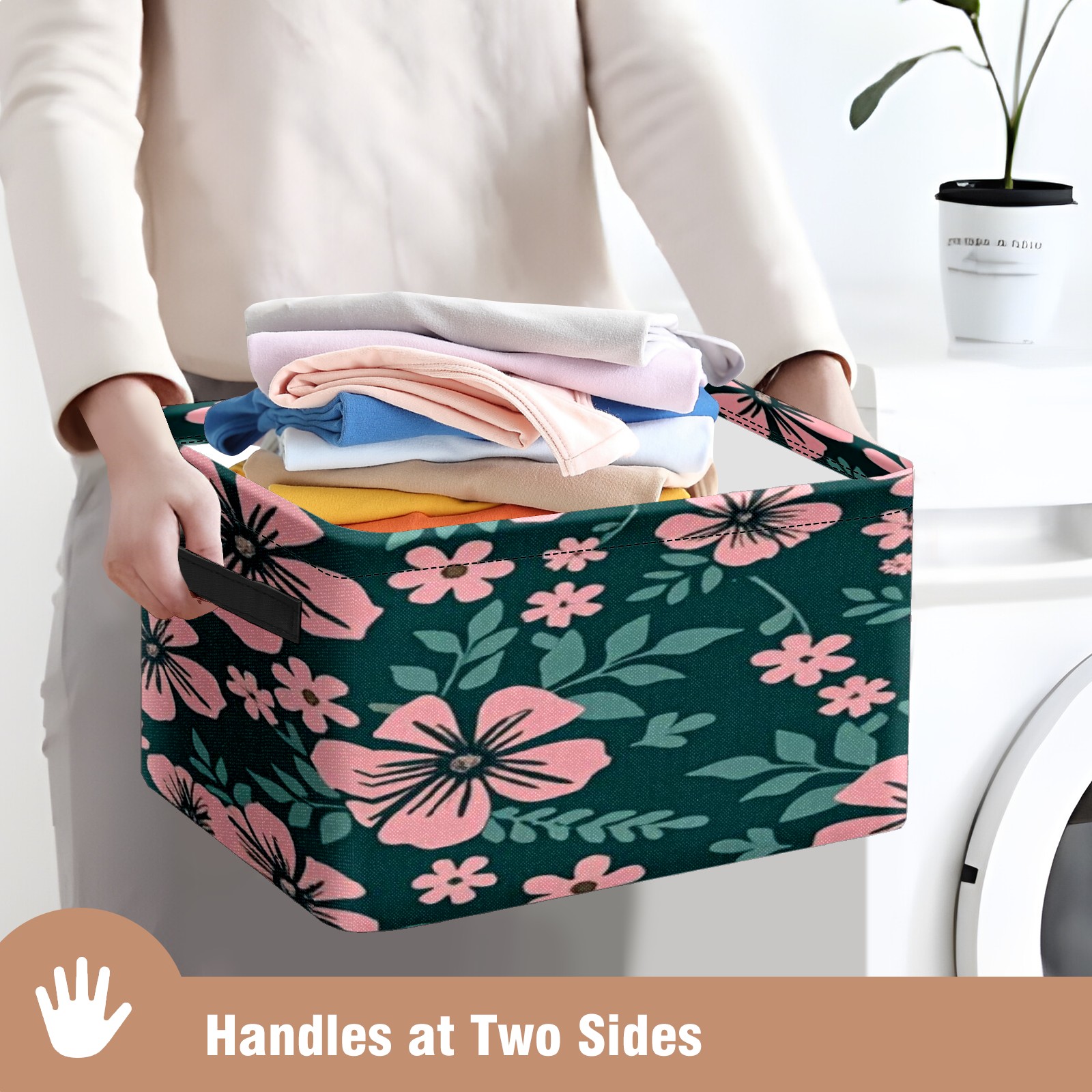 Foldable and Stackable Fabric Storage Basket for Home Organization with Handles, Decorative Closet Bins for Shelves, Laundry, and Toy Storage( Green Pink Flowers)