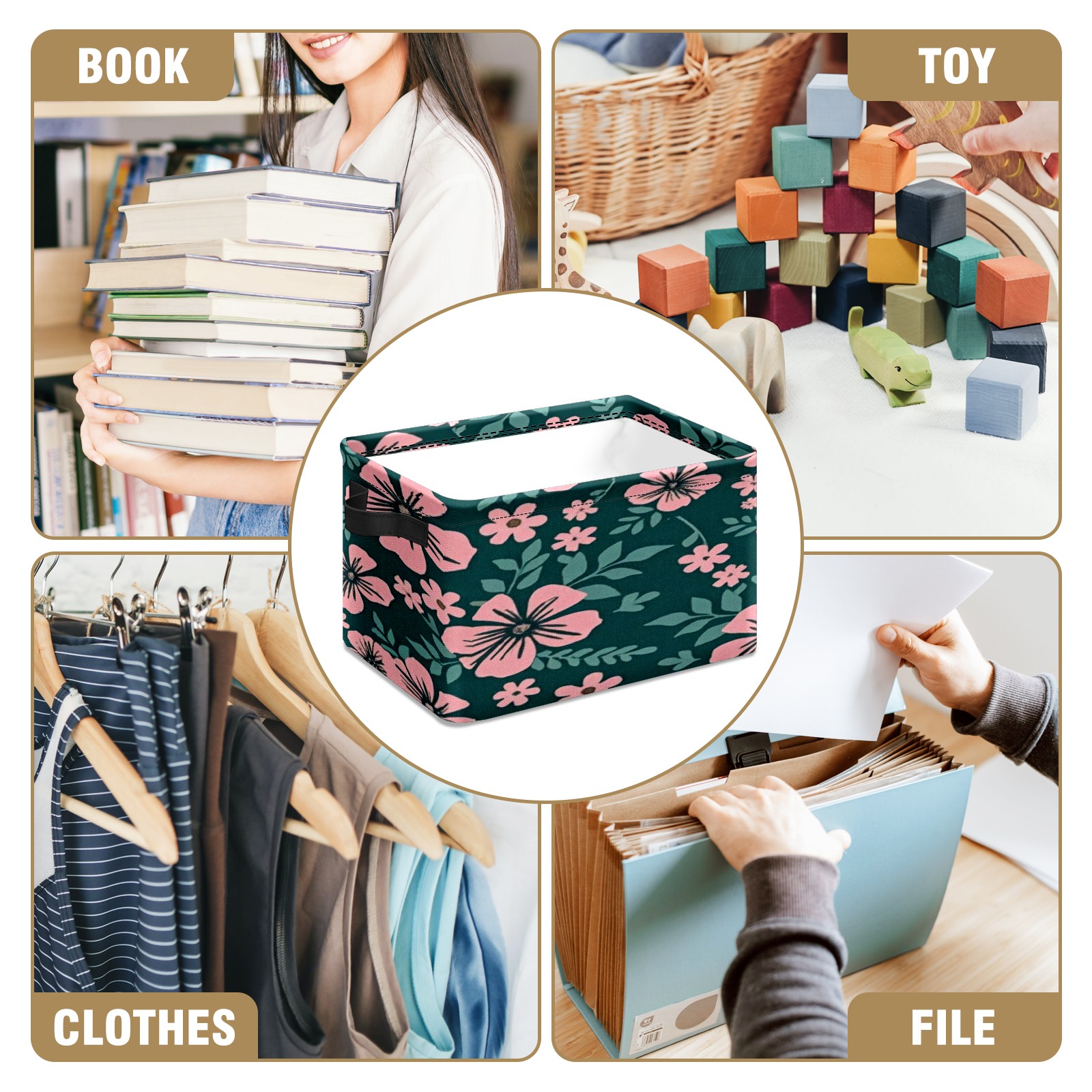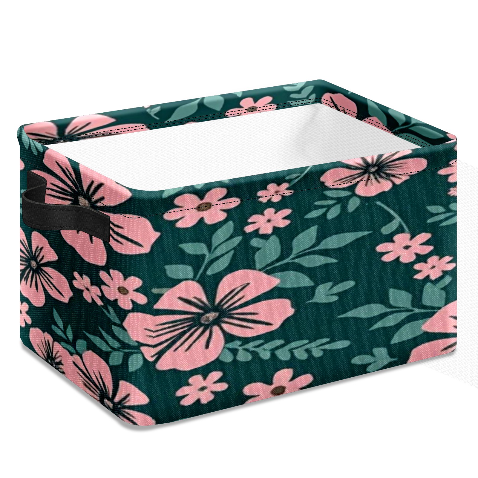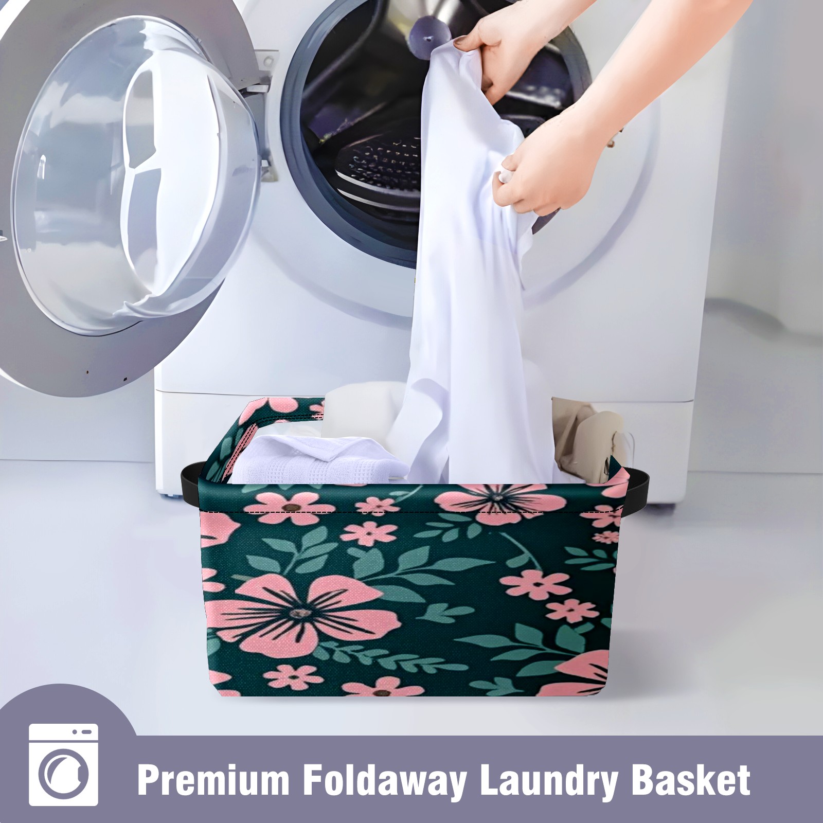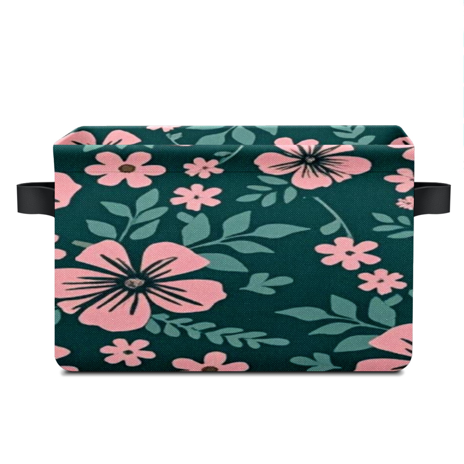 Foldable and Stackable Fabric Storage Basket for Home Organization with Handles, Decorative Closet Bins for Shelves, Laundry, and Toy Storage( Green Pink Flowers)