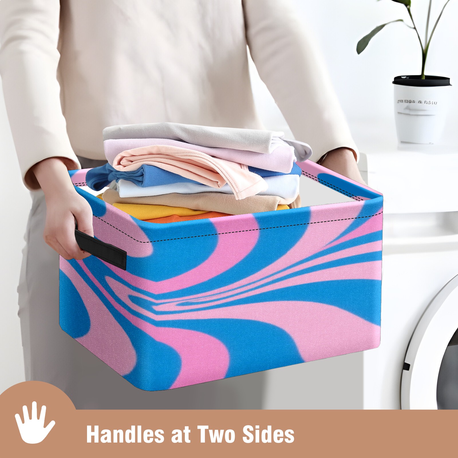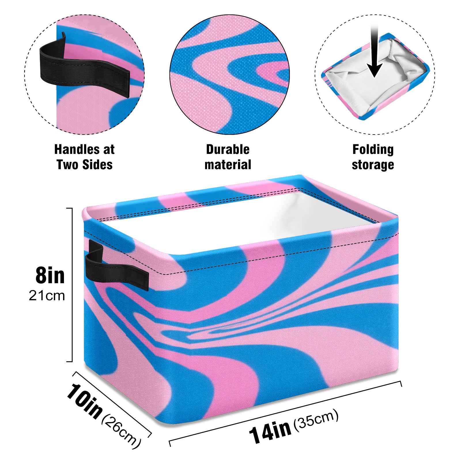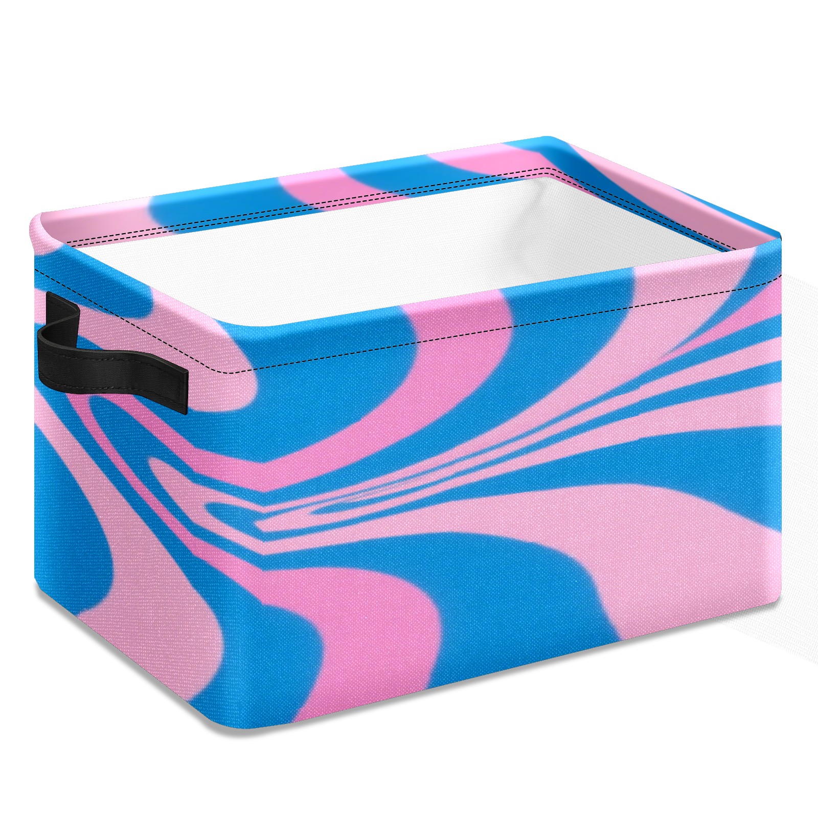 Foldable and Stackable Fabric Storage Basket for Home Organization with Handles, Decorative Closet Bins for Shelves, Laundry, and Toy Storage( Pink Blue Wavy)