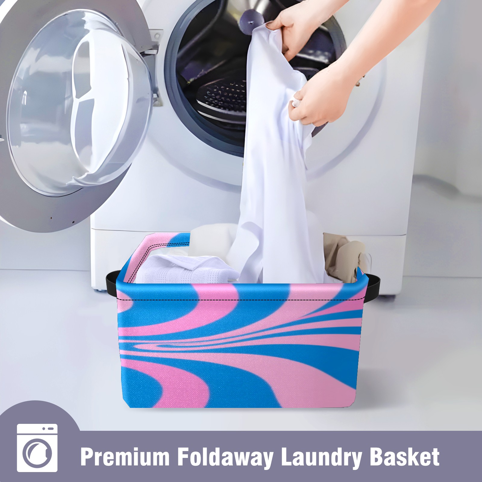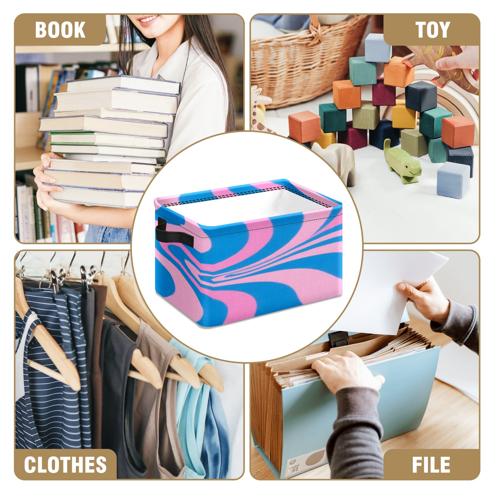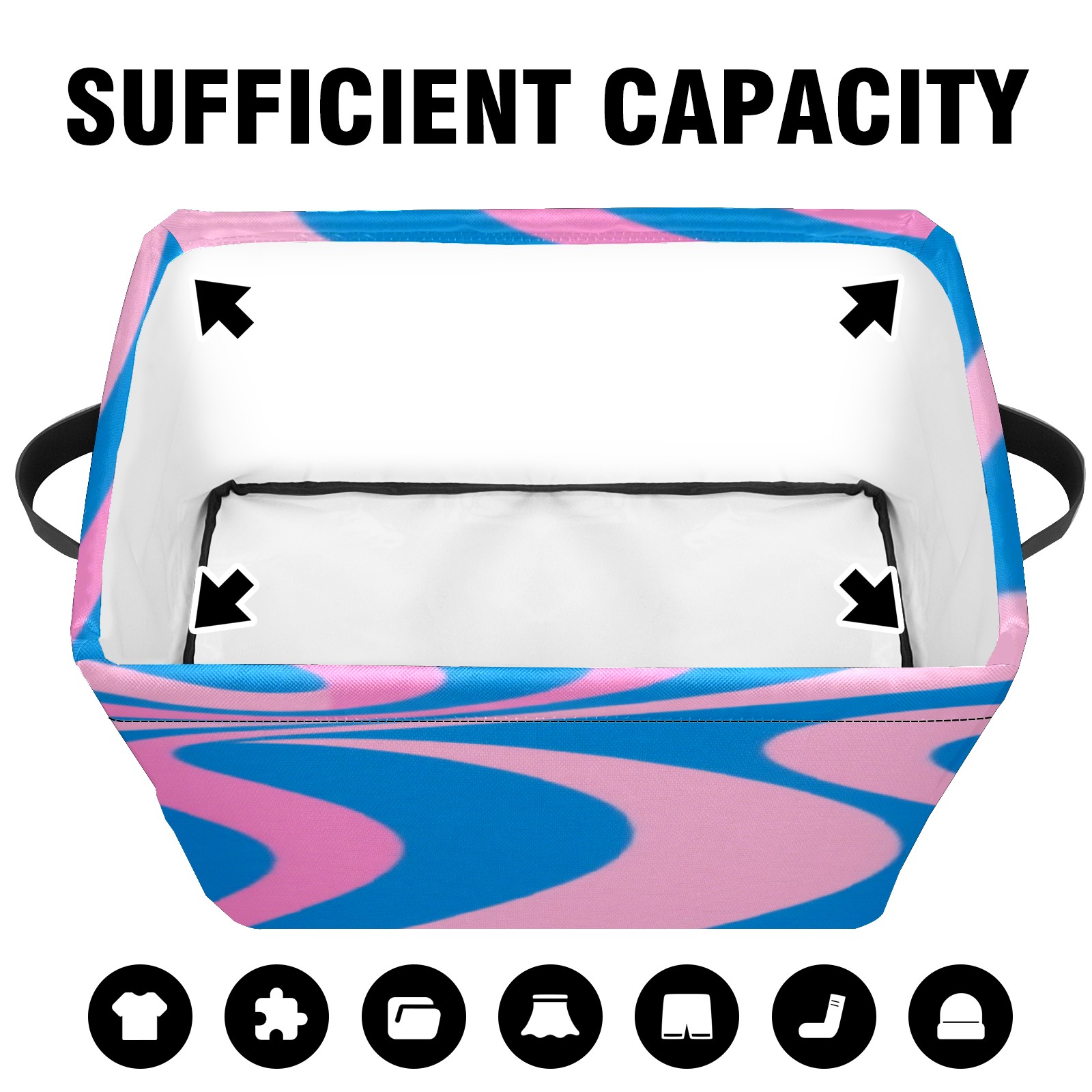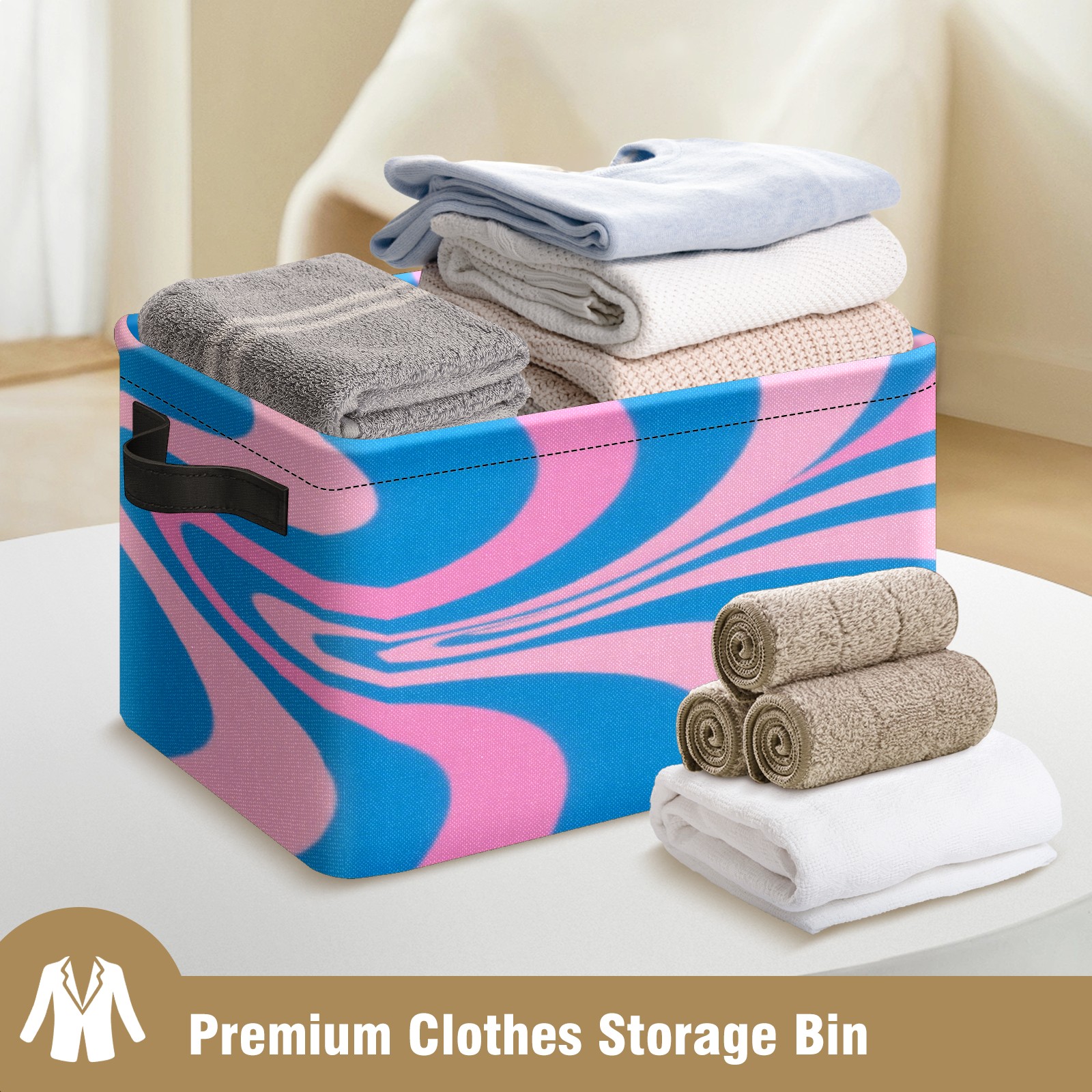 Foldable and Stackable Fabric Storage Basket for Home Organization with Handles, Decorative Closet Bins for Shelves, Laundry, and Toy Storage( Pink Blue Wavy)