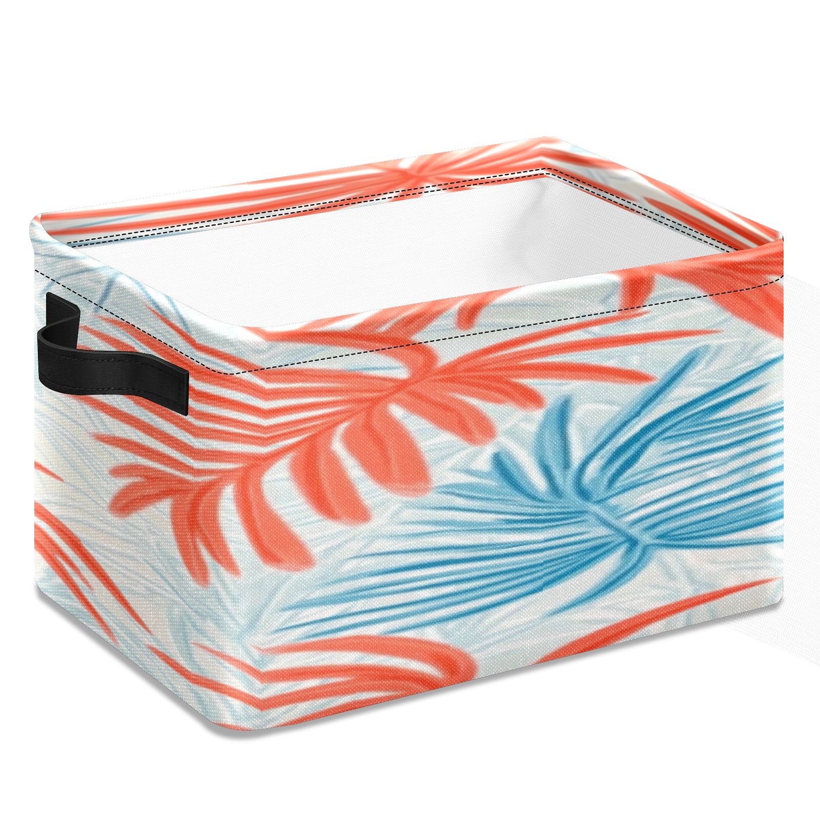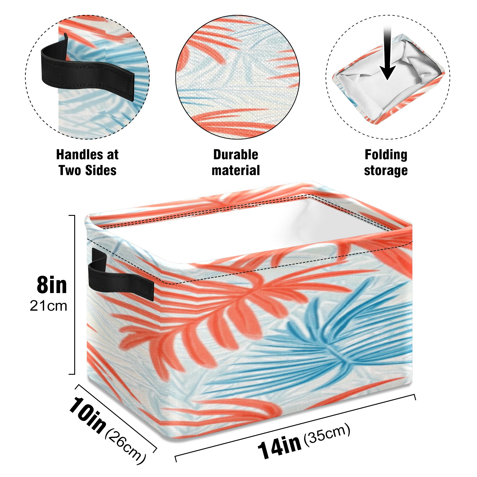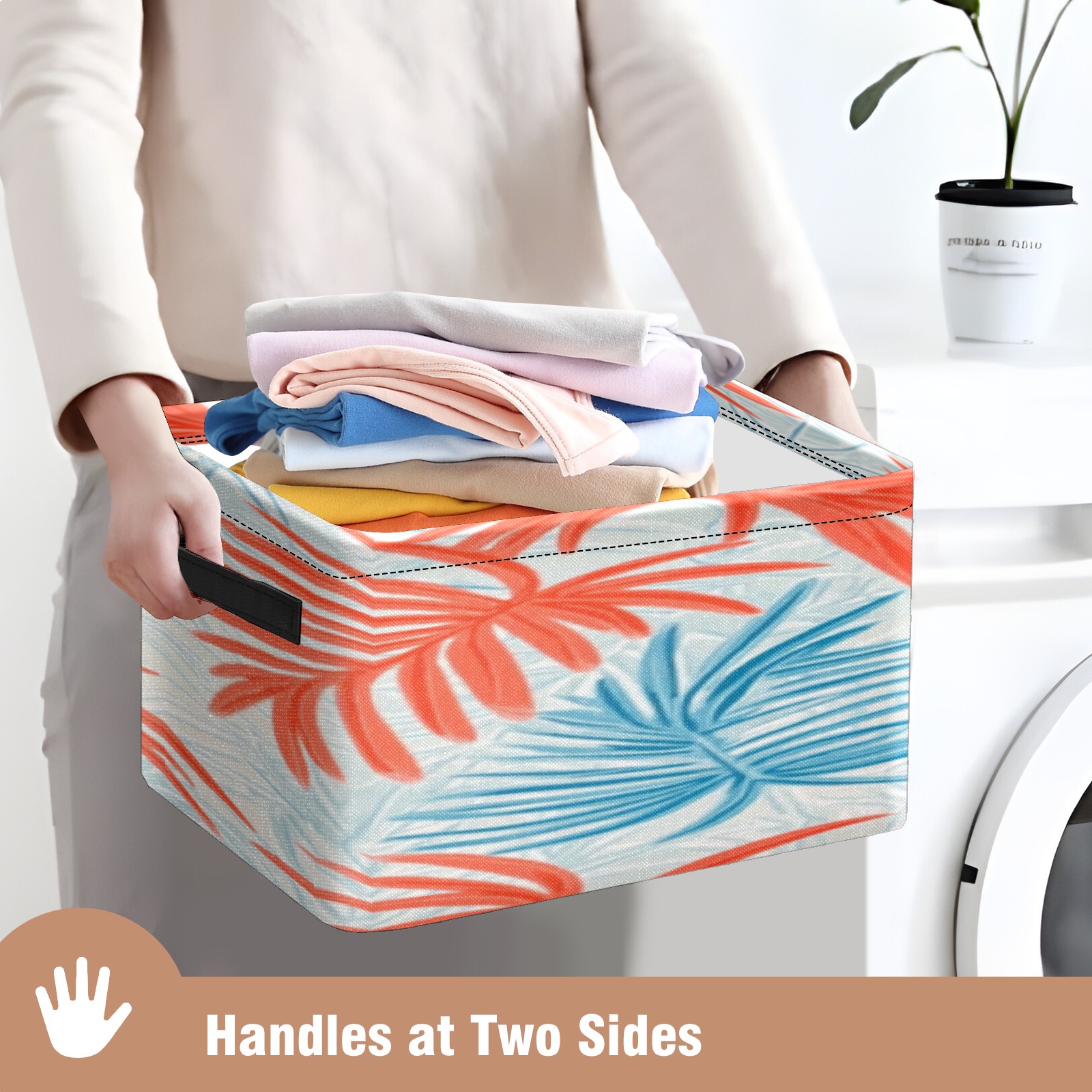 Foldable and Stackable Fabric Storage Basket for Home Organization with Handles, Decorative Closet Bins for Shelves, Laundry, and Toy Storage( Tropical Leaves)