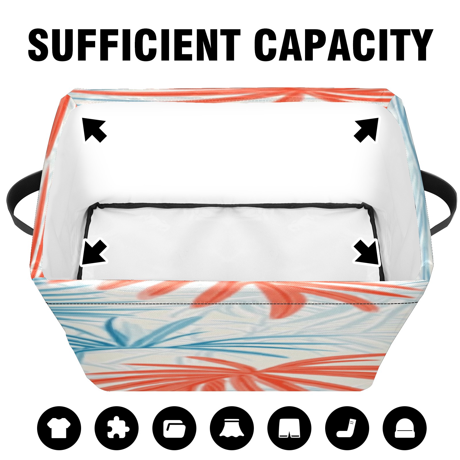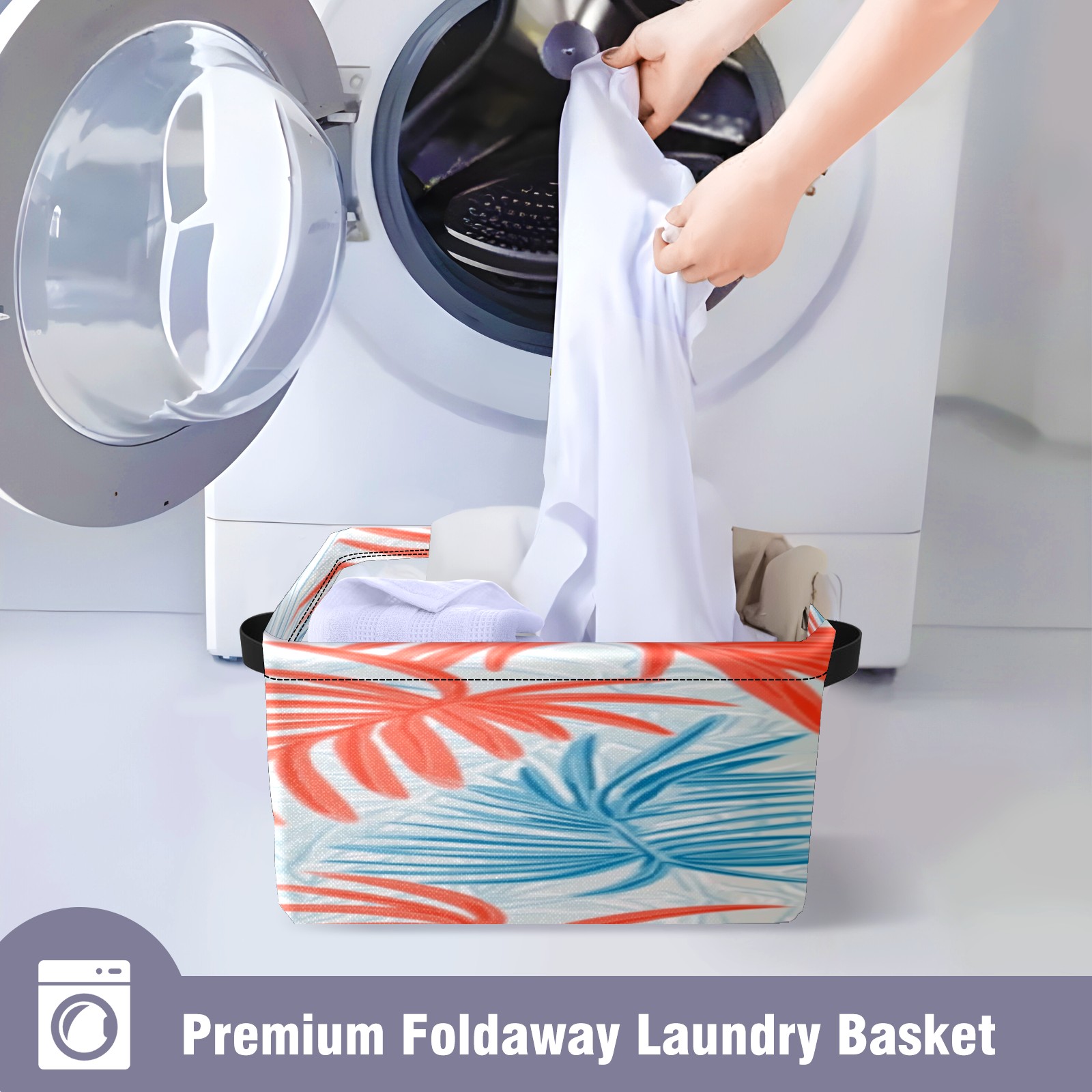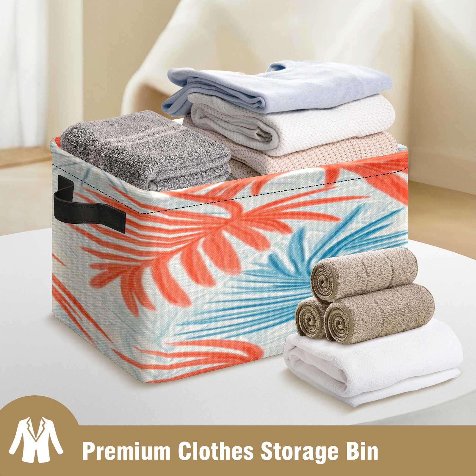 Foldable and Stackable Fabric Storage Basket for Home Organization with Handles, Decorative Closet Bins for Shelves, Laundry, and Toy Storage( Tropical Leaves)