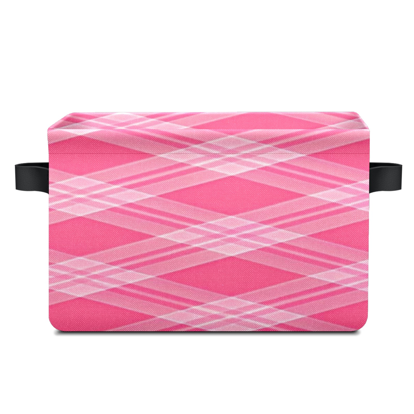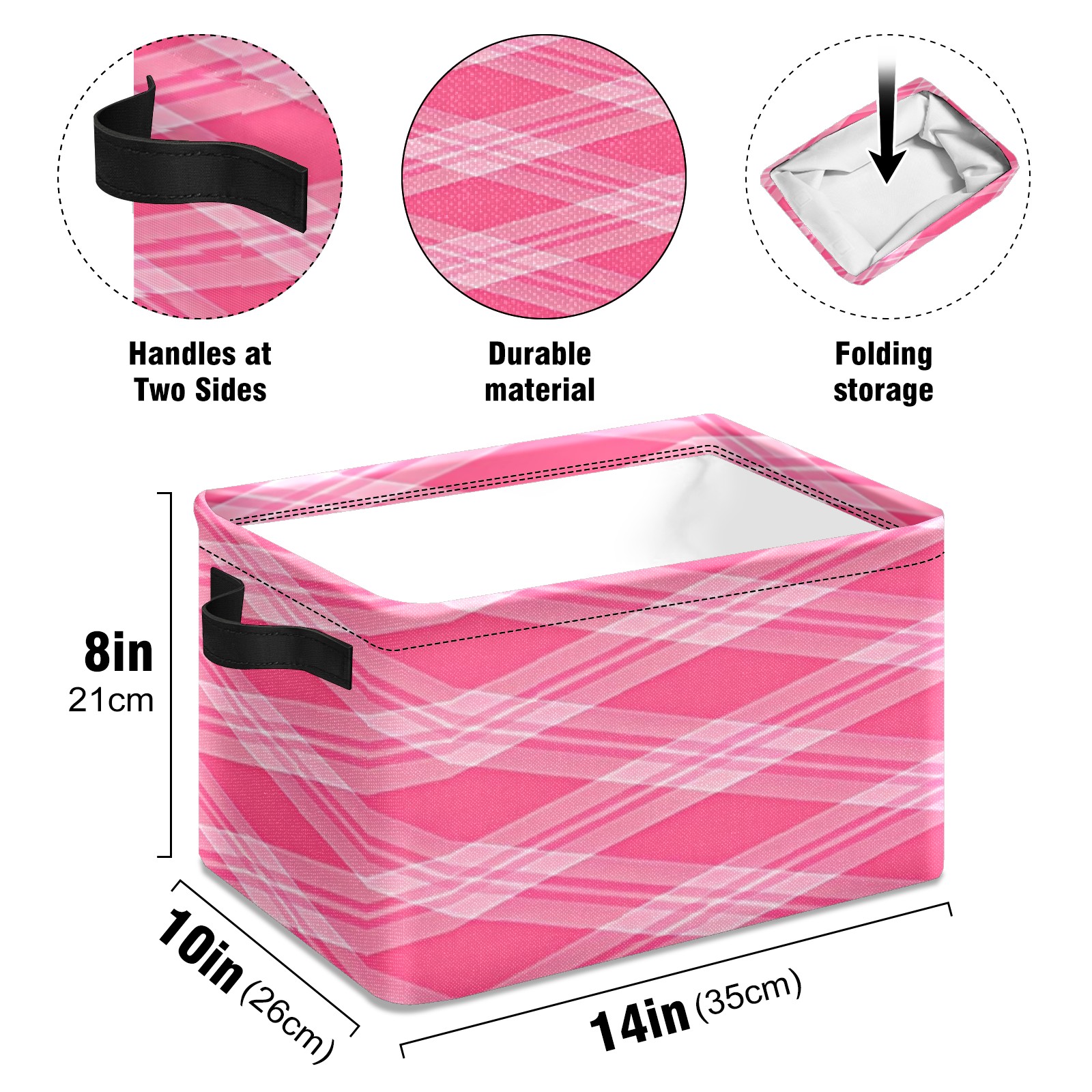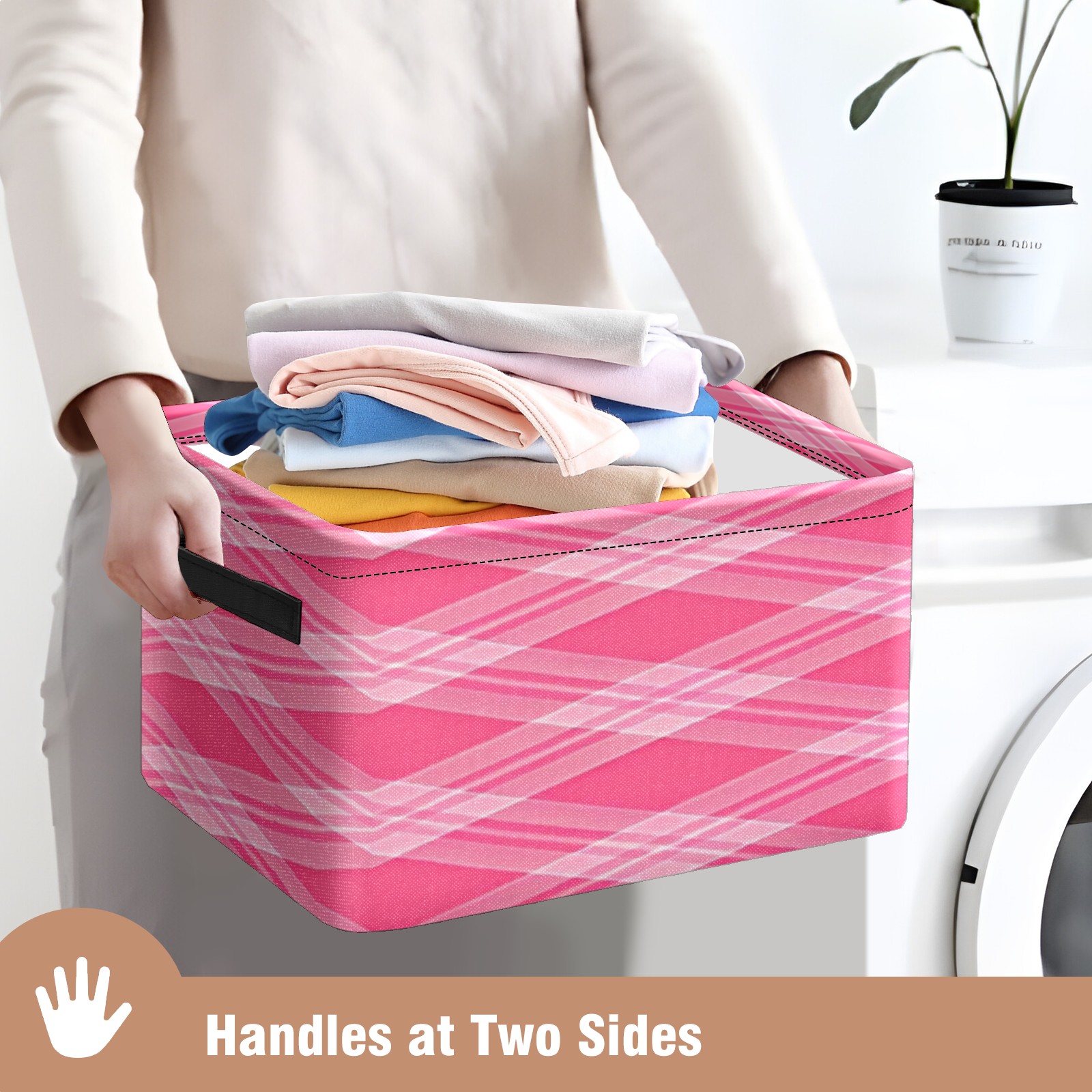 Foldable and Stackable Fabric Storage Basket for Home Organization with Handles, Decorative Closet Bins for Shelves, Laundry, and Toy Storage( Pink White Checkered)